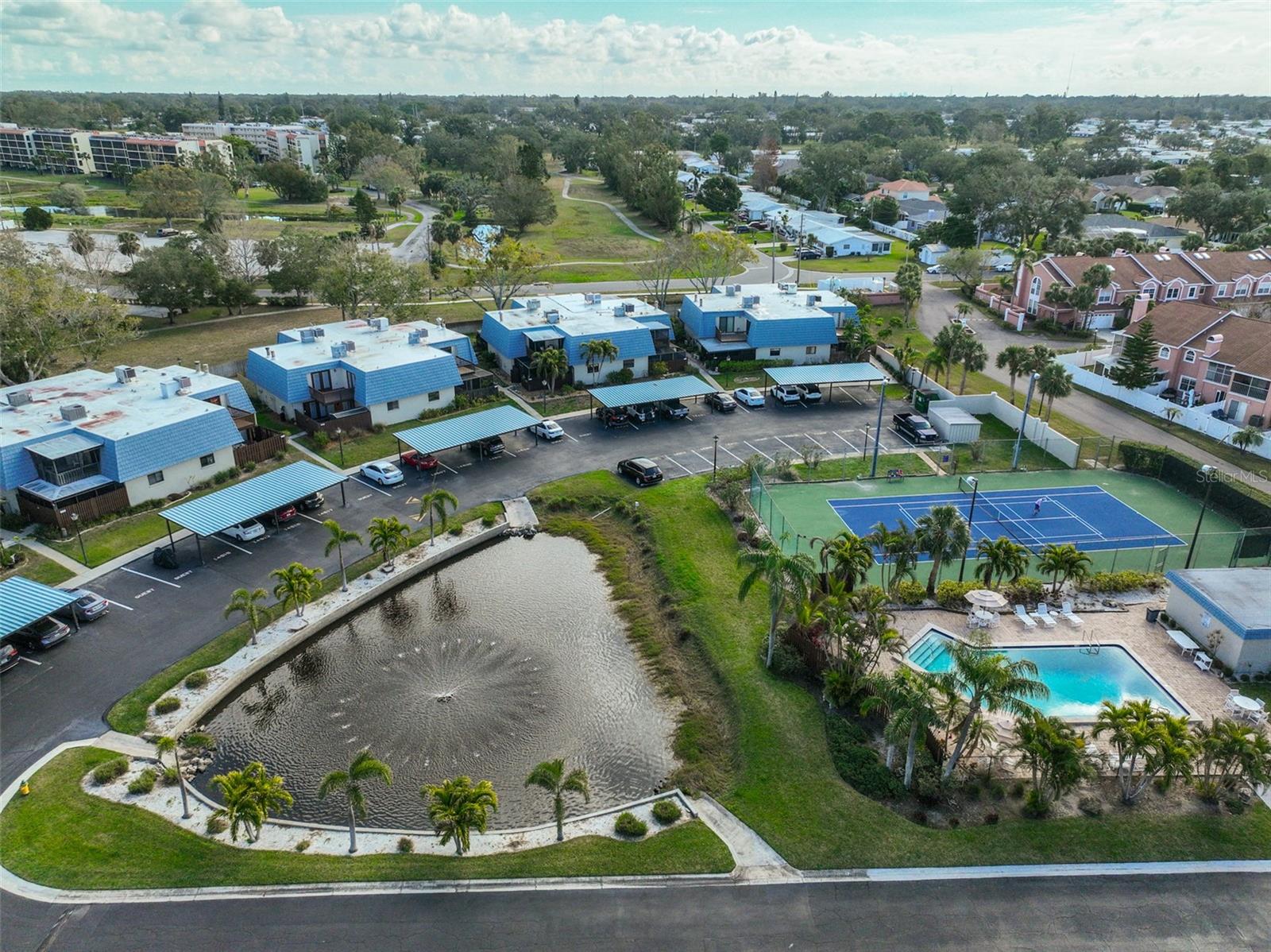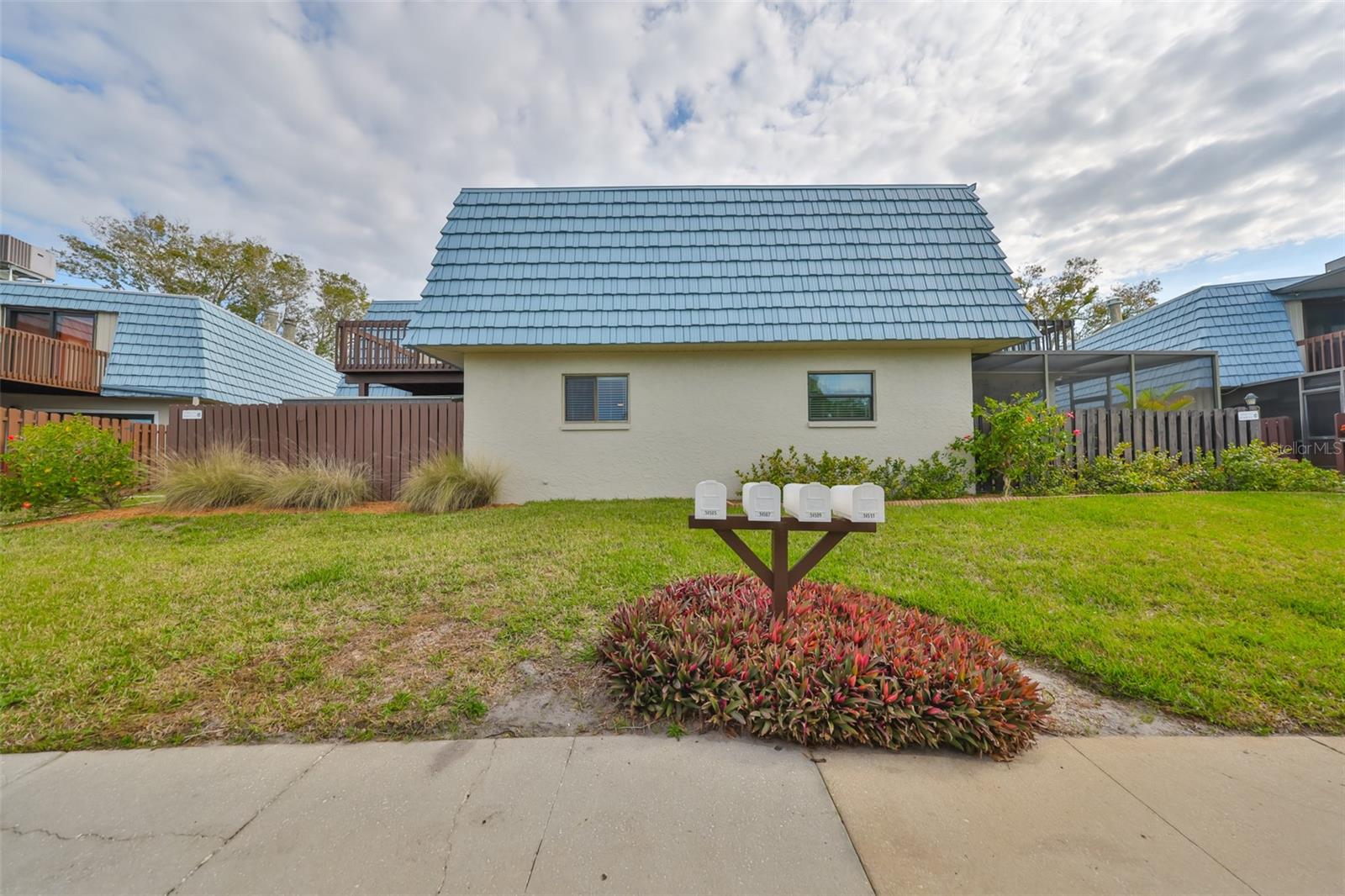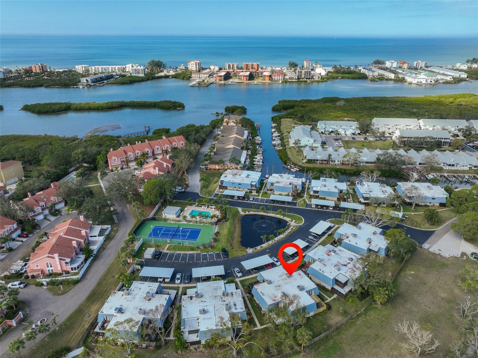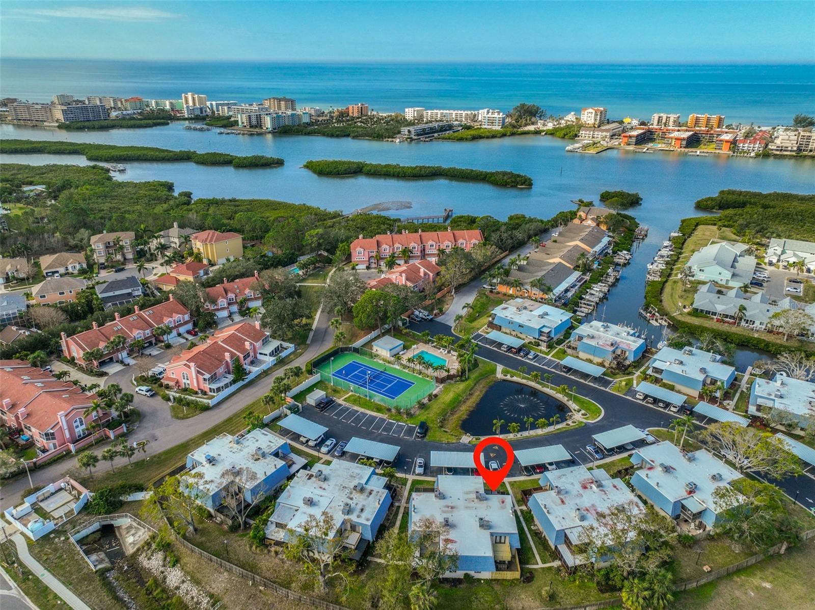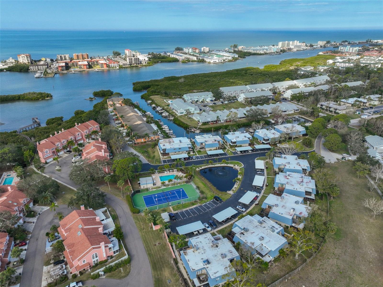 Welcome to this beautiful 2 bedroom/2 bathroom townhome in the peaceful & desirable Catalina Cove Community. Enter the private brick courtyard to the main entrance and two sets of French doors, fully fenced in for privacy. Step inside to the coastal-colored living room with a cozy wood-burning fireplace. Luxe vinyl flooring throughout. The dining room can host a large family or gathering of guests, if desired. The kitchen has all stainless steel appliances and a breakfast bar, perfect for a cup of joe or a quick meal! The bathroom on the first floor has a separate closet with a full-sized washer & dryer plus extra shelving. There is a first-floor closet located by the stairs, home to the water heater, electrical panel and ample/bonus storage. As you are led upstairs, you’ll find the split bedroom floor plan: A SPACIOUS primary ensuite and an equally impressive second bedroom, both with charming French doors that lead out to a private balcony. This lovely home has perfectly-skimmed ceilings, all new coastal-inspired interior paint, all new exterior paint and siding, ac (2017), new roof (2022), ample closets & a courtyard shed with flooring to secure storage, an entire home water softener system, assigned covered parking with generous additional guest parking, and the LOWEST HOA FEES AROUND: $320 per month! This community has a sparkling saltwater pool & newly resurfaced tennis/pickleball court. The grounds are impeccably kept. Pets are welcome (some restrictions)! Just mere minutes away from our gorgeous Gulf beaches, shopping and dining, major airports (St. Pete/Clearwater & Tampa International) 20 & 40 minutes away, close to the interstate to travel South or North to any destination you desire. Truly not to miss this stunning townhome. Come Live in the Dream!