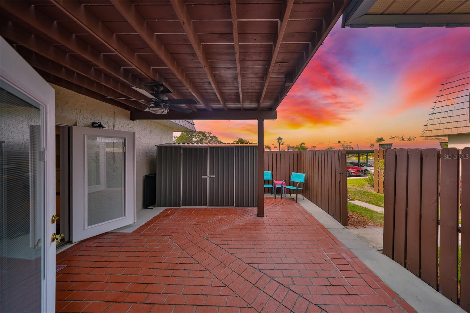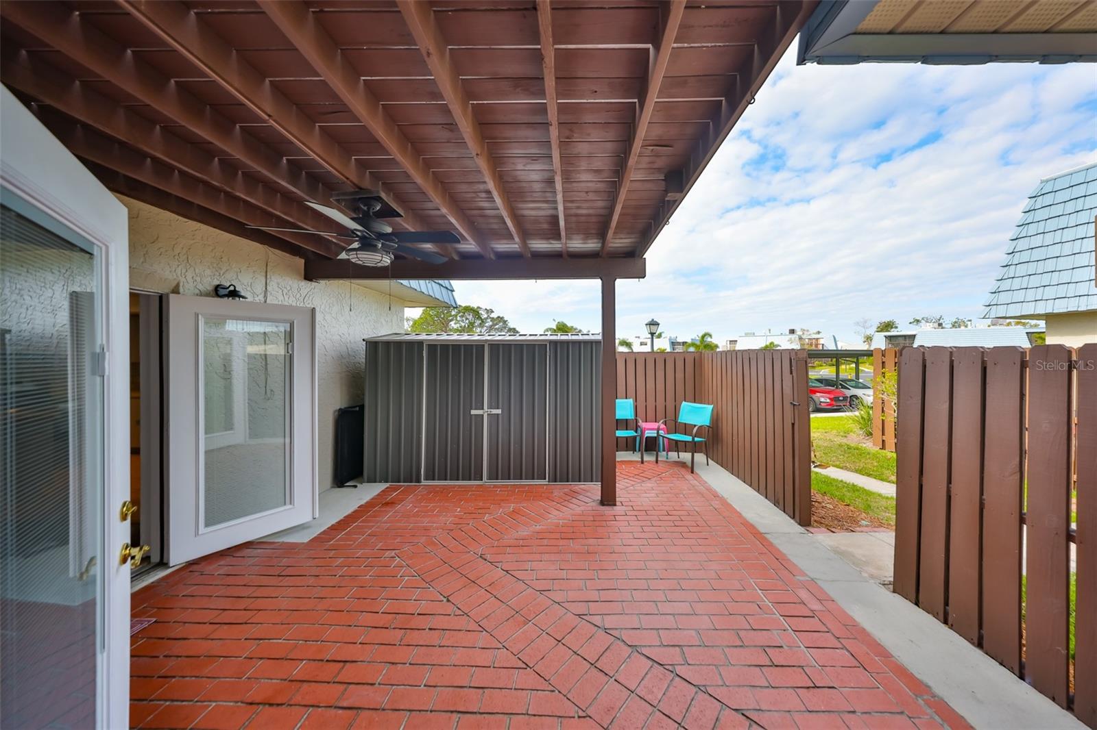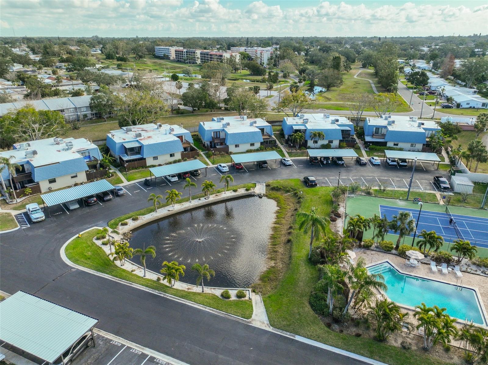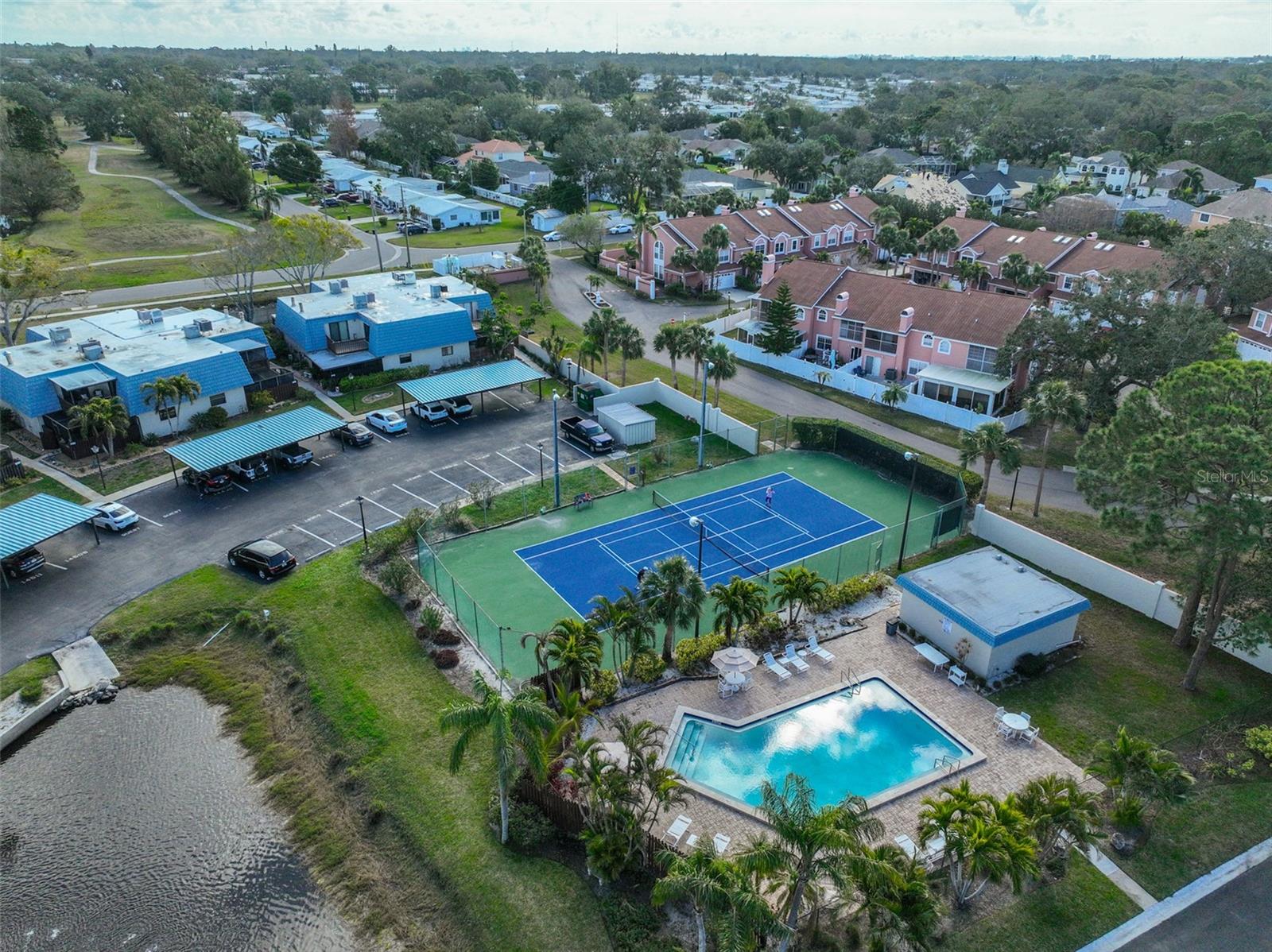 Welcome to this beautiful 2 bedroom/2 bathroom townhome in the peaceful & desirable Catalina Cove Community. Enter the private brick courtyard to the main entrance and two sets of French doors, fully fenced in for privacy. Step inside to the coastal-colored living room with a cozy wood-burning fireplace. Luxe vinyl flooring throughout. The dining room can host a large family or gathering of guests, if desired. The kitchen has all stainless steel appliances and a breakfast bar, perfect for a cup of joe or a quick meal! The bathroom on the first floor has a separate closet with a full-sized washer & dryer plus extra shelving. There is a first-floor closet located by the stairs, home to the water heater, electrical panel and ample/bonus storage. As you are led upstairs, you’ll find the split bedroom floor plan: A SPACIOUS primary ensuite and an equally impressive second bedroom, both with charming French doors that lead out to a private balcony. This lovely home has perfectly-skimmed ceilings, all new coastal-inspired interior paint, all new exterior paint and siding, ac (2017), new roof (2022), ample closets & a courtyard shed with flooring to secure storage, an entire home water softener system, assigned covered parking with generous additional guest parking, and the LOWEST HOA FEES AROUND: $320 per month! This community has a sparkling saltwater pool & newly resurfaced tennis/pickleball court. The grounds are impeccably kept. Pets are welcome (some restrictions)! Just mere minutes away from our gorgeous Gulf beaches, shopping and dining, major airports (St. Pete/Clearwater & Tampa International) 20 & 40 minutes away, close to the interstate to travel South or North to any destination you desire. Truly not to miss this stunning townhome. Come Live in the Dream!
