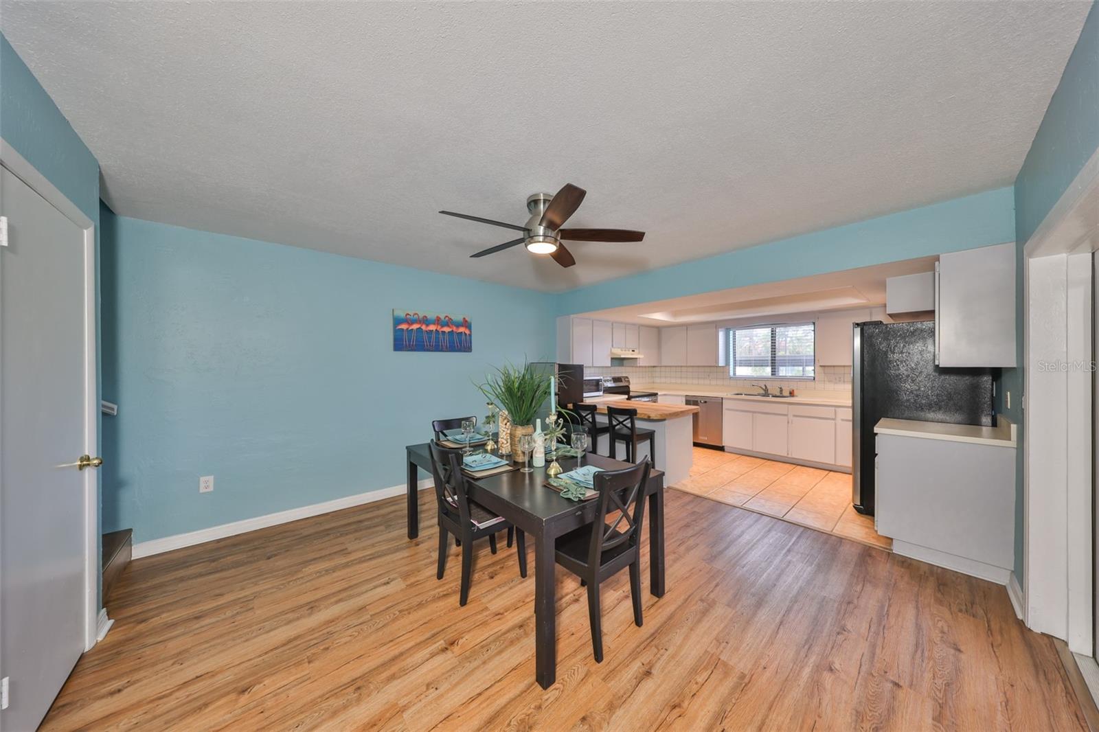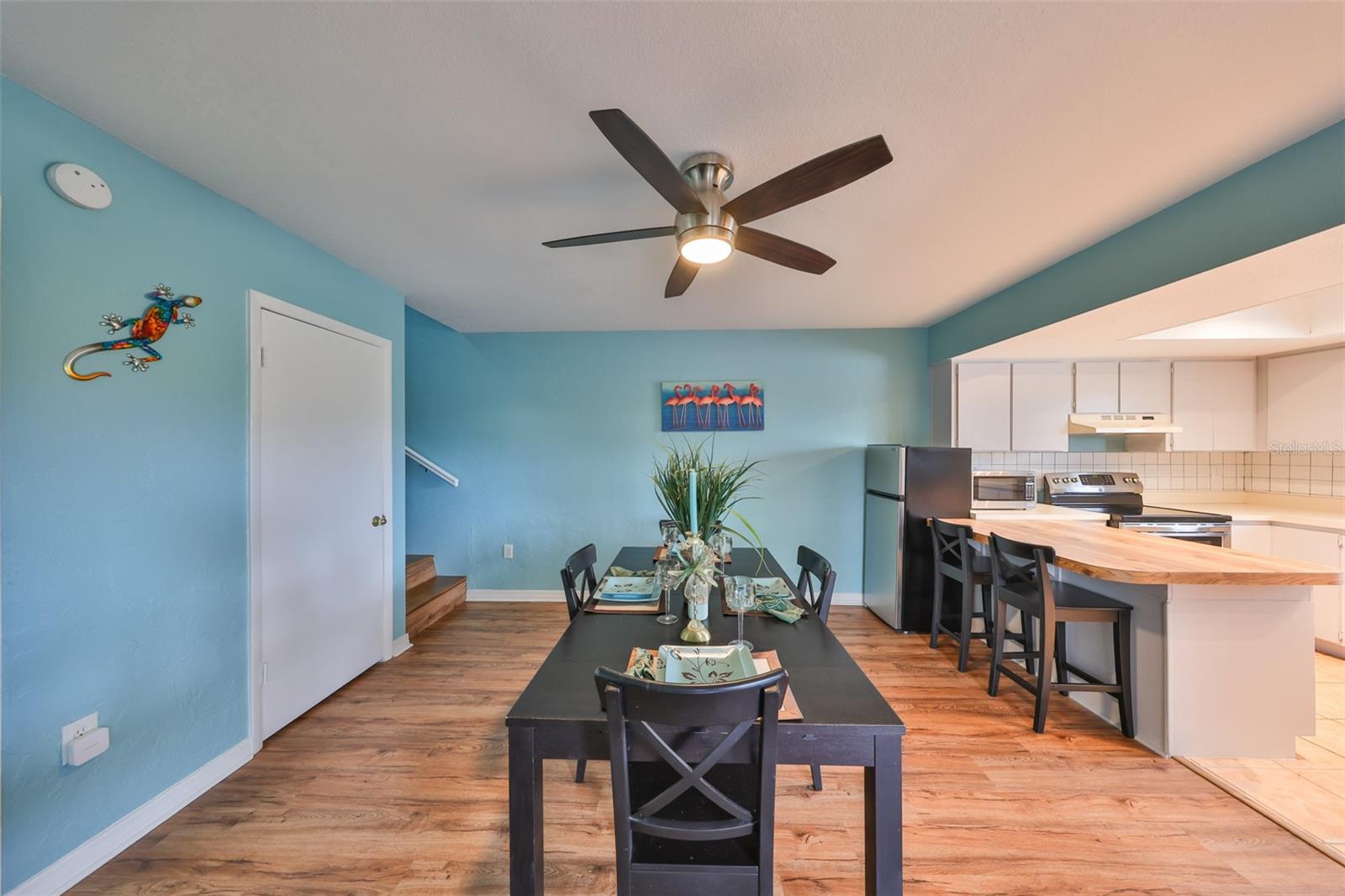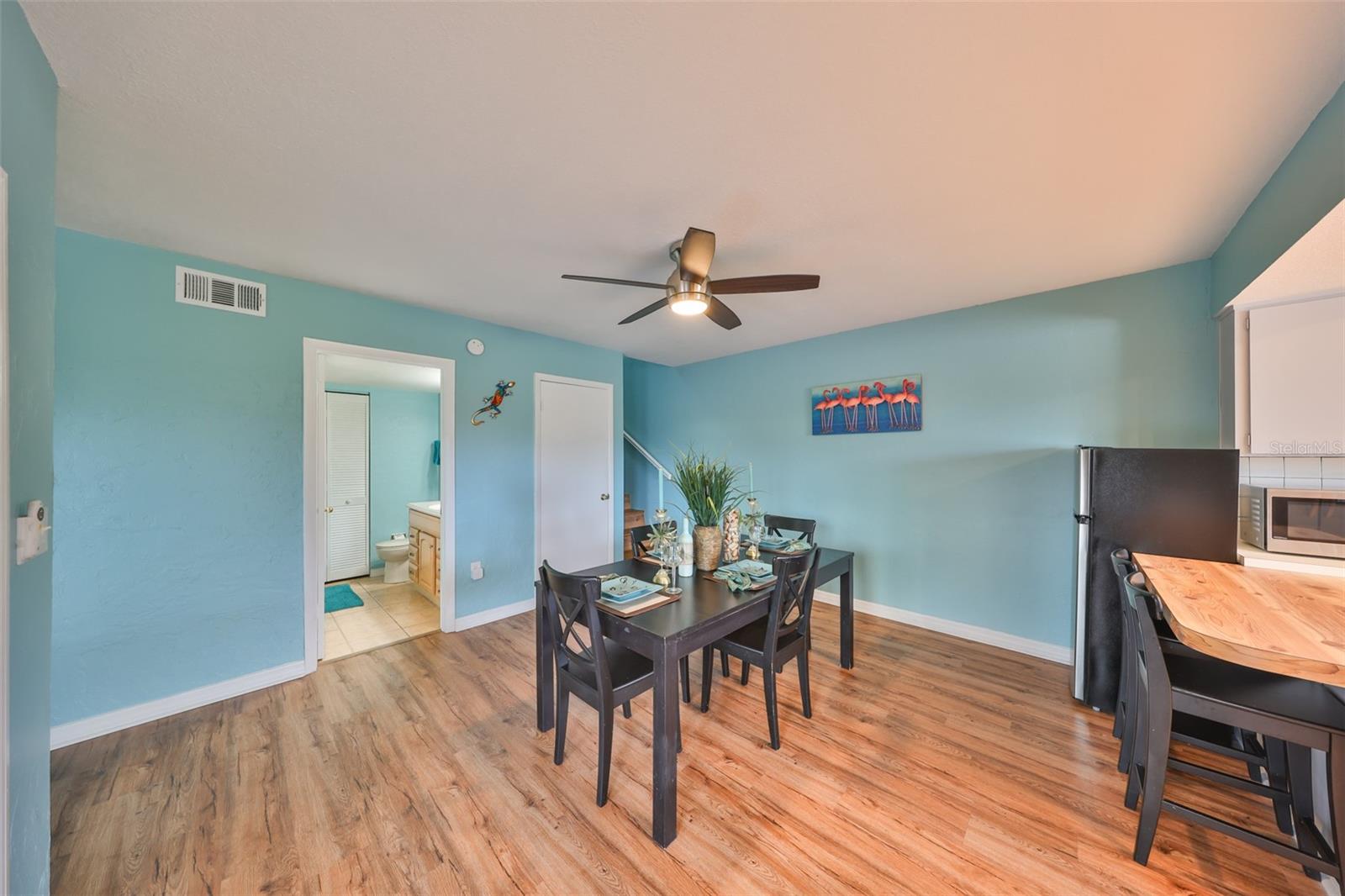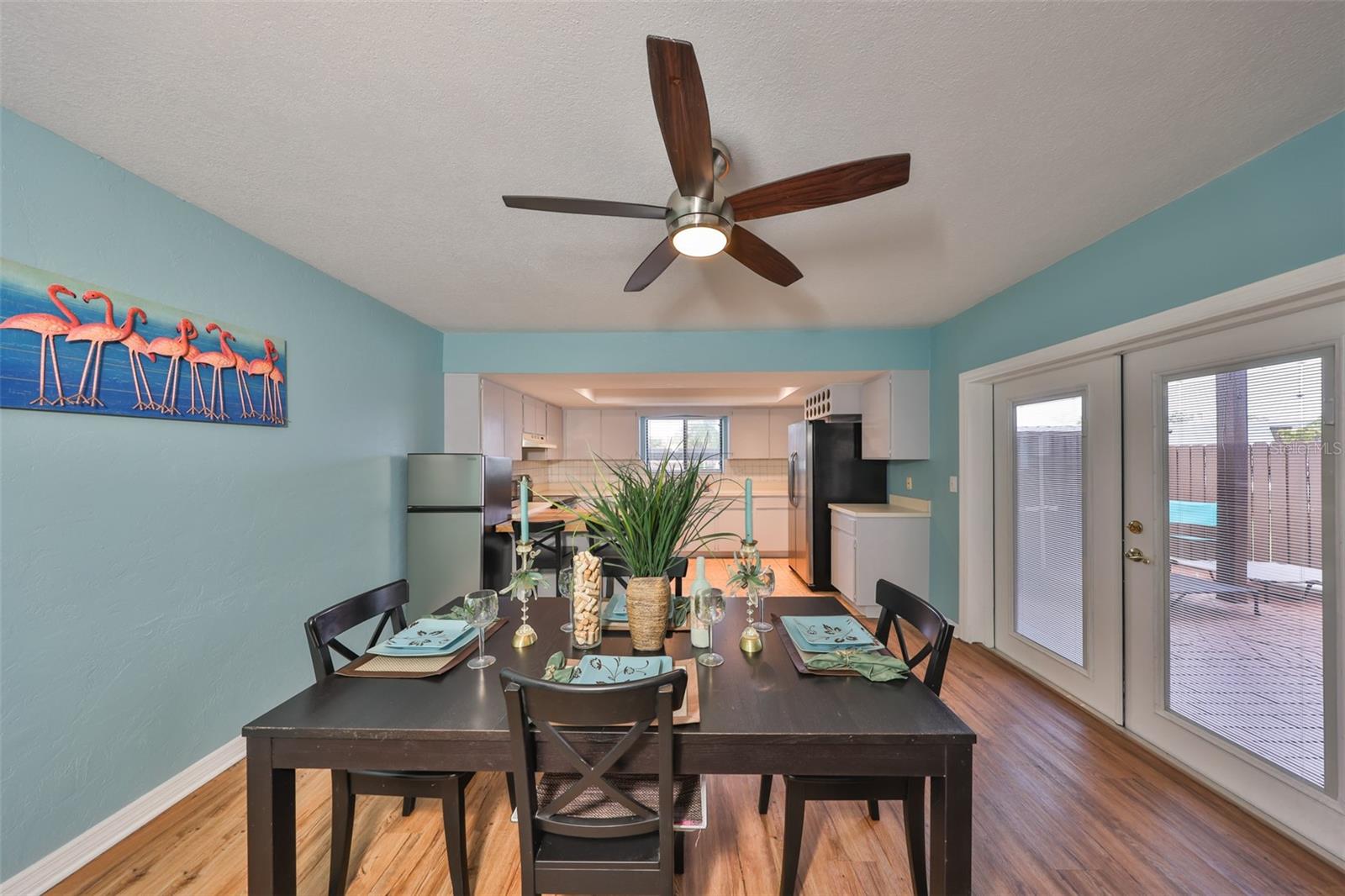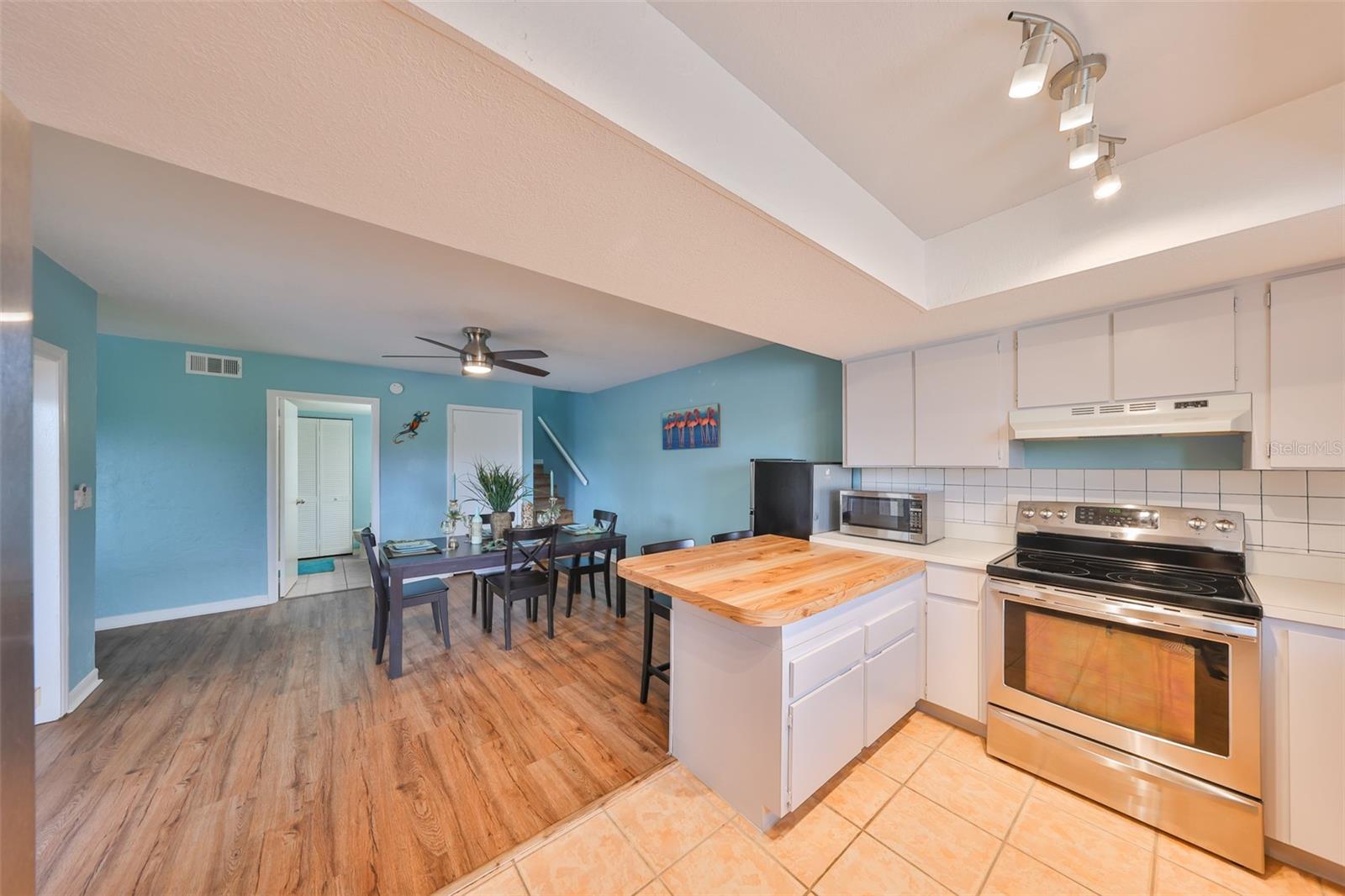 Welcome to this beautiful 2 bedroom/2 bathroom townhome in the peaceful & desirable Catalina Cove Community. Enter the private brick courtyard to the main entrance and two sets of French doors, fully fenced in for privacy. Step inside to the coastal-colored living room with a cozy wood-burning fireplace. Luxe vinyl flooring throughout. The dining room can host a large family or gathering of guests, if desired. The kitchen has all stainless steel appliances and a breakfast bar, perfect for a cup of joe or a quick meal! The bathroom on the first floor has a separate closet with a full-sized washer & dryer plus extra shelving. There is a first-floor closet located by the stairs, home to the water heater, electrical panel and ample/bonus storage. As you are led upstairs, you’ll find the split bedroom floor plan: A SPACIOUS primary ensuite and an equally impressive second bedroom, both with charming French doors that lead out to a private balcony. This lovely home has perfectly-skimmed ceilings, all new coastal-inspired interior paint, all new exterior paint and siding, ac (2017), new roof (2022), ample closets & a courtyard shed with flooring to secure storage, an entire home water softener system, assigned covered parking with generous additional guest parking, and the LOWEST HOA FEES AROUND: $320 per month! This community has a sparkling saltwater pool & newly resurfaced tennis/pickleball court. The grounds are impeccably kept. Pets are welcome (some restrictions)! Just mere minutes away from our gorgeous Gulf beaches, shopping and dining, major airports (St. Pete/Clearwater & Tampa International) 20 & 40 minutes away, close to the interstate to travel South or North to any destination you desire. Truly not to miss this stunning townhome. Come Live in the Dream!