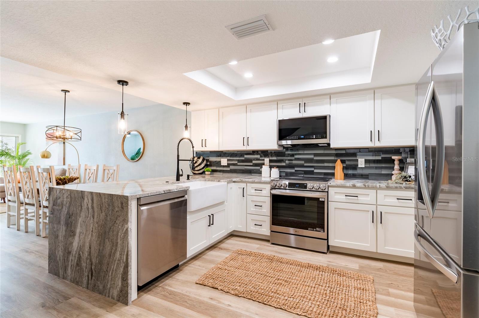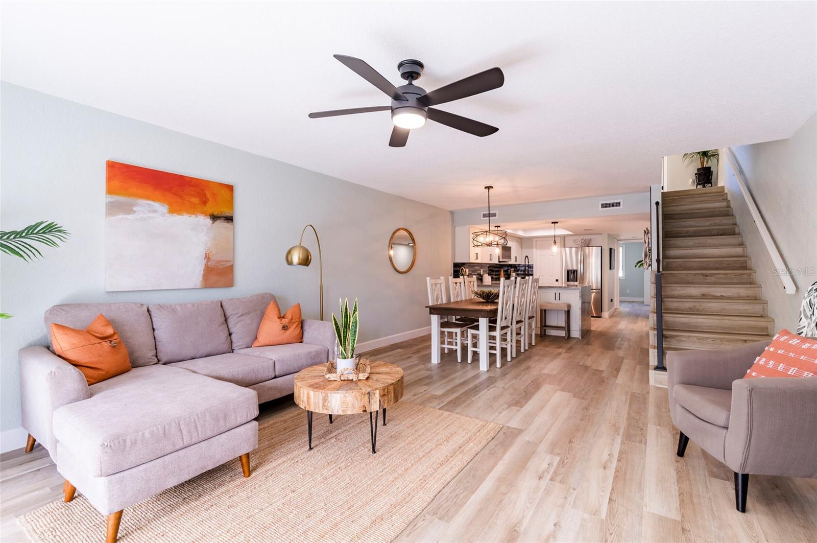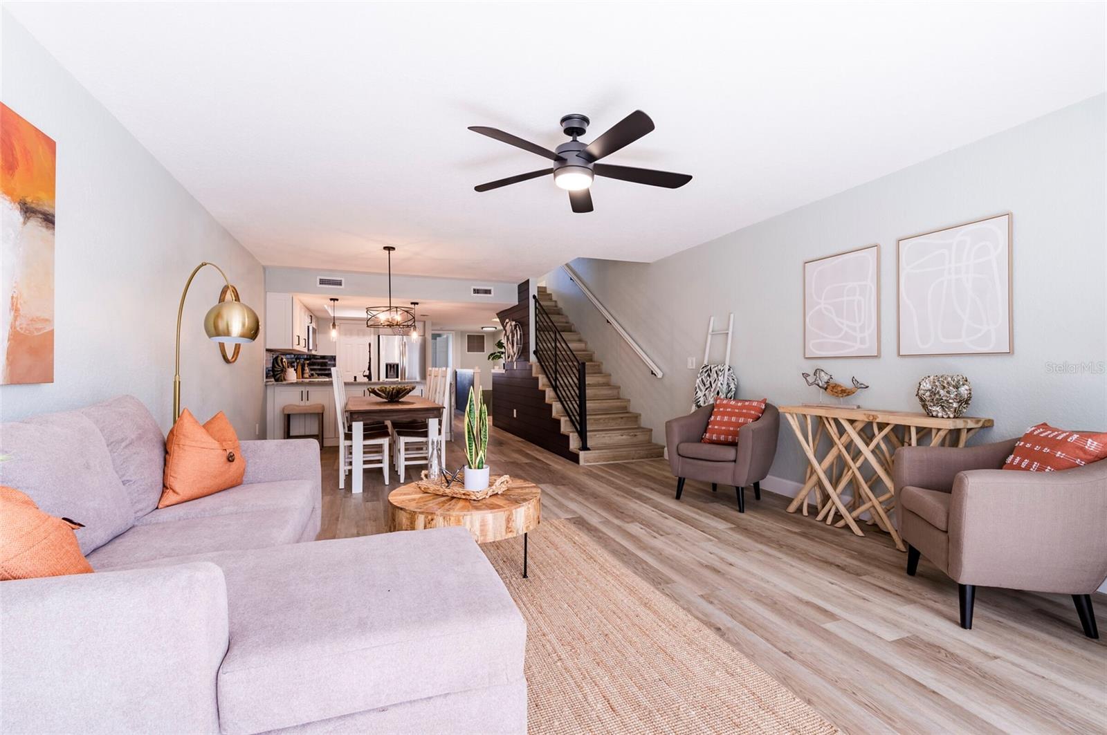 THIS FABULOUS 4 BED/3 BATH TOWNHOME HAS IT ALL!! PLUS, IT HAD ZERO DAMAGE OR FLOODING FROM THE LAST 2 HURRICANES. COMPLETELY RENOVATED WITH STYLISH MODERN DETAILS BY A PROFESSIONAL DECORATOR, WITH LUXURY VYNIL FLOORING & DECORATIVE TILE THROUGHOUT. A/C REPLACED IN 2024 WITH NEW COPPER WIRING. ADDITIONAL DUCTLESS MINI SPLIT AIR COND/HEAT PUMP WITH REMOTE IN 1ST FLOOR BEDROOM. THIS HOME IS IN THE PERFECT LOCATION; RIGHT IN THE MIDDLE OF THE COMPLEX & OVERLOOKING THE POOL- JUST OUTSIDE THE 1ST FLOOR SLIDING-DOOR TO THE POOL GATE. 2 SCREENED PORCHES; ONE OFF THE LIVING ROOM & THE OTHER OFF OF THE MASTER SUITE. HUGE KITCHEN WITH LOTS OF CABINETS, BREAKFAST BAR WITH WATERFALL, HIGH-END GRANITE COUNTERS, PANTRY & STAINLESS STEEL APPLIANCES. PLUS, "OUT OF THE BOX" WASHER & DRYER (NEVER USED) IN A LAUNDRY CLOSET ON THE 3RD FLOOR. TONS OF CLOSET SPACE & STORAGE ON EVERY LEVEL!! THE MASTER SUITE HAS TWO WALK-IN CLOSETS AND LARGE ENSUITE WALK-IN SHOWER. THE LARGE 2ND BEDROOM HAD A BATHTUB, OVERSIZED CLOSET, AND AN EXTRA ROOM EXTENSION FOR A STUDENT STUDY AREA OR BUNKBEDS. BOTH UPSTAIRS BEDROOM HAVE VAULTED CEILINGS. THE 3RD BEDROOM ON THE MAIN LIVING AREA IS GREAT FOR AN OFFICE OR A GUEST ROOM WITH A LARGE CLOSET AND AN ADJACENT BATHROOM. THE FIRST FLOOR CONTAINS A HUGE 4TH BEDROOM WITH A LARGE CLOSET & ITS OWN PRIVATE ENTRANCE. THIS SPACE COULD ALSO BE A FABULOUS PLAY/GAME ROOM AS ITS JUST INSIDE OF THE SLIDER TO THE POOL/CLUBHOUSE. THERE IS PLENTY OF ROOM TO ADD A 4TH BATHROOM BY THE GARAGE DOOR- THERE IS A CONNECTED SEWER HOLE UNDERNEATH THE FLOORING WHICH WAS RECENTLY SCOPED & READY FOR USE. TWO TERMITE WARRANTIES- DRY-WOOD & SUBTERRANEAN. THIS IS A WATERFRONT COMMUNITY WITH FISHING WALKWAYS & DOCKS ALONG THE INTRA-COASTAL WATERWAY. BOATERS MAY UTILIZE THE DOCKS FOR SHORT-TERM DOCKING FOR 24 HOURS (CHECK WITH "RESOURCE PROPERTY MANAGEMENT" FOR THE RULES ABOUT UTILIZING THE DOCKS). THIS COMPLEX IS EXTREMELY FAMILY FRIENDLY! LOTS OF KIDDOS HAVING FUN ON BIKES, SKATEBOARDS AND PLAYING BALL WHILE ENJOYING THE FLORIDA SUNSHINE!! VERY PET FRIENDLY- MEET NEIGHBORS WHILE WALKING YOUR POOCH AROUND THIS PRETTY, TREE-LINED COMMUNITY- EVERYONE KNOWS EVERYONE AND ALL SEEM TO TRULY LOVE LIVING HERE! X-LARGE PETS ARE PERMITTED, WHICH IS DIFFICULT TO FIND IN ALL OF PINELLAS COUNTY!! HOLIDAYS ARE VERY MUCH CELEBRATED- DECORATE TO YOUR HEART'S DESIRE. HALLOWEEN IN PARTICULAR IS A HUGE NEIGHBORHOOD EVENT W/ FOLKS FROM OTHER COMMUNITIES STOPPING IN TO TAKE PART IN THE ACTION. THERE ARE MANY "GUEST PARKING SPOTS" THROUGHOUT COMMUNITY- GREAT FOR YOUR PARKING WHEN YOU HOST A GET-TOGETHER! THIS MUCH HOME SQ FOOTAGE SPACE IS HARD TO FIND IN SEMINOLE AT THIS PRICE! "TARA CAY" IS LESS THAN 5 MIN DRIVE TO THE INTRA-COASTAL WATER-WAY. & GULF BEACHES. JUST OVER THE BRIDGE YOU'LL FIND TONS OF FABULOUS RESTAURANTS & SHOPS FOR YOUR ENTERTAINMENT!. RIDE YOUR BIKE TO THE BEACH FOR EVENING SUNSETS. 30 MIN DRIVE TO THE TAMPA AIRPORT, DOWNTOWN ST. PETERSBURG, DOWNTOWN CLEARWATER, AND "HOT SPOT"; DOWNTOWN DUNEDIN. PLUS, THE CITY OF SEMINOLE HOSTS MANY OUTDOOR CONCERTS/EVENTS TO KEEP YOU ENTERTAINED ALL YEAR LONG! "SEMINOLE RECREATION CENTER" ABOUT 10 MINS AWAY WHERE YOU CAN JOIN AND UTILIZE THEIR OLYMPIC-SIZE POOL, WORKOUT FACILITIES & EXERCISE CLASSES. THIS IS BY FAR ONE OF THE BEST COMMUNITIES IN THE SEMINOLE AREA & HAS A LOT TO OFFER WITHIN A REASONABLE PRICE-POINT. THIS "TURN-KEY" HOME IS WAITING FOR YOU TO MAKE IT YOURS!