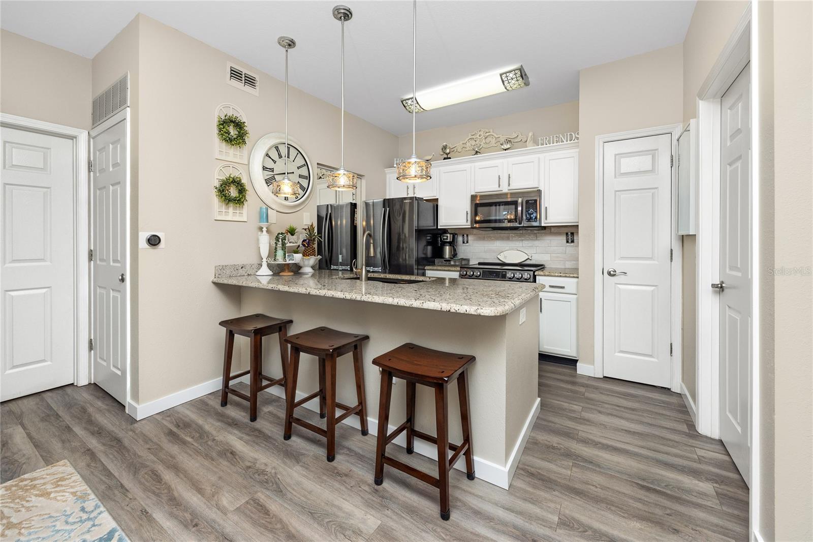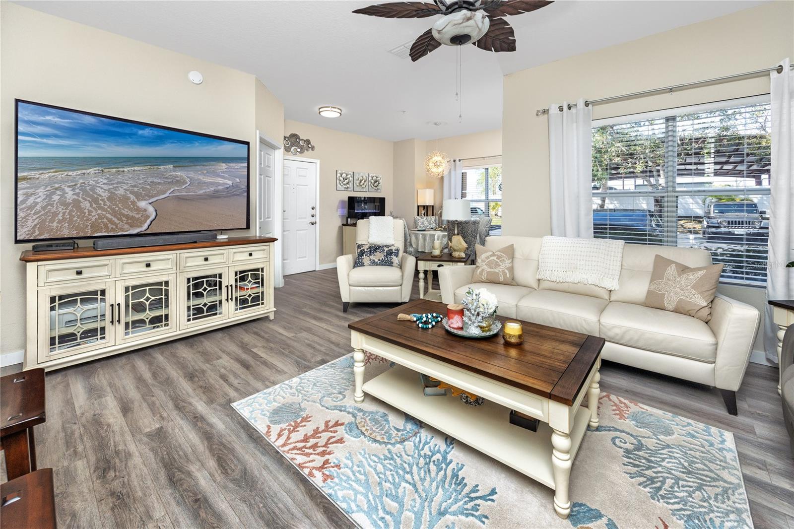 Your Dream Beach Getaway Awaits at Beachway Condominiums! Paradise awaits with this stunning FIRST FLOOR condo in this gated community! Enjoy a beautifully updated kitchen featuring a large granite island with breakfast bar, sleek stainless steel appliances, pantry, and a convenient laundry closet. The updated flooring and high ceilings make this split floor plan with 2 bedrooms and 2 bathrooms feel spacious and airy. Retreat to the primary suite with a large walk-in closet and private ensuite bath. Both Bathrooms have new countertops for a modern esthetic look. Relax on the screened-in porch (with glass doors), the perfect spot for morning coffee or evening cocktails! Plus, a large storage unit is conveniently located nearby. Recent updates include a gorgeous kitchen, stylish fixtures, and neutral flooring throughout, brand NEW HVAC and Hot Water Tank. Furnishings are negotiable. Located on the quiet western side of the community, you're just a short stroll from the heated saltwater pool and resort-style amenities. Beachway Condominiums offers so many fantastic perks: a heated saltwater pool, a well-equipped gym, outdoor grills, tennis/pickleball, shuffleboard, and EV charging stations! The gated community provides privacy and security, ideal for full-time residents, second-home buyers. Enjoy the best of Florida living! You're close to top-rated Gulf beaches, shopping, dining, parks, dog parks, and the scenic Pinellas Trail. Low HOA fees and a pet-friendly policy (2 pets up to 25 lbs each) make this slice of paradise even more appealing. Garage is available for purchase separately. This Community is APPROVED for VA Financing!
