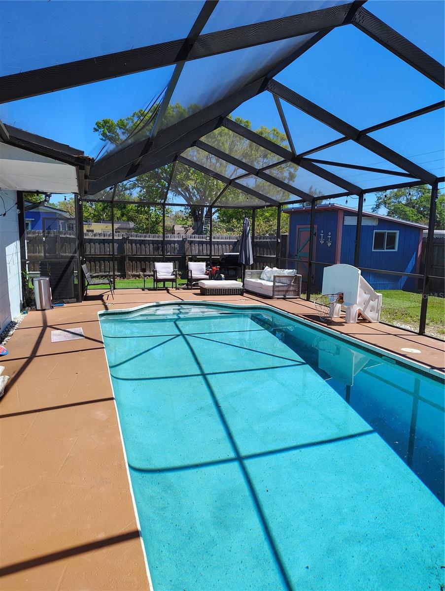 Dream home in Seminole, Florida! This beautiful 3-bedroom, 1 bathroom home has everything to live Florida lifestyle. Open floorplan along with spacious living room, features tile flooring, is perfect for entertaining guests or relaxing with family. The remodeled kitchen includes granite countertops, a pantry and is adjacent to the utility room which provides additional storage as well as the washer and dryer. Newer appliances. The three bedrooms are all generously sized and ceiling fans. The remodeled bathroom includes a walk-in shower with beautiful tile work. Once you go through the French Doors you will discover enclosed pool (which has been resurfaced). Hosting pool parties is very easy with the “tiki-style” shed, perfect for mixing up those afternoon cocktails. The backyard also includes a utility shed for all your additional storage. This home is fully fenced, offering privacy and security for you and your family, as well as additional parking for the RV, boat or other toys! Roof 2023 (with hurricane straps for homeowner's insurance discount, etc.) and newer A/C and ducts, ensuring that you stay comfortable year-round without worrying about costly repairs. Located in the heart of Seminole, this home is just minutes away from shopping, dining, entertainment and those spectacular Florida beaches! SELLER CONCESSION!!! FINANCING AVAILABLE (TEMPORARY OR PERMANENT BUYDOWN!!! OR SELLER CONCESSIONS!!)!!! PRICE REDUCED. Don't hesitate to schedule your showing.