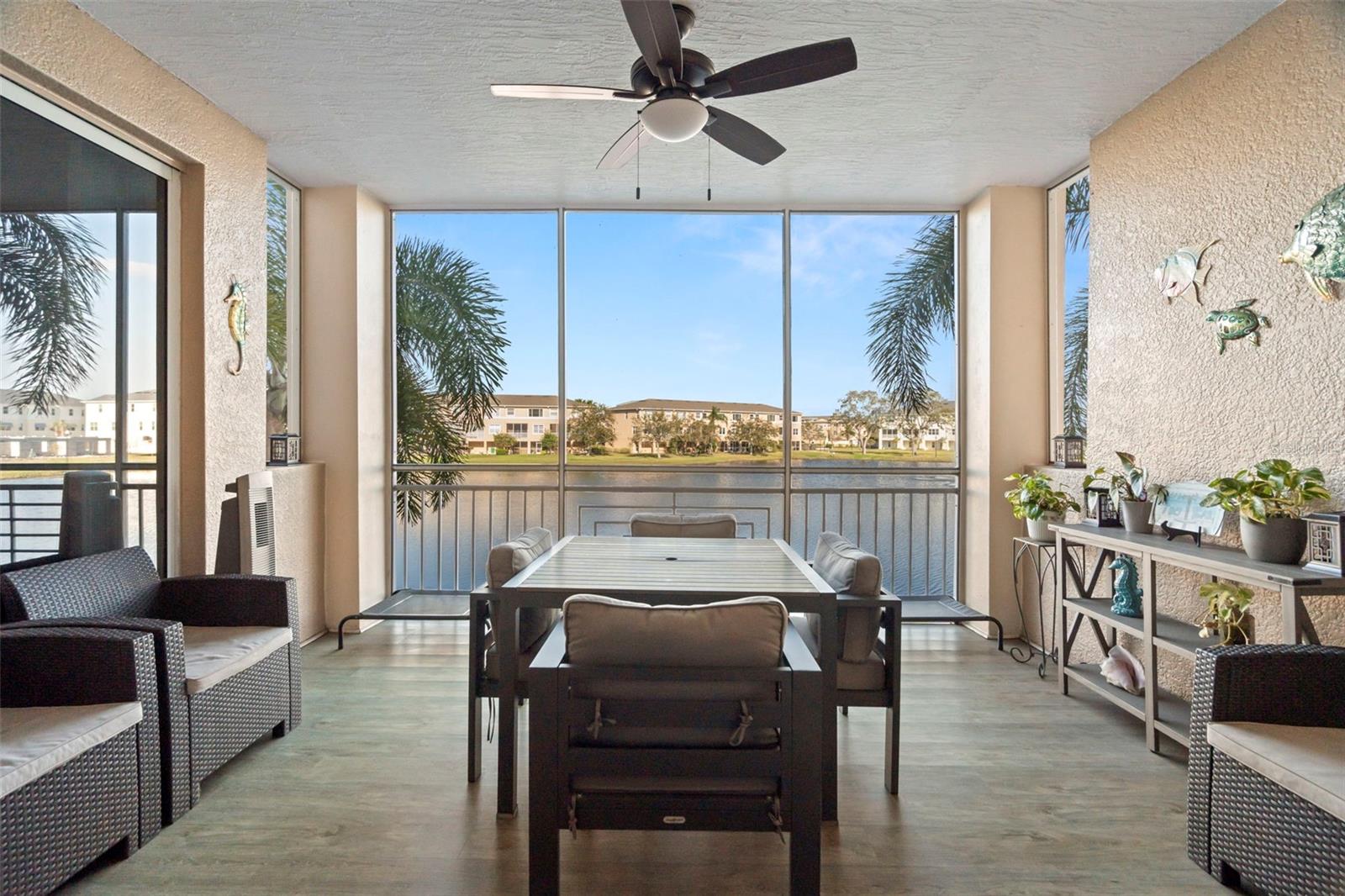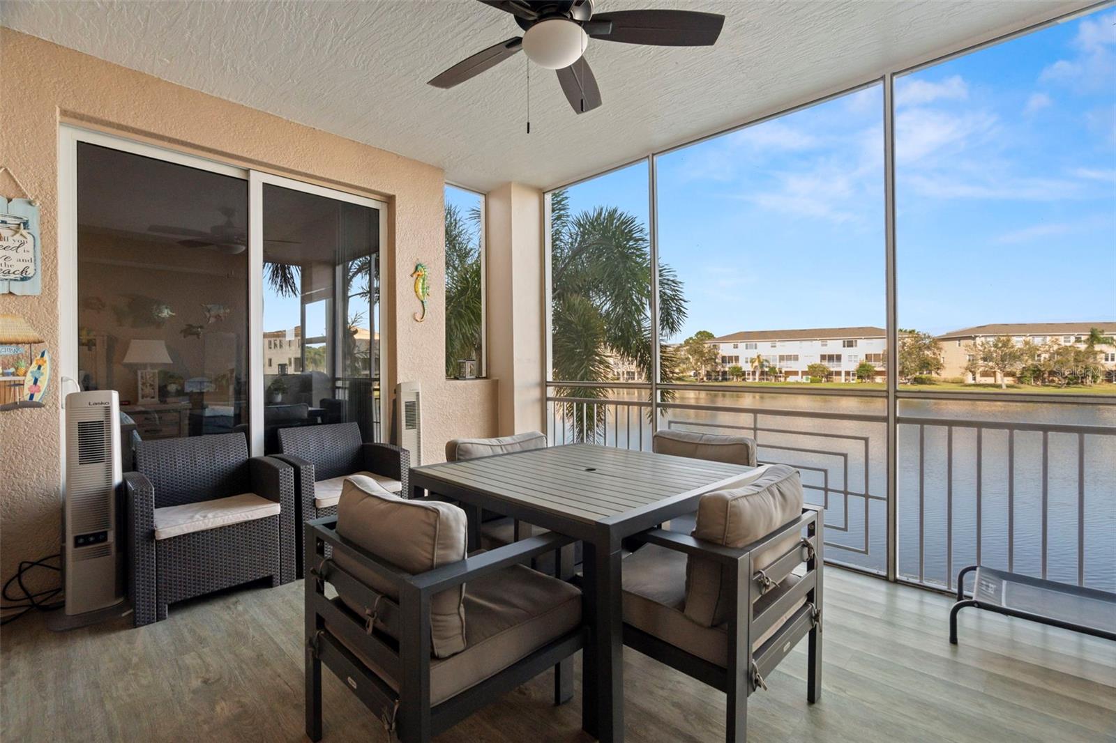 Beautiful move-in ready Seminole Isle Condominium with open lake view, functional and flexible floor plans allow for a 3rd bedroom or office study. The great room leads to a large covered and enclosed balcony, master bedroom has separate access to the balcony to relax on cool evenings. Seminole Isle Condominium is a gated community that offers a luxurious Southwest Florida lifestyle, with a resort-style pool, tennis/pickleball courts, fitness center and clubhouse. There are also two screened in pavilions available adjacent to the bayou for use. Community dock for fishing, also with kayak launch. Dual walk-in closets and dual vanities with granite countertops in the master bath. Newly upgraded shower in second bath. Conveniently located across from Seminole Park, and within minutes to the beach, shopping, schools and hospital.All appliances replaced in 2021, HVAC replaced in 2022, hot water heater replaced in 2024 with transferrable service warranty.