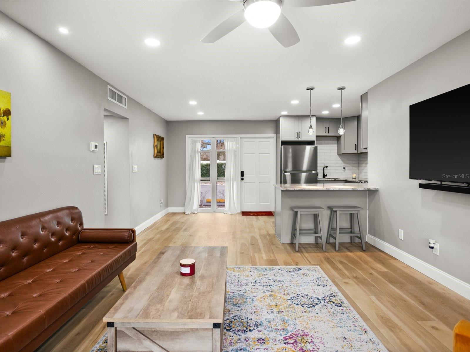 Welcome to this luxurious, 2 bedroom, 1 bathroom bottom floor condo, offering a comfortable living space of 880 square feet. With exquisite construction and the finest finishes, this condo guarantees a classy and sophisticated living experience. As you step inside, you'll immediately notice the attention to detail, from the soft shut cabinets and drawers to the tankless water heater for maximum convenience. The master bedroom features his and her's custom closets, ensuring ample storage space for your belongings. The entire unit is adorned with energy-efficient L.E.D lighting, providing a bright and eco-friendly ambiance throughout. Safety and peace of mind are key in this condo, as the windows are equipped with PGT hurricane impact glass, ensuring not only energy efficiency but also protection during severe weather conditions. Additionally, new screens have been installed on the outside porch, allowing you to enjoy the fresh air while keeping insects at bay. Indulge in the ultimate relaxation experience with the bathroom's Bluetooth speakers, allowing you to enjoy your favorite tunes while pampering yourself in this beautifully upgraded space. The bathroom itself boasts stunning design elements and modern fixtures, creating a tranquil oasis within your home. This rental package includes all entertainment amenities, complete with sound bars and subwoofers, guaranteeing an immersive audio experience. The acoustics of this condo are akin to those of a theater, providing an unparalleled entertainment atmosphere. For style and functionality, plantation shutters have been ordered and are set to be installed within the next three weeks, further enhancing the elegance of this stunning condo. Don't miss the opportunity to live in luxury and comfort in this furnished condo. With its top-notch features, remarkable finishes, and convenient location situated in between 2 championship golf courses, swimming, tennis, pickleball it is the perfect place to call home.