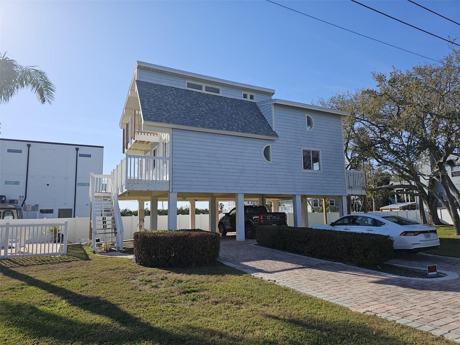 Nestled on a desirable corner lot in The Narrows neighborhood, this 3-bedroom, 2-bathroom home offers a fantastic opportunity to complete the renovations and make it your own. The charming exterior features durable Hardy Board siding, while inside, the thoughtfully designed layout provides both comfort and functionality. The kitchen boasts beautiful wood cabinets, quartz countertops, and ample storage. Adjacent to the kitchen, a cozy family room sits next to a full bathroom on the main floor, with a bonus living room offering additional space for relaxation or entertaining. Upstairs, all three bedrooms provide a private retreat. The spacious primary bedroom features a balcony overlooking the sparkling pool—perfect for morning coffee or unwinding in the evening. The interior laundry room adds convenience, while modern features such as an EV charger and a water softener enhance everyday living. AC Unit , electrical Panel 200 amp, Pool Panel all 2023. White Vinyl fence installed 2024. All inter walls painted. Water heater and roof 2022.