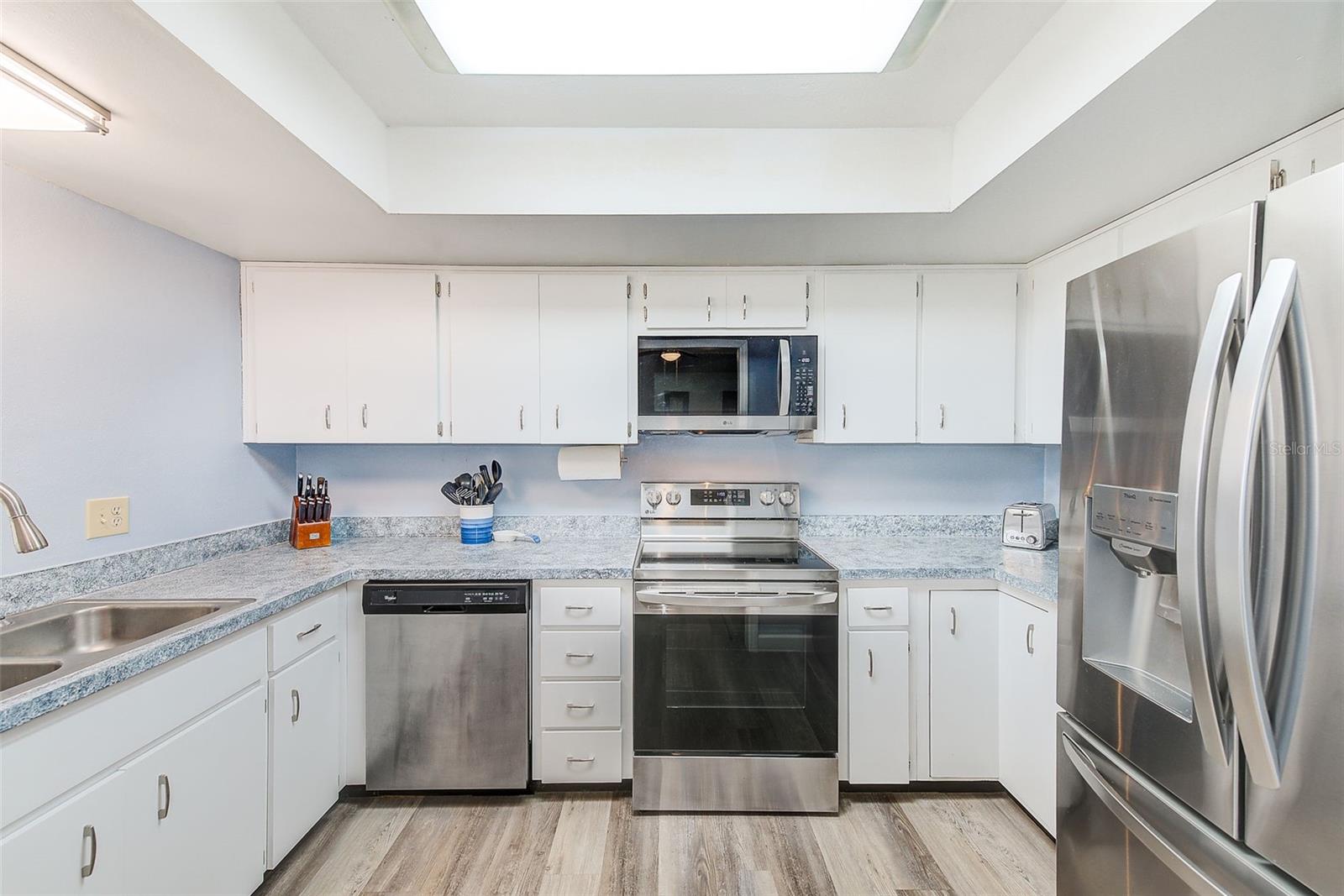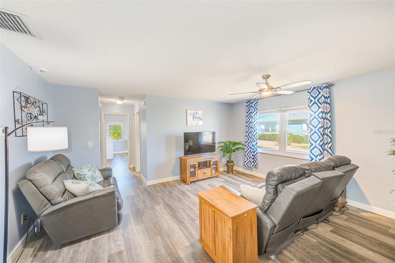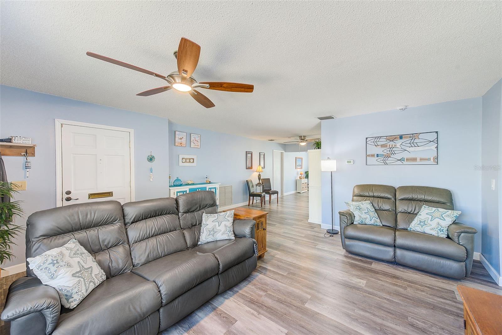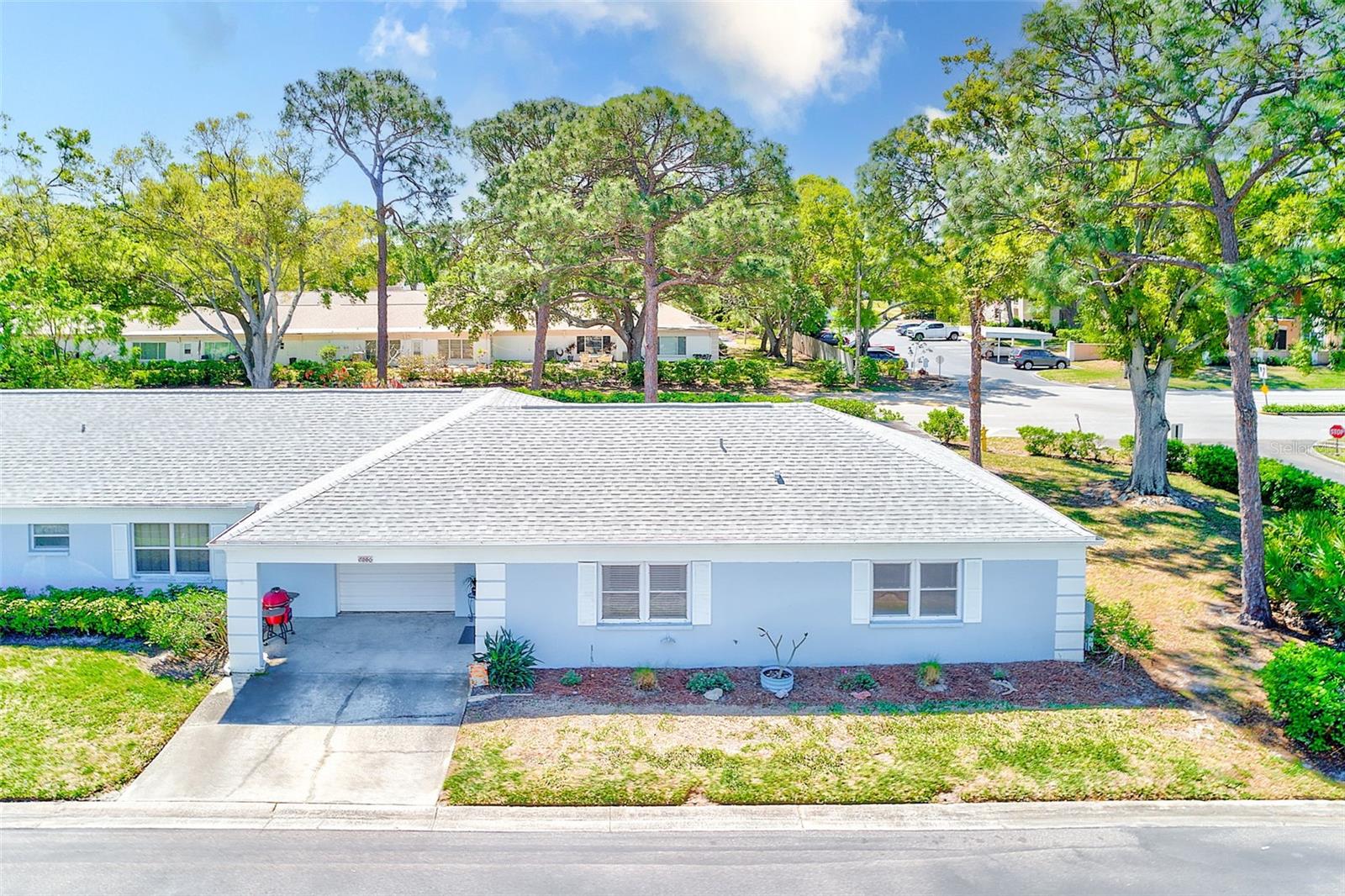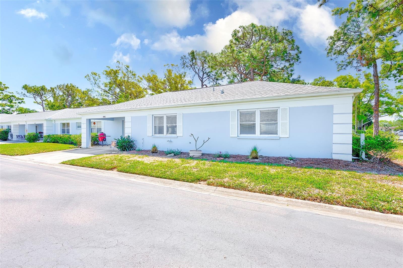 One or more photo(s) has been virtually staged. Largest 3 bedroom available in desirable Chateaux de Bardmoor. This is an end unit with almost 1800 square feet and an oversized one car garage. Enjoy the 55+ lifestyle with the heated pool, clubhouse, shuffleboard, billiards, and lots of activities. This corner lot offers a large yard. Newer luxury vinyl flooring has been installed throughout. Range, refrigerator and water heater are 2 years new and the microwave is new in 2025. Windows have been replaced with double paned windows, and window blinds have all been replaced. All interior walls have been painted within the last 2 years. Large primary bedroom and an en-suite bath with a separate vanity area. Blocks from public Bardmoor Golf Course and Country Club and also the Bayou Country Club. Convenient to the beaches, restaurants, shopping and approximately 25 minutes to the airports. Brentwood is fully funded with reserves. This community is also PET FRIENDLY. Also, the roof is only a few years old and that is covered by the association. Come and enjoy this great lifestyle.