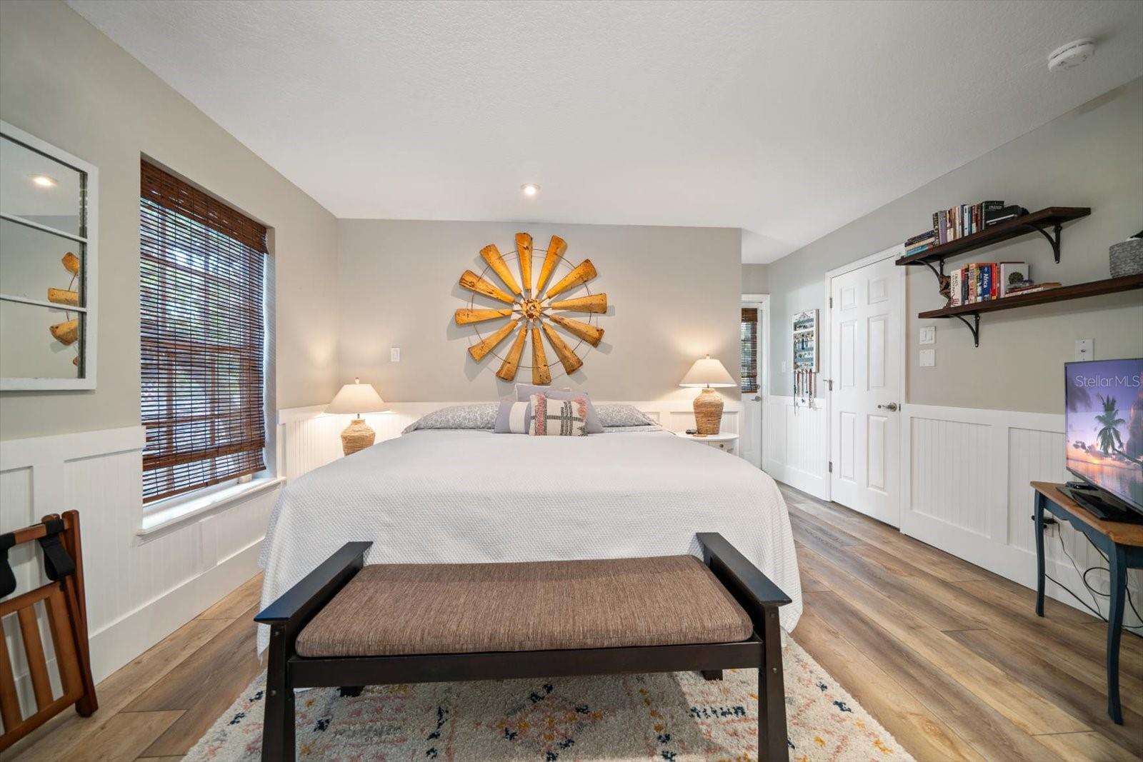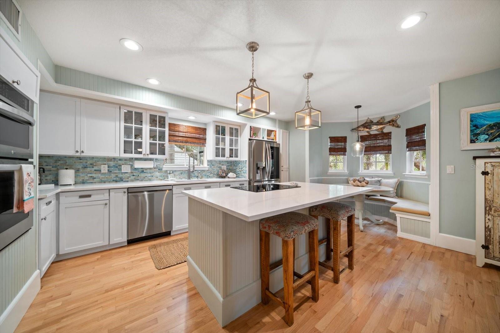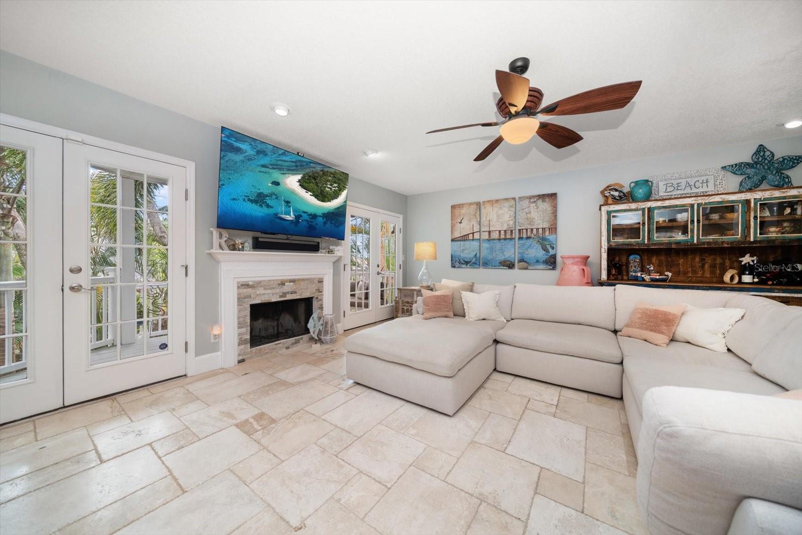 CAPE COD CHARM MEETS KEY WEST COASTAL VIBES in Harbor View, one of the most sought after neighborhoods in Seminole! This 4-bedroom plus den, 3.5-bath BEAUTY is just a quick walk to the SUGARY SANDS of Indian Shores Beach and blends elegant charm with beachy ease. Let's start with curb appeal: the PAVER DRIVEWAY (2023), tropical landscaping, and the Key West-style balconies set the tone immediately. You'll know this one is special the second you pull up. Step inside the bright & welcoming foyer leading to a versatile first-floor suite—perfect for in-laws, guests, or even your own private office with its own full bath and backyard access. But the REAL MAGIC begins upstairs, where soaring ceilings, an abundance of natural light, 8-inch baseboards set the tone for elevated living. The open-concept kitchen is gleaming with quartz countertops, a sleek cooktop island, newly refinished hardwoods (2024), newer stainless steel appliances (2023-2024), and a CHARMING breakfast nook that practically begs you to slow down and savor the morning. The formal dining room is built for gatherings, while the oversized family room—complete with a fireplace—is the heart of the home. And just off that, a COZY den that’s ideal for movie marathons or a tucked-away work-from-home zone. Up another level, you find your true retreat—the PRIMARY SUITE. A generously sized space with a vaulted ceiling, this haven features a spa-inspired bath with a large tile shower, freestanding tub, and double vanity, along with your own PRIVATE balcony access, and a widow’s peak with serene treetop views. Also on this floor, you have two other spacious bedrooms with vaulted ceilings and luxury vinyl plank flooring, a laundry room, and full bath rounding out the space. Out back, it just keeps getting better. Chicago brick walkways guide you to your private retreat, complete with a firepit and an outdoor shower perfect for washing off after a day at the beach. And all the major updates are already handled: roof (2020), flat roof (2024), water heater (2023), and a water softener & filtration system (2024). Bonus: the oversized garage has room for cars, carts, and is equipped with overhead storage racks. This home isn’t just move-in ready—it’s live-your-best-life ready. Come feel the GULF breezes from one of the verandas, swing open the French doors, and start your next chapter in paradise.
