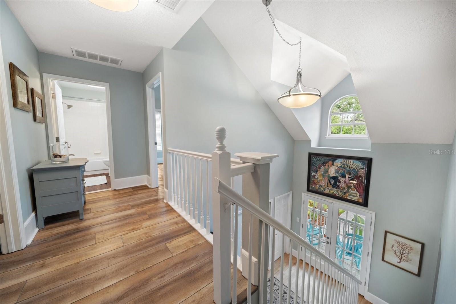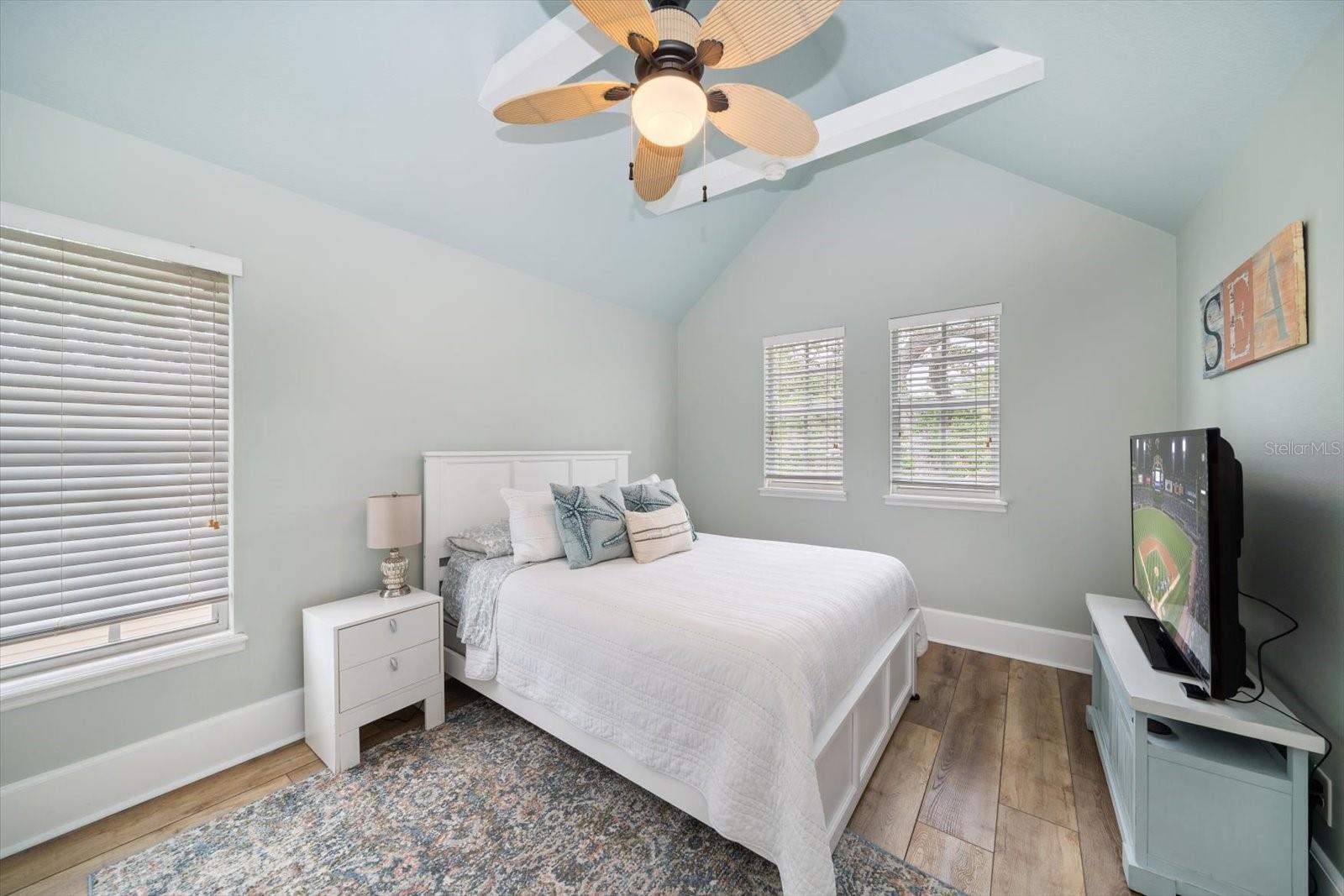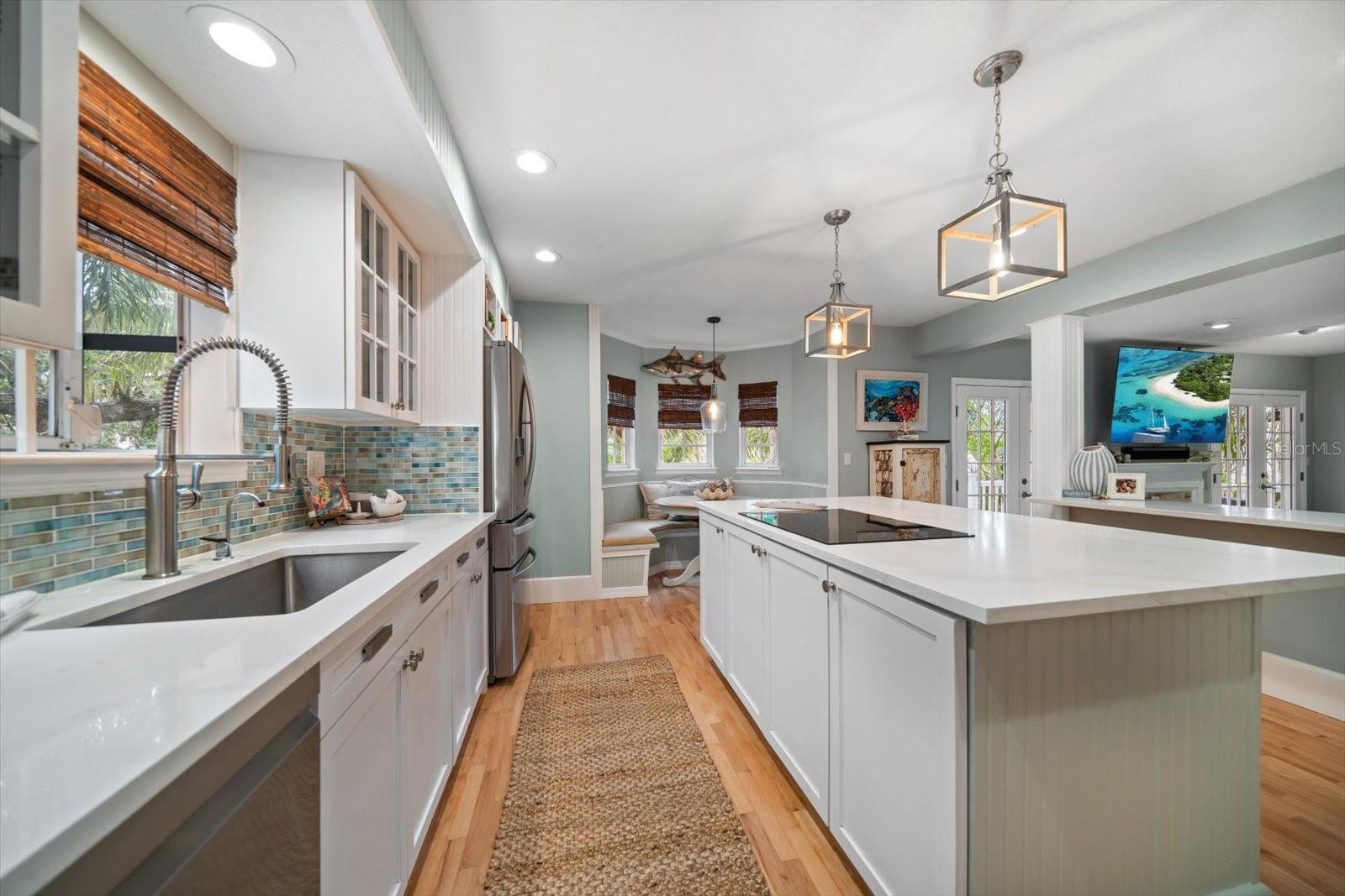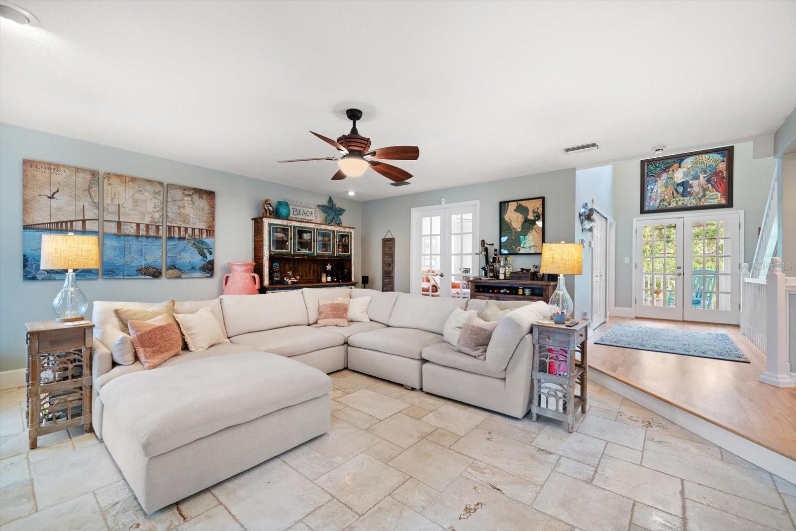 CAPE COD CHARM MEETS KEY WEST COASTAL VIBES in Harbor View, one of the most sought after neighborhoods in Seminole! This 4-bedroom plus den, 3.5-bath BEAUTY is just a quick walk to the SUGARY SANDS of Indian Shores Beach and blends elegant charm with beachy ease. Let's start with curb appeal: the PAVER DRIVEWAY (2023), tropical landscaping, and the Key West-style balconies set the tone immediately. You'll know this one is special the second you pull up. Step inside the bright & welcoming foyer leading to a versatile first-floor suite—perfect for in-laws, guests, or even your own private office with its own full bath and backyard access. But the REAL MAGIC begins upstairs, where soaring ceilings, an abundance of natural light, 8-inch baseboards set the tone for elevated living. The open-concept kitchen is gleaming with quartz countertops, a sleek cooktop island, newly refinished hardwoods (2024), newer stainless steel appliances (2023-2024), and a CHARMING breakfast nook that practically begs you to slow down and savor the morning. The formal dining room is built for gatherings, while the oversized family room—complete with a fireplace—is the heart of the home. And just off that, a COZY den that’s ideal for movie marathons or a tucked-away work-from-home zone. Up another level, you find your true retreat—the PRIMARY SUITE. A generously sized space with a vaulted ceiling, this haven features a spa-inspired bath with a large tile shower, freestanding tub, and double vanity, along with your own PRIVATE balcony access, and a widow’s peak with serene treetop views. Also on this floor, you have two other spacious bedrooms with vaulted ceilings and luxury vinyl plank flooring, a laundry room, and full bath rounding out the space. Out back, it just keeps getting better. Chicago brick walkways guide you to your private retreat, complete with a firepit and an outdoor shower perfect for washing off after a day at the beach. And all the major updates are already handled: roof (2020), flat roof (2024), water heater (2023), and a water softener & filtration system (2024). Bonus: the oversized garage has room for cars, carts, and is equipped with overhead storage racks. This home isn’t just move-in ready—it’s live-your-best-life ready. Come feel the GULF breezes from one of the verandas, swing open the French doors, and start your next chapter in paradise.