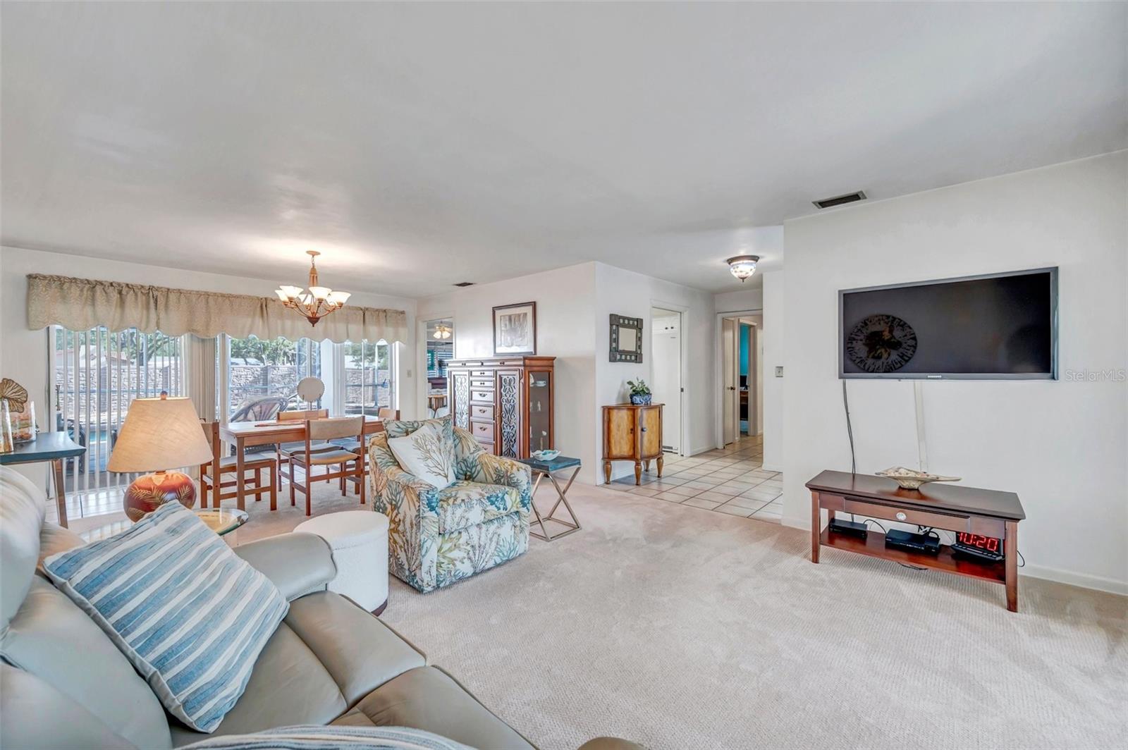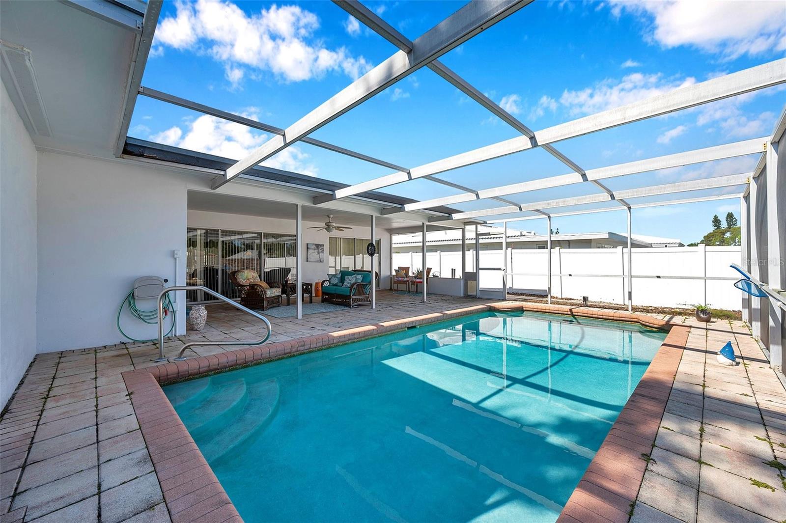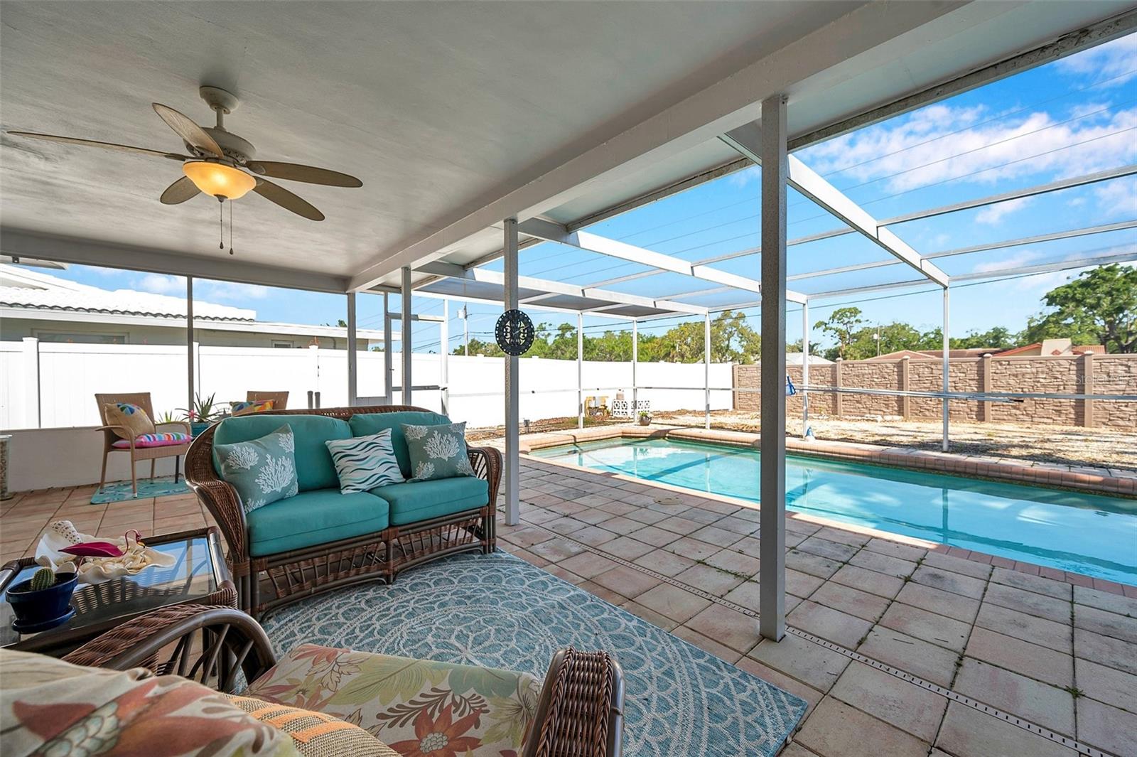 WELCOME HOME! Imperial Point, two bedroom, two bathroom home located in a desireable Seminole neighborhood! Homes like this do not come on the market often. Upon entry, you will enter the spacious living room offering a beautiful picture window into the dining area overlooking the pool. Kitchen and dining room combo that opens to the pool patio, great for entertaining. Split floor plan home offering a large primary bedroom, walk-in closet, private shower ensuite with plenty of privacy with sliders to the pool for private access. The second bedroom offers privacy on the opposite side of the home with an adjacent tub/shower combo bathroom. Bonus Florida room in the back of the home, great for an additional living space could be converted to a third bedroom or office area. Beautifully fenced, maintenance-free stoned landscaped backyard, screened-in pool enclosure with paved patio, and no rear neighbors. A double-car oversized garage offers plenty of room for families to make memories to last a lifetime. Live the Florida lifestyle close to beaches, excellent schools, dining, parks, and more. Imperial Point HOA offers exceptional amenities including large heated pool overlooking the Intracoastal, a boat ramp, a fitness center, a clubhouse with billiards, shuffleboard, tennis and pickleball courts, and a playground. The clubhouse features a fully equipped kitchen, a game room, and entertainment areas. Updates:*Exterior Paint 2022 *Electrical Panel 2021 *AC 2017 *Garage Door & Opener 2021 *Carpet 2023 * Refrigerator 2024*Microwave, Dishwasher & Garbage Disposal 2023 *Tile Roof 1998 *Flat Roof 2016 *Pool Pump 2019 *NO Flood or Evacuation Zone