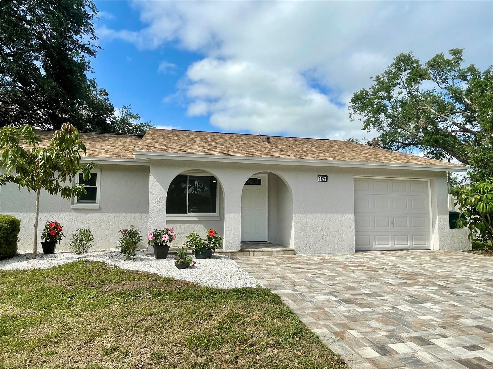 Welcome to 11241 Temple Ct, Seminole, FL – a stunning, move-in ready 4-bedroom, 2-bathroom home situated on a quiet cul-de-sac corner lot in a non-flood zone, just 5 miles from the world-famous Gulf beaches, untouched by hurricanes! This beautifully renovated home features modern finishes throughout, including: Gourmet kitchen with brand-new cabinets, quartz countertops, and stainless steel appliances. Updated bathrooms with stylish vanities, new showers, and contemporary fixtures. New tile and vinyl plank flooring, baseboards, modern lighting, new front and interior doors. Fresh interior and exterior paint for a crisp, clean look. New paved driveway and front porch, Screened-in rear patio with new insulated roof and cozy fire pit in the backyard for entertaining — perfect for year-round outdoor enjoyment! New vinyl privacy fence with two gates. Split-bedroom layout for privacy and comfortable living. PEX plumbing, new electrical panel, and roof replaced in 2021 for added peace of mind! This home has no HOA and is zoned for short-term rentals, making it an excellent opportunity for Airbnb income. Located directly across from Seminole Library, the Recreation Center, and St. Petersburg College, and just minutes to city center shopping, restaurants, parks, and soccer fields — plus incredibly close proximity to the beach makes this location truly unbeatable. Bonus: Spacious backyard with plenty of room for a boat, RV, or even an above-ground pool — a rare setup that adds even more value! Schedule your private showing today — a fully renovated gem in one of Pinellas county’s most sought-after areas!