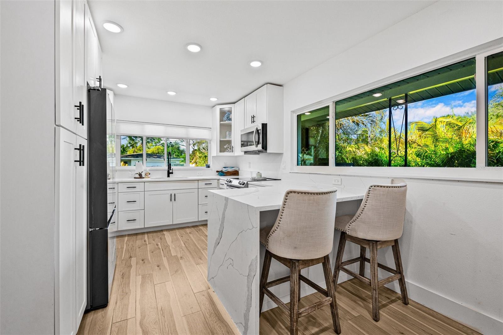 Welcome to your dream home in beautiful Seminole, Florida, where modern elegance meets ultimate convenience! This stunning 5-bedroom, 3-bathroom residence has been masterfully updated to offer luxurious living in a prime location. Step inside and be captivated by the open concept design that seamlessly connects the living, dining, and kitchen areas. The newly remodeled kitchen is a chef's delight, featuring stainless steel appliances, gleaming quartz countertops, and brand-new cabinets that provide ample storage space. The bathrooms have received a full remodel, boasting chic vanities and contemporary tile work that evoke a spa-like atmosphere. Every corner of this home reflects quality craftsmanship and impeccable taste. This home is designed for peace of mind and comfort with new hurricane impact windows, a new roof installed in 2023, and a new HVAC system with new duct work and new electrical box. The exterior is equally impressive, showcasing a screened-in sitting porch perfect for morning coffees or evening relaxation. Entertain guests in style around newly resurfaced pool and deck, complete with a new pool heater and a vibrant tiki bar. The backyard is a private oasis, with all-new landscaping, turf, and a drip irrigation and mister system to keep your plants thriving. For added security, a Ring camera system and strategically placed floodlights ensure you feel safe and sound. Location is everything, and this home delivers! Enjoy the convenience of being just a short drive away from Seminole City Center, Tyrone Mall, and Largo Mall. Beach lovers will appreciate the proximity to Madeira Beach and Indian Shores Beach, while travelers will find easy access to St. Pete/Clearwater Airport and Tampa International Airport. Outdoor enthusiasts will love the 1-minute walk to Blossom Lake Park, offering access to the scenic Pinellas Trail. Best of all, this property is situated in a non-flood zone, providing extra peace of mind. This home is more than just a place to live—it's a lifestyle. Don't miss your chance to own this exquisite property that perfectly balances style, comfort, and convenience. Schedule your private tour today and prepare to fall in love!