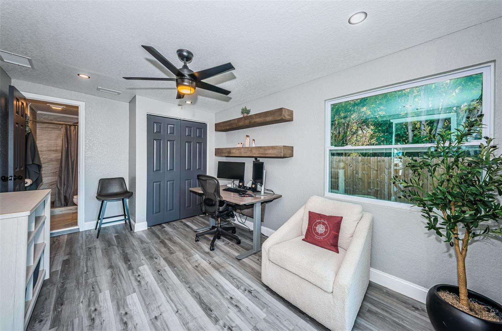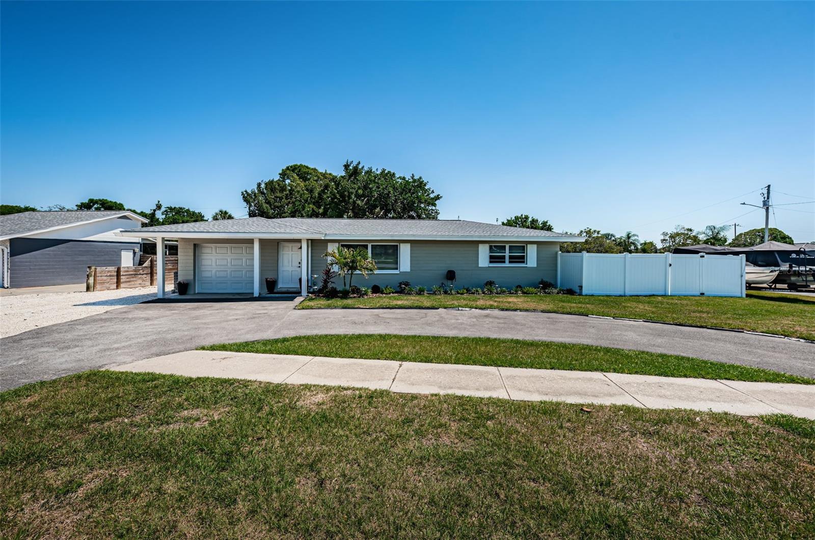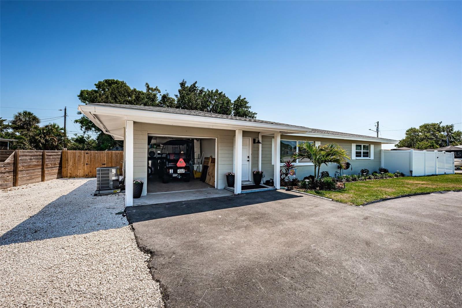 Turn key Airbnb or Investment Opportunity! Ready for immediate occupancy and operation! Welcome to this beautifully updated block construction home featuring 2 bedrooms, 2 full baths, and a versatile flex space—perfect for a home office, den, or easily converted into a third bedroom with it's own ensuite bathroom! With 1,237 sq. ft. of thoughtfully designed living space, this home blends modern upgrades with cozy charm. Extensively remodeled in 2023, highlights include a brand-new roof, A/C system, water heater and newer windows throughout most of the home, ensuring worry-free living for years to come. The stylish kitchen boasts stainless steel appliances, sleek quartz countertops, and soft-close cabinetry—all set against the backdrop of luxury vinyl plank flooring that runs throughout the home for a clean, seamless aesthetic. Situated on a large corner lot in a high and dry, Flood Zone X which means no flood insurance required! The property offers ample parking—including space for boats or RVs—and a convenient half-circle driveway. The one-car garage adds even more flexibility. Best of all? You’re just an 8-minute golf cart ride to the beach, making this the ideal spot for enjoying Florida’s coastal lifestyle. Don’t miss this super charming gem—it’s fully furnished turnkey and move-in ready, just waiting for you!