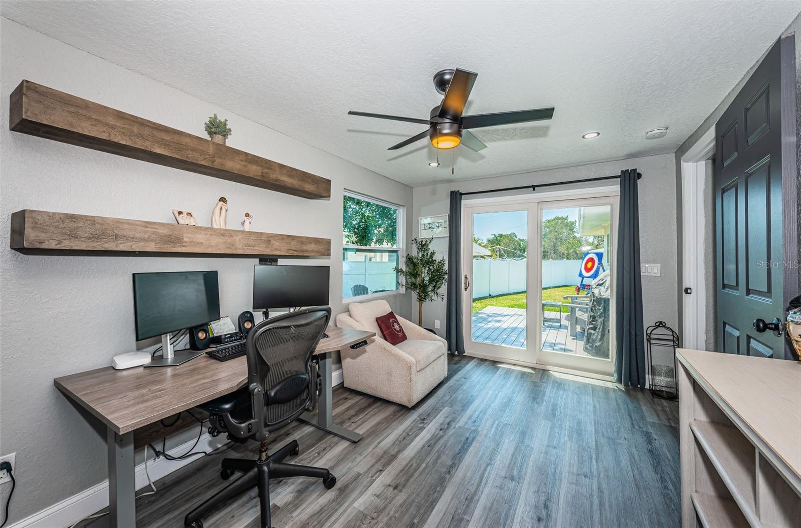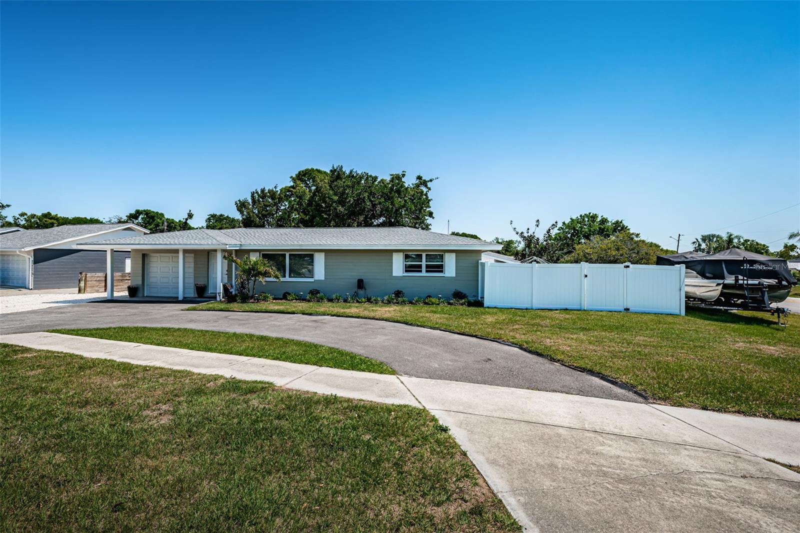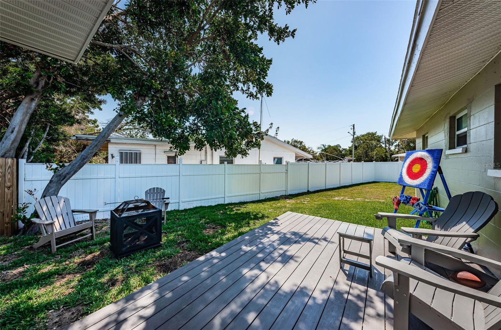 Turn key Airbnb or Investment Opportunity! Ready for immediate occupancy and operation! Welcome to this beautifully updated block construction home featuring 2 bedrooms, 2 full baths, and a versatile flex space—perfect for a home office, den, or easily converted into a third bedroom with it's own ensuite bathroom! With 1,237 sq. ft. of thoughtfully designed living space, this home blends modern upgrades with cozy charm. Extensively remodeled in 2023, highlights include a brand-new roof, A/C system, water heater and newer windows throughout most of the home, ensuring worry-free living for years to come. The stylish kitchen boasts stainless steel appliances, sleek quartz countertops, and soft-close cabinetry—all set against the backdrop of luxury vinyl plank flooring that runs throughout the home for a clean, seamless aesthetic. Situated on a large corner lot in a high and dry, Flood Zone X which means no flood insurance required! The property offers ample parking—including space for boats or RVs—and a convenient half-circle driveway. The one-car garage adds even more flexibility. Best of all? You’re just an 8-minute golf cart ride to the beach, making this the ideal spot for enjoying Florida’s coastal lifestyle. Don’t miss this super charming gem—it’s fully furnished turnkey and move-in ready, just waiting for you!
