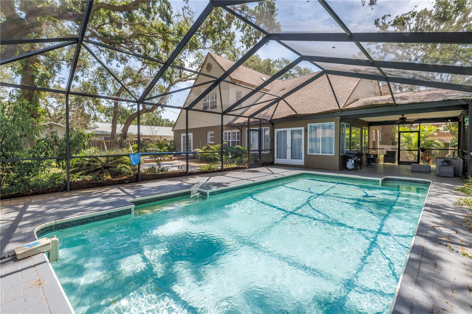 Nestled on a serene, shady street, this exquisite creamy brick home with a charming hipped roof is a true gem for those who love to entertain. Boasting a thoughtfully designed floor plan, the primary bedroom features a luxurious en suite, providing a private retreat just off the beautiful country kitchen. The expansive great room, with its soaring ceilings, seamlessly blends living and dining spaces, enhanced by French doors that open to an oversized lanai and screened porch overlooking the inviting pool deck—perfect for gatherings or relaxing in the sun. Upstairs, two additional bedrooms share a cozy landing, offering comfort and privacy. Ample storage space and a mini workshop tucked in the rafters cater to all your organizational needs. Situated on a generous 13,000+ sq. ft. lot within the highly regarded Seminole school district, this home is just a block away from the scenic Indian Shores drawbridge and the pristine beaches of Gulf Boulevard. This unique offering is perfect for buyers seeking a special place to call home, with the added peace of mind that comes from no flooding or damage during the last hurricane season. Don’t miss the chance to make this exceptional property yours!
