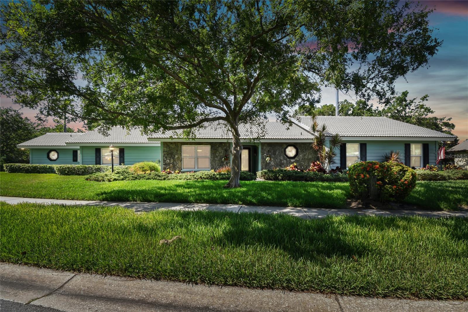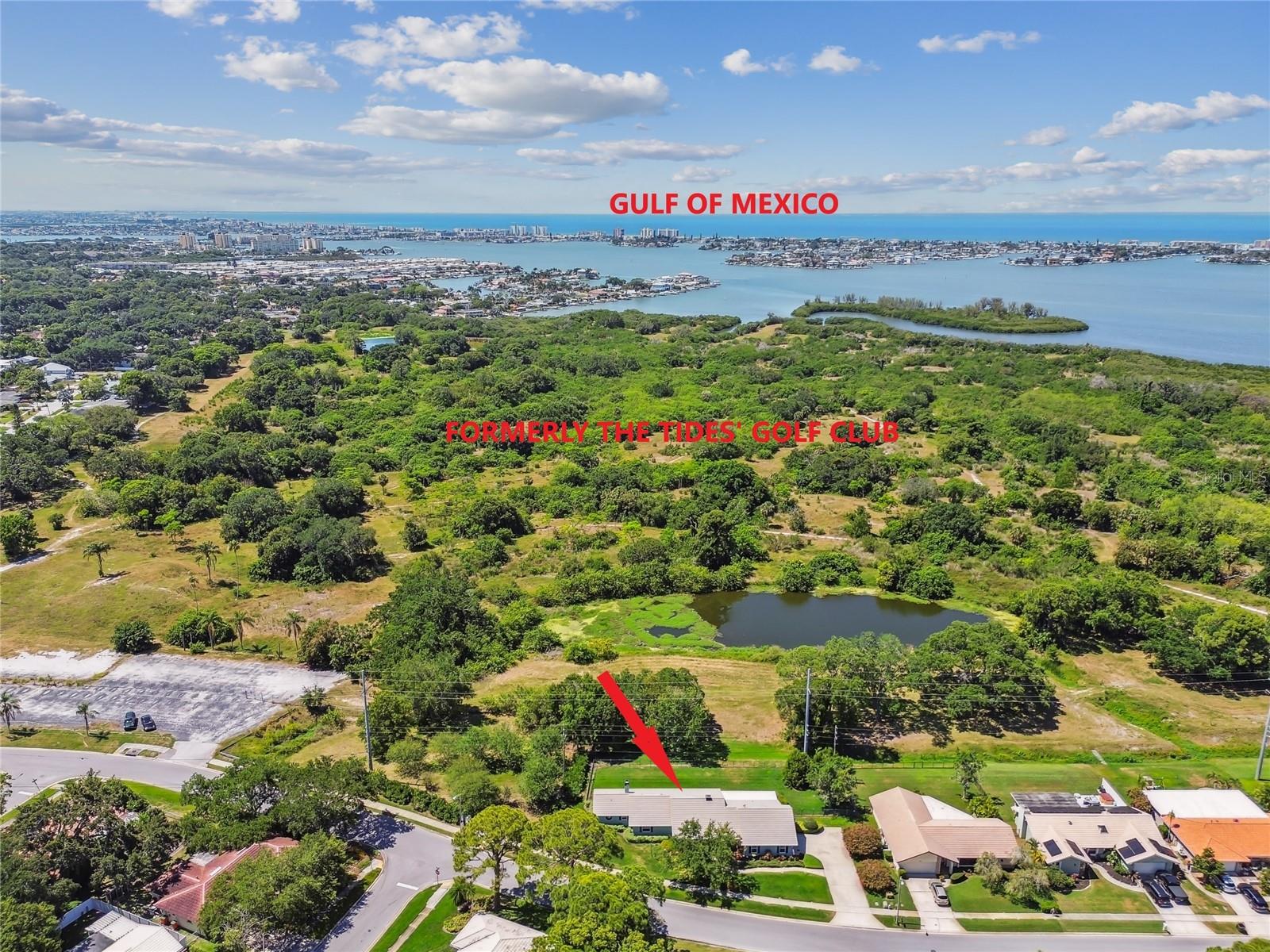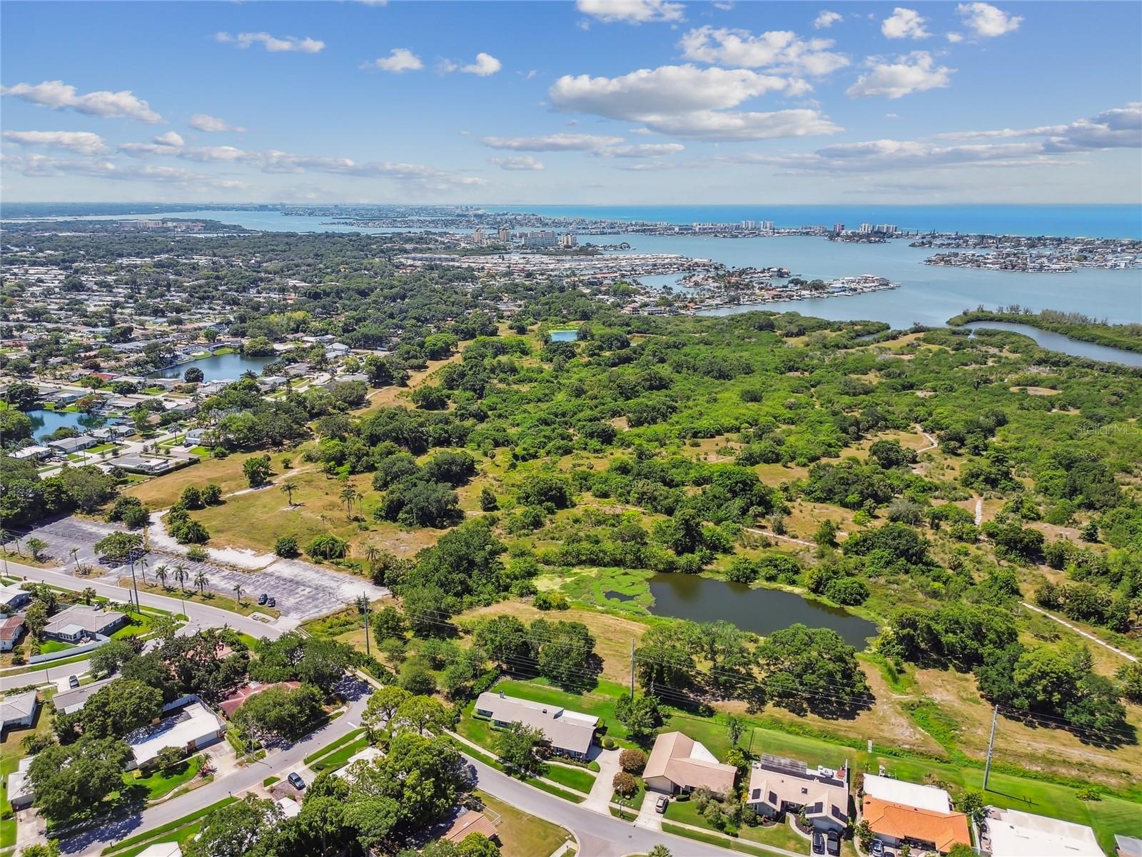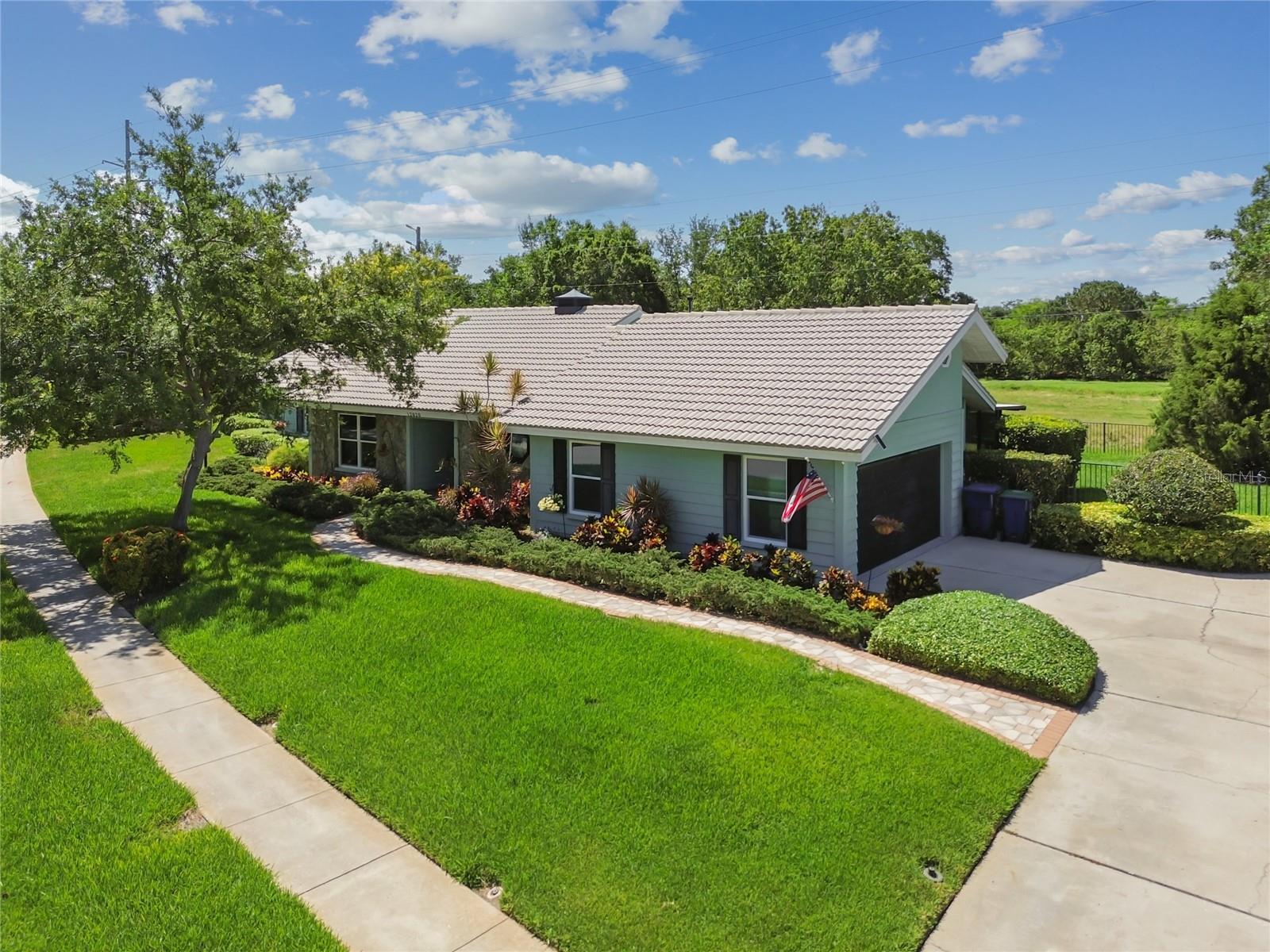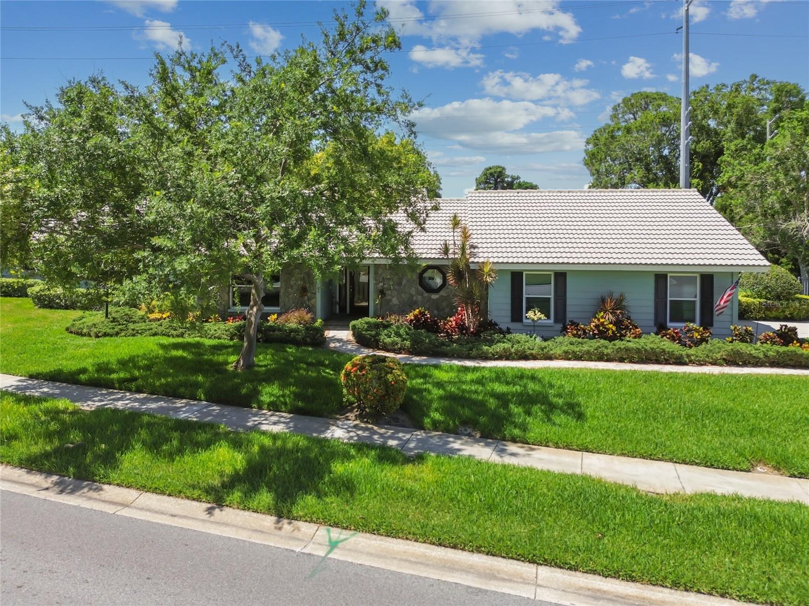 VA assumable loan for Eligible Buyer's...Imagine stepping into a world where modern comfort seamlessly blends with the serenity of nature. This exquisite estate, nestled on over half an acre of meticulously maintained green space, invites you to experience the best of both worlds. As you approach the property, the sheer expanse of land unfolds before you—well over a football field in length. The manicured pathway winds through greenery creating an ambiance akin to strolling through a private park. Trees provide shade. The heart of this home lies in its spacious kitchen—a culinary haven that marries functionality with elegance. Stainless steel appliances gleam under the soft glow of pendant lights, while a natural gas stove promises gourmet cooking experiences. Soft-closing cabinets and drawers add a touch of luxury, and seamless organization. Luxury vinyl tile graces the floors throughout, its warm tones inviting you to explore further. The primary suite beckons—a sanctuary of relaxation. Dual sinks in the en-suite bathroom offer convenience, while a freestanding garden tub awaits: a fit for royalty. Step into the walk-in shower, washing away the cares of the day. Hurricane impact windows envelop the home, providing security and peace of mind. Two stained glass porthole windows (with wood covers) in the second bath and laundry room remain, adding to the home’s charm. A stone fireplace stands ready for chilly winter evenings, or retreat to the screened porch at the rear of the home, where you can marvel at the natural beauty that extends beyond your property. Two natural gas hookups exist, whether you wish to create a cozy fire pit or sizzle up a barbecue feast. The seven-zone irrigation system ensures that your landscaping flourishes year-round. And here’s the best part: despite its idyllic setting, this home sits comfortably above the flood zone, eliminating the need for flood insurance. Yet, within a mere 10-minute drive, the Gulf beaches await, promising sun-kissed days and salt-kissed air. At the end of your block lies the entrance to Boca Ciega Millennial Park—an invitation to explore nature’s wonders. For those who crave adventure, the Pinellas Trail beckons nearby, allowing you to enjoy your oasis in complete privacy. Google cameras do not convey.