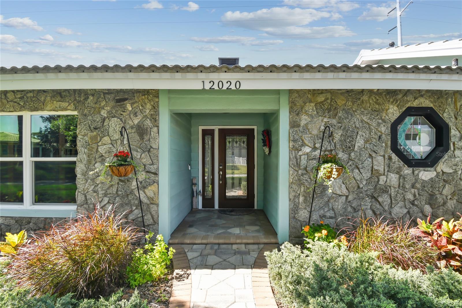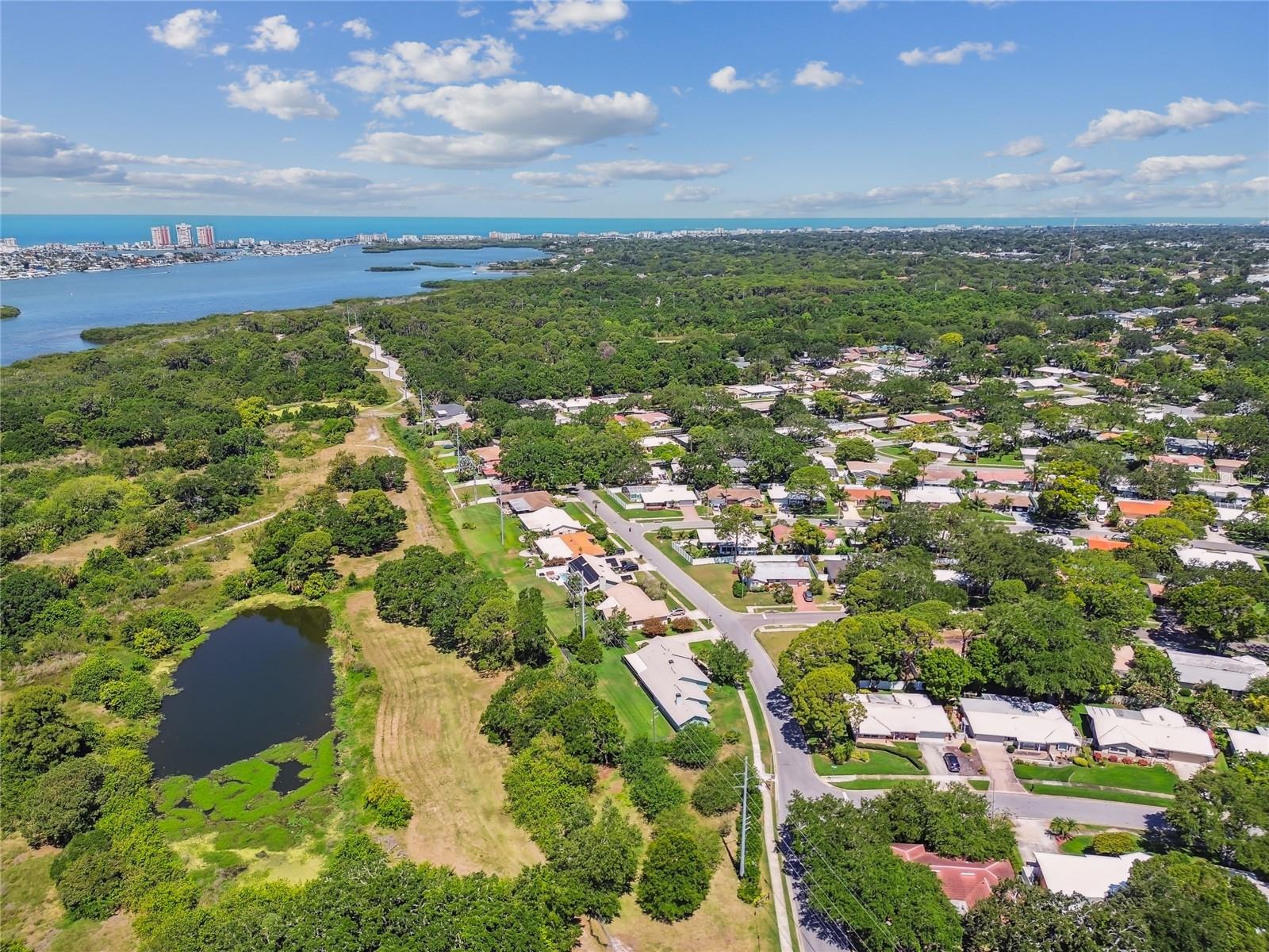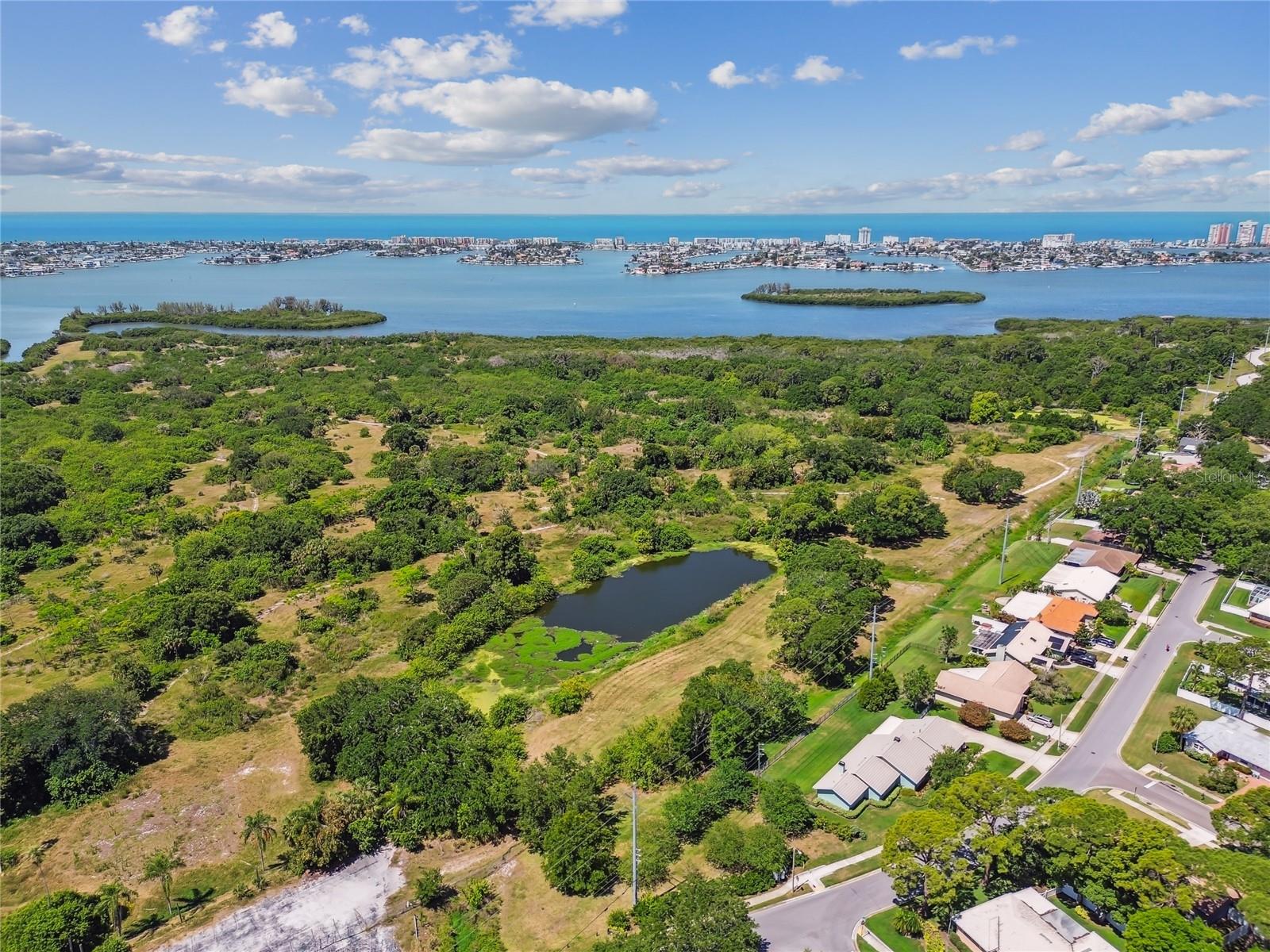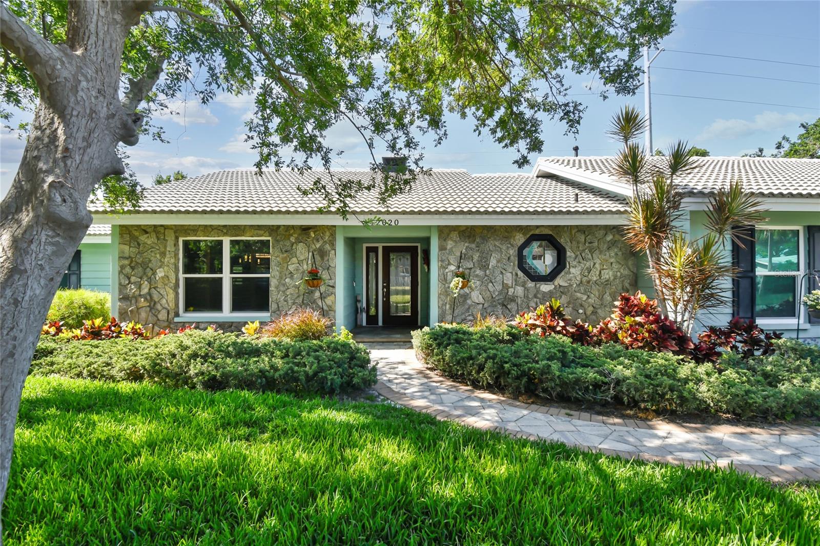 VA assumable loan for Eligible Buyer's...Imagine stepping into a world where modern comfort seamlessly blends with the serenity of nature. This exquisite estate, nestled on over half an acre of meticulously maintained green space, invites you to experience the best of both worlds. As you approach the property, the sheer expanse of land unfolds before you—well over a football field in length. The manicured pathway winds through greenery creating an ambiance akin to strolling through a private park. Trees provide shade. The heart of this home lies in its spacious kitchen—a culinary haven that marries functionality with elegance. Stainless steel appliances gleam under the soft glow of pendant lights, while a natural gas stove promises gourmet cooking experiences. Soft-closing cabinets and drawers add a touch of luxury, and seamless organization. Luxury vinyl tile graces the floors throughout, its warm tones inviting you to explore further. The primary suite beckons—a sanctuary of relaxation. Dual sinks in the en-suite bathroom offer convenience, while a freestanding garden tub awaits: a fit for royalty. Step into the walk-in shower, washing away the cares of the day. Hurricane impact windows envelop the home, providing security and peace of mind. Two stained glass porthole windows (with wood covers) in the second bath and laundry room remain, adding to the home’s charm. A stone fireplace stands ready for chilly winter evenings, or retreat to the screened porch at the rear of the home, where you can marvel at the natural beauty that extends beyond your property. Two natural gas hookups exist, whether you wish to create a cozy fire pit or sizzle up a barbecue feast. The seven-zone irrigation system ensures that your landscaping flourishes year-round. And here’s the best part: despite its idyllic setting, this home sits comfortably above the flood zone, eliminating the need for flood insurance. Yet, within a mere 10-minute drive, the Gulf beaches await, promising sun-kissed days and salt-kissed air. At the end of your block lies the entrance to Boca Ciega Millennial Park—an invitation to explore nature’s wonders. For those who crave adventure, the Pinellas Trail beckons nearby, allowing you to enjoy your oasis in complete privacy. Google cameras do not convey.