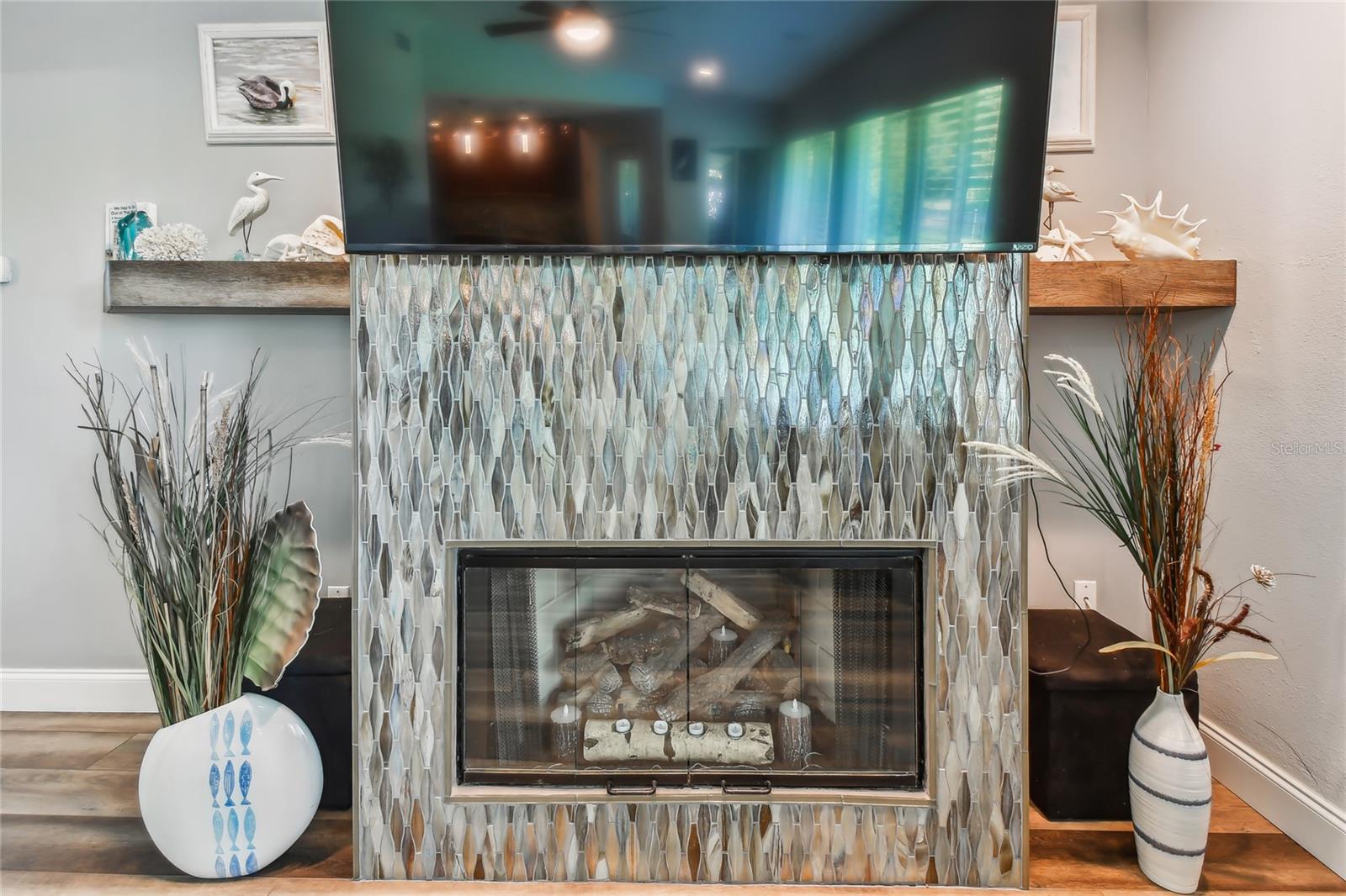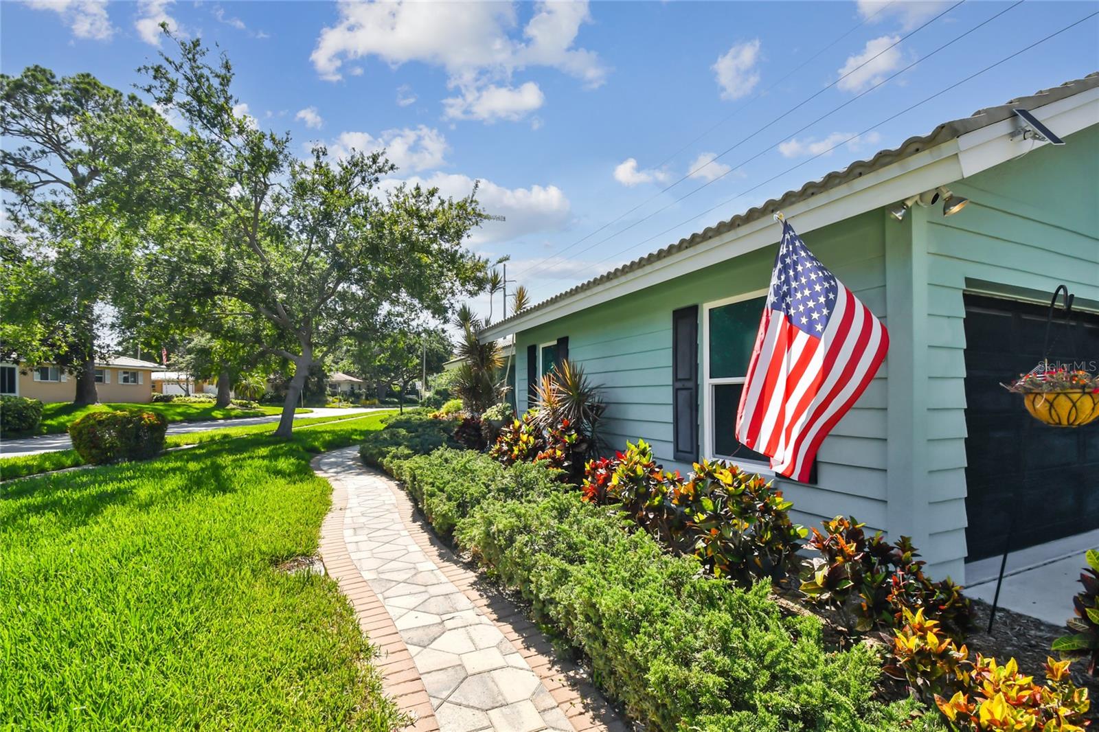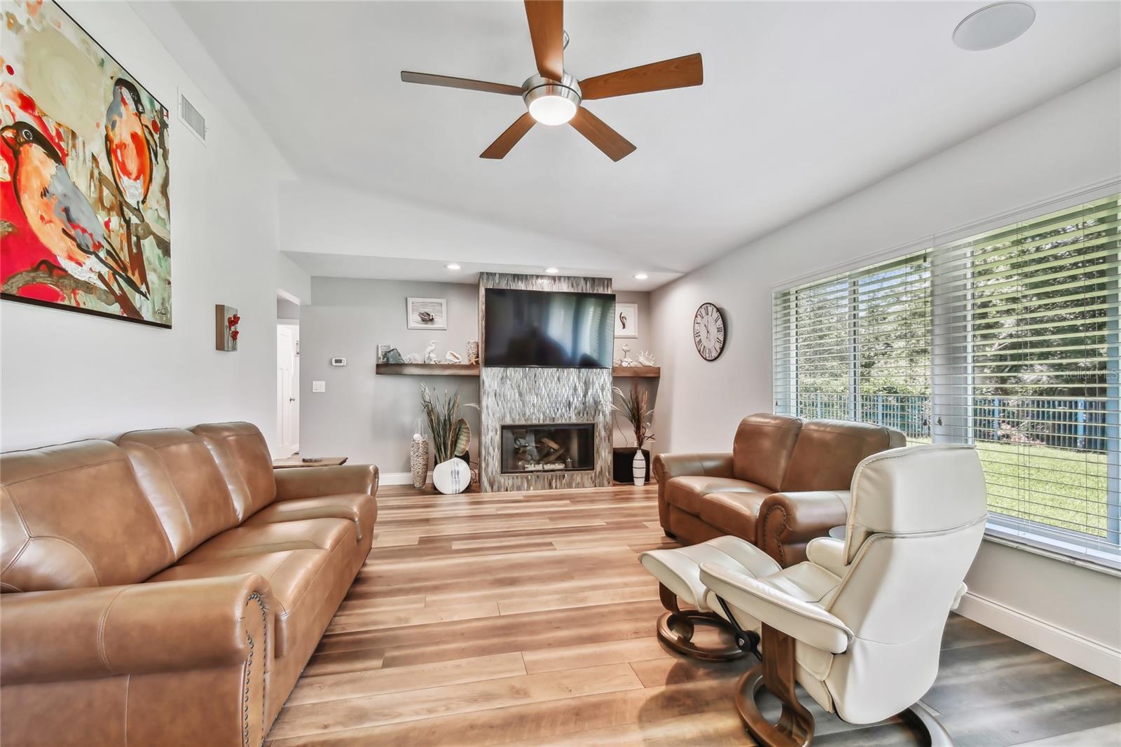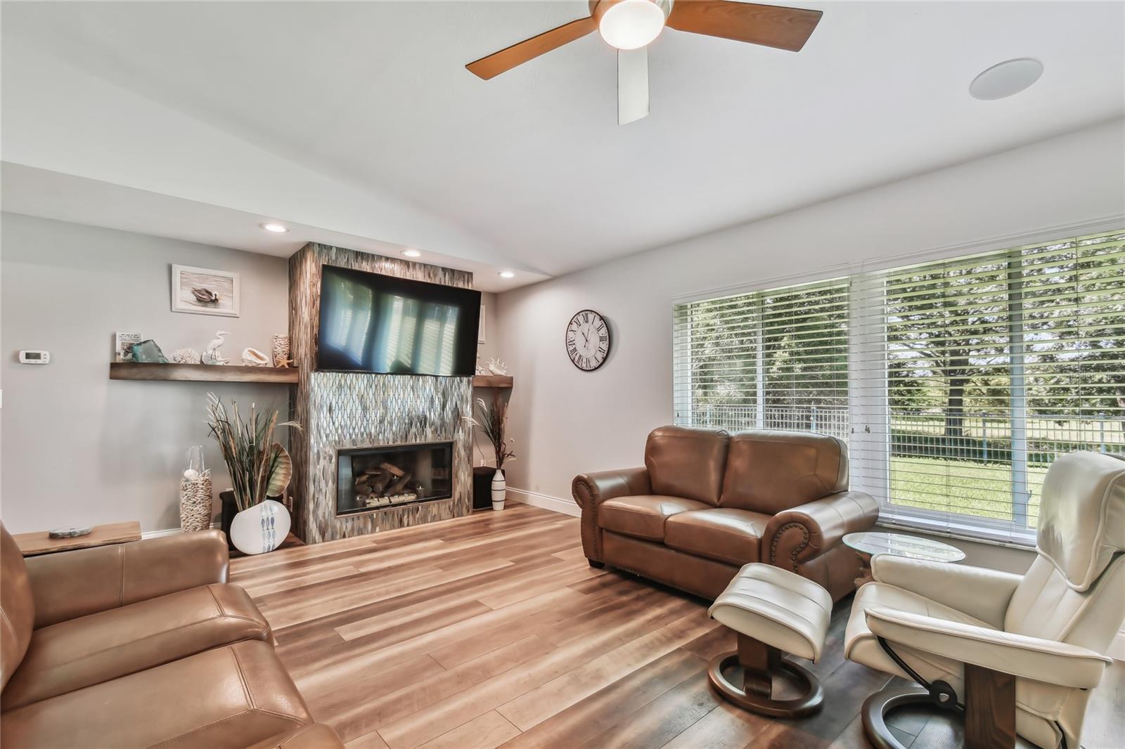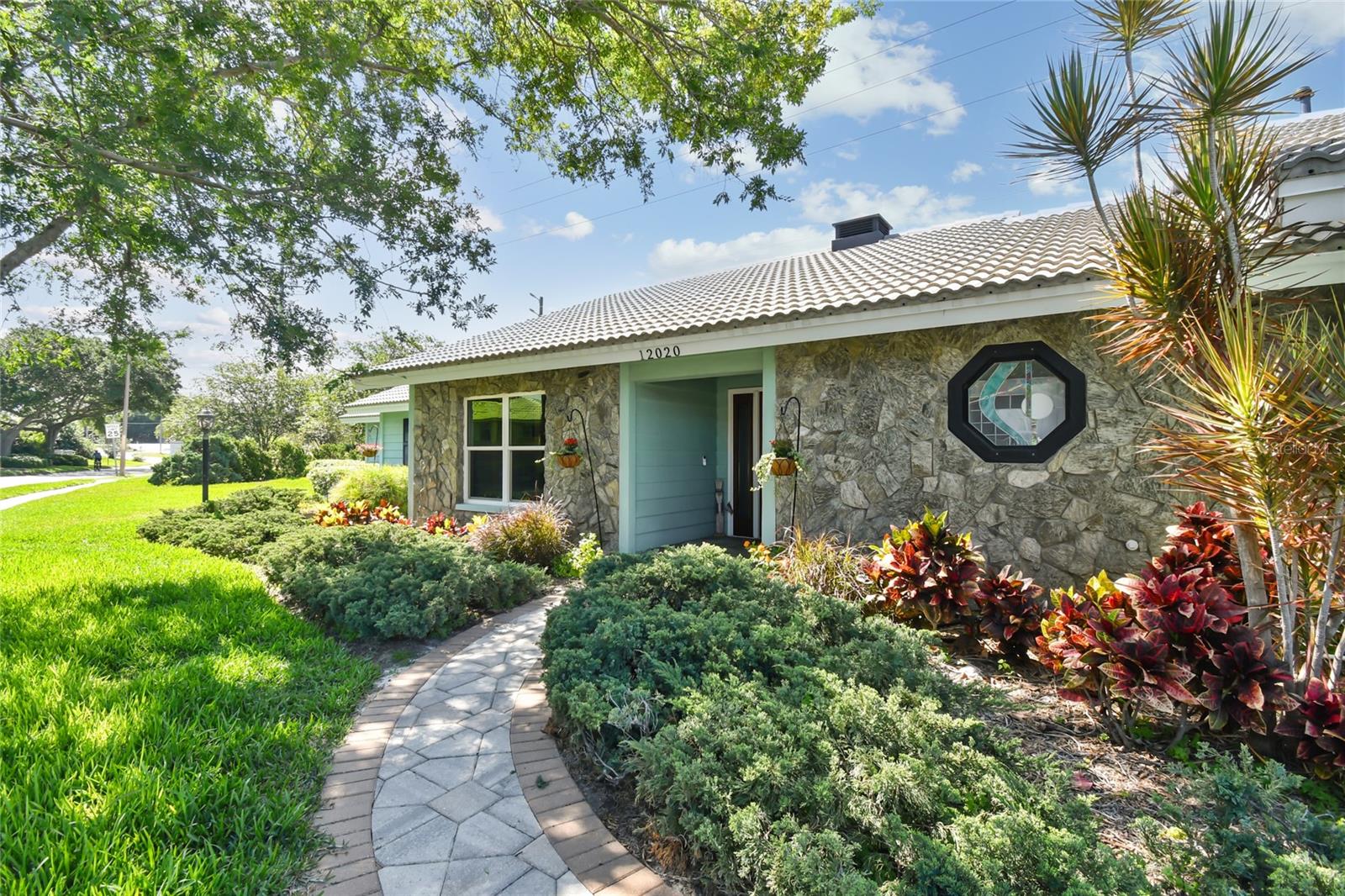 VA assumable loan for Eligible Buyer's...Imagine stepping into a world where modern comfort seamlessly blends with the serenity of nature. This exquisite estate, nestled on over half an acre of meticulously maintained green space, invites you to experience the best of both worlds. As you approach the property, the sheer expanse of land unfolds before you—well over a football field in length. The manicured pathway winds through greenery creating an ambiance akin to strolling through a private park. Trees provide shade. The heart of this home lies in its spacious kitchen—a culinary haven that marries functionality with elegance. Stainless steel appliances gleam under the soft glow of pendant lights, while a natural gas stove promises gourmet cooking experiences. Soft-closing cabinets and drawers add a touch of luxury, and seamless organization. Luxury vinyl tile graces the floors throughout, its warm tones inviting you to explore further. The primary suite beckons—a sanctuary of relaxation. Dual sinks in the en-suite bathroom offer convenience, while a freestanding garden tub awaits: a fit for royalty. Step into the walk-in shower, washing away the cares of the day. Hurricane impact windows envelop the home, providing security and peace of mind. Two stained glass porthole windows (with wood covers) in the second bath and laundry room remain, adding to the home’s charm. A stone fireplace stands ready for chilly winter evenings, or retreat to the screened porch at the rear of the home, where you can marvel at the natural beauty that extends beyond your property. Two natural gas hookups exist, whether you wish to create a cozy fire pit or sizzle up a barbecue feast. The seven-zone irrigation system ensures that your landscaping flourishes year-round. And here’s the best part: despite its idyllic setting, this home sits comfortably above the flood zone, eliminating the need for flood insurance. Yet, within a mere 10-minute drive, the Gulf beaches await, promising sun-kissed days and salt-kissed air. At the end of your block lies the entrance to Boca Ciega Millennial Park—an invitation to explore nature’s wonders. For those who crave adventure, the Pinellas Trail beckons nearby, allowing you to enjoy your oasis in complete privacy. Google cameras do not convey.