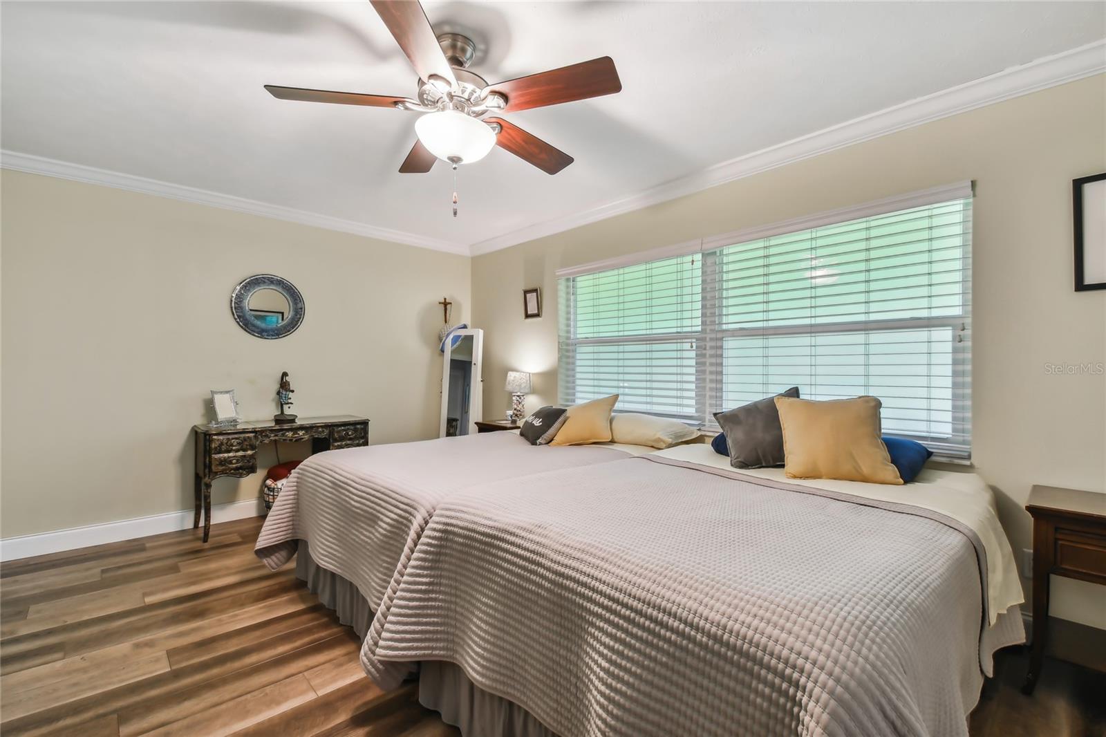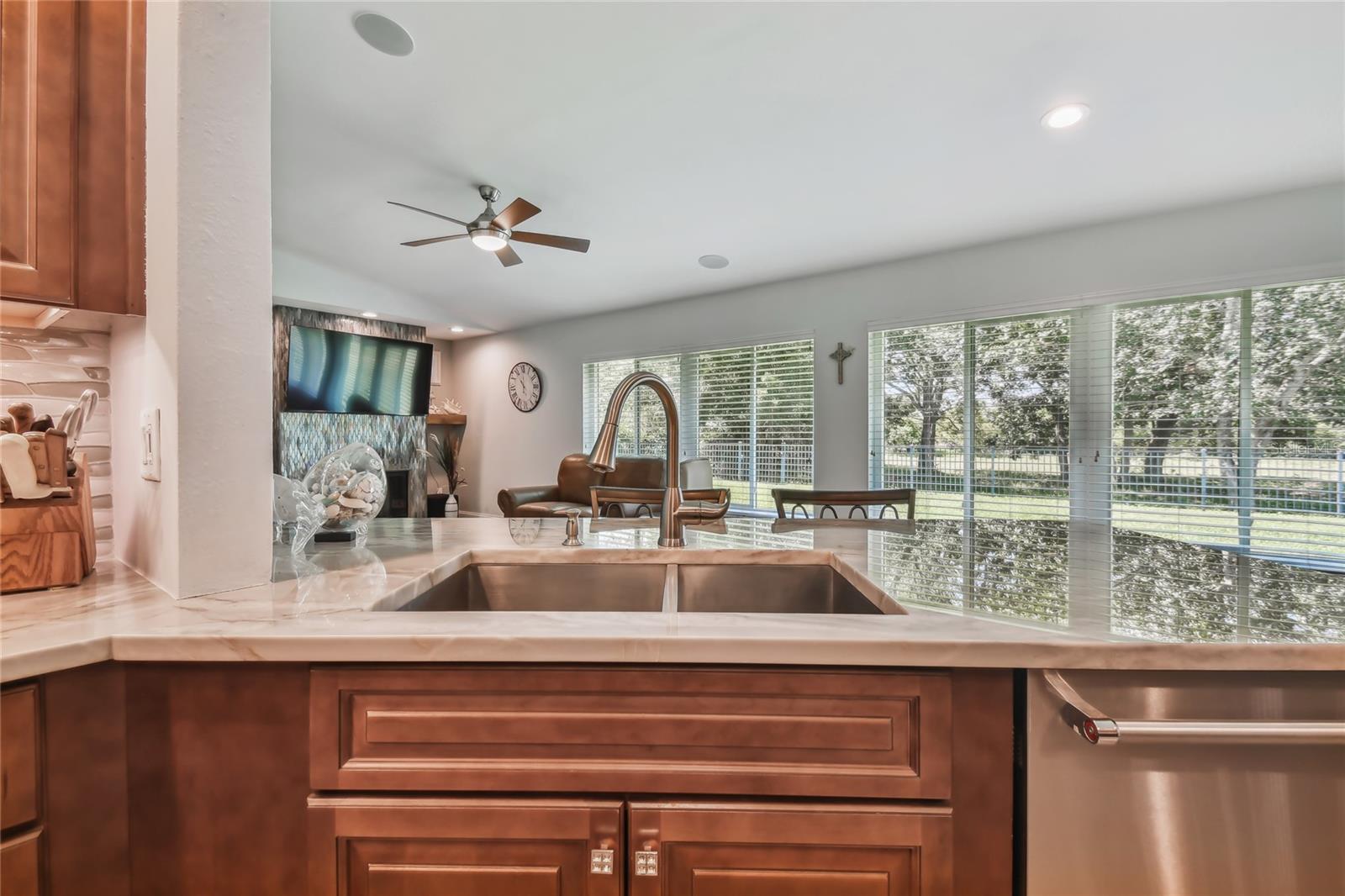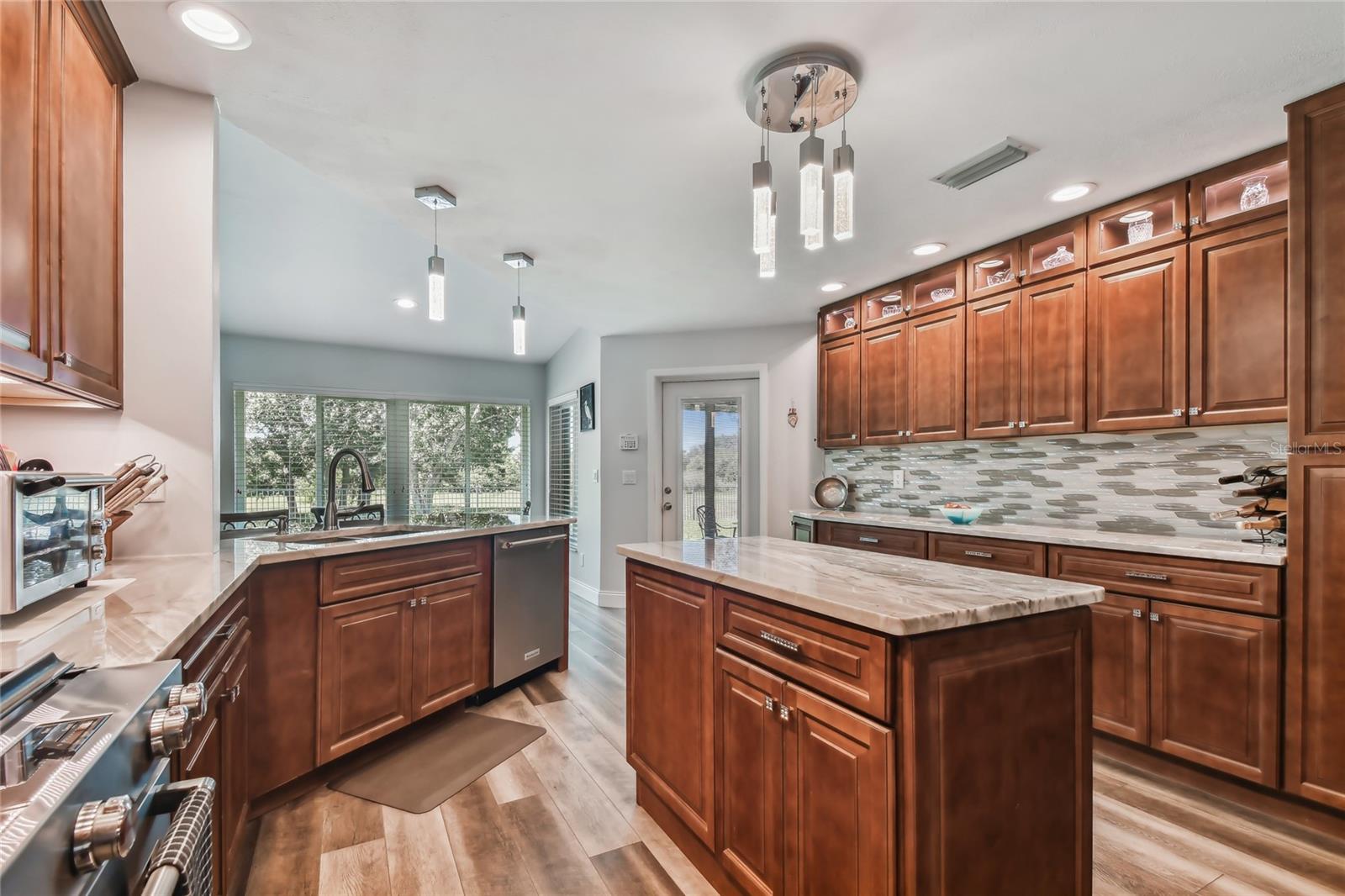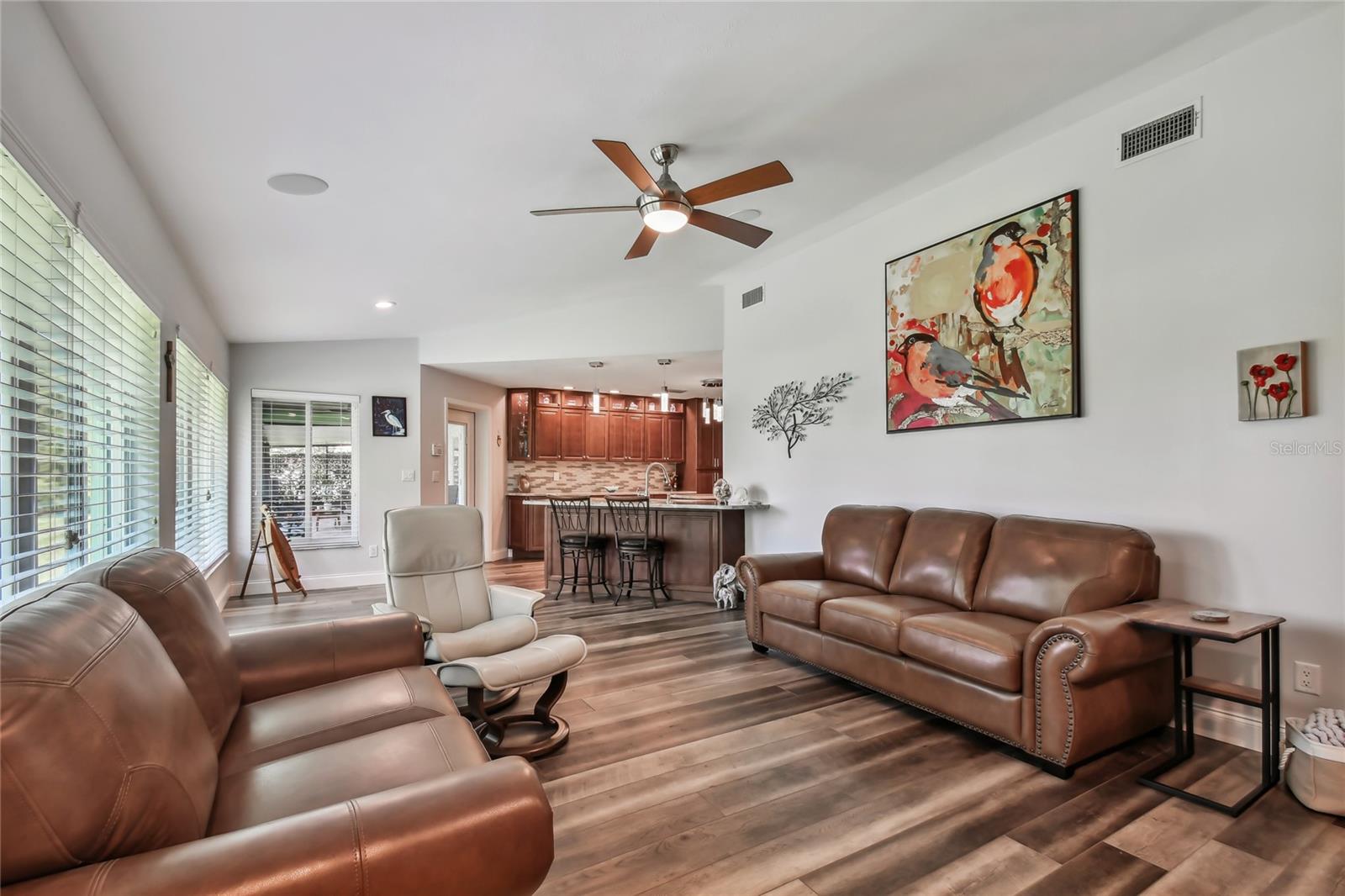 VA assumable loan for Eligible Buyer's...Imagine stepping into a world where modern comfort seamlessly blends with the serenity of nature. This exquisite estate, nestled on over half an acre of meticulously maintained green space, invites you to experience the best of both worlds. As you approach the property, the sheer expanse of land unfolds before you—well over a football field in length. The manicured pathway winds through greenery creating an ambiance akin to strolling through a private park. Trees provide shade. The heart of this home lies in its spacious kitchen—a culinary haven that marries functionality with elegance. Stainless steel appliances gleam under the soft glow of pendant lights, while a natural gas stove promises gourmet cooking experiences. Soft-closing cabinets and drawers add a touch of luxury, and seamless organization. Luxury vinyl tile graces the floors throughout, its warm tones inviting you to explore further. The primary suite beckons—a sanctuary of relaxation. Dual sinks in the en-suite bathroom offer convenience, while a freestanding garden tub awaits: a fit for royalty. Step into the walk-in shower, washing away the cares of the day. Hurricane impact windows envelop the home, providing security and peace of mind. Two stained glass porthole windows (with wood covers) in the second bath and laundry room remain, adding to the home’s charm. A stone fireplace stands ready for chilly winter evenings, or retreat to the screened porch at the rear of the home, where you can marvel at the natural beauty that extends beyond your property. Two natural gas hookups exist, whether you wish to create a cozy fire pit or sizzle up a barbecue feast. The seven-zone irrigation system ensures that your landscaping flourishes year-round. And here’s the best part: despite its idyllic setting, this home sits comfortably above the flood zone, eliminating the need for flood insurance. Yet, within a mere 10-minute drive, the Gulf beaches await, promising sun-kissed days and salt-kissed air. At the end of your block lies the entrance to Boca Ciega Millennial Park—an invitation to explore nature’s wonders. For those who crave adventure, the Pinellas Trail beckons nearby, allowing you to enjoy your oasis in complete privacy. Google cameras do not convey.