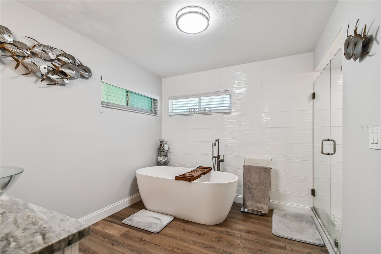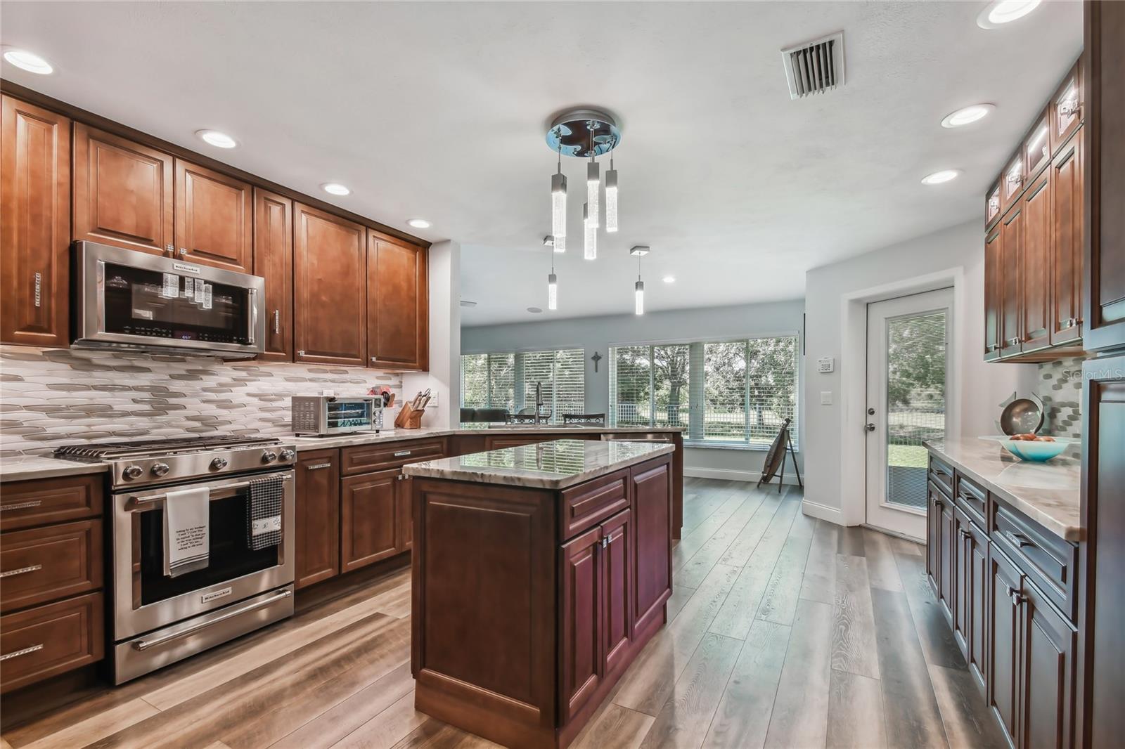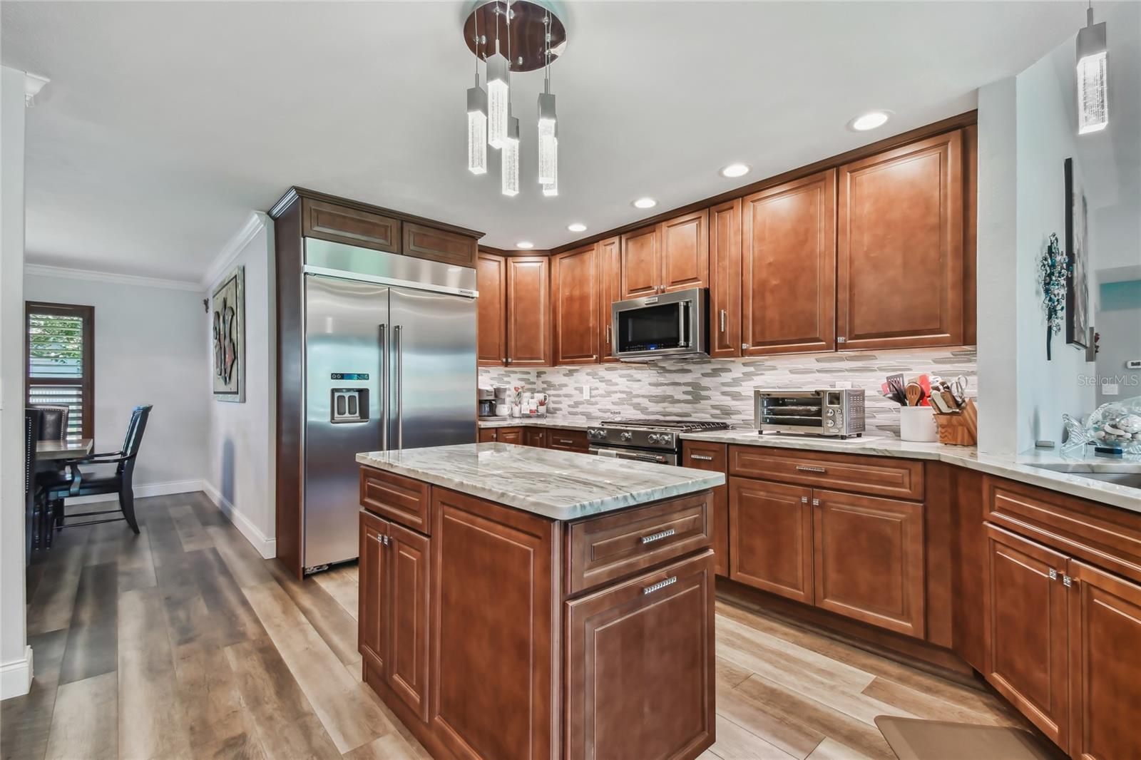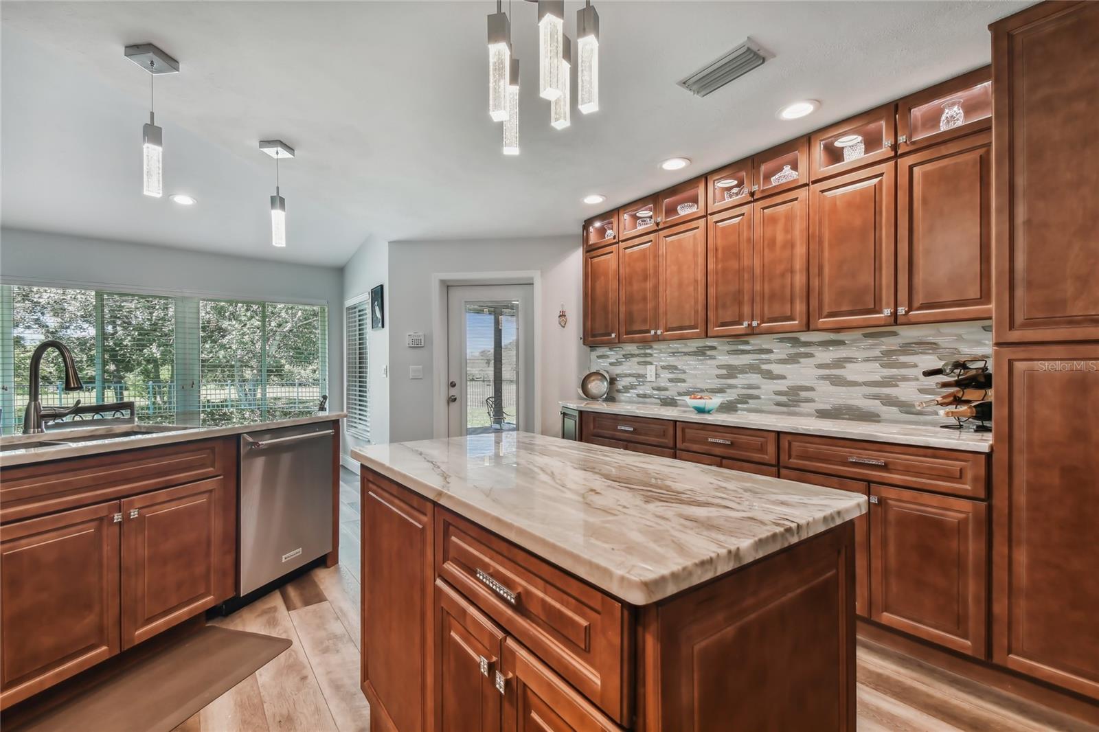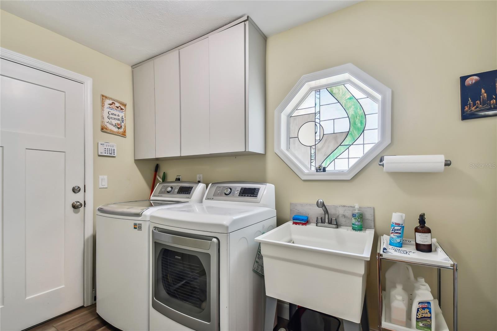 VA assumable loan for Eligible Buyer's...Imagine stepping into a world where modern comfort seamlessly blends with the serenity of nature. This exquisite estate, nestled on over half an acre of meticulously maintained green space, invites you to experience the best of both worlds. As you approach the property, the sheer expanse of land unfolds before you—well over a football field in length. The manicured pathway winds through greenery creating an ambiance akin to strolling through a private park. Trees provide shade. The heart of this home lies in its spacious kitchen—a culinary haven that marries functionality with elegance. Stainless steel appliances gleam under the soft glow of pendant lights, while a natural gas stove promises gourmet cooking experiences. Soft-closing cabinets and drawers add a touch of luxury, and seamless organization. Luxury vinyl tile graces the floors throughout, its warm tones inviting you to explore further. The primary suite beckons—a sanctuary of relaxation. Dual sinks in the en-suite bathroom offer convenience, while a freestanding garden tub awaits: a fit for royalty. Step into the walk-in shower, washing away the cares of the day. Hurricane impact windows envelop the home, providing security and peace of mind. Two stained glass porthole windows (with wood covers) in the second bath and laundry room remain, adding to the home’s charm. A stone fireplace stands ready for chilly winter evenings, or retreat to the screened porch at the rear of the home, where you can marvel at the natural beauty that extends beyond your property. Two natural gas hookups exist, whether you wish to create a cozy fire pit or sizzle up a barbecue feast. The seven-zone irrigation system ensures that your landscaping flourishes year-round. And here’s the best part: despite its idyllic setting, this home sits comfortably above the flood zone, eliminating the need for flood insurance. Yet, within a mere 10-minute drive, the Gulf beaches await, promising sun-kissed days and salt-kissed air. At the end of your block lies the entrance to Boca Ciega Millennial Park—an invitation to explore nature’s wonders. For those who crave adventure, the Pinellas Trail beckons nearby, allowing you to enjoy your oasis in complete privacy. Google cameras do not convey.
