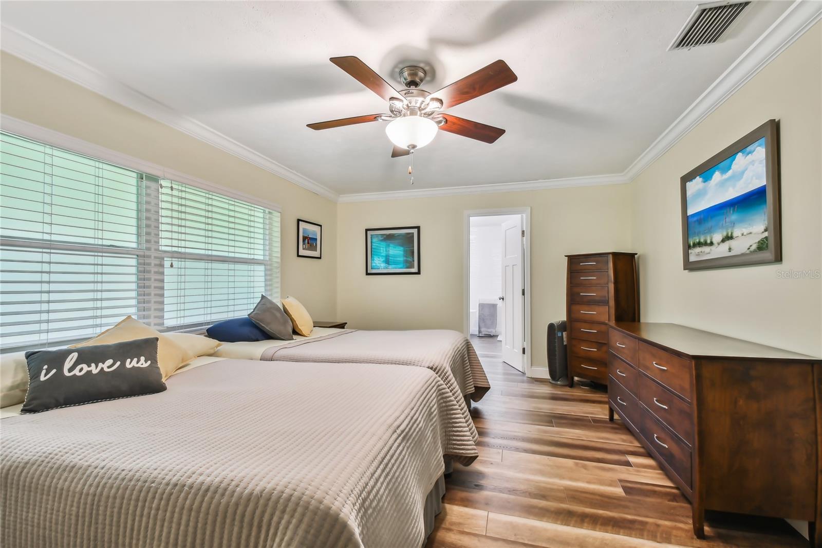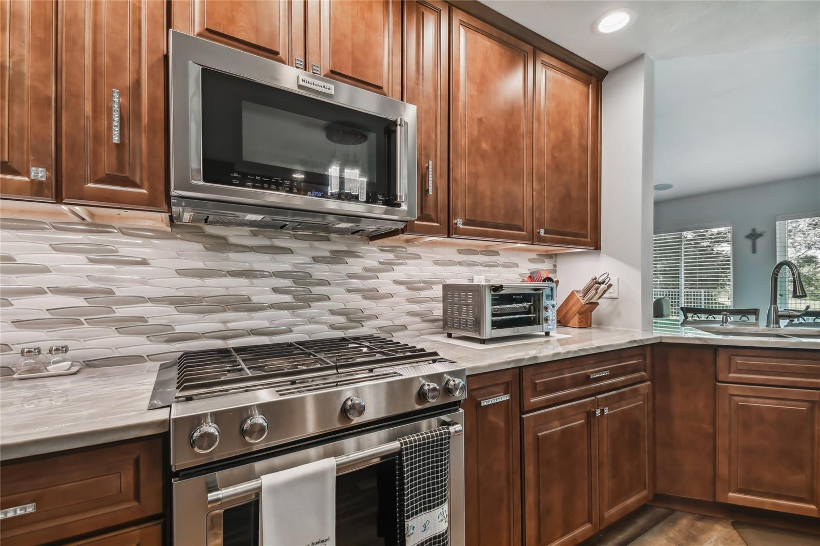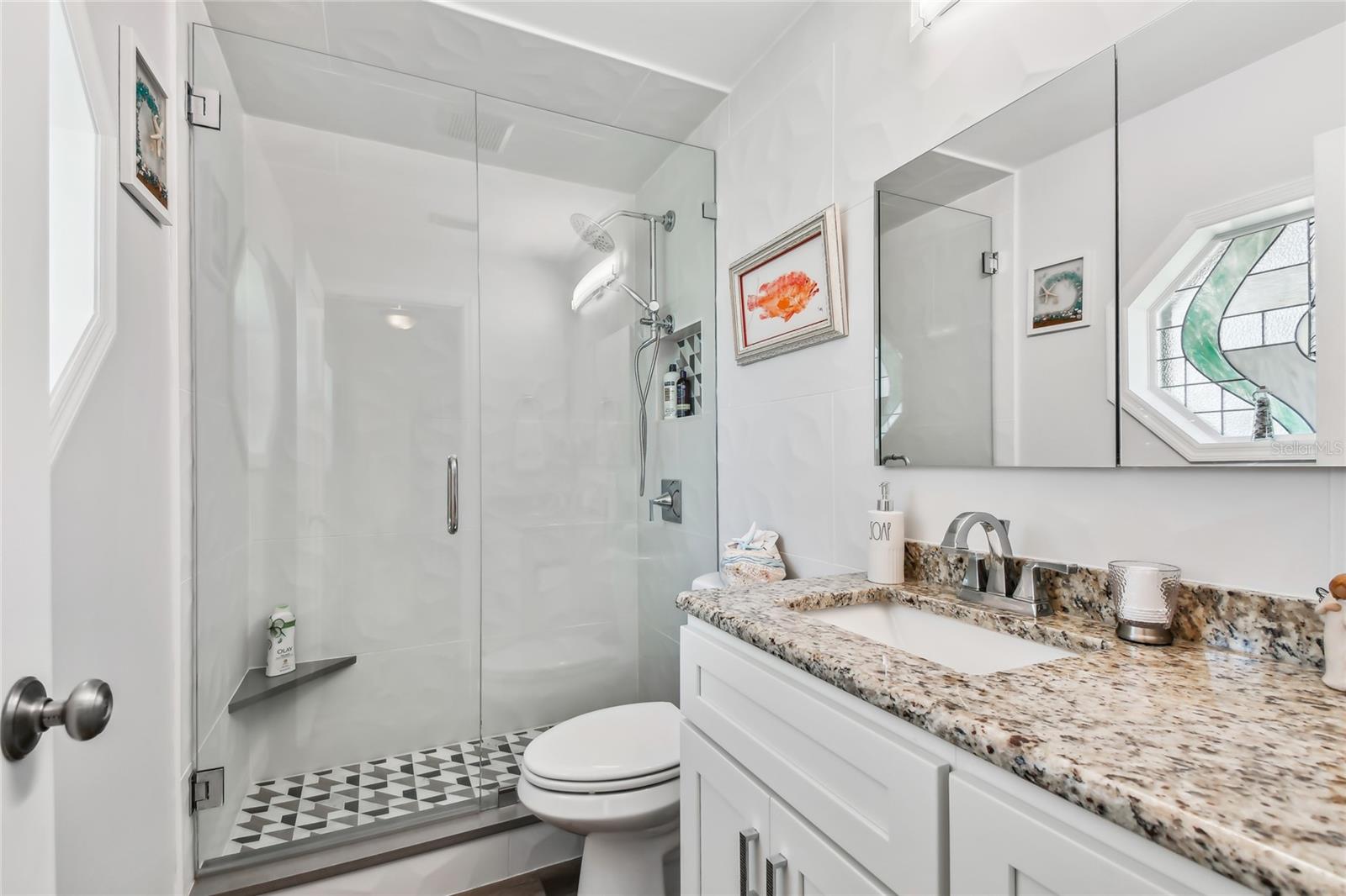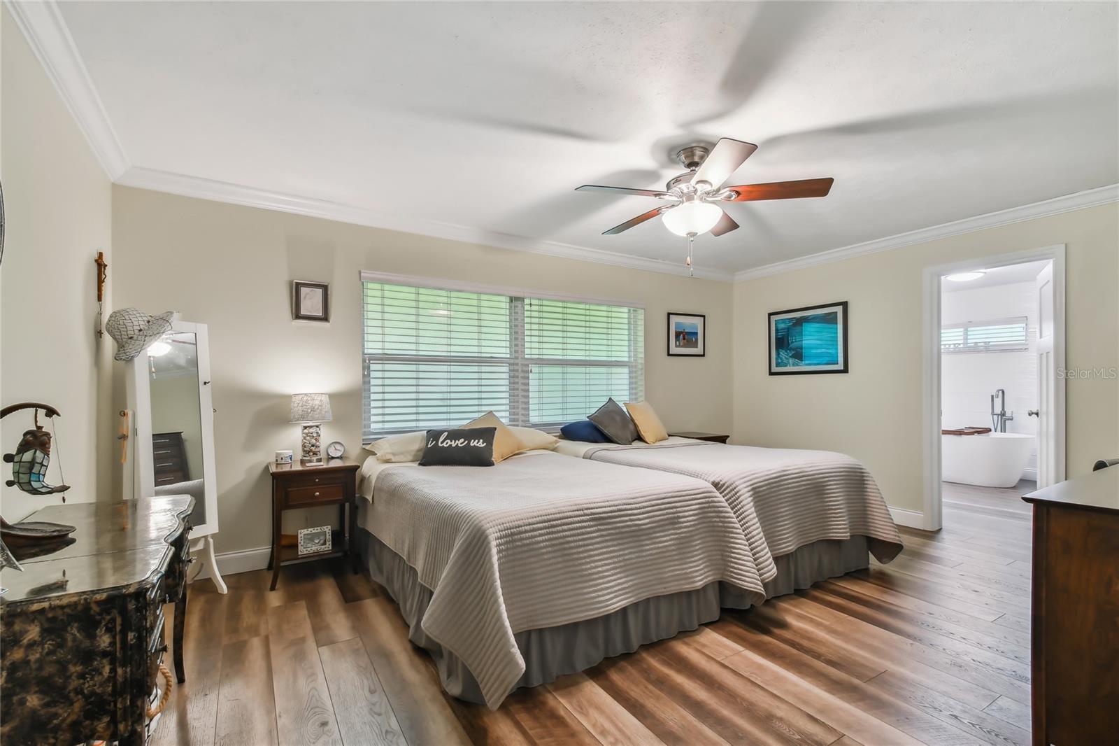 VA assumable loan for Eligible Buyer's...Imagine stepping into a world where modern comfort seamlessly blends with the serenity of nature. This exquisite estate, nestled on over half an acre of meticulously maintained green space, invites you to experience the best of both worlds. As you approach the property, the sheer expanse of land unfolds before you—well over a football field in length. The manicured pathway winds through greenery creating an ambiance akin to strolling through a private park. Trees provide shade. The heart of this home lies in its spacious kitchen—a culinary haven that marries functionality with elegance. Stainless steel appliances gleam under the soft glow of pendant lights, while a natural gas stove promises gourmet cooking experiences. Soft-closing cabinets and drawers add a touch of luxury, and seamless organization. Luxury vinyl tile graces the floors throughout, its warm tones inviting you to explore further. The primary suite beckons—a sanctuary of relaxation. Dual sinks in the en-suite bathroom offer convenience, while a freestanding garden tub awaits: a fit for royalty. Step into the walk-in shower, washing away the cares of the day. Hurricane impact windows envelop the home, providing security and peace of mind. Two stained glass porthole windows (with wood covers) in the second bath and laundry room remain, adding to the home’s charm. A stone fireplace stands ready for chilly winter evenings, or retreat to the screened porch at the rear of the home, where you can marvel at the natural beauty that extends beyond your property. Two natural gas hookups exist, whether you wish to create a cozy fire pit or sizzle up a barbecue feast. The seven-zone irrigation system ensures that your landscaping flourishes year-round. And here’s the best part: despite its idyllic setting, this home sits comfortably above the flood zone, eliminating the need for flood insurance. Yet, within a mere 10-minute drive, the Gulf beaches await, promising sun-kissed days and salt-kissed air. At the end of your block lies the entrance to Boca Ciega Millennial Park—an invitation to explore nature’s wonders. For those who crave adventure, the Pinellas Trail beckons nearby, allowing you to enjoy your oasis in complete privacy. Google cameras do not convey.