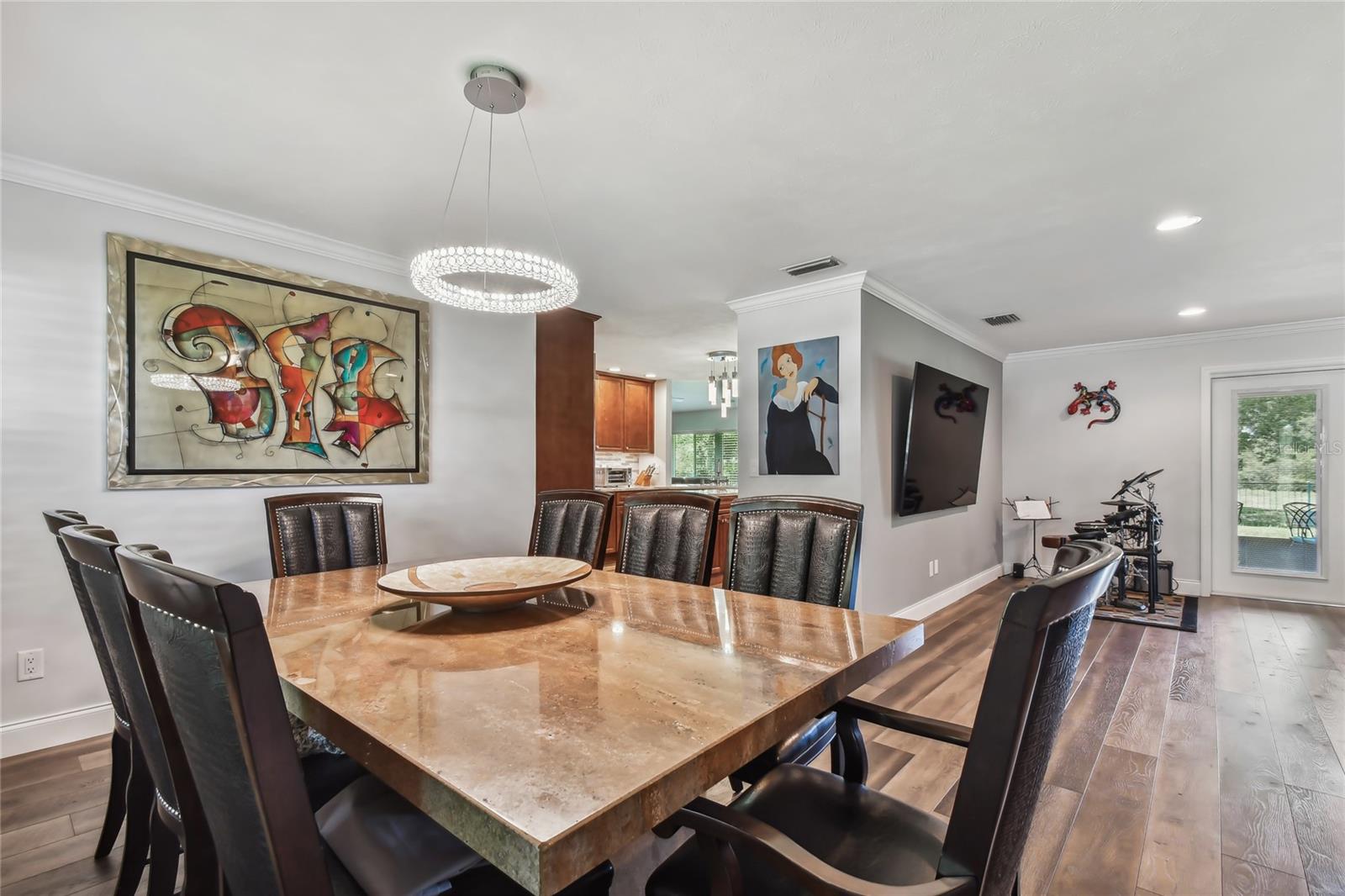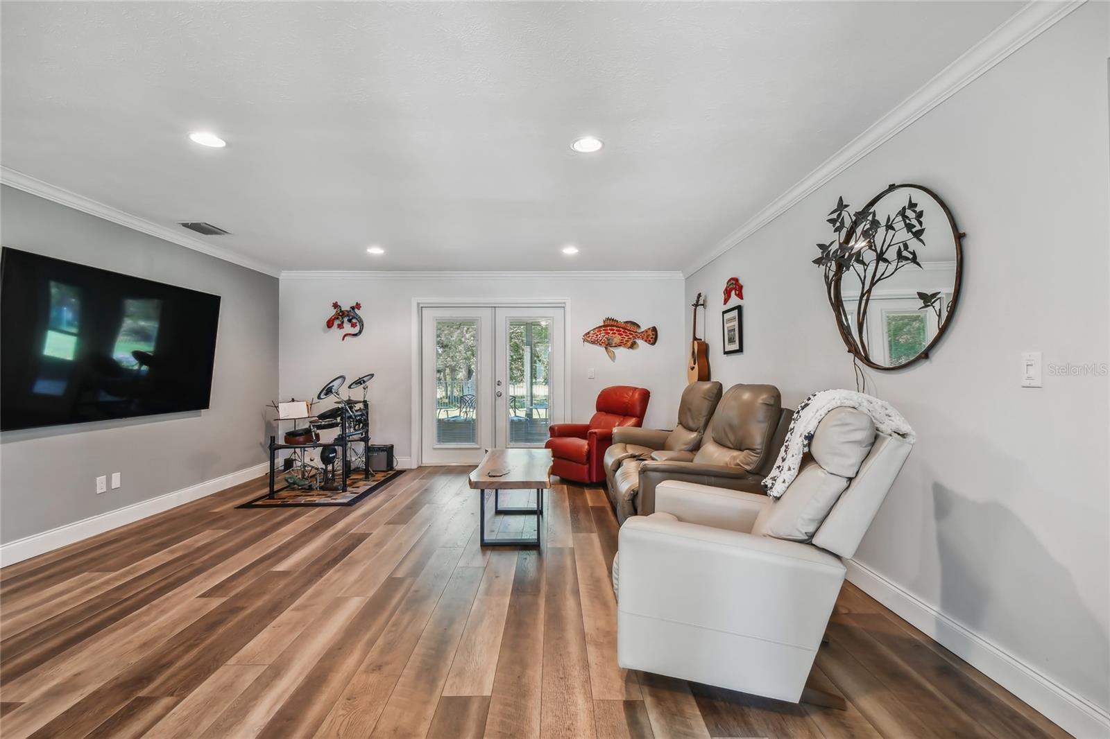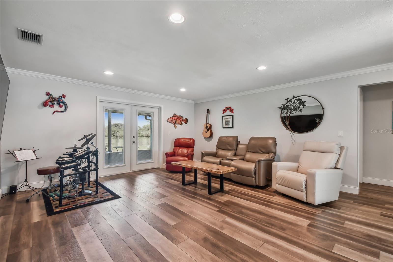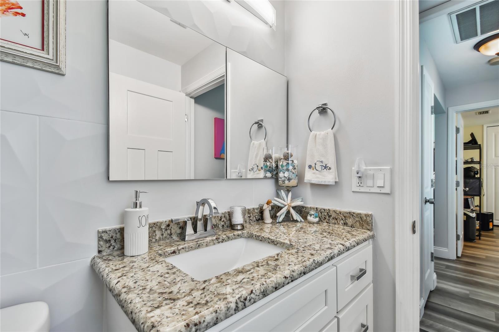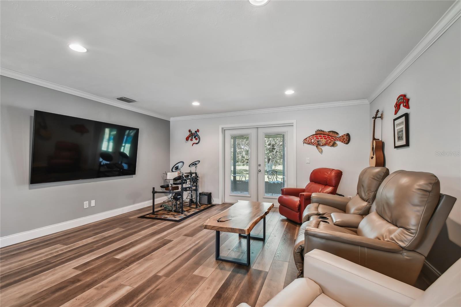 VA assumable loan for Eligible Buyer's...Imagine stepping into a world where modern comfort seamlessly blends with the serenity of nature. This exquisite estate, nestled on over half an acre of meticulously maintained green space, invites you to experience the best of both worlds. As you approach the property, the sheer expanse of land unfolds before you—well over a football field in length. The manicured pathway winds through greenery creating an ambiance akin to strolling through a private park. Trees provide shade. The heart of this home lies in its spacious kitchen—a culinary haven that marries functionality with elegance. Stainless steel appliances gleam under the soft glow of pendant lights, while a natural gas stove promises gourmet cooking experiences. Soft-closing cabinets and drawers add a touch of luxury, and seamless organization. Luxury vinyl tile graces the floors throughout, its warm tones inviting you to explore further. The primary suite beckons—a sanctuary of relaxation. Dual sinks in the en-suite bathroom offer convenience, while a freestanding garden tub awaits: a fit for royalty. Step into the walk-in shower, washing away the cares of the day. Hurricane impact windows envelop the home, providing security and peace of mind. Two stained glass porthole windows (with wood covers) in the second bath and laundry room remain, adding to the home’s charm. A stone fireplace stands ready for chilly winter evenings, or retreat to the screened porch at the rear of the home, where you can marvel at the natural beauty that extends beyond your property. Two natural gas hookups exist, whether you wish to create a cozy fire pit or sizzle up a barbecue feast. The seven-zone irrigation system ensures that your landscaping flourishes year-round. And here’s the best part: despite its idyllic setting, this home sits comfortably above the flood zone, eliminating the need for flood insurance. Yet, within a mere 10-minute drive, the Gulf beaches await, promising sun-kissed days and salt-kissed air. At the end of your block lies the entrance to Boca Ciega Millennial Park—an invitation to explore nature’s wonders. For those who crave adventure, the Pinellas Trail beckons nearby, allowing you to enjoy your oasis in complete privacy. Google cameras do not convey.