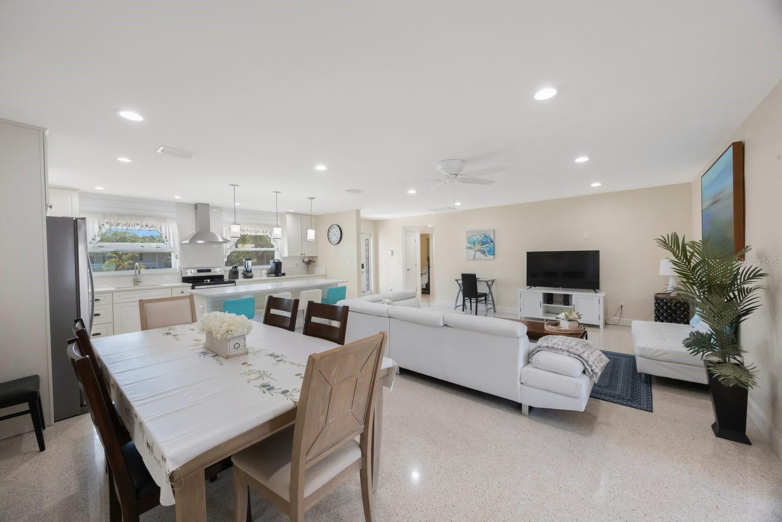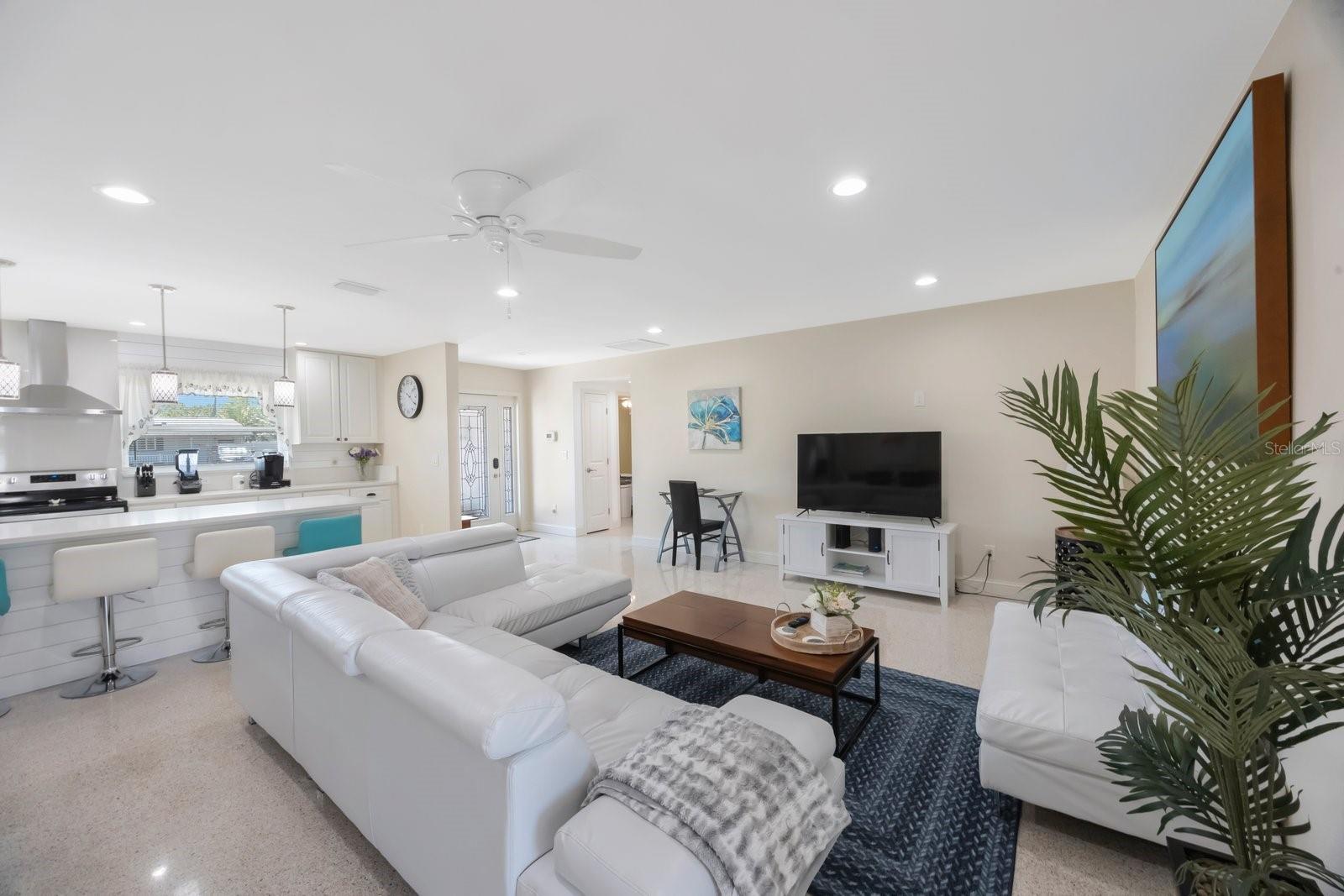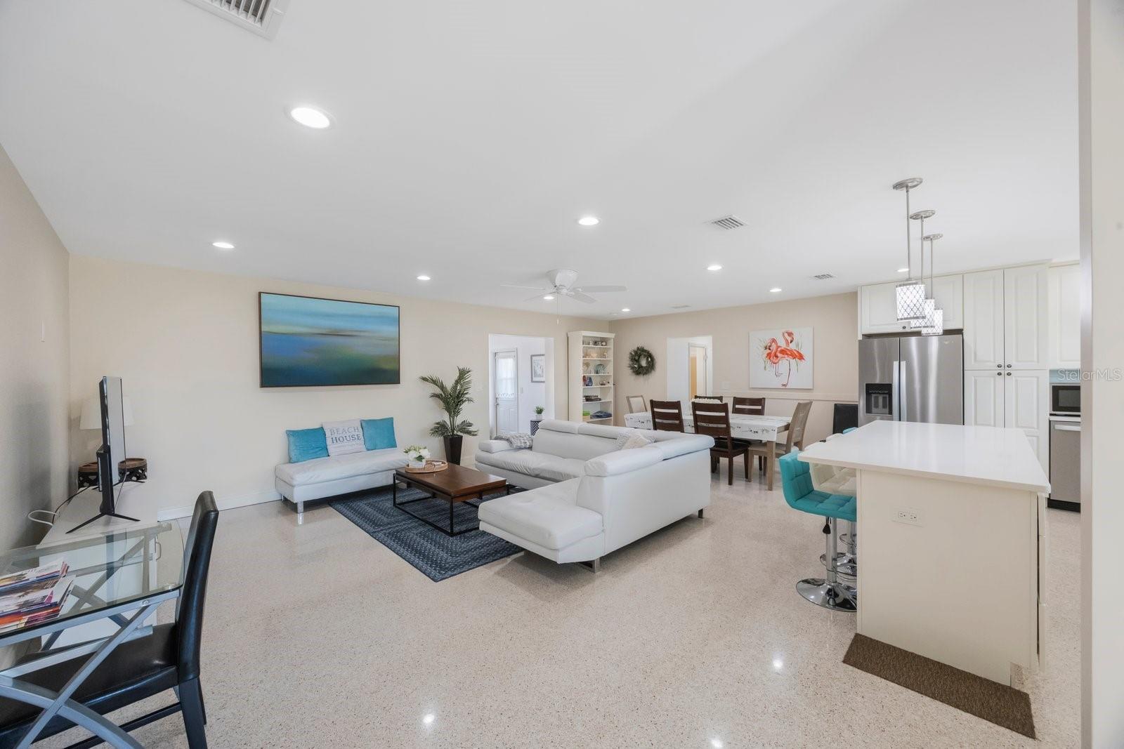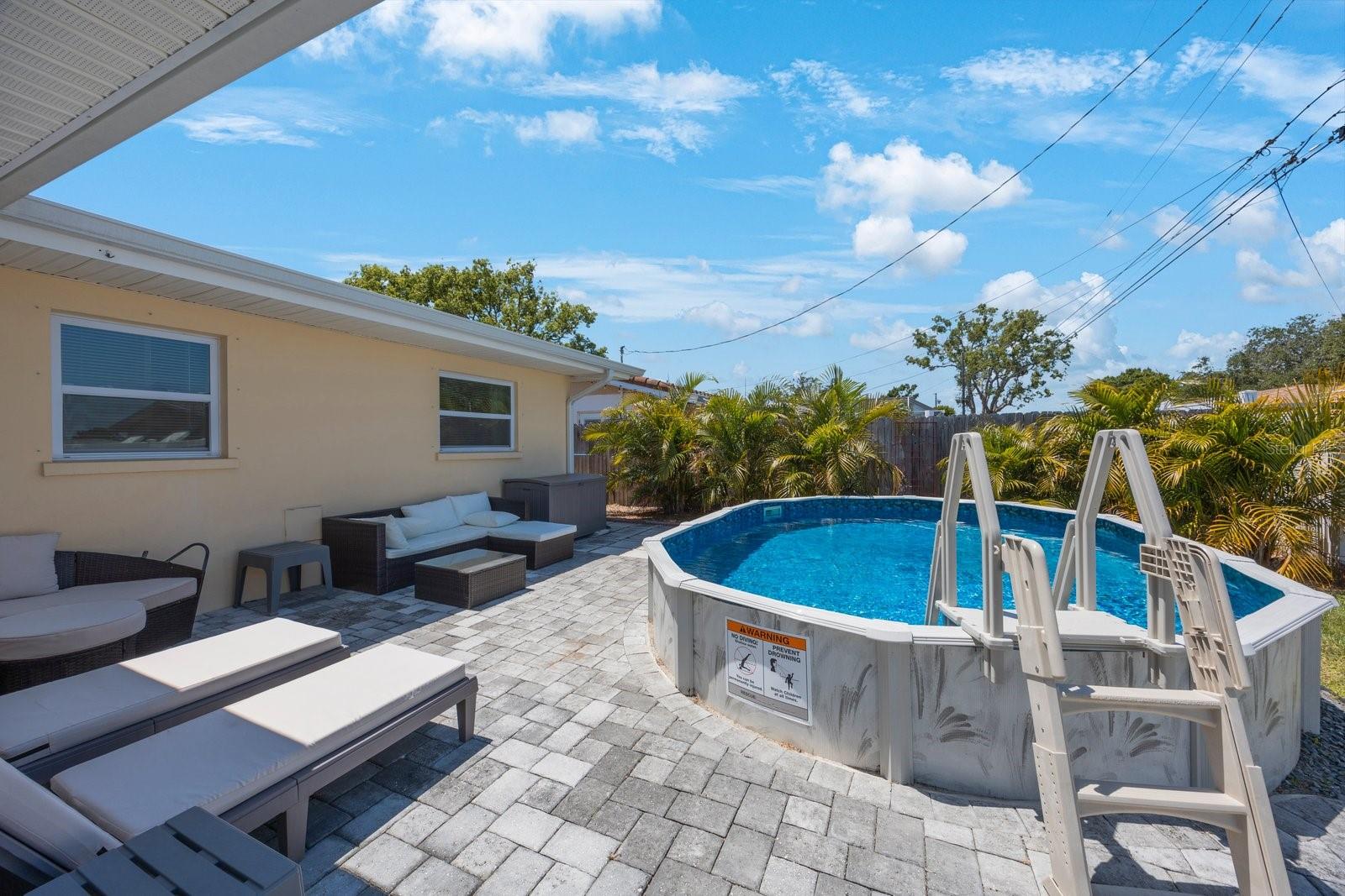 Motivated Owner says SELL! Super spacious home with 3 bedrooms and 3 FULL BATHS in a NON-FLOOD, NON DEED RESTRICTED AREA with a BRAND NEW ROOF JUST INSTALLED! Spread out in comfort - Humongous gathering area with stunning fully updated chef's kitchen with lovely Island, opens to dining room and living area which easily accommodate friends and family alike for parties and gatherings! Exit out back for more entertainment space with pavered/lounge/picnic area and adorable heated, sunken "above ground" pool and sunning area, plus Bar B-que area. Enjoy the 3 Ample bedrooms and 3 sparkling baths with split plan. In addition, there is an extra seating/sleeping area, separate inside laundry room and plenty of parking along with a good sized garage! Get your slice of paradise but with the added bonus of NO Flood insurance. Flexible as single family home or great Air BnB Investment! Less than 2 miles from the beach and Seminole City Centre and Pinellas Trail are up the street! This home can include any furnishings if desired! Present all reasonable offers.