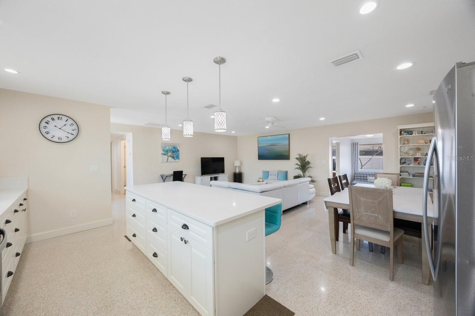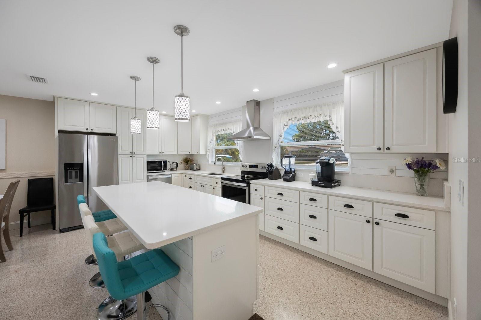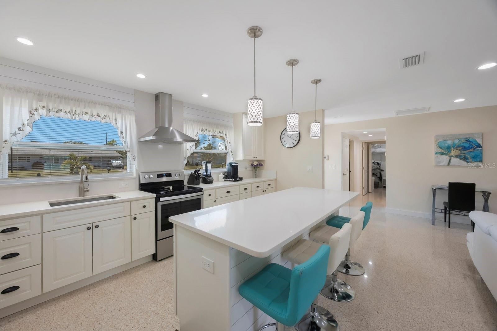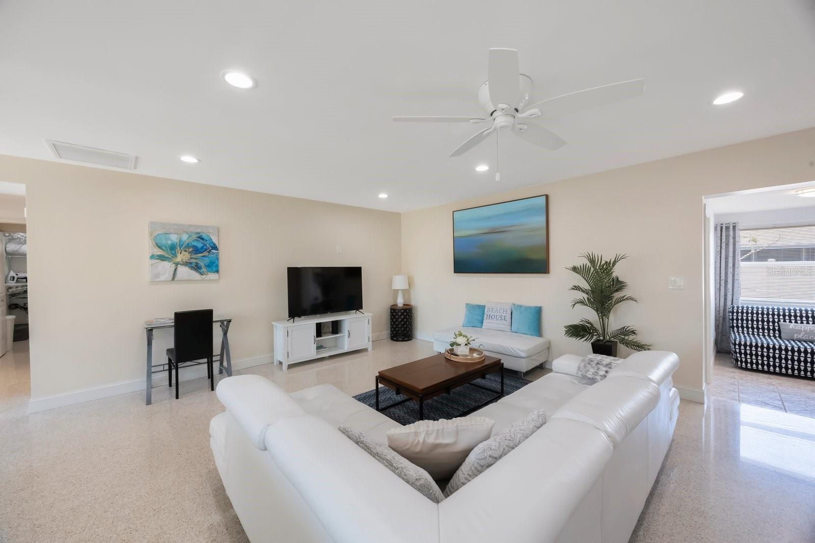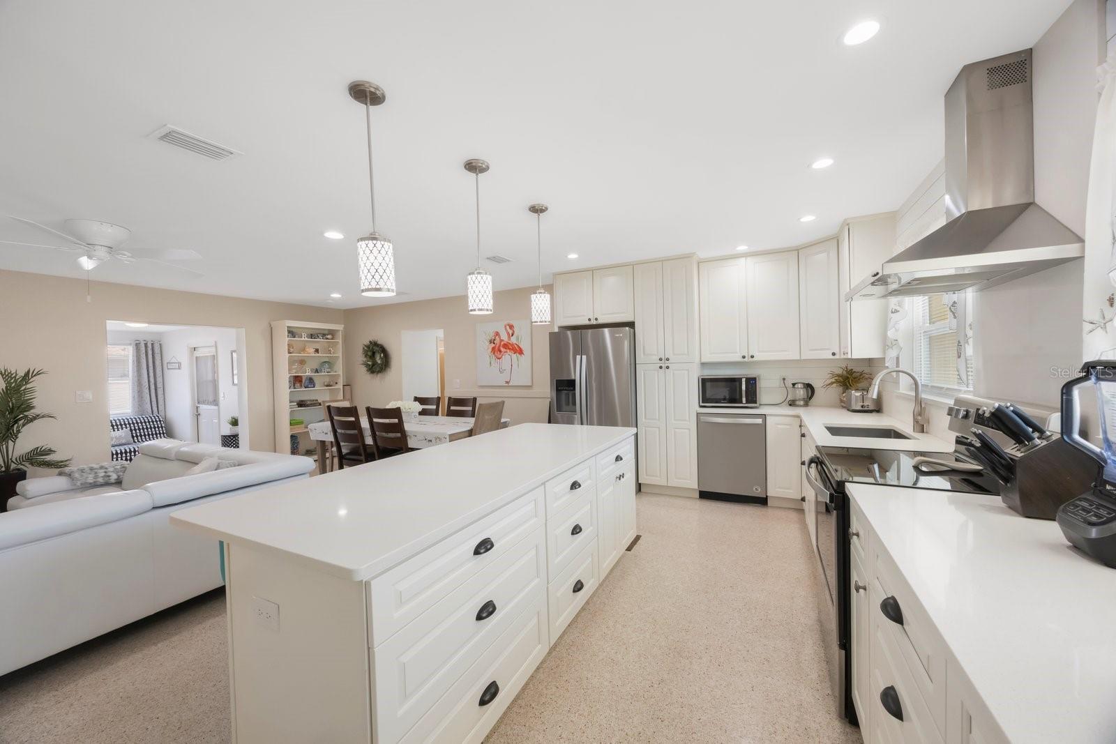 Motivated Owner says SELL! Super spacious home with 3 bedrooms and 3 FULL BATHS in a NON-FLOOD, NON DEED RESTRICTED AREA with a BRAND NEW ROOF JUST INSTALLED! Spread out in comfort - Humongous gathering area with stunning fully updated chef's kitchen with lovely Island, opens to dining room and living area which easily accommodate friends and family alike for parties and gatherings! Exit out back for more entertainment space with pavered/lounge/picnic area and adorable heated, sunken "above ground" pool and sunning area, plus Bar B-que area. Enjoy the 3 Ample bedrooms and 3 sparkling baths with split plan. In addition, there is an extra seating/sleeping area, separate inside laundry room and plenty of parking along with a good sized garage! Get your slice of paradise but with the added bonus of NO Flood insurance. Flexible as single family home or great Air BnB Investment! Less than 2 miles from the beach and Seminole City Centre and Pinellas Trail are up the street! This home can include any furnishings if desired! Present all reasonable offers.