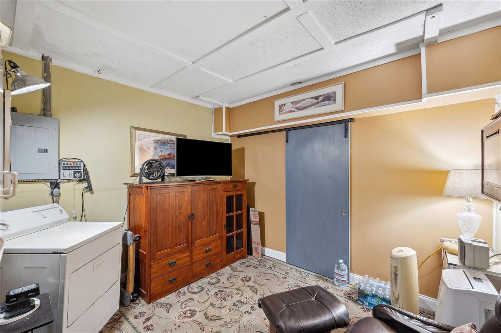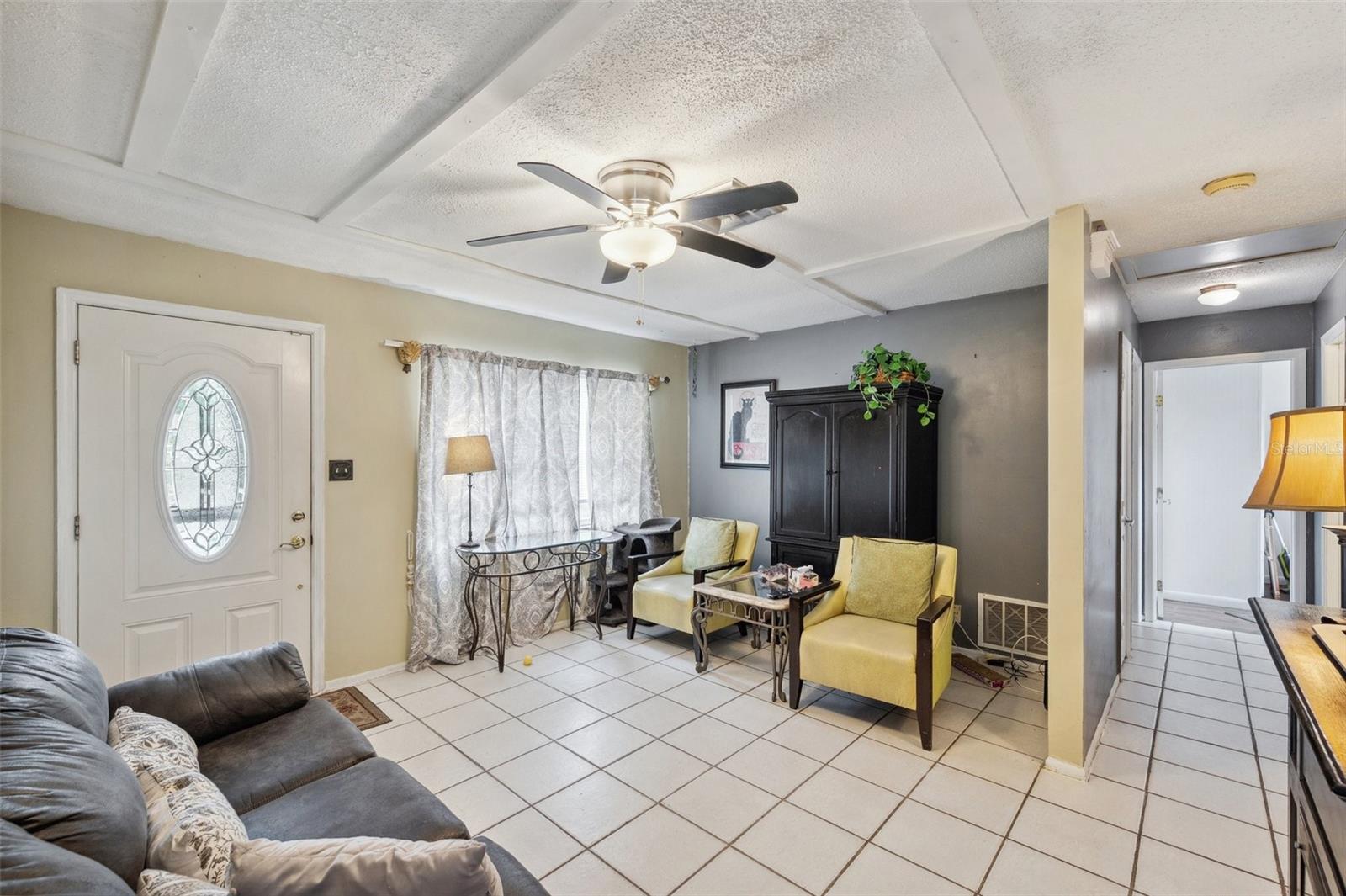 Step into this delightful 3-bedroom, 1-bathroom home that’s ready for your personal touch! Perfectly situated in an established neighborhood, this home offers just the right mix of character, comfort, and opportunity. Inside, you’ll find a comfortable living space with tile floors in the main living area and kitchen. The kitchen already boasts modern stainless steel appliances—an excellent starting point for creating your culinary haven. The three bedrooms are well-sized with fresh paint, offering flexibility for a growing family, home office, or guest room, with the bathroom conveniently located to all of the rooms. A dedicated laundry space is located in the garage, making everyday chores a breeze! Updates you’ll appreciate include a brand-new roof in 2025 and a newer AC system (2024) to keep you cool and comfortable, oversized driveway, NO FLOOD ZONE. Outside, the expansive backyard has plenty of room to spread out with two spacious sheds—perfect for a man cave, she-shed, or extra storage. Conveniently located near schools, community parks, walking distance to shopping, close to the bus line and a quick trip to the best Florida Beaches!