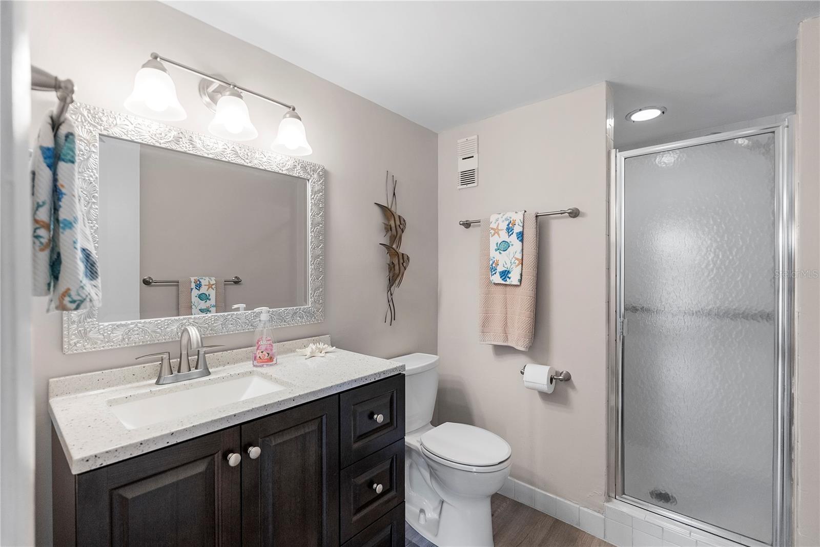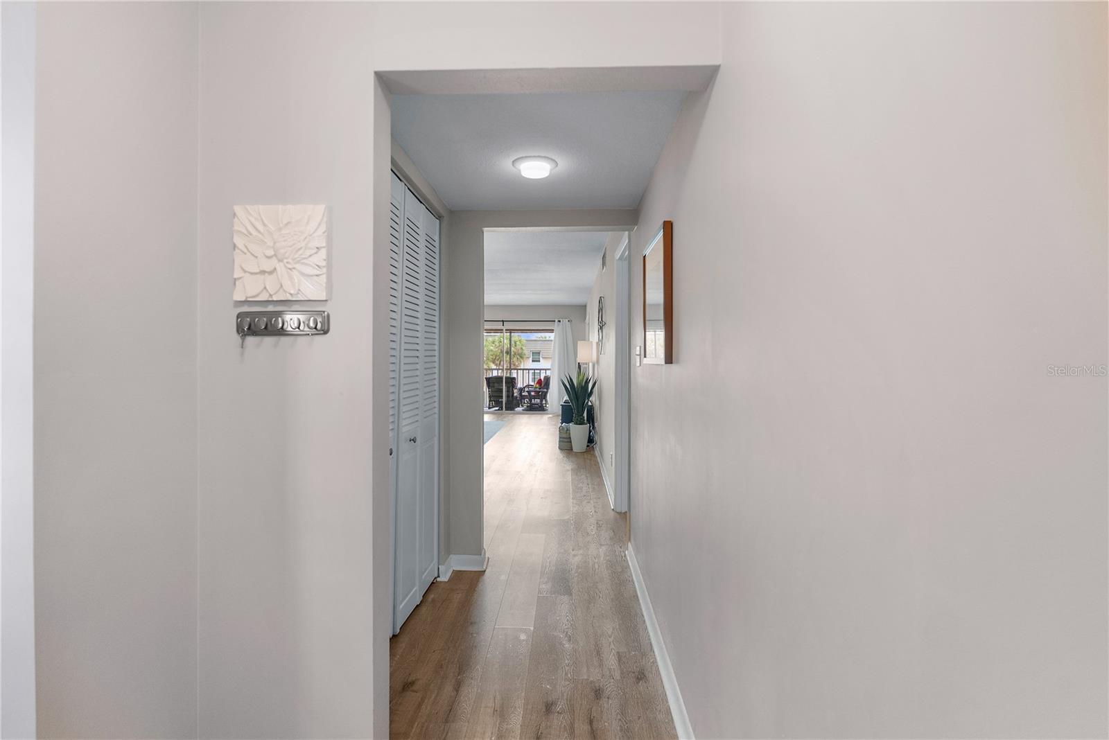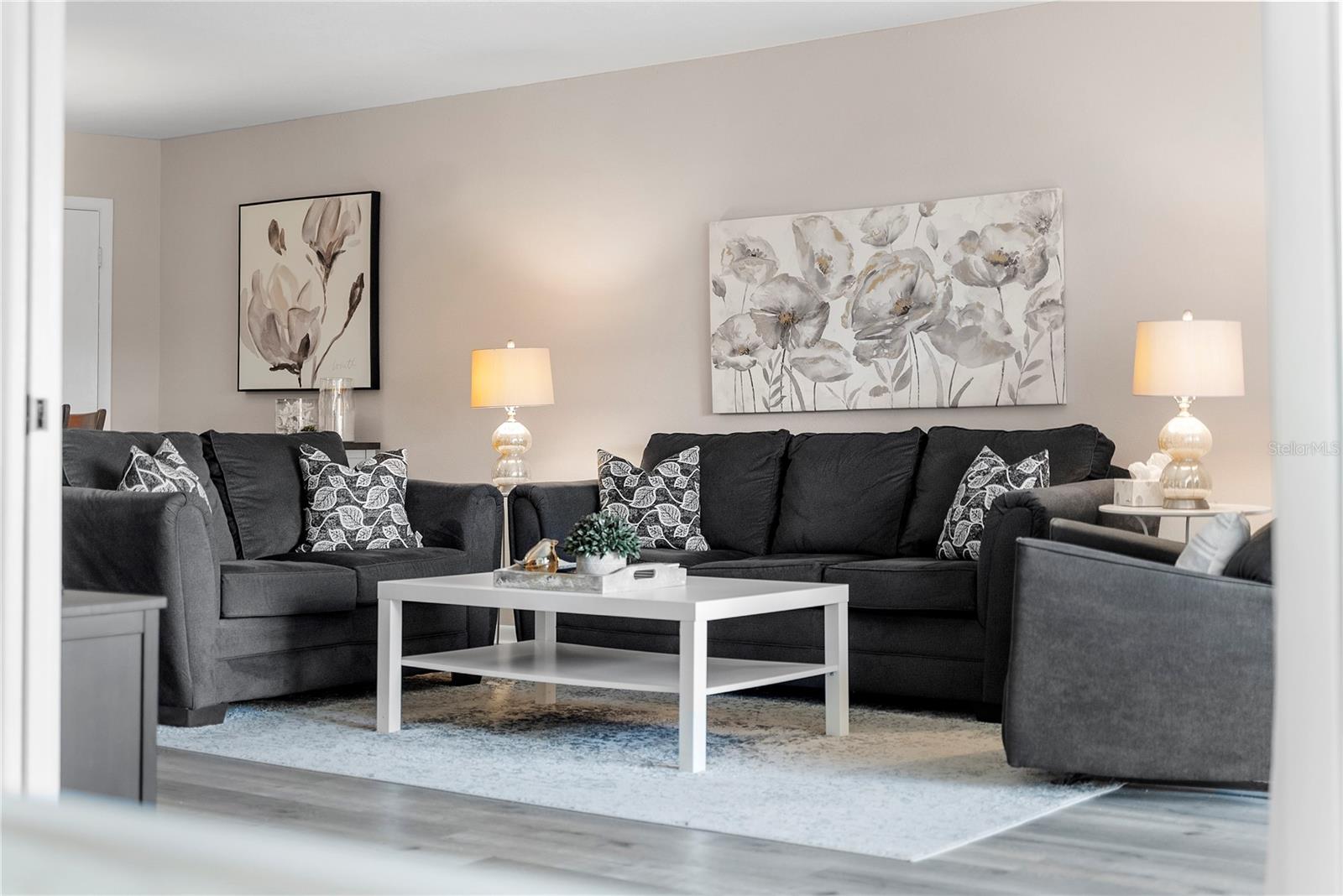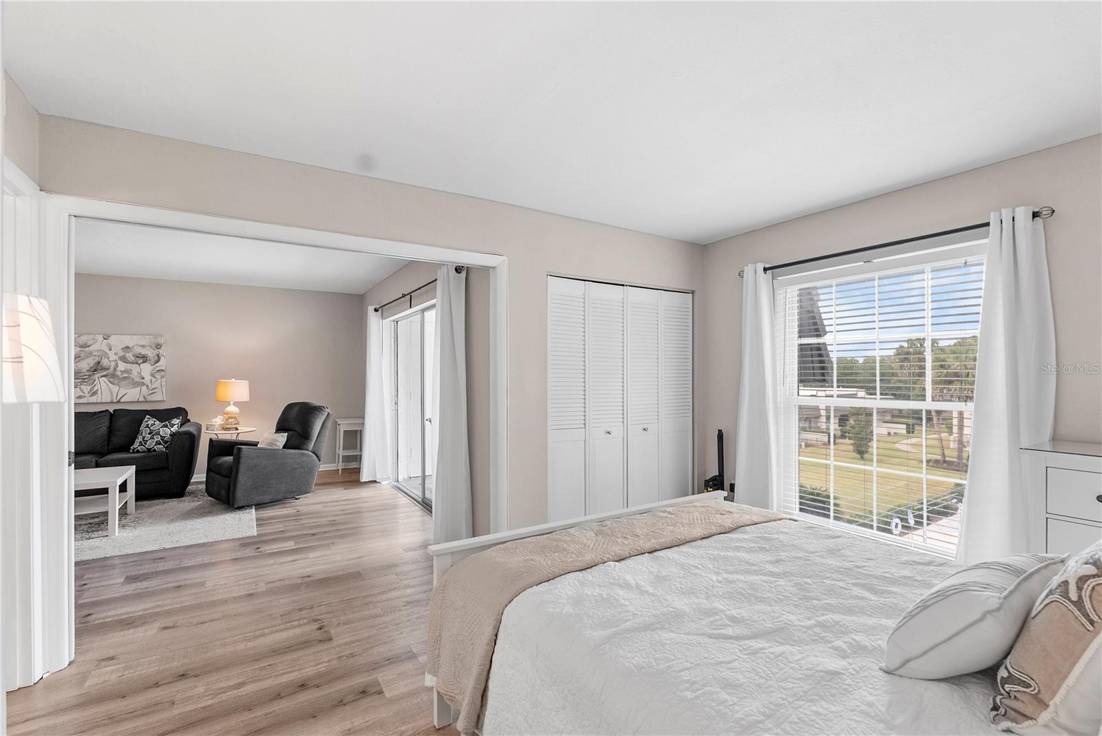 Welcome to Cordova Greens V – Building 8703 of Bardmoor’s Premier Condo Community Situated in the newest buildings of Cordova Greens, this meticulously maintained top-floor condo offers an inviting, move-in-ready space with tasteful updates and stylish furnishings—sold fully furnished with some décor. Step inside to a welcoming foyer entrance that opens into a spacious floor plan featuring light wood-tone vinyl flooring (installed 2019) with a rubber-backed sound barrier. The kitchen has freshly lacquered gray cabinetry, a large pass-through window, and a cozy breakfast bar—perfect for both meal prep and conversation. Matching hardware on doors and updated modern lighting carry throughout the home. In 2019, the condo was enhanced with three Simonton impact windows (with a one-time new owner transferrable warranty), custom blinds, and updated bathroom vanities, comfort-height toilets, and textured ceilings (no popcorn!). The open living and dining area flows to a screened lanai—a peaceful spot to enjoy western sunsets and views of the beautifully maintained greenbelt and pool. A roll-down shade offers extra privacy and rain protection, and the guest bedroom shares the view, making it a perfect den or second suite. The split-bedroom layout offers excellent privacy. The primary suite features a spacious layout, walk-in closet, linen closet, and a generous bathroom with a large vanity, tub/shower combo with dual safety bars, and private water closet. The guest bedroom is bright and roomy with two built-in closets and almost floor-to-ceiling window—separated with a pocket door to create a private guest wing. Other Notable Features: • Laundry closet on lanai with Samsung top-load washer (2 yrs) & Kenmore dryer (9 yrs) – vents to exterior • Anthony’s A/C (2012) – serviced annually with new Freon added • 2024 AO Smith 38-gallon water heater • QO electric panel in code-compliant location – insurance friendly • New concealed Spectrum cable wiring • Interior pest control every two months • Attic access & utility closet. Enjoy the recently refurbished pool and hot tub. Your assigned covered carport is close to the building elevator, with ample guest parking nearby. Bardmoor residents enjoy access to two nearby country clubs with golf, tennis, pickleball, dining, and social events, and Bardmoor Blvd has a large shoulder for biking and walking. Within a couple miles of a grocery store, dining, shopping, medial centers, Lake Seminole and Kayak Park, and only 15 minutes to Gulf beaches. HOA fee of $1,147.99/month covers everything except electric—including Spectrum high-speed internet and cable. No flood insurance required. No land lease. No pets (service/ESA exceptions with certified letter). 2-year ownership required before leasing and must rent for a minimum of 3 months. Whether you're seeking a full-time residence or a seasonal escape, this updated, top-floor condo offers comfort, convenience, and a true sense of Florida lifestyle. With tasteful furnishings, thoughtful upgrades, and a community rich in amenities, 8703 Bardmoor Blvd #305 is ready to welcome you home.