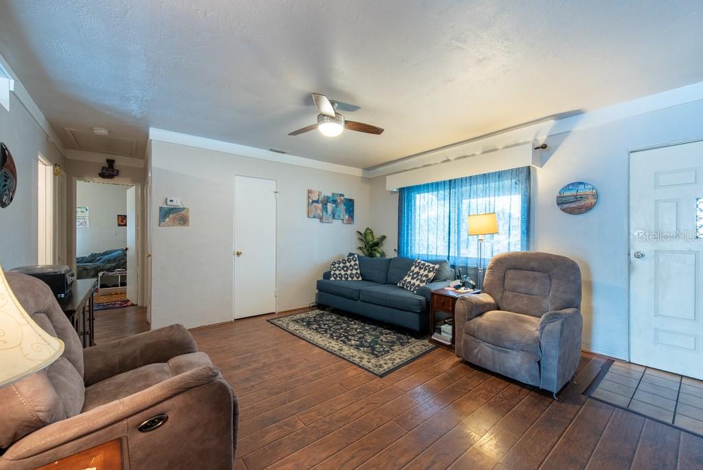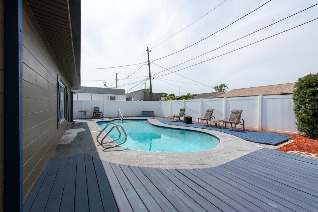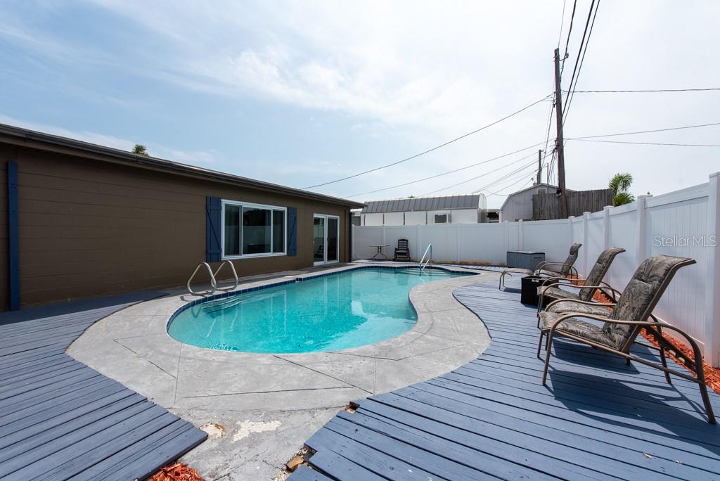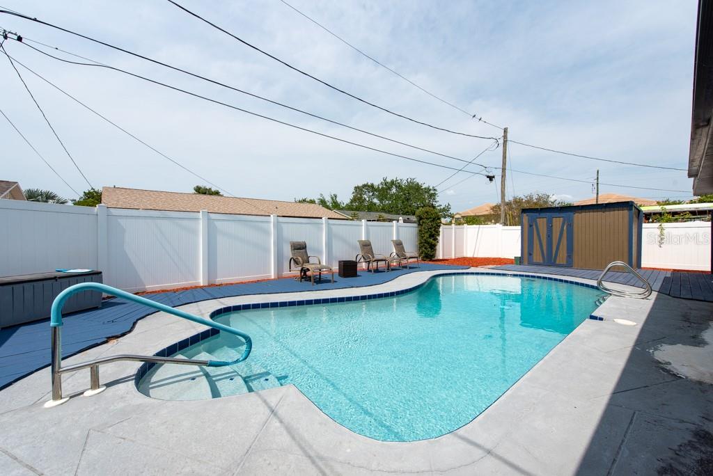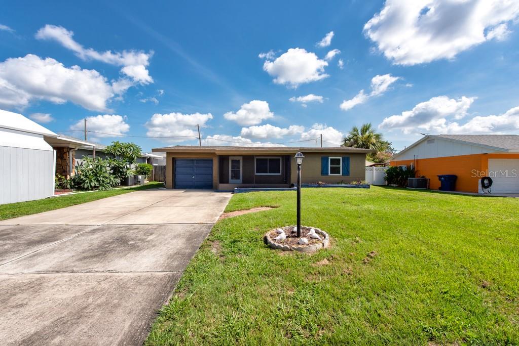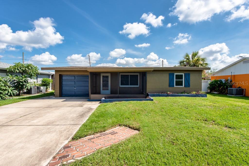 MOTIVATED SELLER! MOVE IN READY CONDITION! This 3-bedroom, 2-bath gem is full of personality and packed with features that make everyday living feel like a breeze. Nestled on a quiet street with quick access to transportation, restaurants, shopping, and more, this home offers the perfect blend of comfort and convenience—with no HOA and no CDD fees to worry about. Step inside and you’ll find an inviting split-bedroom floor plan that makes the most of its 1,188 square feet. The oversized, updated kitchen is a standout, featuring new appliances, ample cabinetry, and plenty of counter space for cooking and entertaining. The layout flows into a cozy living area, accented by ceiling fans and abundant natural light from the BRAND NEW hurricane impact windows. The FRESHLY PAINTED EXTERIOR sets a cheerful tone, while the NEWLY ADDED FRONT SCREENED-IN PORCH adds a relaxing spot to enjoy morning coffee. In the back, you'll find a spacious, fully fenced yard with new vinyl fencing, a private pool, and a large storage shed—perfect for gardening, hobbies, or weekend gatherings. The 3-season room, complete with A/C, offers a flexible bonus space to enjoy year-round. Additional highlights include a private laundry area in the 1-car garage, generous storage throughout, and a thoughtful split-bedroom design ideal for privacy. Whether you’re looking for your first home, a peaceful retreat, or a low-maintenance lifestyle near all the essentials, this home checks all the boxes. ***HOME HAS NEVER FLOODED***Free 1/0 Interest Rate Buy Down when using Melissa Rodriguez with Citywide Home Mortgage - ask Listing Agent for details**