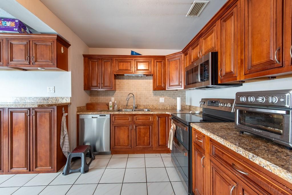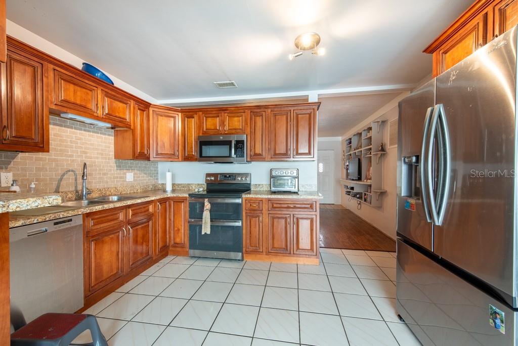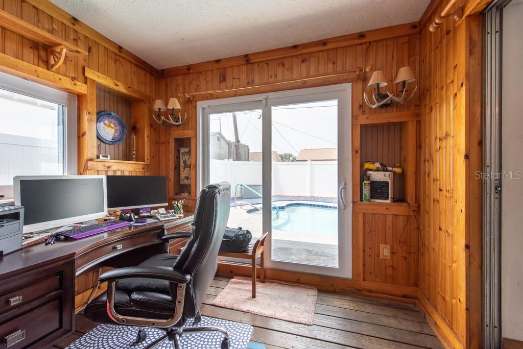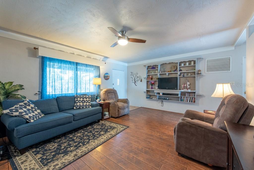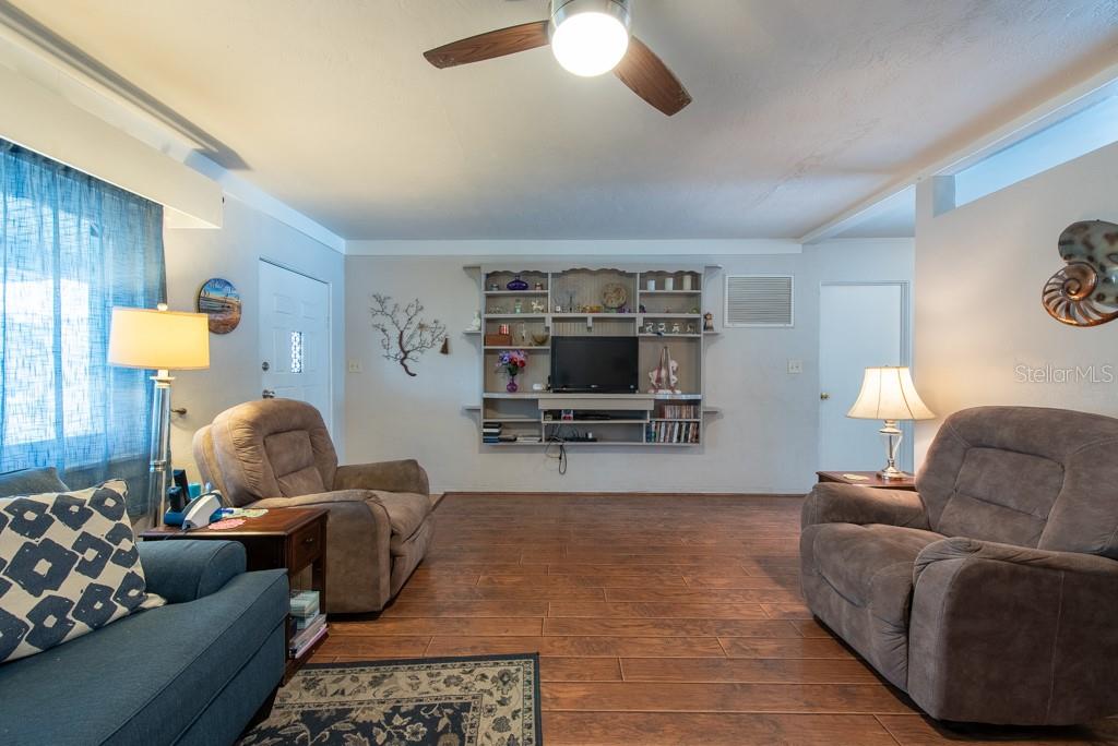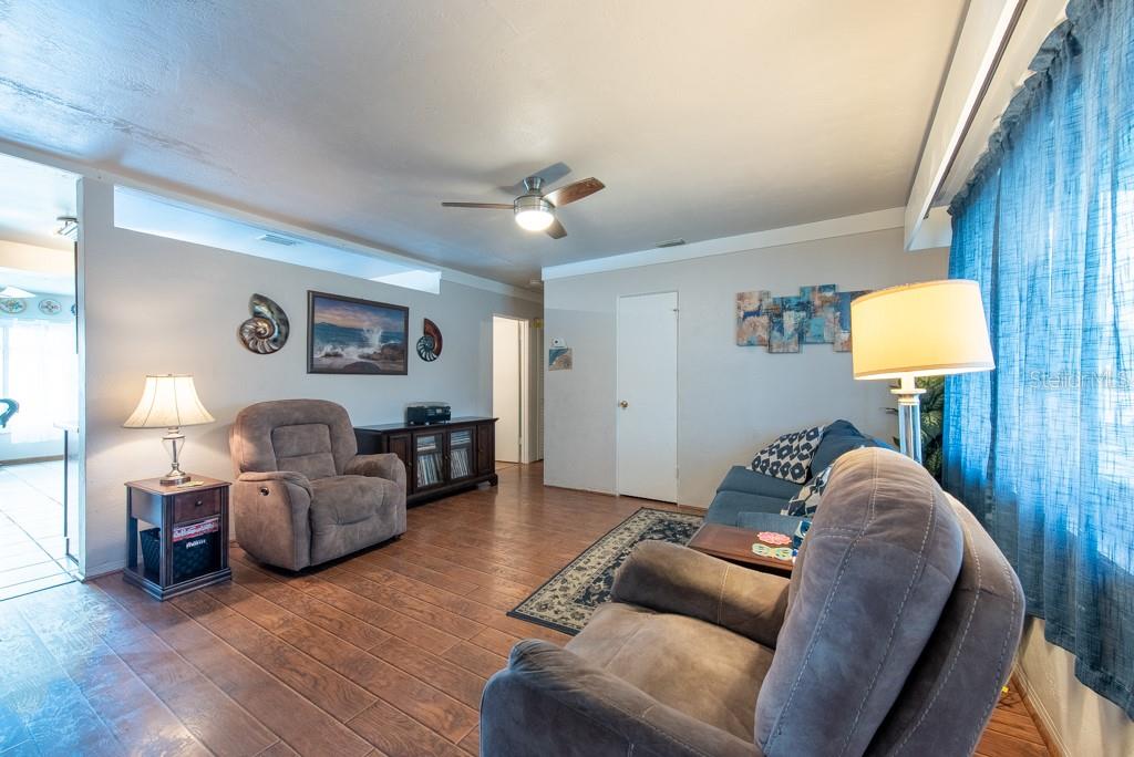 MOTIVATED SELLER! MOVE IN READY CONDITION! This 3-bedroom, 2-bath gem is full of personality and packed with features that make everyday living feel like a breeze. Nestled on a quiet street with quick access to transportation, restaurants, shopping, and more, this home offers the perfect blend of comfort and convenience—with no HOA and no CDD fees to worry about. Step inside and you’ll find an inviting split-bedroom floor plan that makes the most of its 1,188 square feet. The oversized, updated kitchen is a standout, featuring new appliances, ample cabinetry, and plenty of counter space for cooking and entertaining. The layout flows into a cozy living area, accented by ceiling fans and abundant natural light from the BRAND NEW hurricane impact windows. The FRESHLY PAINTED EXTERIOR sets a cheerful tone, while the NEWLY ADDED FRONT SCREENED-IN PORCH adds a relaxing spot to enjoy morning coffee. In the back, you'll find a spacious, fully fenced yard with new vinyl fencing, a private pool, and a large storage shed—perfect for gardening, hobbies, or weekend gatherings. The 3-season room, complete with A/C, offers a flexible bonus space to enjoy year-round. Additional highlights include a private laundry area in the 1-car garage, generous storage throughout, and a thoughtful split-bedroom design ideal for privacy. Whether you’re looking for your first home, a peaceful retreat, or a low-maintenance lifestyle near all the essentials, this home checks all the boxes. ***HOME HAS NEVER FLOODED***Free 1/0 Interest Rate Buy Down when using Melissa Rodriguez with Citywide Home Mortgage - ask Listing Agent for details**