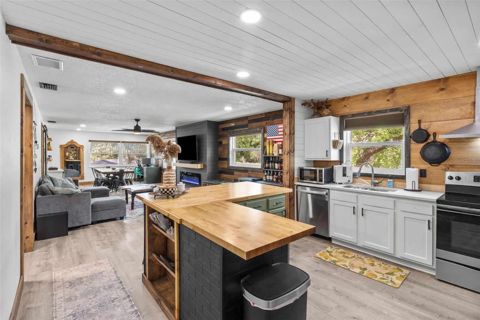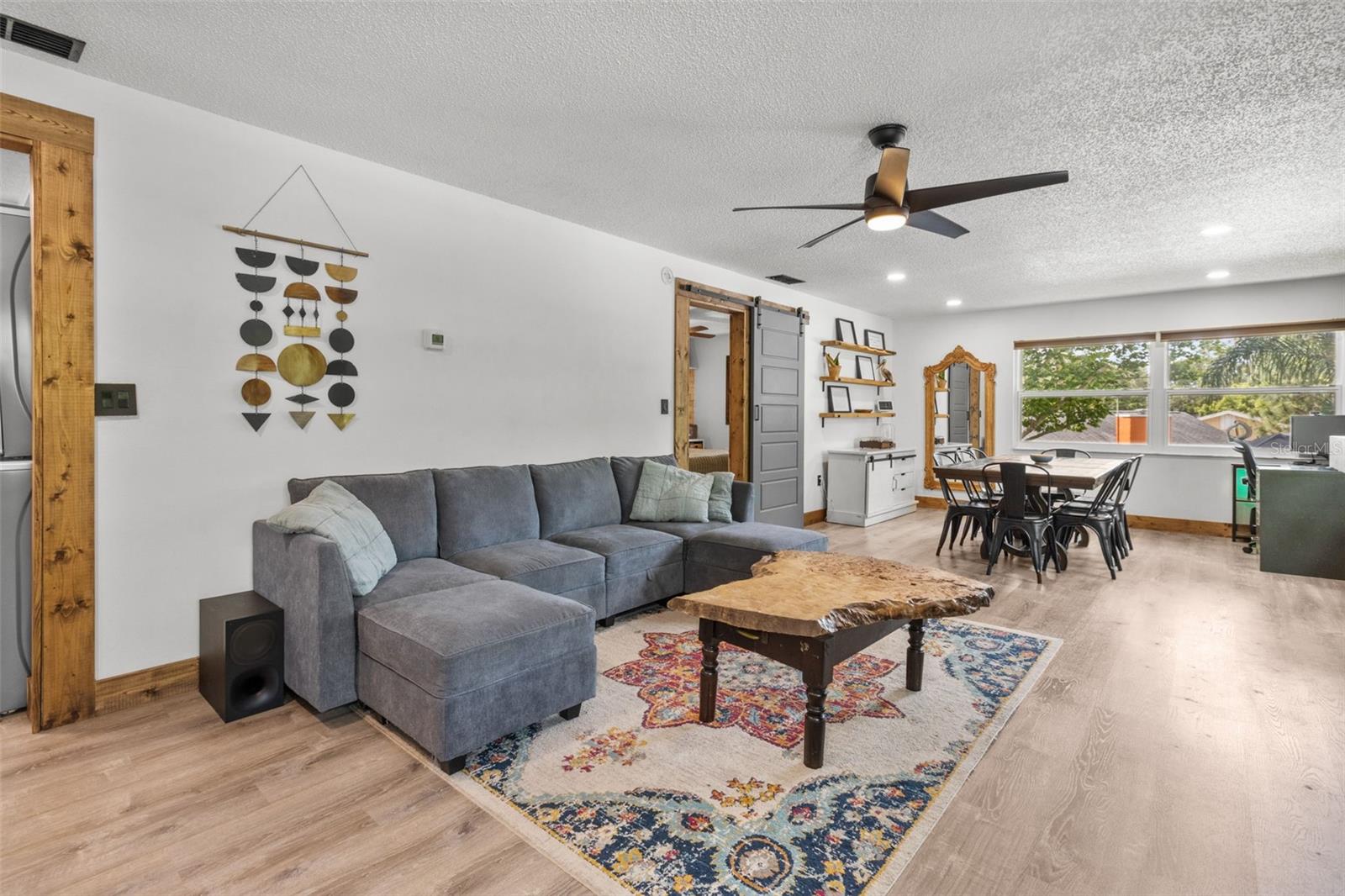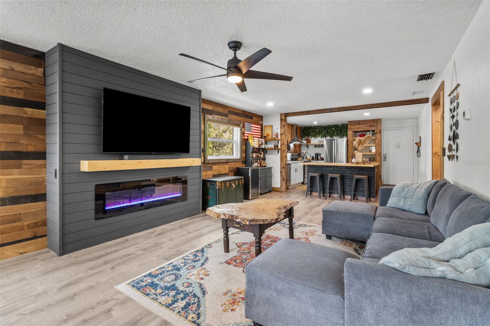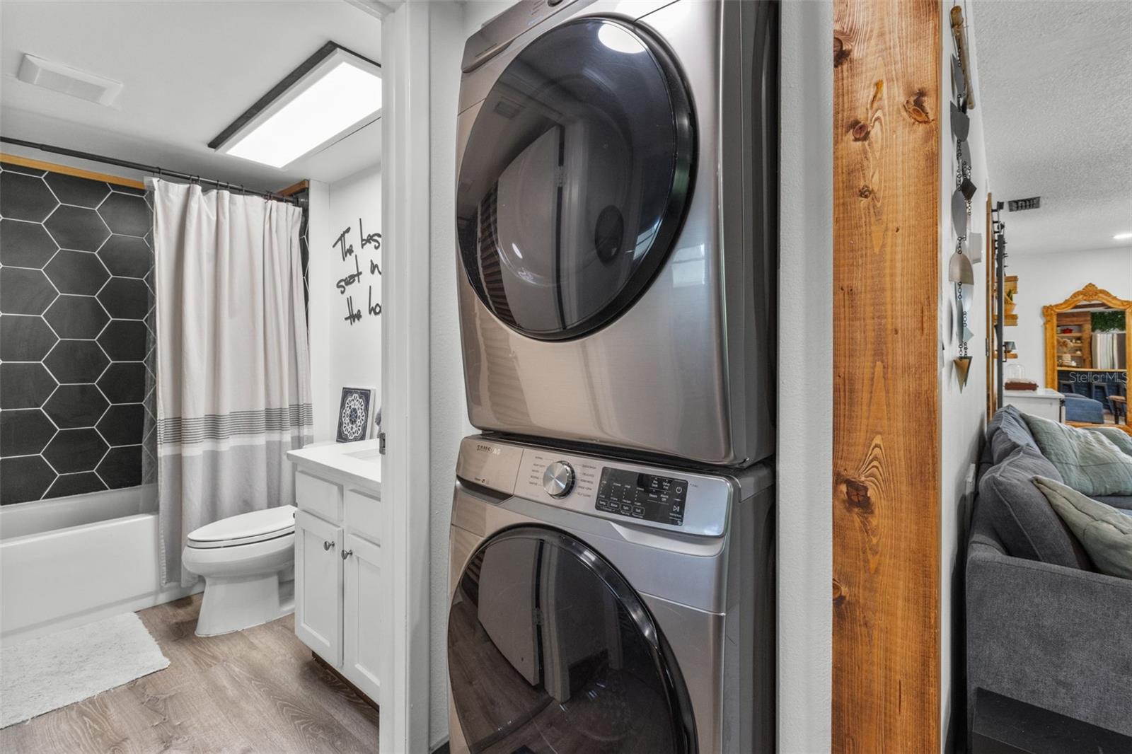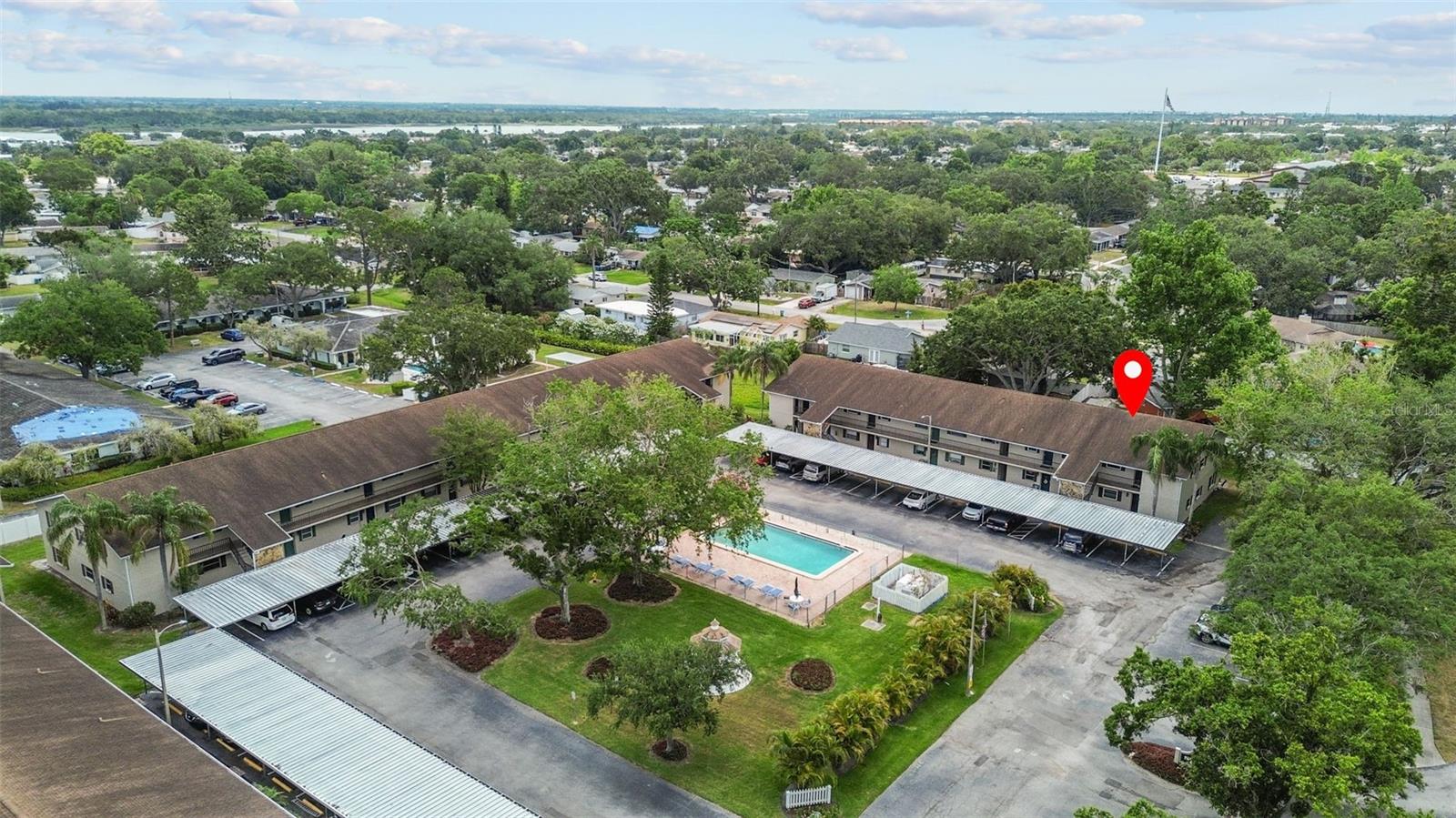 Check out the Rustic Look of this 2 bedroom 2 bath Second Floor Condo with an eye-catching electric fireplace accent wall! This End Unit brings added natural sunlight! Open floorplan offers many creative options for furniture placement. Primary Bedroom with walk-in closet and private bath. Low maintenance flooring throughout the unit. Laundry Closet with Washer and Dryer inside condo. Eight windows replaced with Hurricane Impact windows in 2020. New HVAC unit added in 2020. Additional insulation added in attic in 2023. Separate storage room just outside the front door. Assigned Carport parking space #201. Monthly maintenance fees of $464 include Cable TV, Internet, Water, Sewer, Trash, Community Pool and more! This Seminole Oaks condo is conveniently located between Largo Mall and Seminole City Center with access to lots of shopping and restaurants! You won't want to miss it!