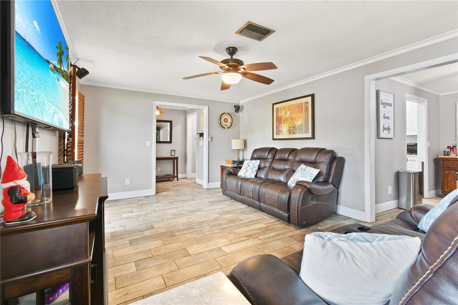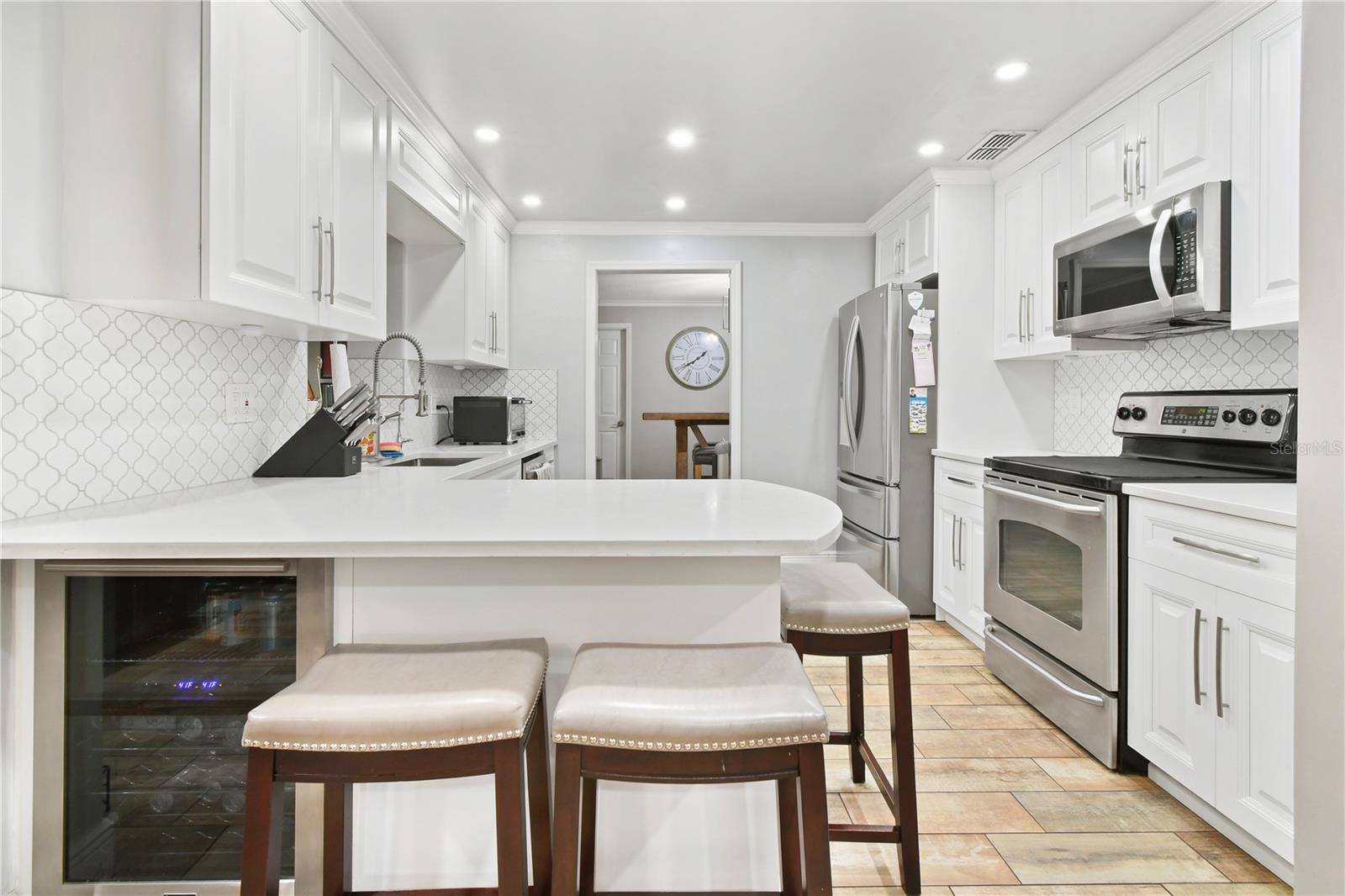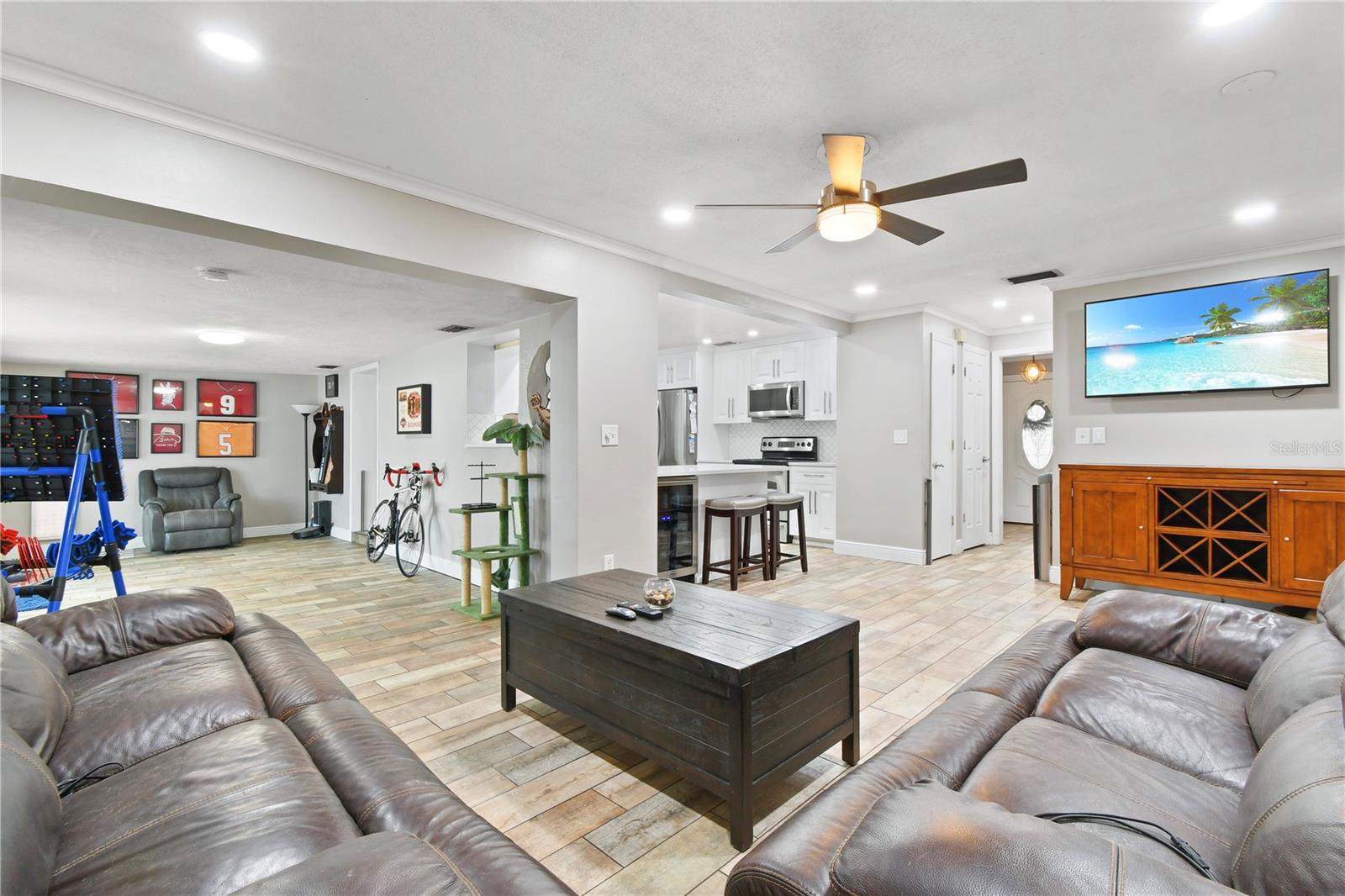 Welcome to your slice of paradise! This beautifully updated 3-bedroom, 2-bath saltwater pool home sits just shy of 2,000 square feet on an oversized nearly quarter-acre lot in highly desirable unincorporated Seminole—ideal for short-term rentals or full-time living. Step inside to discover a warm, welcoming layout featuring wood-look tile flooring throughout the main living spaces, a split-bedroom floor plan, and multiple versatile living areas including a living room, family room, formal dining, and a charming Florida room. The stunning kitchen is the heart of the home with white shaker cabinetry, quartz countertops, stainless steel appliances, and a breakfast bar with built-in wine fridge—perfect for entertaining. Your private primary suite offers a spacious walk-in closet and a beautifully remodeled ensuite bath. Two additional bedrooms and a stylish second bath complete the interior. Step outside to your fully fenced backyard retreat, featuring a screen-enclosed saltwater pool & spa, covered patio and expansive green space, perfect for pets and parties! Other highlights include: Located in the top-rated Seminole school district, 6 minutes to Indian Shores beach, No flood insurance required – non-flood zone, No hurricane damage, Unincorporated zoning – short-term rental friendly! Whether you’re seeking a profitable investment or a forever home, this one checks every box. Schedule your private showing today and make this Seminole gem yours!
