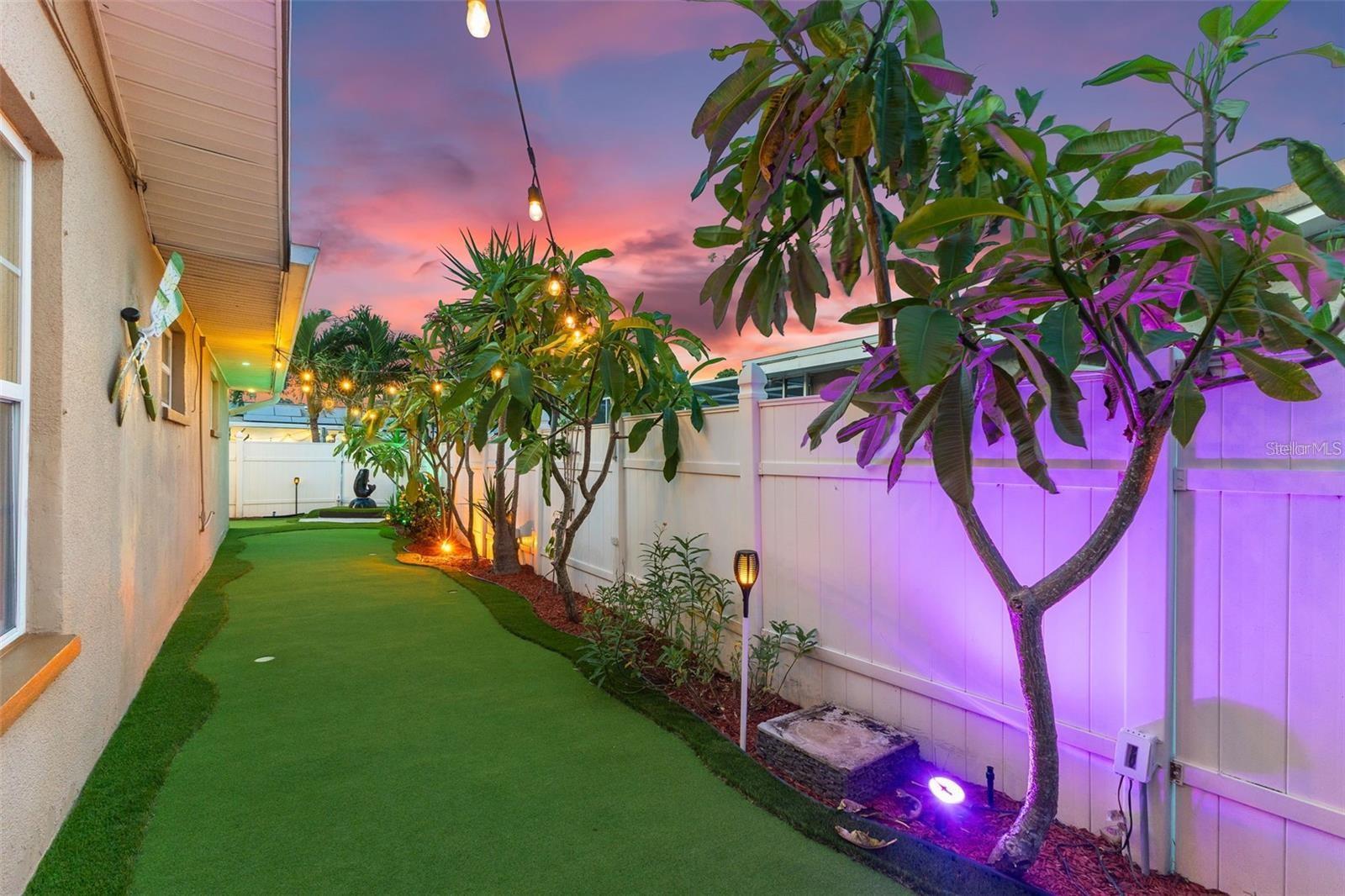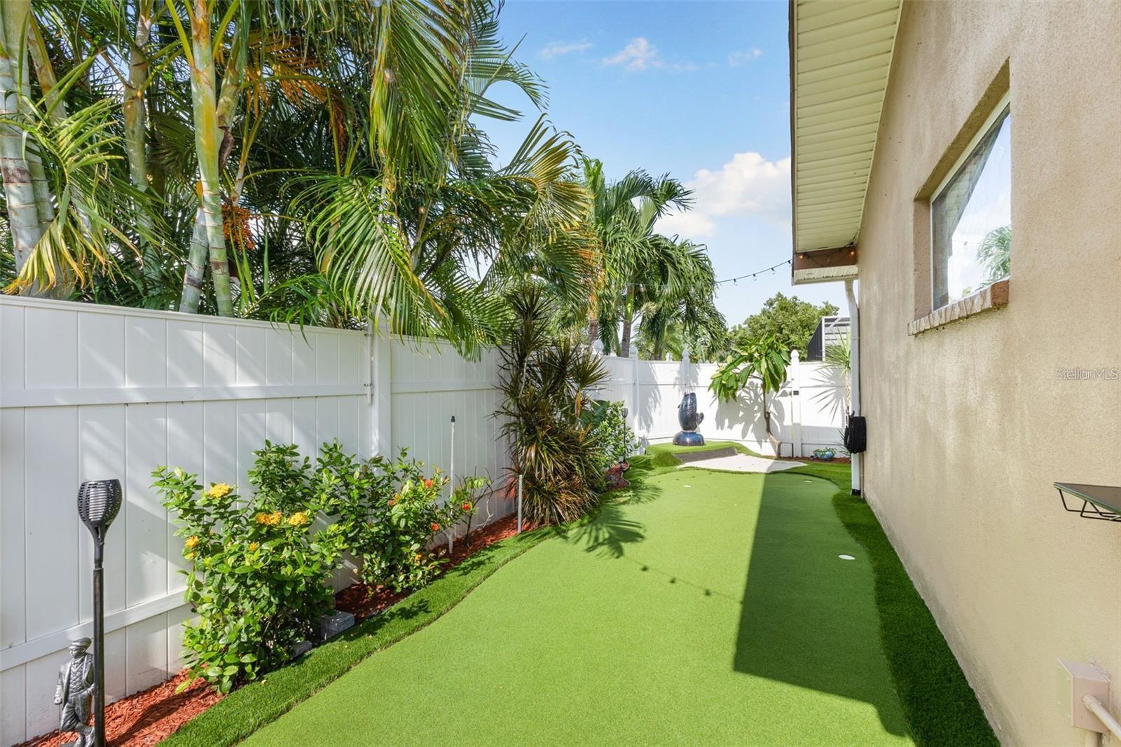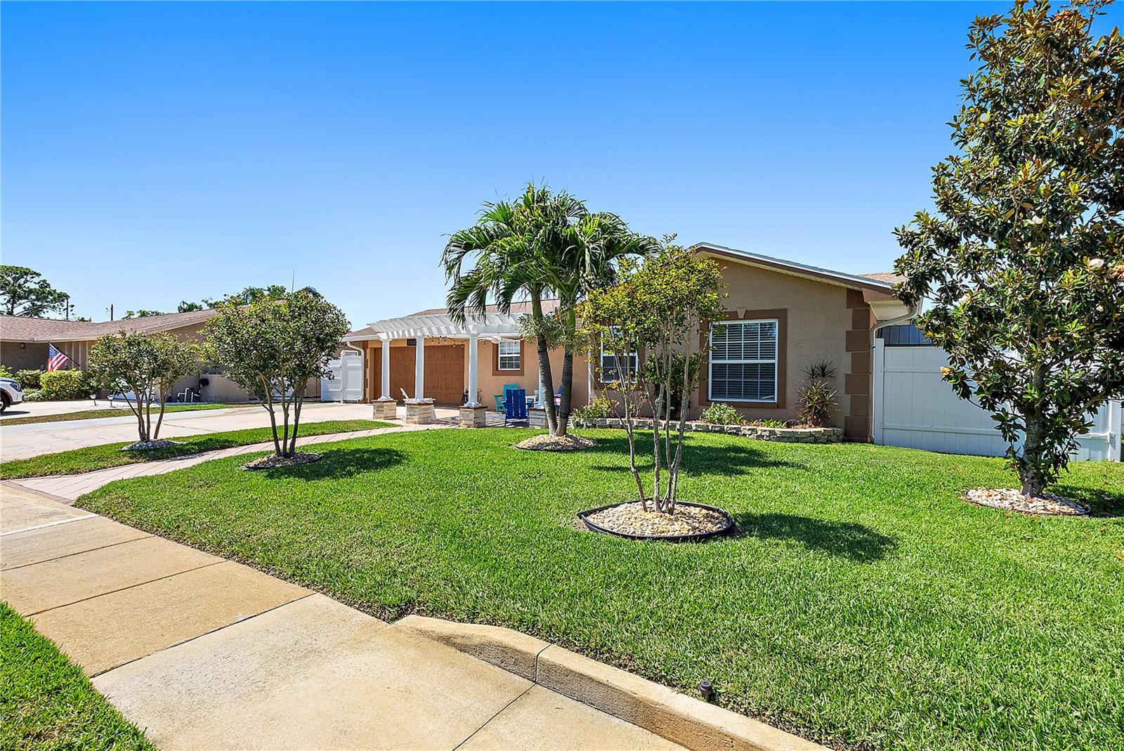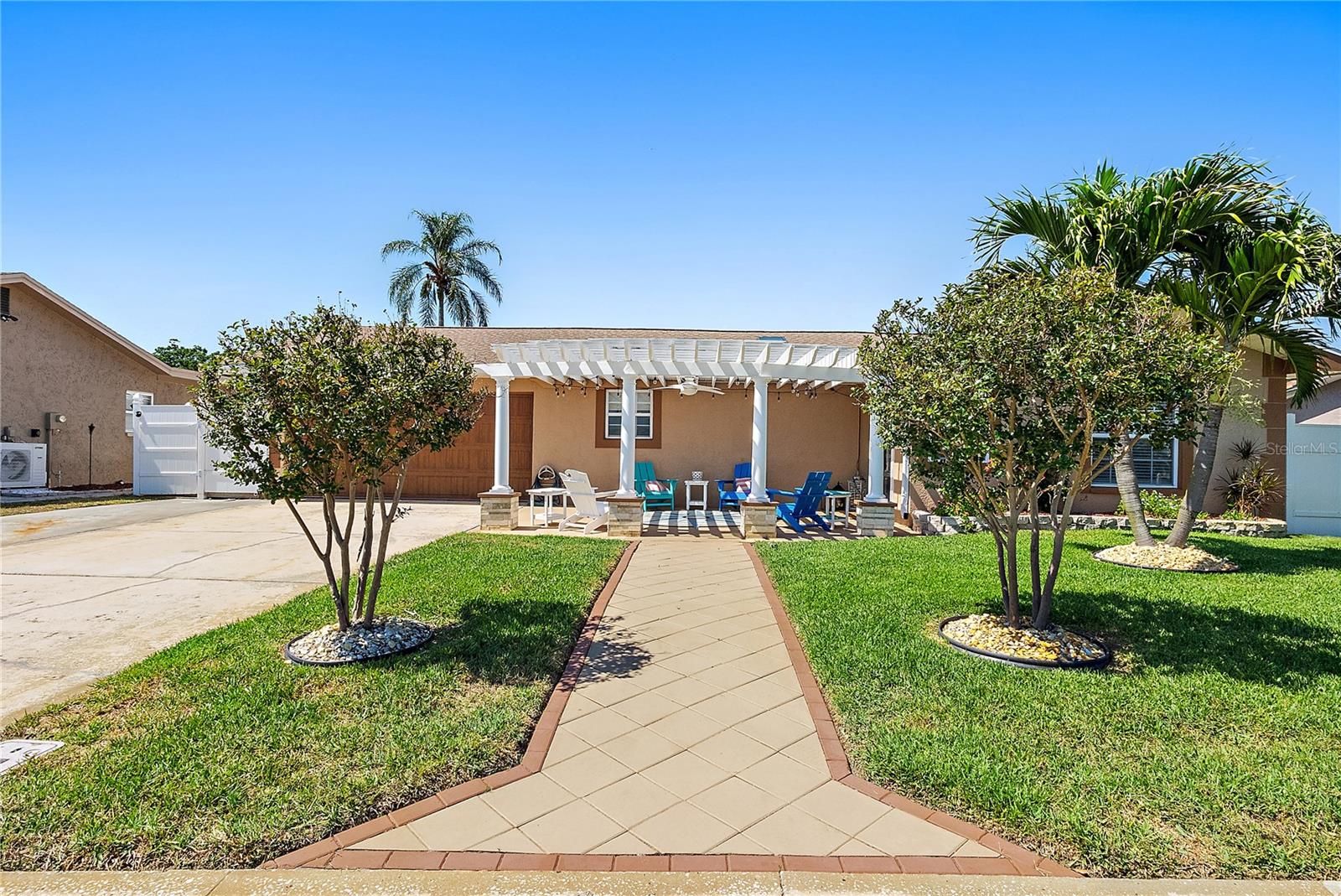 This house is great - no doubt about it! A lot of beauty, a lot of entertainment/relaxation space or a lot of activities available. Beautiful manicured landscape with a paved walkway that leads to a recently updated, open concept interior. The updates don't just include the aesthetic designs of the new kitchen featuring a large center island and two-tone wood shaker cabinets with quartz countertops all sitting on brand new luxury vinyl flooring (2025) throughout the home but also include the big ticket items of new HVAC (2024), water heater (2025), full roof replacement (2016), new PebbleTec pool refinishing and pool pump (2024) and the newer hurricane rated garage door. So with all of the worries of big ticket failures behind you, you have plenty of time to entertain in your expansive 451sf family room with vaulted ceiling, custom built bar with refrigerator, and a large, stylish fireplace or head outside the family room that opens up to your backyard playground. The paver decked pool area boasts two covered cabanas that surround the large pool (35 x 13.5) with two cleaning systems included. There is also a 9 hole golf putting green (w a small sand trap as well) that is constructed of top quality, maintenance free artificial turf. Your putting green is surrounded by tropical foliage that also brings a little nature into your life with an active butterfly tree. This outdoor area features colored lighting to create an enjoyable entertaining ambiance. If all of that isn't enough - here's what you get in addition: 5 minute car ride (or take your golf cart if you have/want one) to the entrance of the quiet, public beach access to Indian Shores Beach on the Gulf of Mexico; 5 minutes from the Park Blvd boat ramp facility to launch your boat and perhaps do a little fishing; 5 minutes to the Pinellas Trail providing 95 miles of private bike trail from south St. Pete to Tarpon Springs; 5 minutes to Boca Ciega Millenium Park which has a kayak launch and a 3 story lookout tower over the intercoastal (among many picnic areas and playgrounds) to watch our beautiful sunsets; 8 minutes to Seminole City Park that offers musical concerts in its own band pavilion. And when you're done with all of the activities for the day, you can head to the plethora of eateries, boutiques either on the beach or at the Town Center. Oh ---- and school --- yes, that's important too ---this community is located in one of the best school systems in the county and the campus that houses all three levels of school (primary, middle and high school) is between .3 - .5 miles away. What a community! What a life!