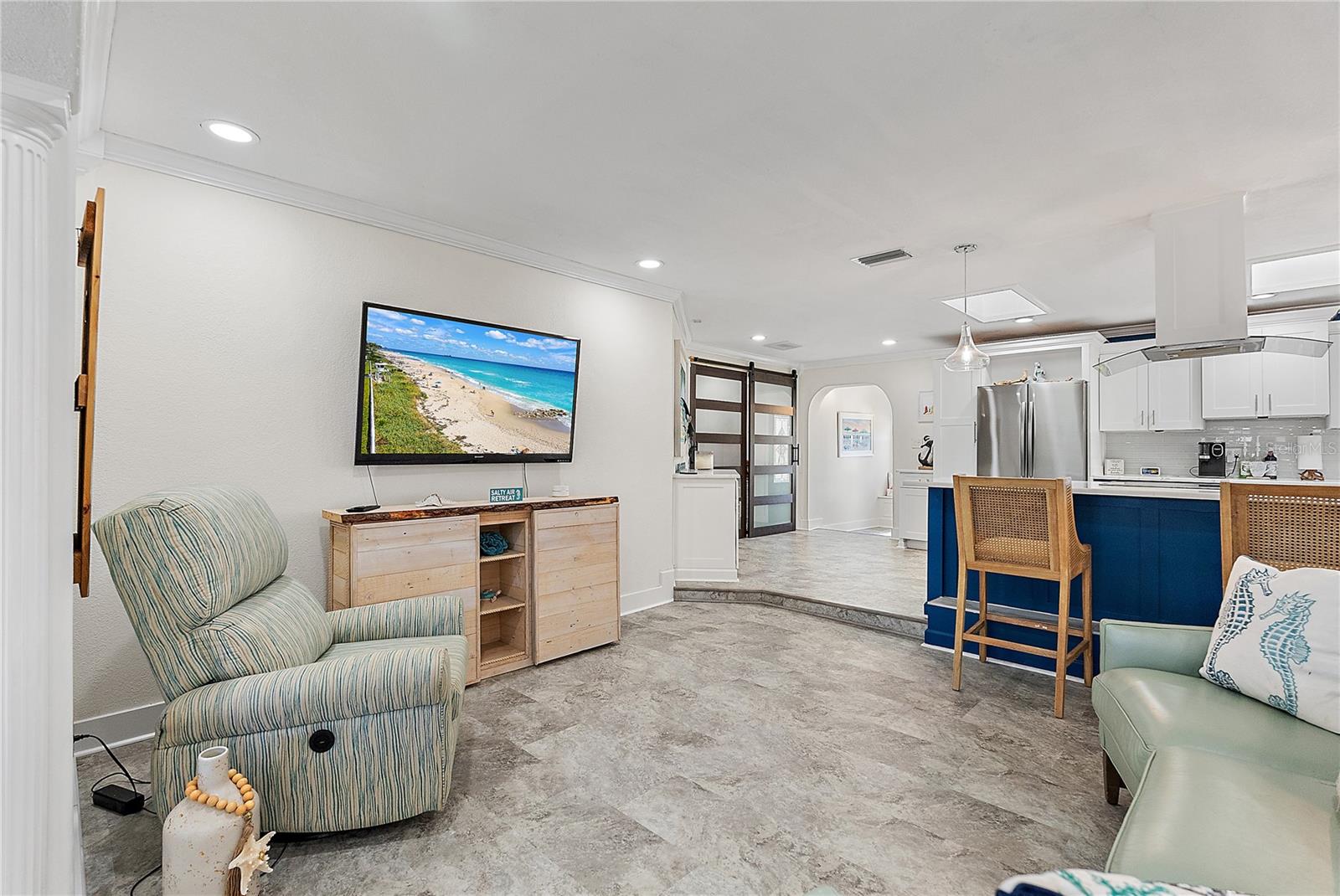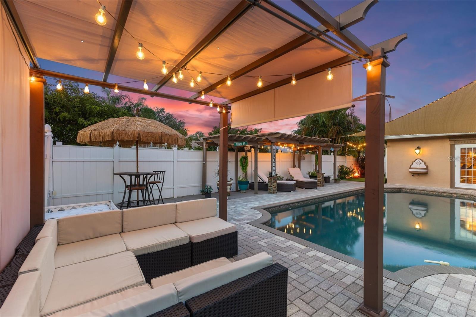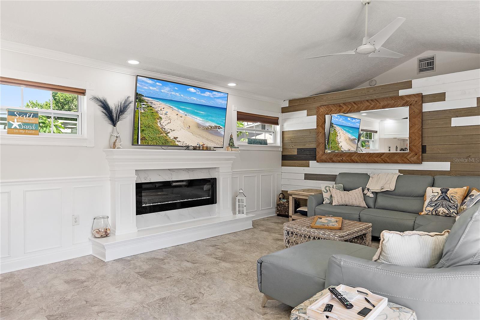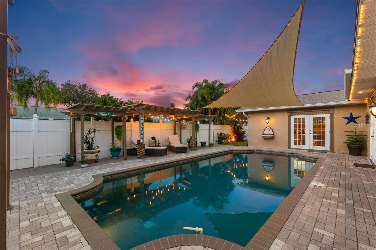 This house is great - no doubt about it! A lot of beauty, a lot of entertainment/relaxation space or a lot of activities available. Beautiful manicured landscape with a paved walkway that leads to a recently updated, open concept interior. The updates don't just include the aesthetic designs of the new kitchen featuring a large center island and two-tone wood shaker cabinets with quartz countertops all sitting on brand new luxury vinyl flooring (2025) throughout the home but also include the big ticket items of new HVAC (2024), water heater (2025), full roof replacement (2016), new PebbleTec pool refinishing and pool pump (2024) and the newer hurricane rated garage door. So with all of the worries of big ticket failures behind you, you have plenty of time to entertain in your expansive 451sf family room with vaulted ceiling, custom built bar with refrigerator, and a large, stylish fireplace or head outside the family room that opens up to your backyard playground. The paver decked pool area boasts two covered cabanas that surround the large pool (35 x 13.5) with two cleaning systems included. There is also a 9 hole golf putting green (w a small sand trap as well) that is constructed of top quality, maintenance free artificial turf. Your putting green is surrounded by tropical foliage that also brings a little nature into your life with an active butterfly tree. This outdoor area features colored lighting to create an enjoyable entertaining ambiance. If all of that isn't enough - here's what you get in addition: 5 minute car ride (or take your golf cart if you have/want one) to the entrance of the quiet, public beach access to Indian Shores Beach on the Gulf of Mexico; 5 minutes from the Park Blvd boat ramp facility to launch your boat and perhaps do a little fishing; 5 minutes to the Pinellas Trail providing 95 miles of private bike trail from south St. Pete to Tarpon Springs; 5 minutes to Boca Ciega Millenium Park which has a kayak launch and a 3 story lookout tower over the intercoastal (among many picnic areas and playgrounds) to watch our beautiful sunsets; 8 minutes to Seminole City Park that offers musical concerts in its own band pavilion. And when you're done with all of the activities for the day, you can head to the plethora of eateries, boutiques either on the beach or at the Town Center. Oh ---- and school --- yes, that's important too ---this community is located in one of the best school systems in the county and the campus that houses all three levels of school (primary, middle and high school) is between .3 - .5 miles away. What a community! What a life!