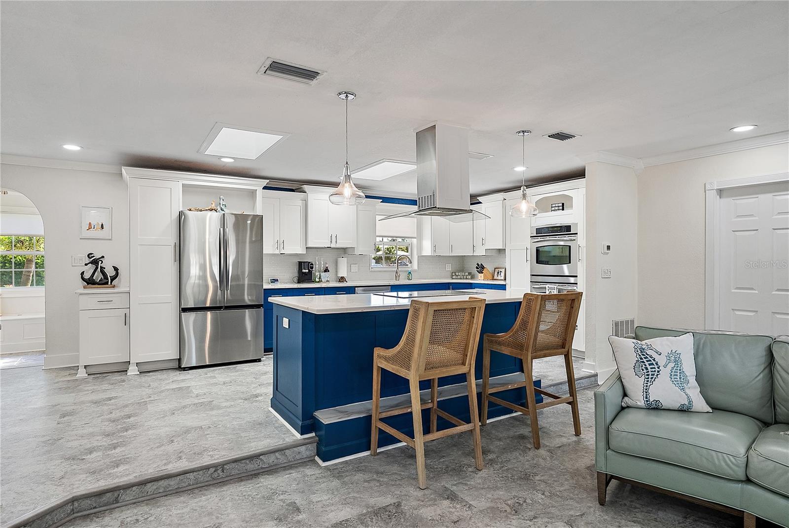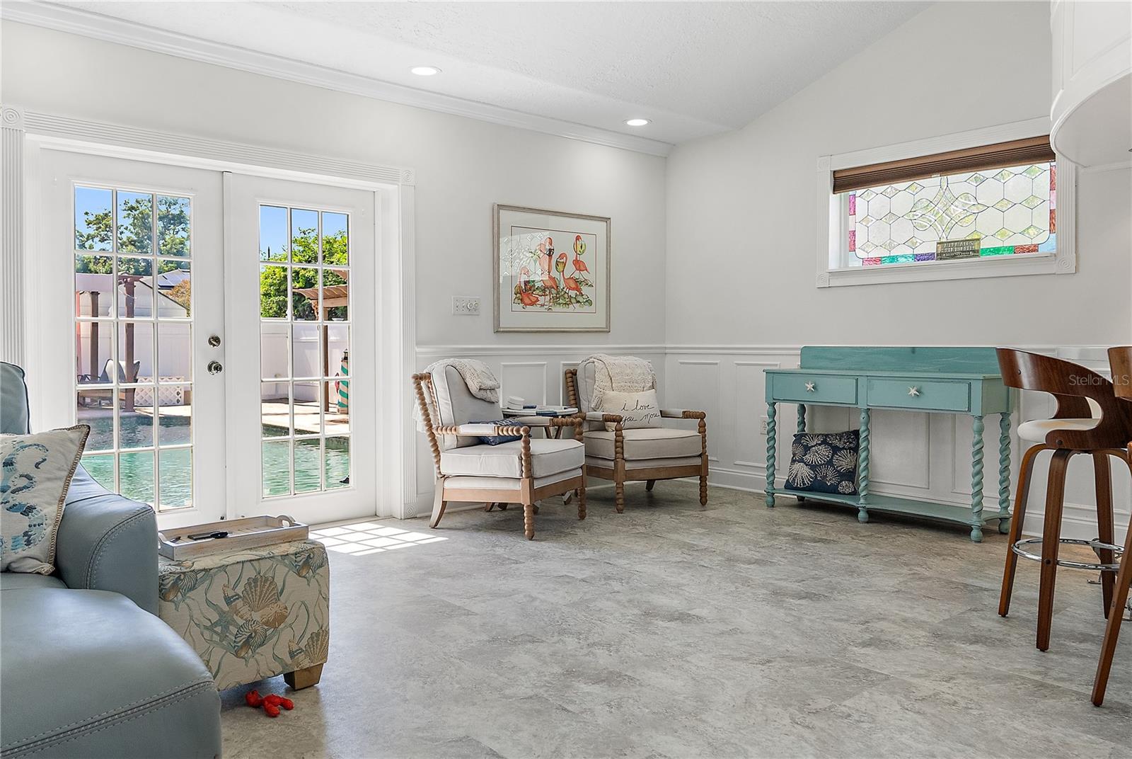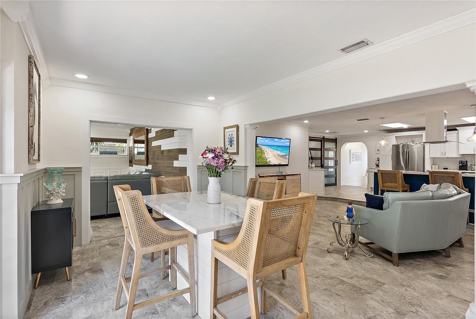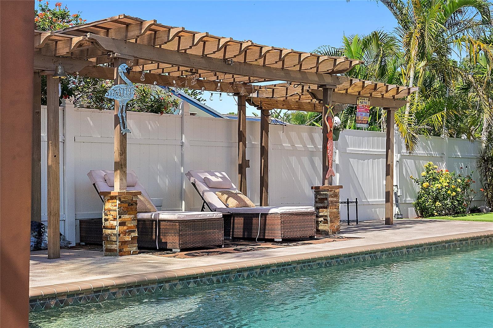 This house is great - no doubt about it! A lot of beauty, a lot of entertainment/relaxation space or a lot of activities available. Beautiful manicured landscape with a paved walkway that leads to a recently updated, open concept interior. The updates don't just include the aesthetic designs of the new kitchen featuring a large center island and two-tone wood shaker cabinets with quartz countertops all sitting on brand new luxury vinyl flooring (2025) throughout the home but also include the big ticket items of new HVAC (2024), water heater (2025), full roof replacement (2016), new PebbleTec pool refinishing and pool pump (2024) and the newer hurricane rated garage door. So with all of the worries of big ticket failures behind you, you have plenty of time to entertain in your expansive 451sf family room with vaulted ceiling, custom built bar with refrigerator, and a large, stylish fireplace or head outside the family room that opens up to your backyard playground. The paver decked pool area boasts two covered cabanas that surround the large pool (35 x 13.5) with two cleaning systems included. There is also a 9 hole golf putting green (w a small sand trap as well) that is constructed of top quality, maintenance free artificial turf. Your putting green is surrounded by tropical foliage that also brings a little nature into your life with an active butterfly tree. This outdoor area features colored lighting to create an enjoyable entertaining ambiance. If all of that isn't enough - here's what you get in addition: 5 minute car ride (or take your golf cart if you have/want one) to the entrance of the quiet, public beach access to Indian Shores Beach on the Gulf of Mexico; 5 minutes from the Park Blvd boat ramp facility to launch your boat and perhaps do a little fishing; 5 minutes to the Pinellas Trail providing 95 miles of private bike trail from south St. Pete to Tarpon Springs; 5 minutes to Boca Ciega Millenium Park which has a kayak launch and a 3 story lookout tower over the intercoastal (among many picnic areas and playgrounds) to watch our beautiful sunsets; 8 minutes to Seminole City Park that offers musical concerts in its own band pavilion. And when you're done with all of the activities for the day, you can head to the plethora of eateries, boutiques either on the beach or at the Town Center. Oh ---- and school --- yes, that's important too ---this community is located in one of the best school systems in the county and the campus that houses all three levels of school (primary, middle and high school) is between .3 - .5 miles away. What a community! What a life!