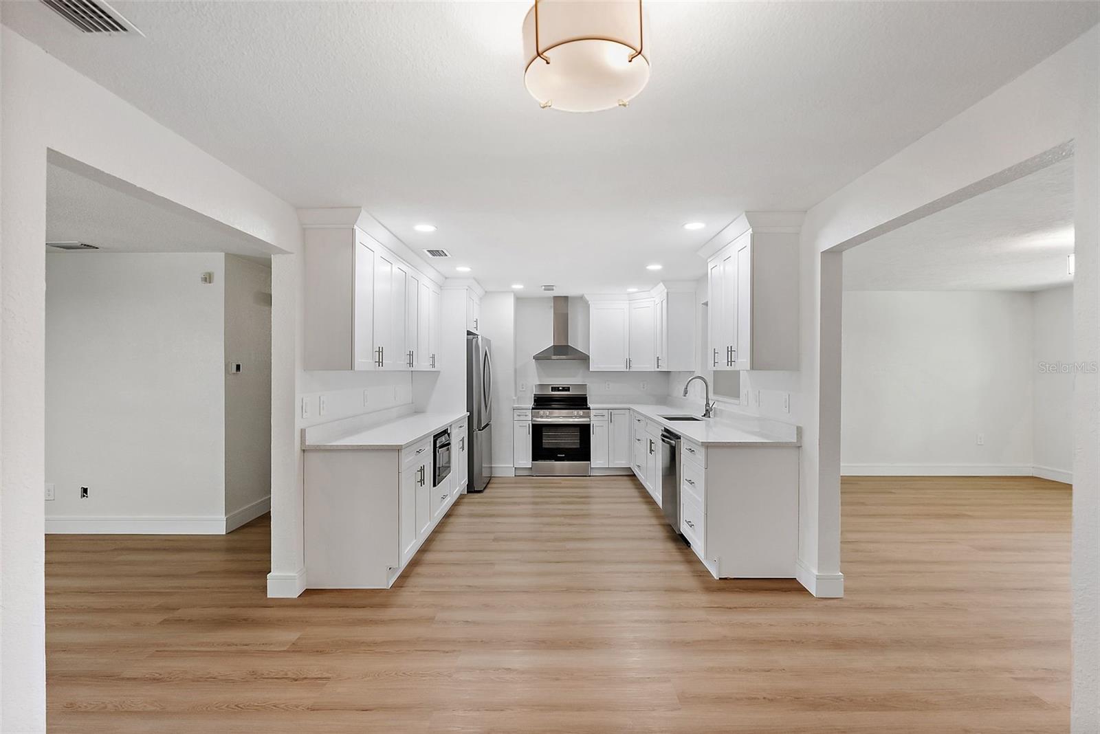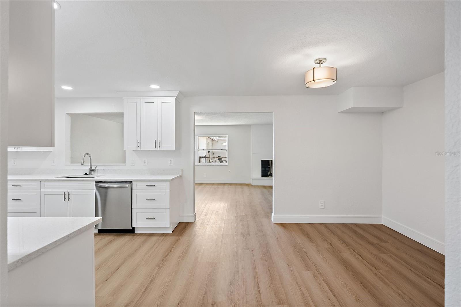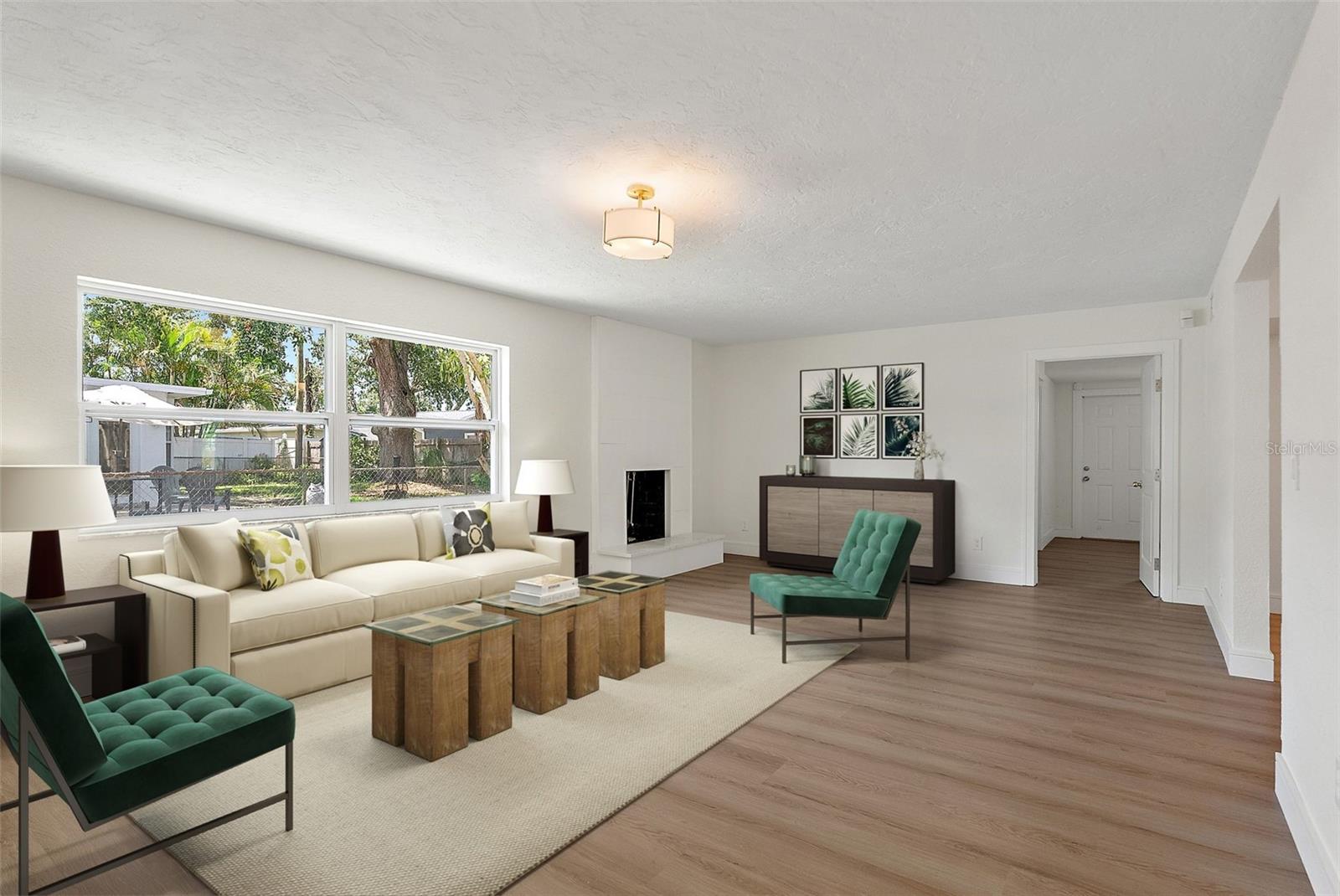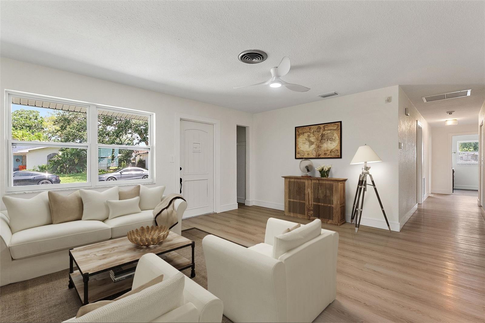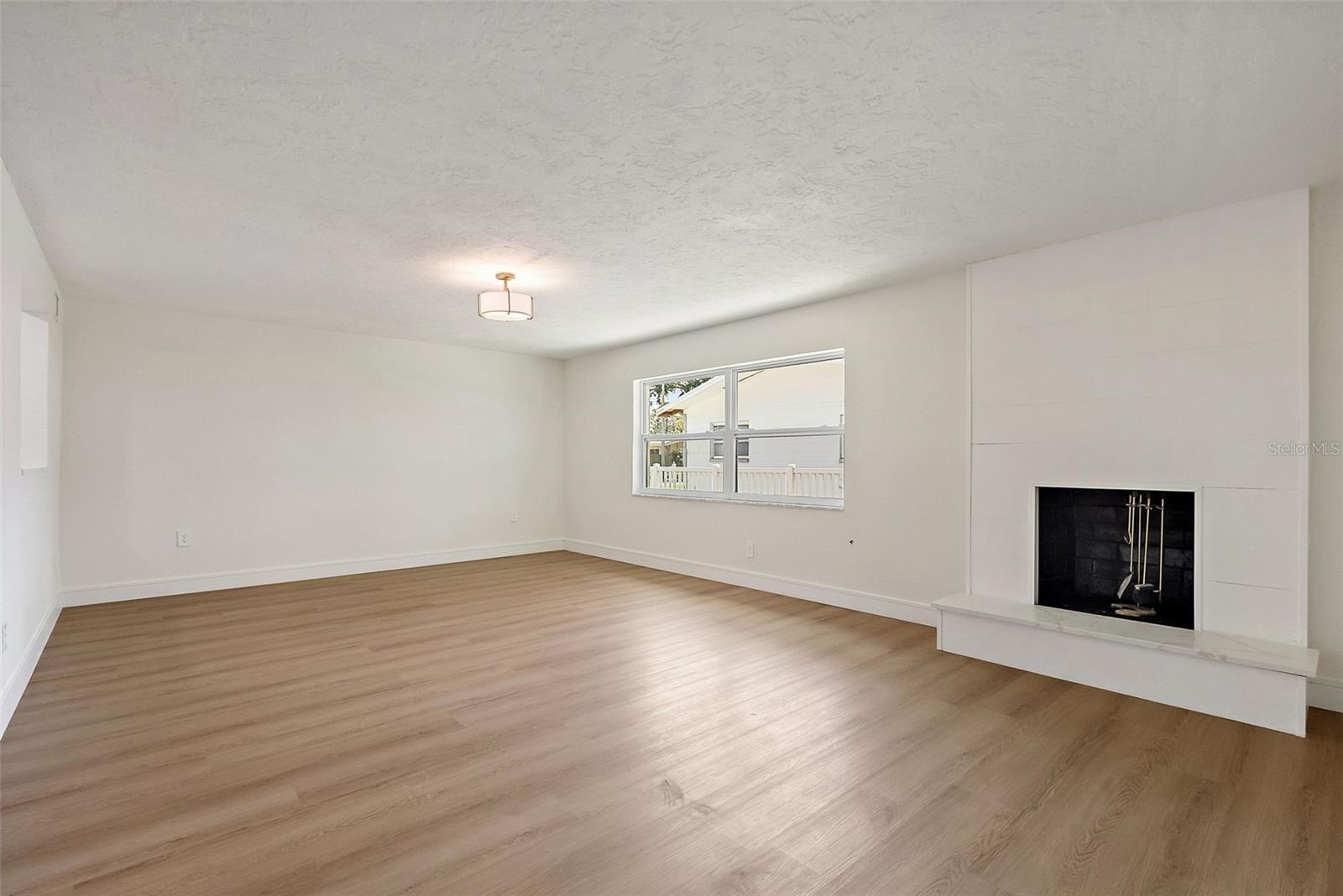 One or more photo(s) has been virtually staged. Welcome to this turnkey concrete block/stucco ranch-style home located in the highly sought-after, family-friendly neighborhood of Oakhurst Shores. Boasting 4 spacious bedrooms (3 with walk-in closets), 2 fully updated bathrooms, and both a formal living room with fireplace and a cozy family room, this home offers the perfect blend of comfort and modern style. Step inside to find luxury vinyl plank flooring throughout, fresh interior and exterior paint, new baseboards, and all new interior, entry, and closet doors. The kitchen is a showstopper, featuring white shaker-style cabinetry, quartz countertops, and updated LED lighting. Both bathrooms have been beautifully redone with tile surround, including a stunning master bath with a modern Rein shower. Additional features include a convenient indoor laundry/utility room, a one-car garage with newer garage door, and impact windows that offer peace of mind and energy efficiency. The roof is 2017. HVAC and the hot water heater are new, making this home truly move-in ready. Enjoy life in a welcoming neighborhood just minutes from Seminole City Center, top-rated schools, and the beautiful Gulf beaches. This is Florida living at its best—schedule your private showing today!