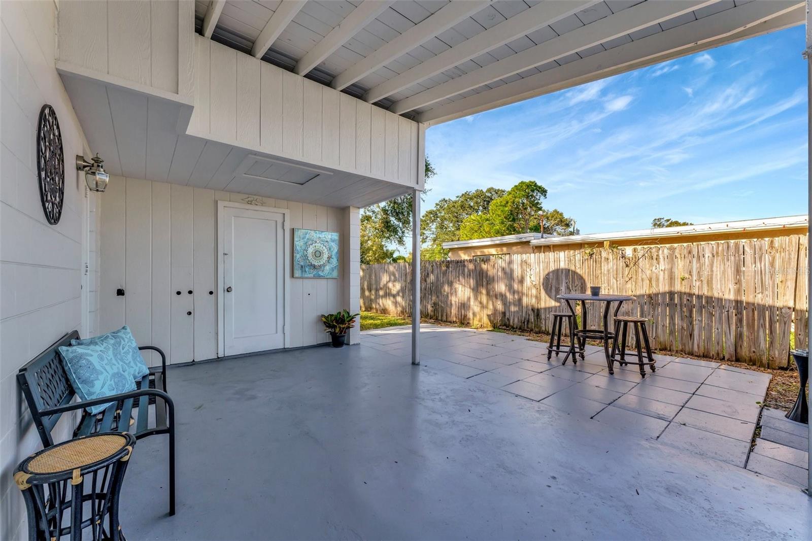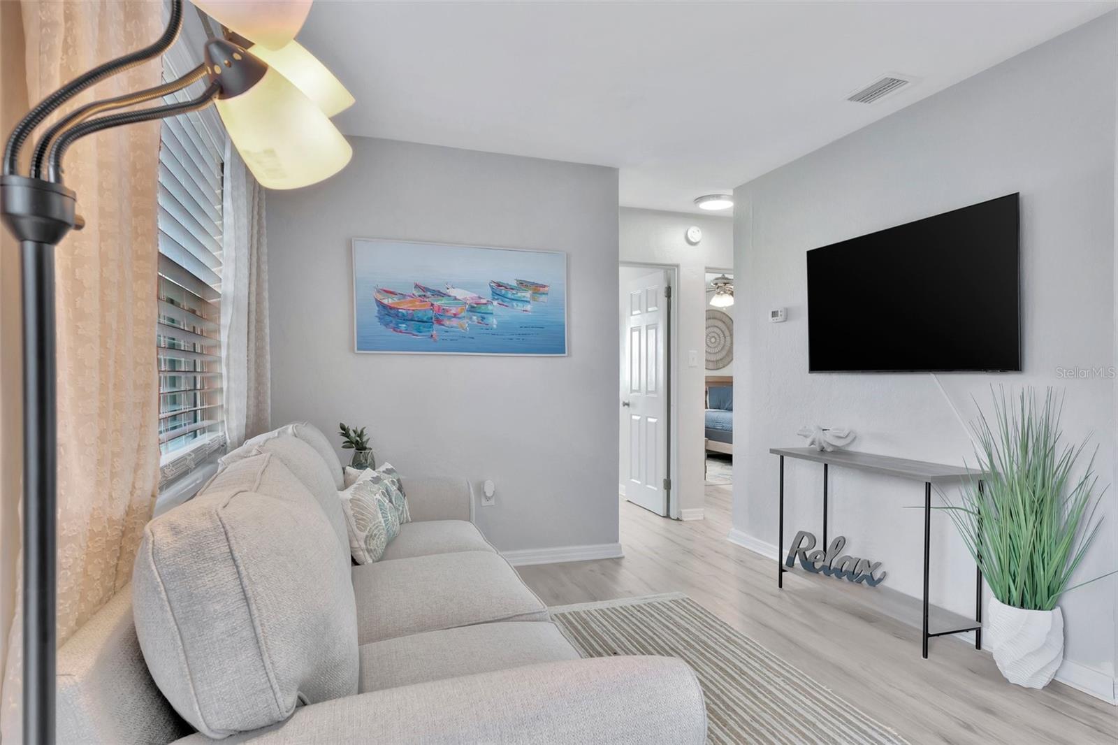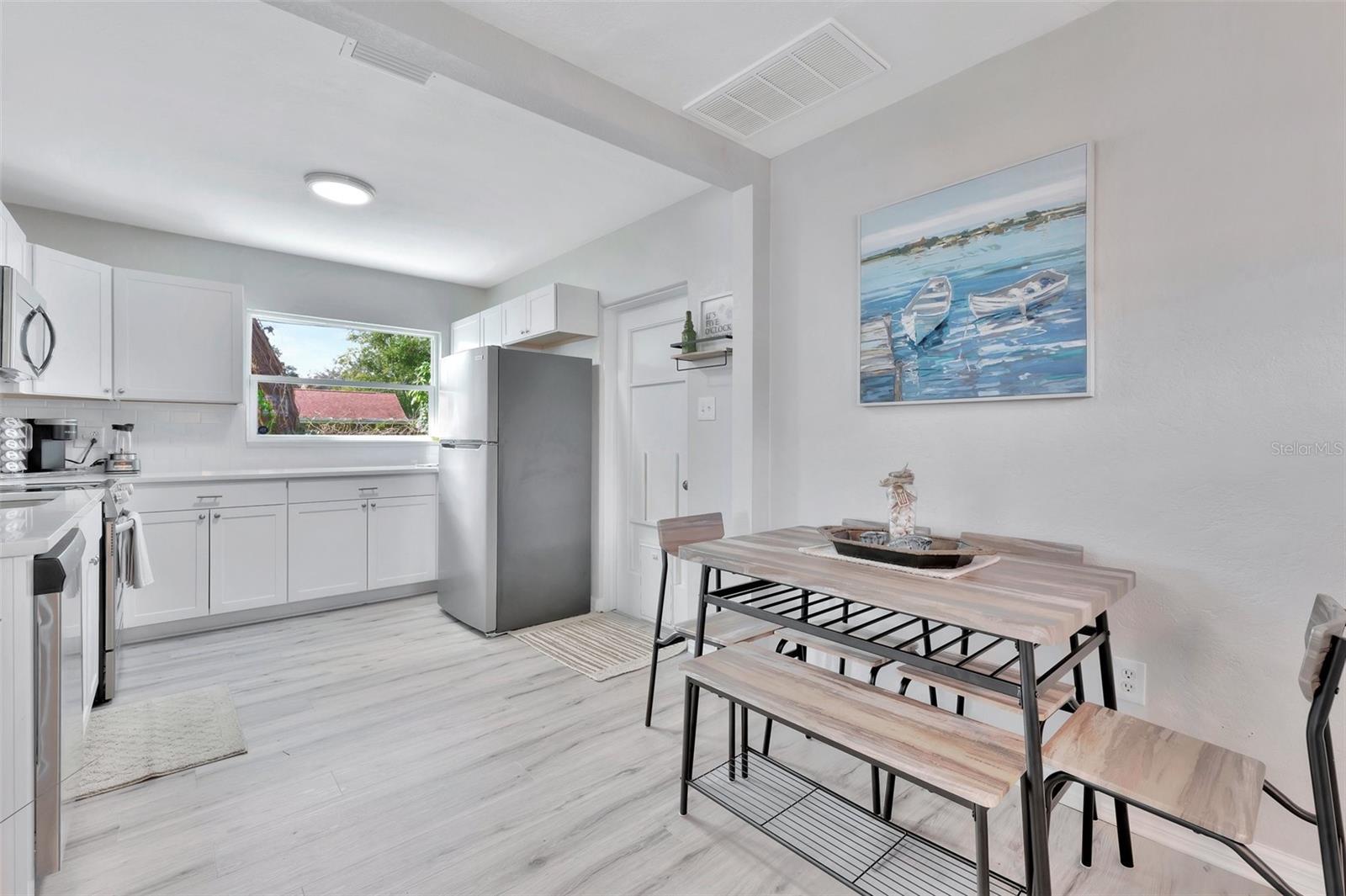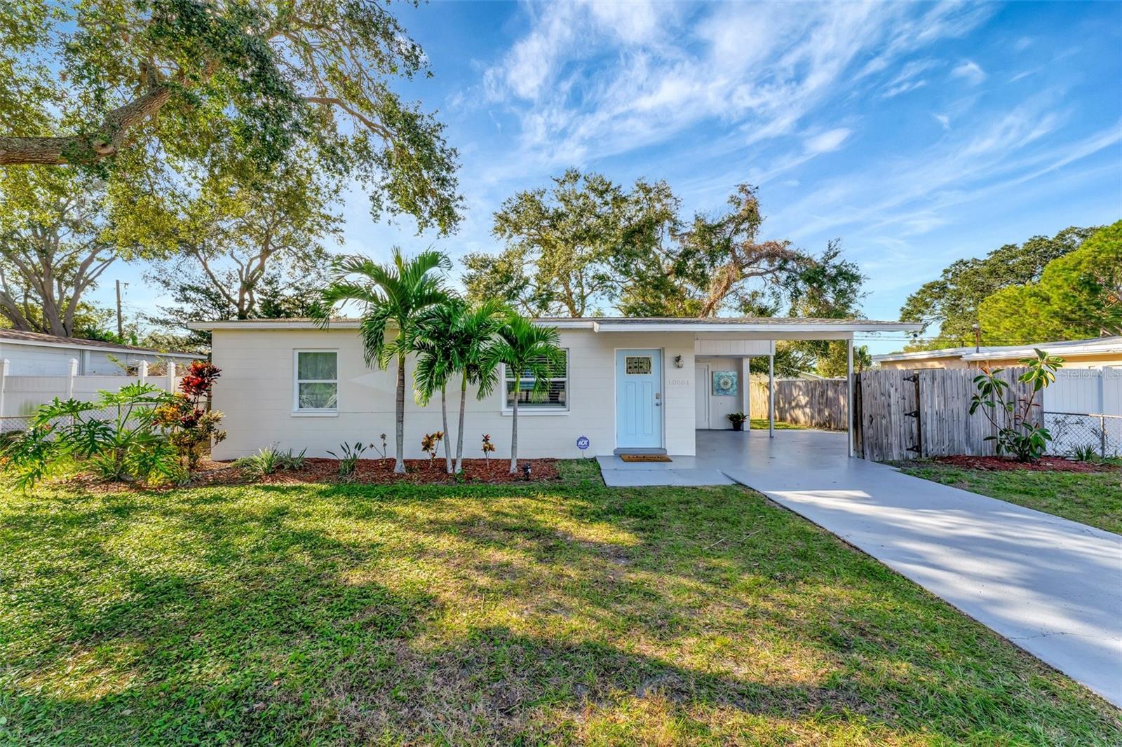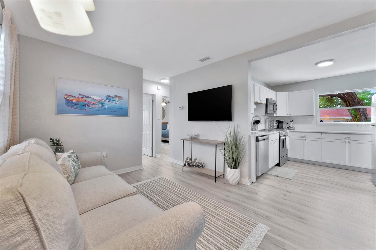 Step inside this standout gem that blends comfort, charm, and convenience in the desirable Starkey Heights neighborhood of Seminole, Florida. Situated on a generous 6,499 square foot lot, this beautifully updated 2-bedroom, 1-bath home offers 704 square feet of thoughtfully designed living space, ideal for full-time residents, seasonal snowbirds, or savvy investors seeking a turnkey opportunity. Operated as a successful Airbnb for the past few years, this home is being sold fully furnished, allowing for a seamless transition for short-term rental income or move-in-ready living. The light-filled interior boasts a fresh coastal-inspired palette, luxury vinyl plank flooring, and an open-concept living and dining area that flows into a renovated kitchen complete with stainless steel appliances, modern cabinetry, ample counter space, and a convenient breakfast bar. Both bedrooms are spacious and serene with ceiling fans, generous closet storage, and stylish furnishings. The updated bathroom features a sleek vanity, modern fixtures, and a fully tiled tub and shower combo. A stacked washer and dryer is smartly positioned in a hallway closet for space efficiency. Outside, the fully fenced backyard is a private retreat with a large paver patio ideal for outdoor dining, games, or lounging beneath mature shade trees. Whether relaxing in the sun or hosting guests, the outdoor space is well suited for Florida living. The manicured front yard and extended driveway provide excellent curb appeal and convenient off-street parking. Located minutes from top-rated schools, Seminole City Center, Lake Seminole Park, and the Gulf’s award-winning beaches including Madeira and Redington, the home is also near the Pinellas Trail and an array of dining, shopping, and medical services. With no HOA and no flood insurance required, this move-in-ready and income-producing home presents a rare chance to enjoy or invest in one of Pinellas County’s most sought-after neighborhoods.