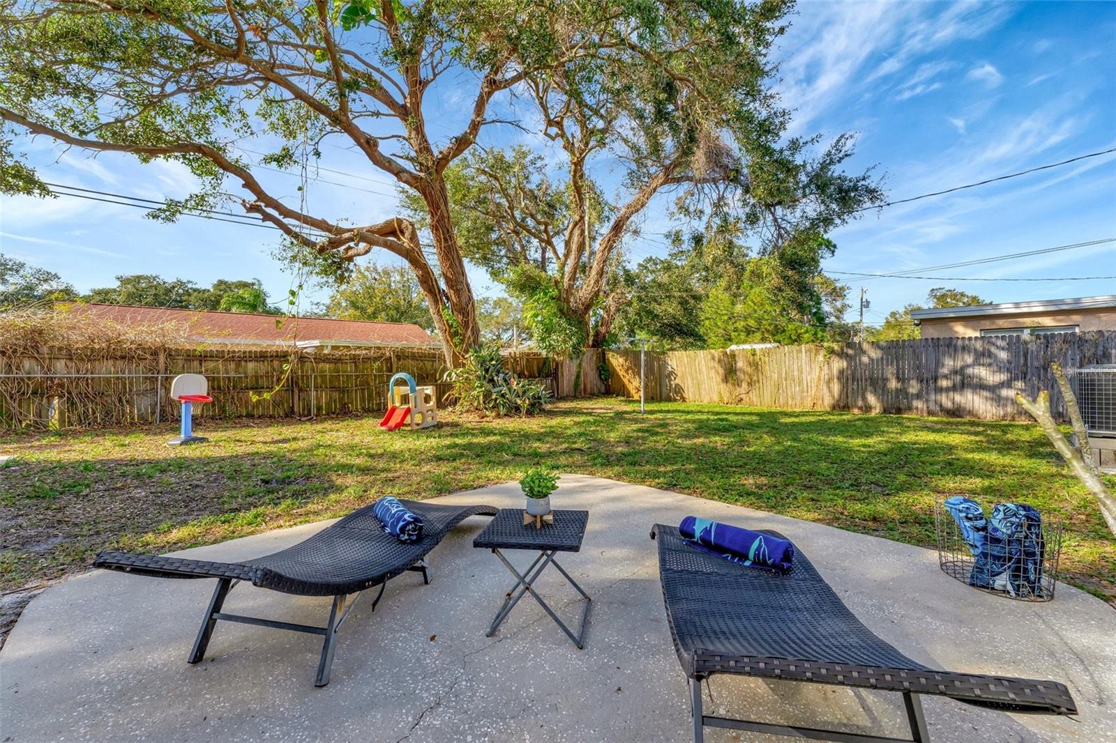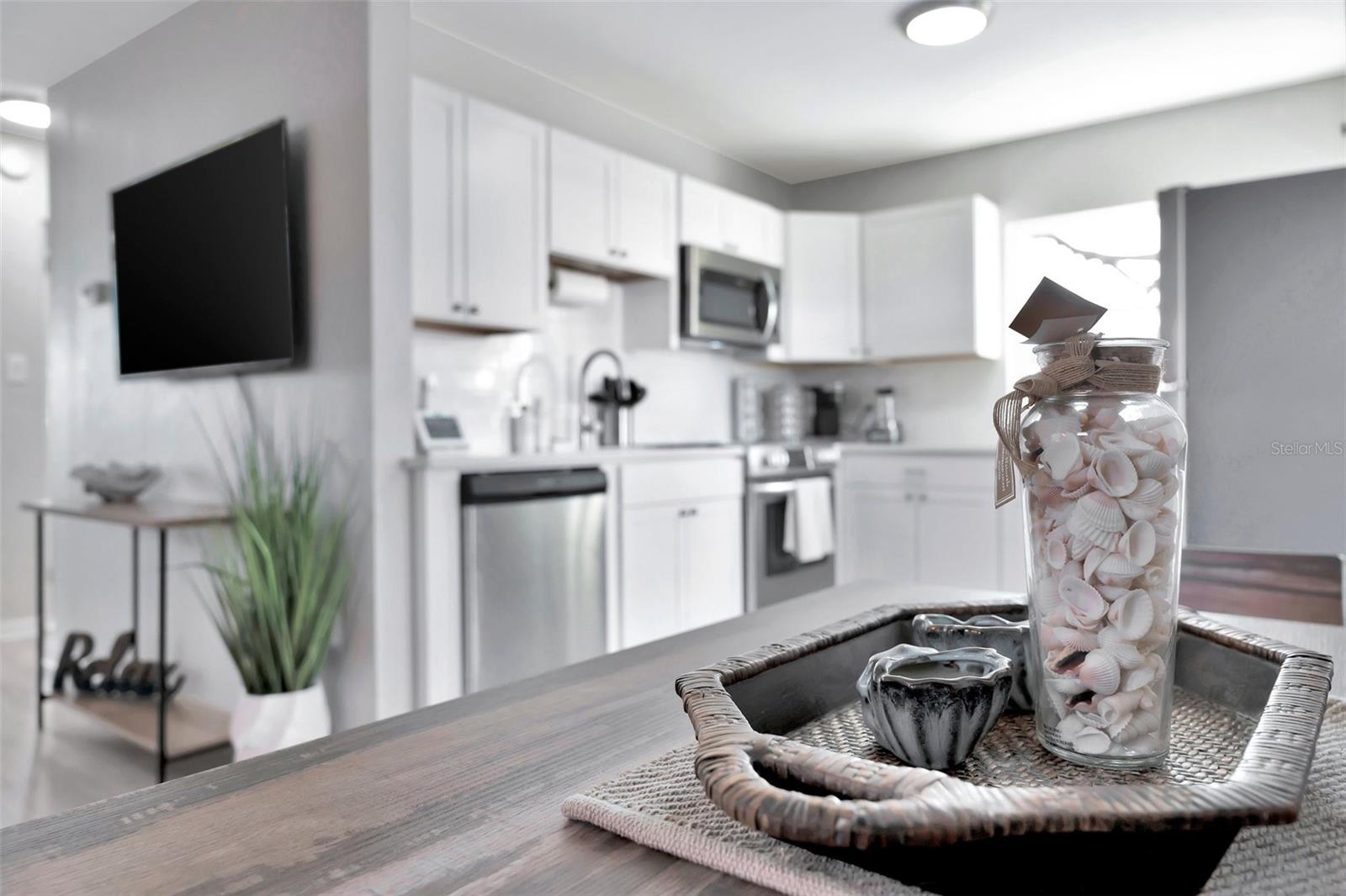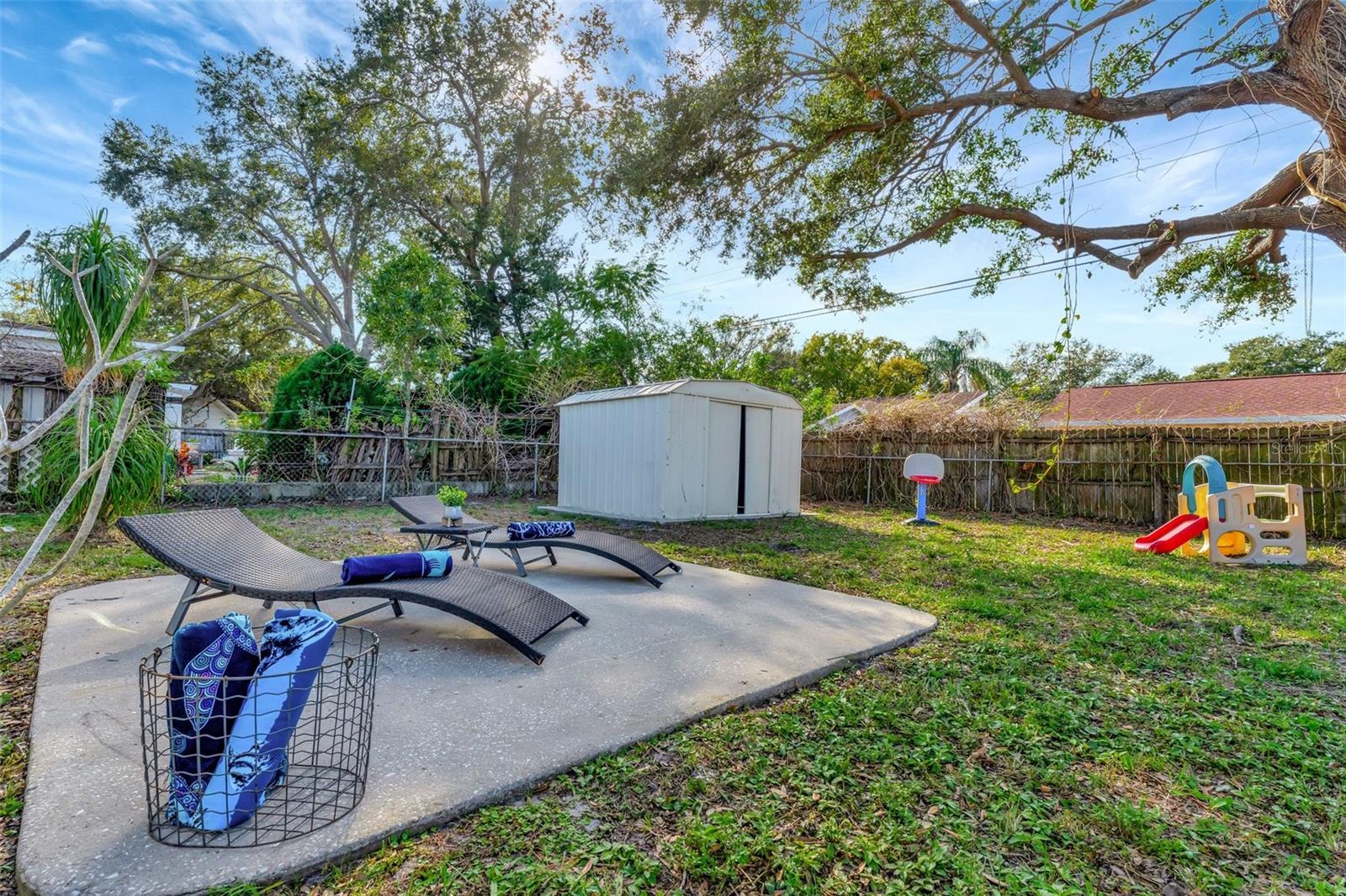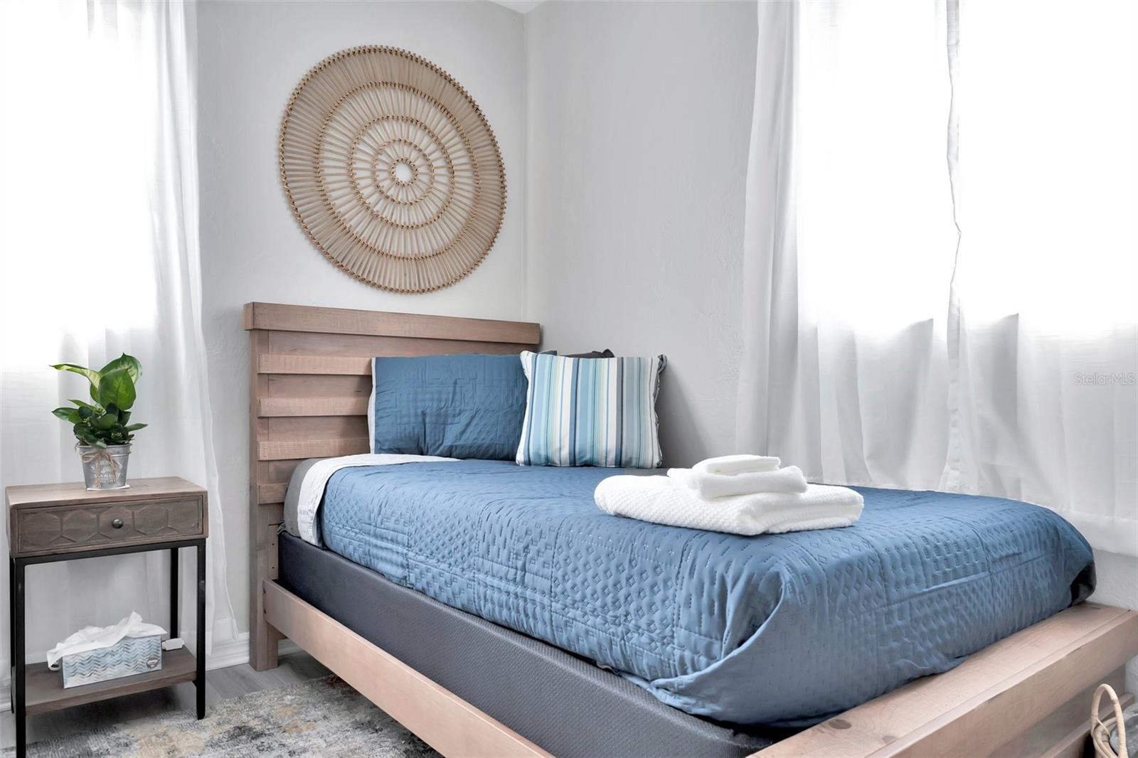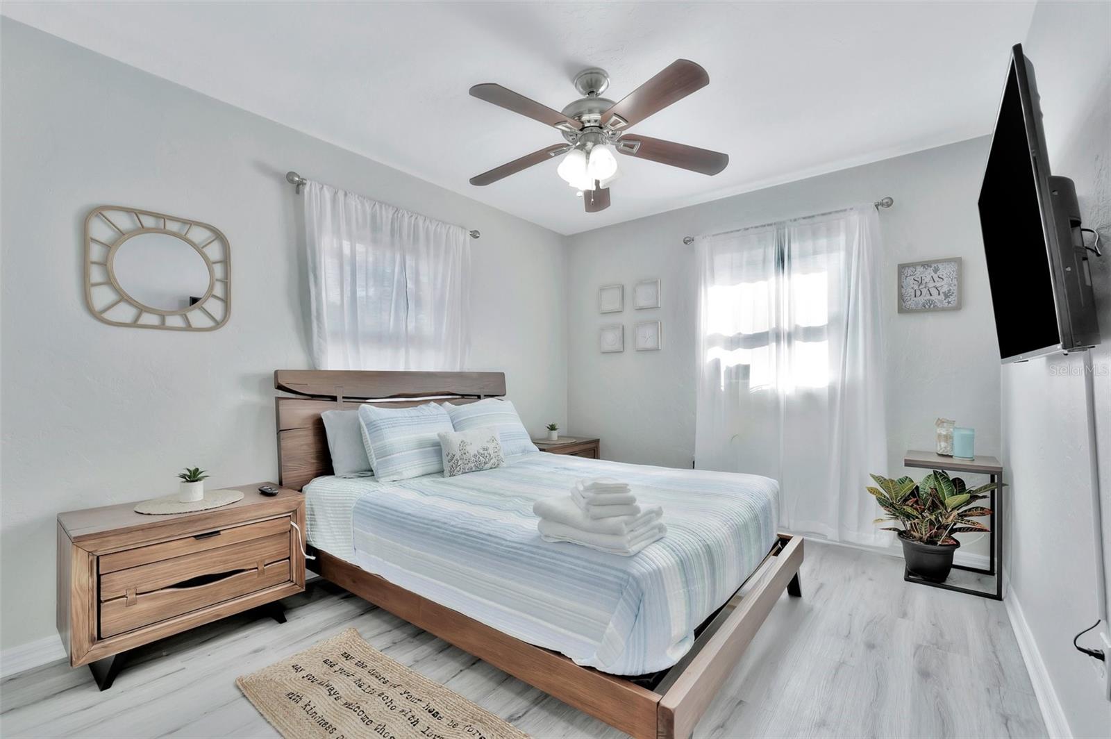 Step inside this standout gem that blends comfort, charm, and convenience in the desirable Starkey Heights neighborhood of Seminole, Florida. Situated on a generous 6,499 square foot lot, this beautifully updated 2-bedroom, 1-bath home offers 704 square feet of thoughtfully designed living space, ideal for full-time residents, seasonal snowbirds, or savvy investors seeking a turnkey opportunity. Operated as a successful Airbnb for the past few years, this home is being sold fully furnished, allowing for a seamless transition for short-term rental income or move-in-ready living. The light-filled interior boasts a fresh coastal-inspired palette, luxury vinyl plank flooring, and an open-concept living and dining area that flows into a renovated kitchen complete with stainless steel appliances, modern cabinetry, ample counter space, and a convenient breakfast bar. Both bedrooms are spacious and serene with ceiling fans, generous closet storage, and stylish furnishings. The updated bathroom features a sleek vanity, modern fixtures, and a fully tiled tub and shower combo. A stacked washer and dryer is smartly positioned in a hallway closet for space efficiency. Outside, the fully fenced backyard is a private retreat with a large paver patio ideal for outdoor dining, games, or lounging beneath mature shade trees. Whether relaxing in the sun or hosting guests, the outdoor space is well suited for Florida living. The manicured front yard and extended driveway provide excellent curb appeal and convenient off-street parking. Located minutes from top-rated schools, Seminole City Center, Lake Seminole Park, and the Gulf’s award-winning beaches including Madeira and Redington, the home is also near the Pinellas Trail and an array of dining, shopping, and medical services. With no HOA and no flood insurance required, this move-in-ready and income-producing home presents a rare chance to enjoy or invest in one of Pinellas County’s most sought-after neighborhoods.