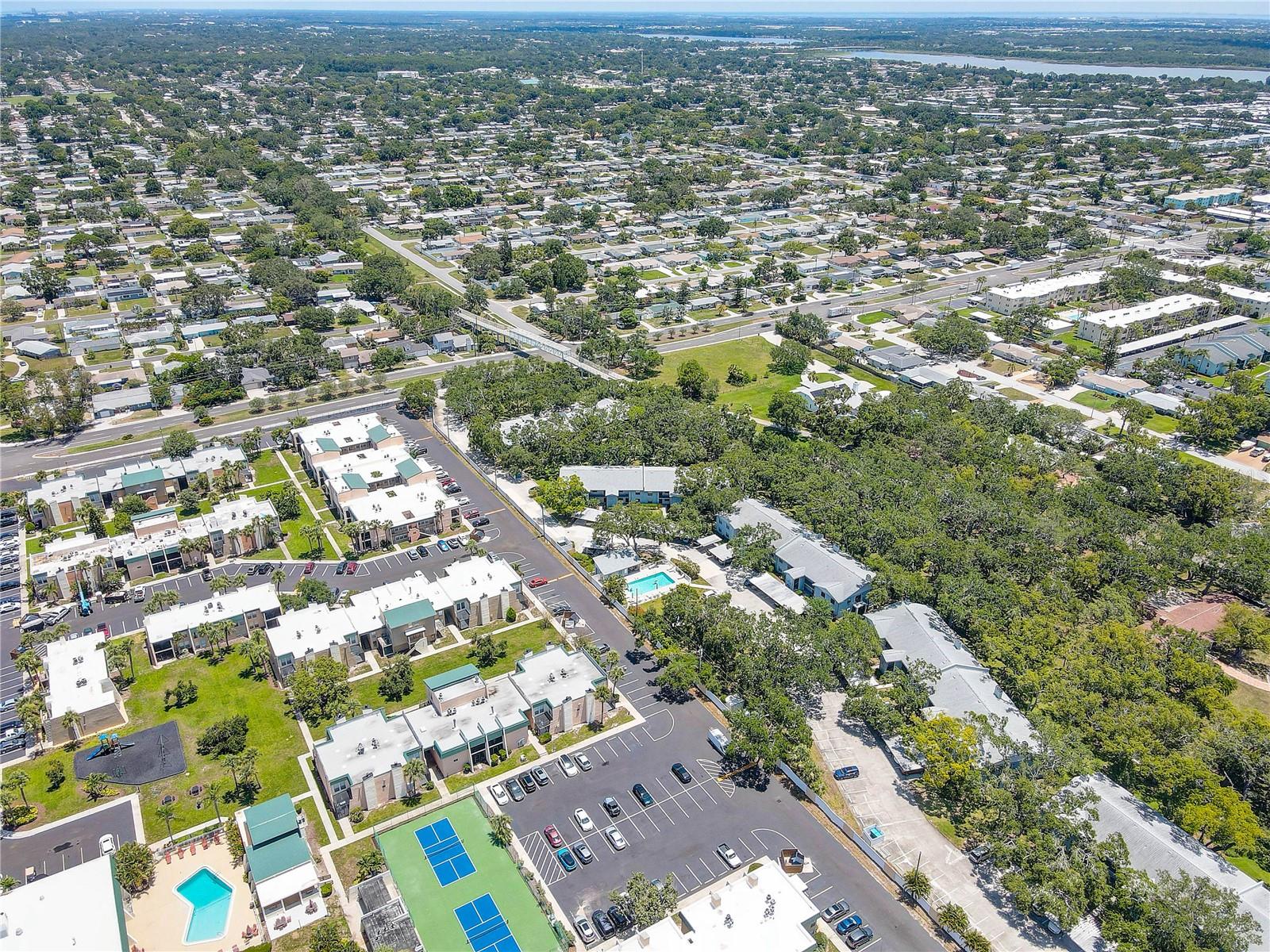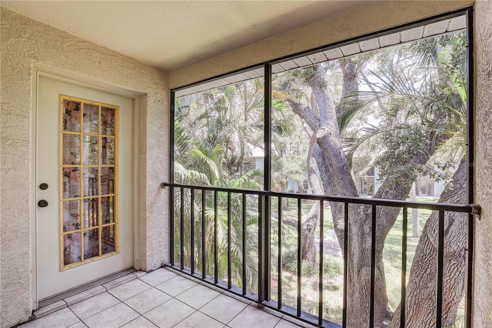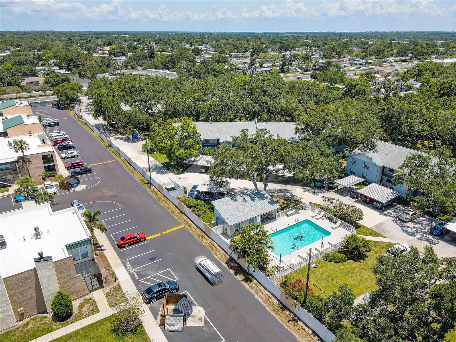 Step inside this charming and cozy 2-bedroom, 2-bath condominium that beautifully balances comfort with style across its 980 square feet. From the moment you enter, you'll appreciate the inviting open floor plan accentuated by soaring vaulted and cathedral ceilings, which lend an airy and spacious feel throughout the living and dining areas. The living room and dining room flow seamlessly together, enhanced by tasteful laminate flooring that adds warmth and durability. The kitchen is a delightful space for both cooking and gathering, featuring solid surface countertops and solid wood cabinets that offer plenty of storage and prep space. Equipped with modern appliances including a dishwasher, disposal, gas water heater, microwave, range, and refrigerator, this kitchen makes everyday meal prep a pleasure. An eating space right in the kitchen ensures a cozy spot for casual dining or morning coffee. Natural light streams through sliding doors that open to a screened and enclosed patio, creating a perfect extension of the living space — ideal for relaxing or entertaining while enjoying the mature oak trees and thoughtfully landscaped surroundings. The residence also boasts practical features such as an inside utility room and ample closet space, including walk-in closets in the bedrooms to keep your belongings organized. Comfort is key here with central air conditioning and heating, ceiling fans, and well-placed blinds on the windows for privacy and light control. The two bathrooms complement the bedrooms with clean, functional design; the primary bathroom offers a shower setup and the secondary bath is equally inviting. The flooring throughout combines elegant ceramic, porcelain, and laminate tiles for a stylish yet easy-to-maintain home. Parking convenience is provided by an assigned carport space with additional guest parking available. The building’s exterior features durable block and stucco construction with a slab foundation and a well-maintained roof. Community amenities include access to a sparkling community pool, perfect for a refreshing swim or socializing on sunny days. This residence not only offers a comfortable and inviting home but also comes with pet-friendly policies allowing cats, making it a welcoming place for all members of your family. The combination of architectural details like tray ceilings, lighting fixtures, and a bright open floor plan truly makes this condominium a special find for those seeking a blend of practicality and style. Whether you're relaxing inside or enjoying the screened porch amid mature landscaping, this home provides a serene and comfortable lifestyle ready for you to move in and make your own.