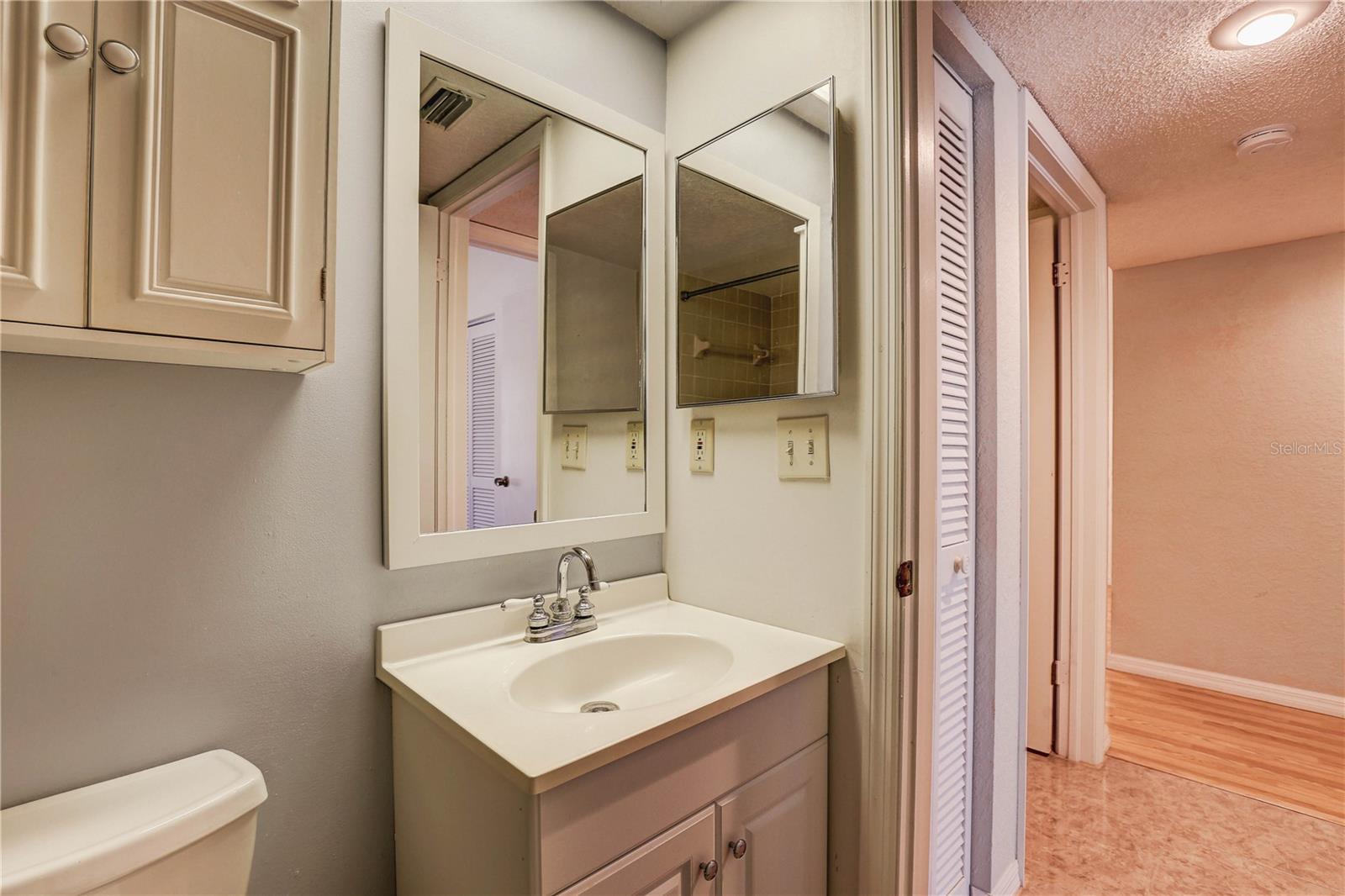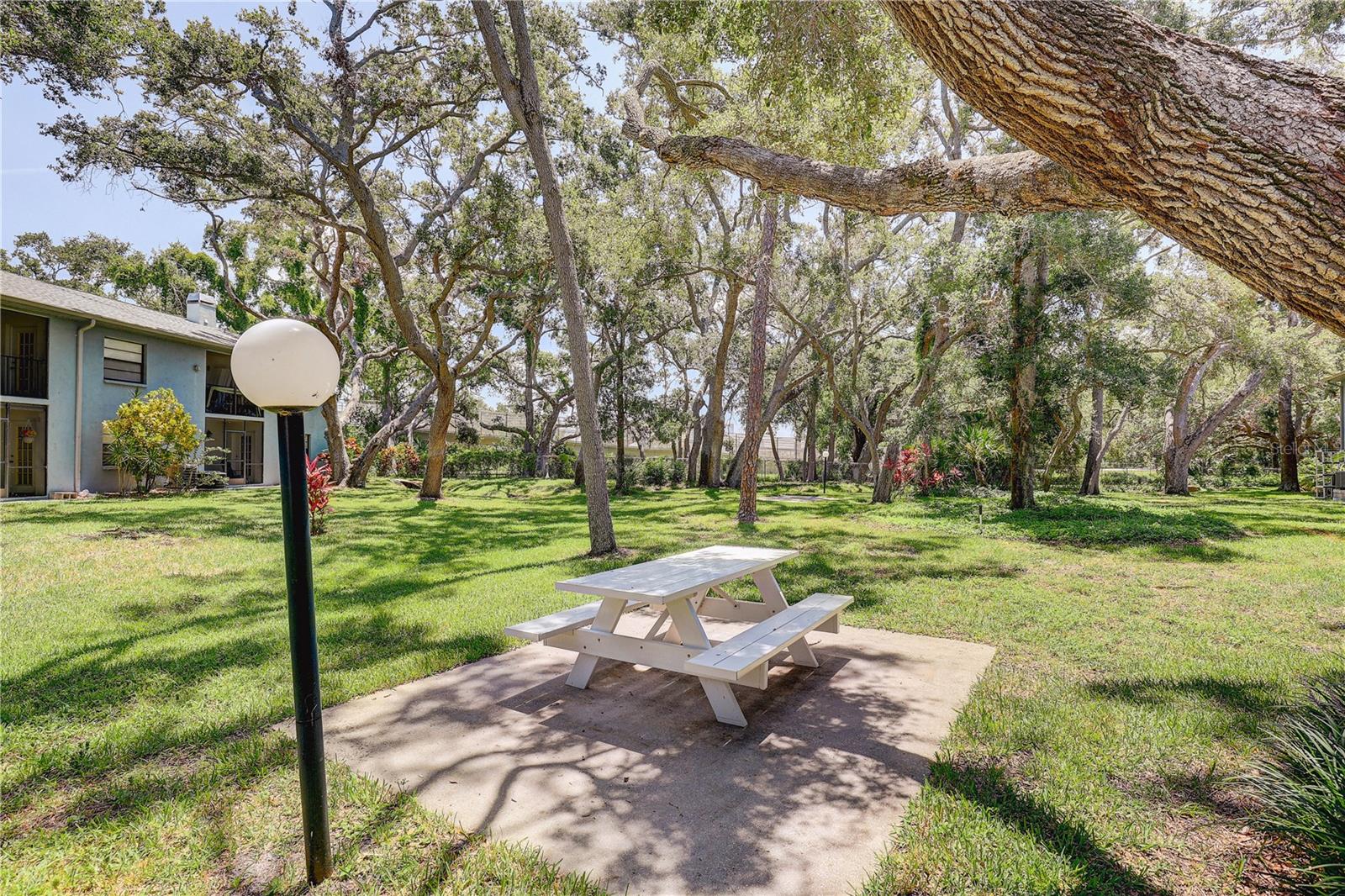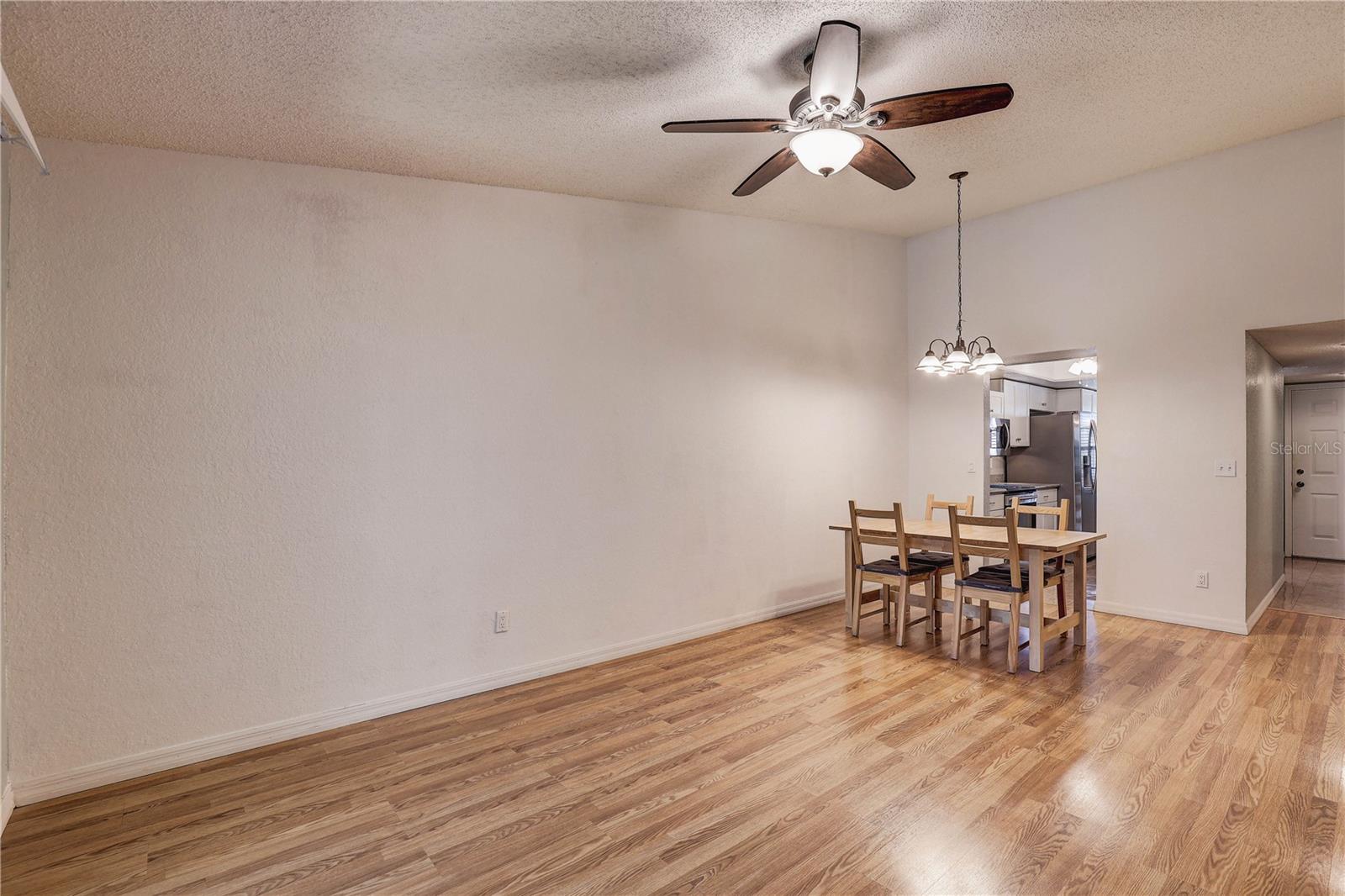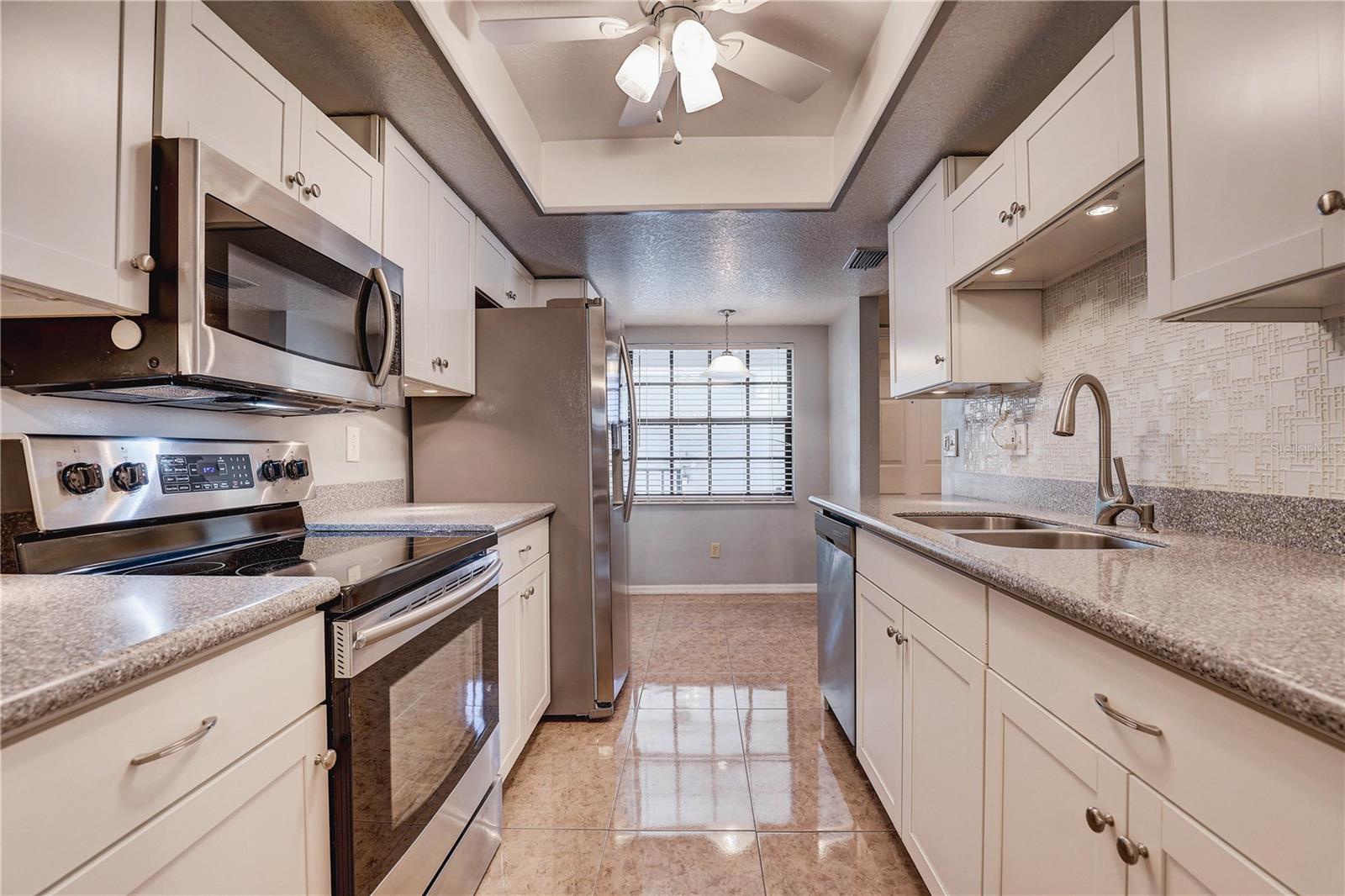 Step inside this charming and cozy 2-bedroom, 2-bath condominium that beautifully balances comfort with style across its 980 square feet. From the moment you enter, you'll appreciate the inviting open floor plan accentuated by soaring vaulted and cathedral ceilings, which lend an airy and spacious feel throughout the living and dining areas. The living room and dining room flow seamlessly together, enhanced by tasteful laminate flooring that adds warmth and durability. The kitchen is a delightful space for both cooking and gathering, featuring solid surface countertops and solid wood cabinets that offer plenty of storage and prep space. Equipped with modern appliances including a dishwasher, disposal, gas water heater, microwave, range, and refrigerator, this kitchen makes everyday meal prep a pleasure. An eating space right in the kitchen ensures a cozy spot for casual dining or morning coffee. Natural light streams through sliding doors that open to a screened and enclosed patio, creating a perfect extension of the living space — ideal for relaxing or entertaining while enjoying the mature oak trees and thoughtfully landscaped surroundings. The residence also boasts practical features such as an inside utility room and ample closet space, including walk-in closets in the bedrooms to keep your belongings organized. Comfort is key here with central air conditioning and heating, ceiling fans, and well-placed blinds on the windows for privacy and light control. The two bathrooms complement the bedrooms with clean, functional design; the primary bathroom offers a shower setup and the secondary bath is equally inviting. The flooring throughout combines elegant ceramic, porcelain, and laminate tiles for a stylish yet easy-to-maintain home. Parking convenience is provided by an assigned carport space with additional guest parking available. The building’s exterior features durable block and stucco construction with a slab foundation and a well-maintained roof. Community amenities include access to a sparkling community pool, perfect for a refreshing swim or socializing on sunny days. This residence not only offers a comfortable and inviting home but also comes with pet-friendly policies allowing cats, making it a welcoming place for all members of your family. The combination of architectural details like tray ceilings, lighting fixtures, and a bright open floor plan truly makes this condominium a special find for those seeking a blend of practicality and style. Whether you're relaxing inside or enjoying the screened porch amid mature landscaping, this home provides a serene and comfortable lifestyle ready for you to move in and make your own.