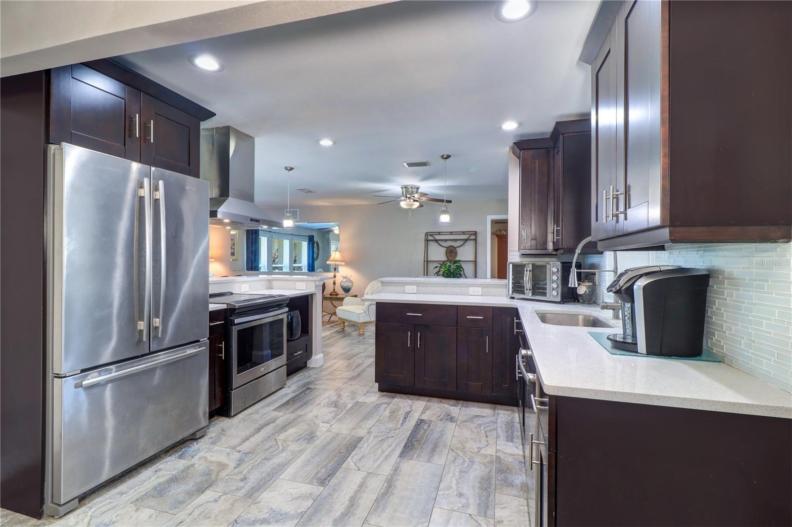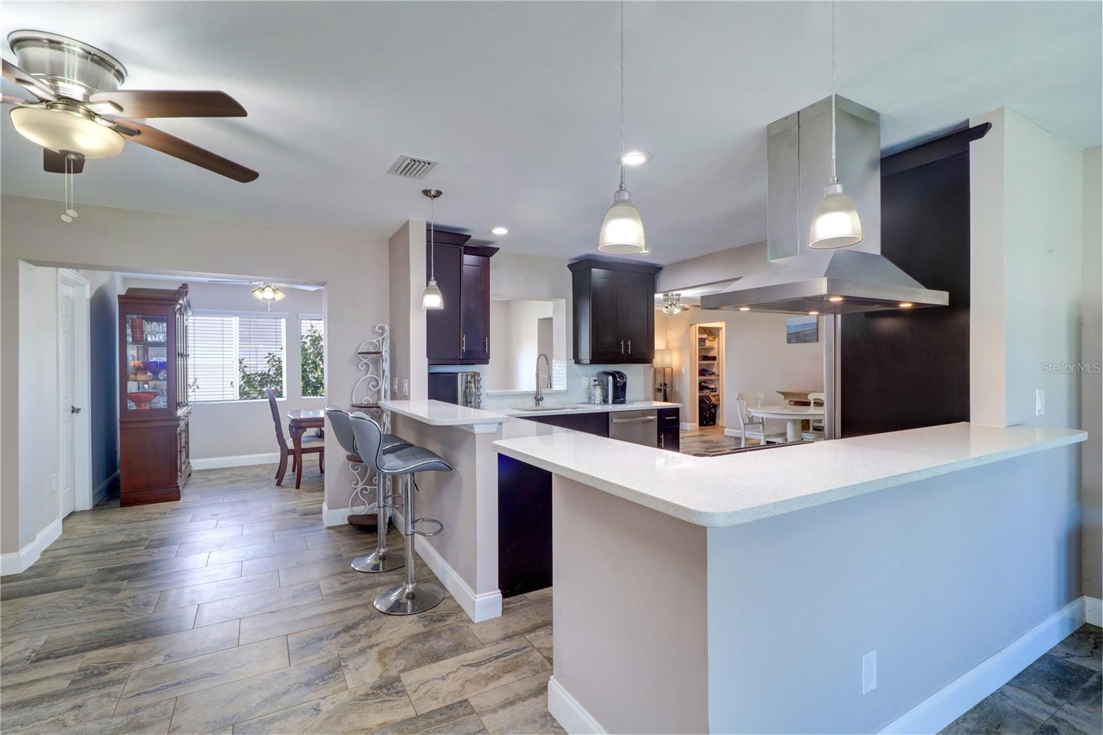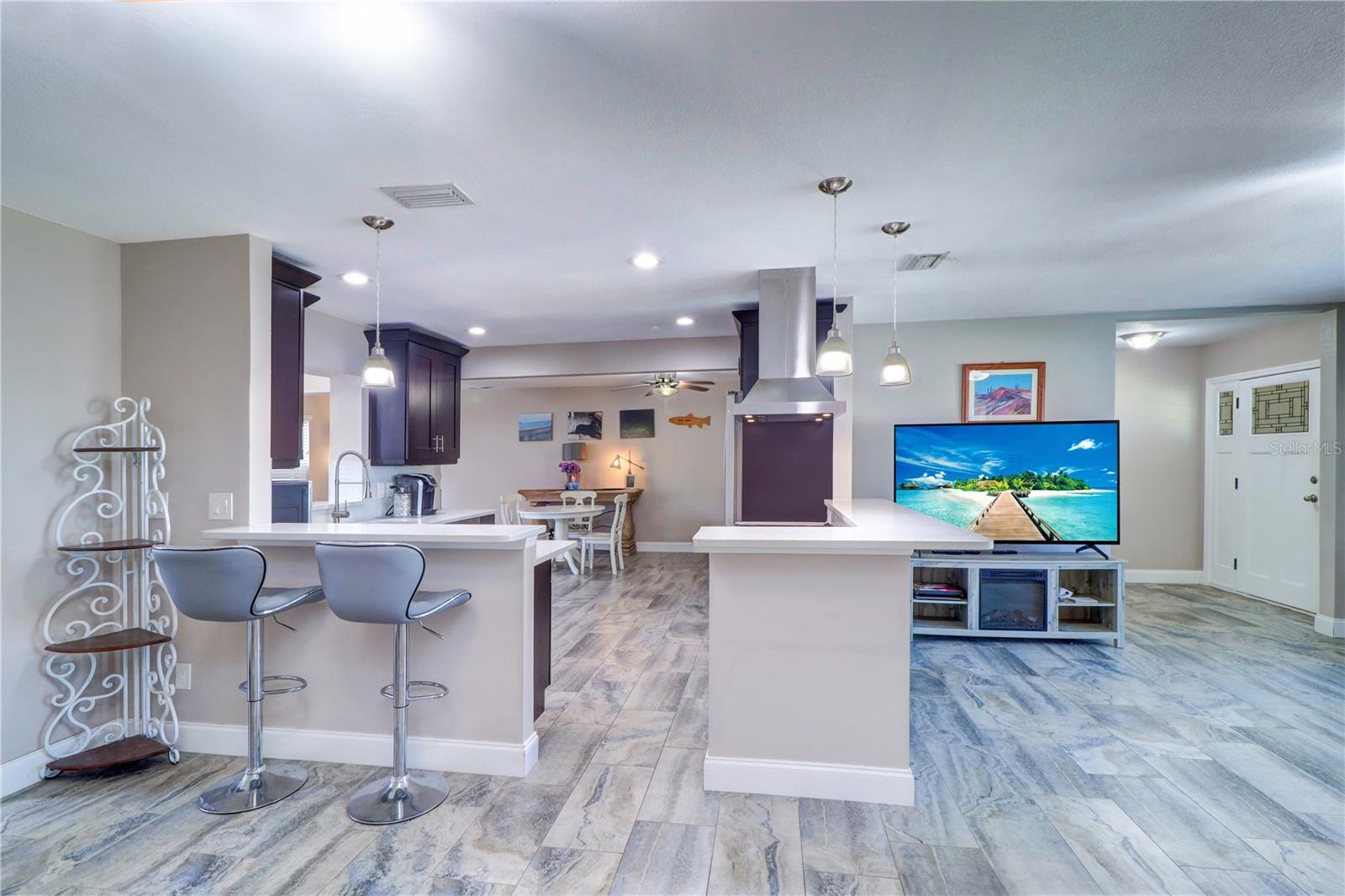 3 BEDROOM 2 BATH SPLIT FLOORPLAN BLOCK HOME with 1,833sqft of living space and with a backyard that can be expanded! The modern OPEN FLOOR PLAN creates a spacious hub where kitchen, dining, living room, and family rooms all blend together on ceramic tile flooring. Split floor plan, Recessed lighting, modern finishes, and stylish pendant lights set the tone, and large windows that bring in tons of natural light. The chef’s kitchen boasts stainless steel appliances framed by dark-toned cabinetry with soft-close hinges, crisp countertops, and a roomy breakfast bar—perfect for entertaining or everyday comfort. Retreat to the oversized master suite, where you'll find a generous layout and a large walk-in closet. Two additional bedrooms offer versatility—ideal for guests, hobbies, or a home office. A dedicated indoor laundry room adds convenience and separation from living spaces. The exterior is equally impressive: a two-car garage offers abundant storage with direct indoor access. The home is hooked up to a generator to keep power up and running in times of need! A roof only a few years old (2021). Water Heater (2021) AC (2019). Home is not in a flood zone and in one of the highest elevation areas, this home also features a corner lot providing additional privacy and curb appeal. You're just 15–20 minutes from vibrant St. Petersburg downtown, and Clearwater, St. Pete Beach, and Indian Shores.