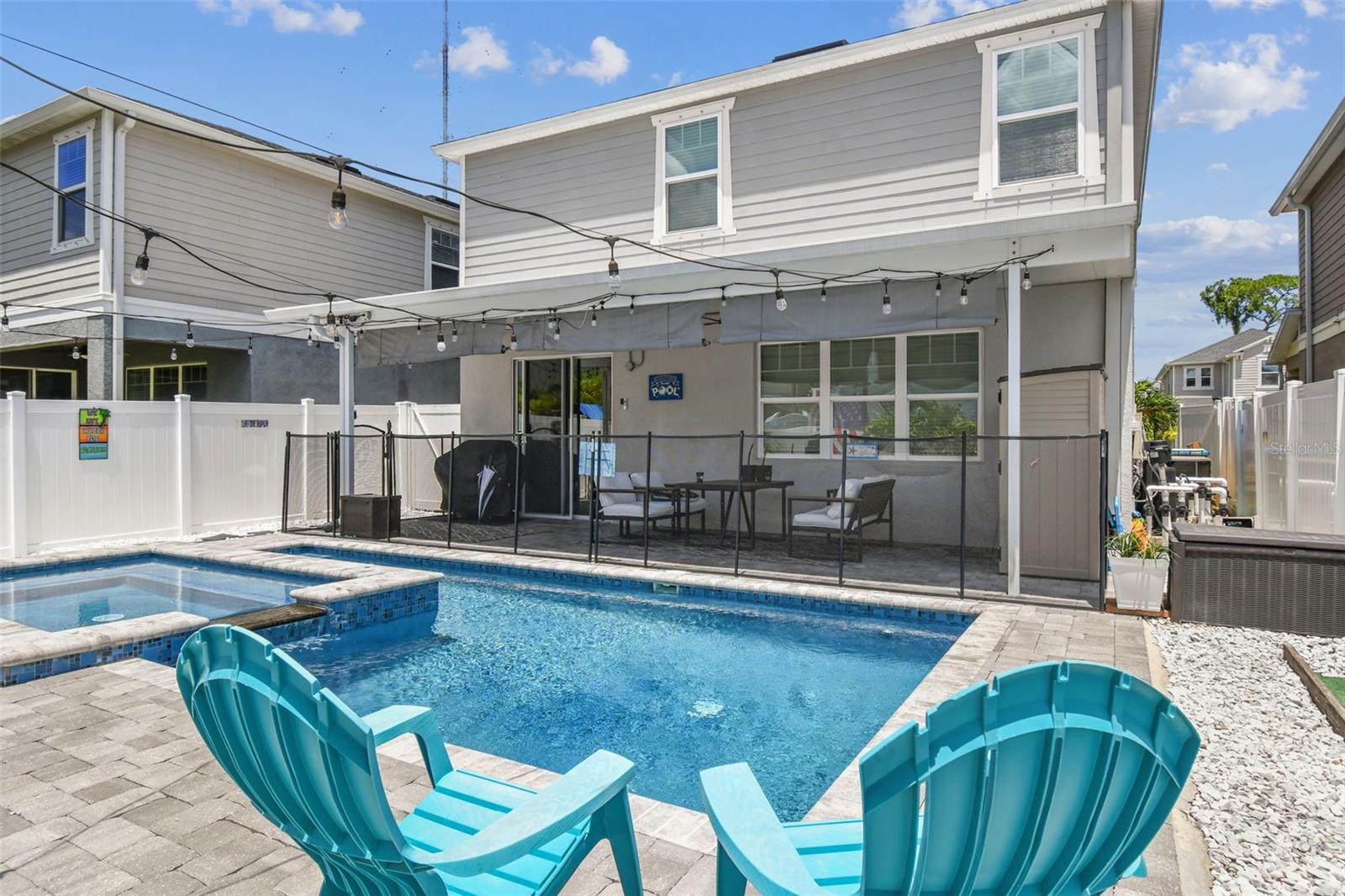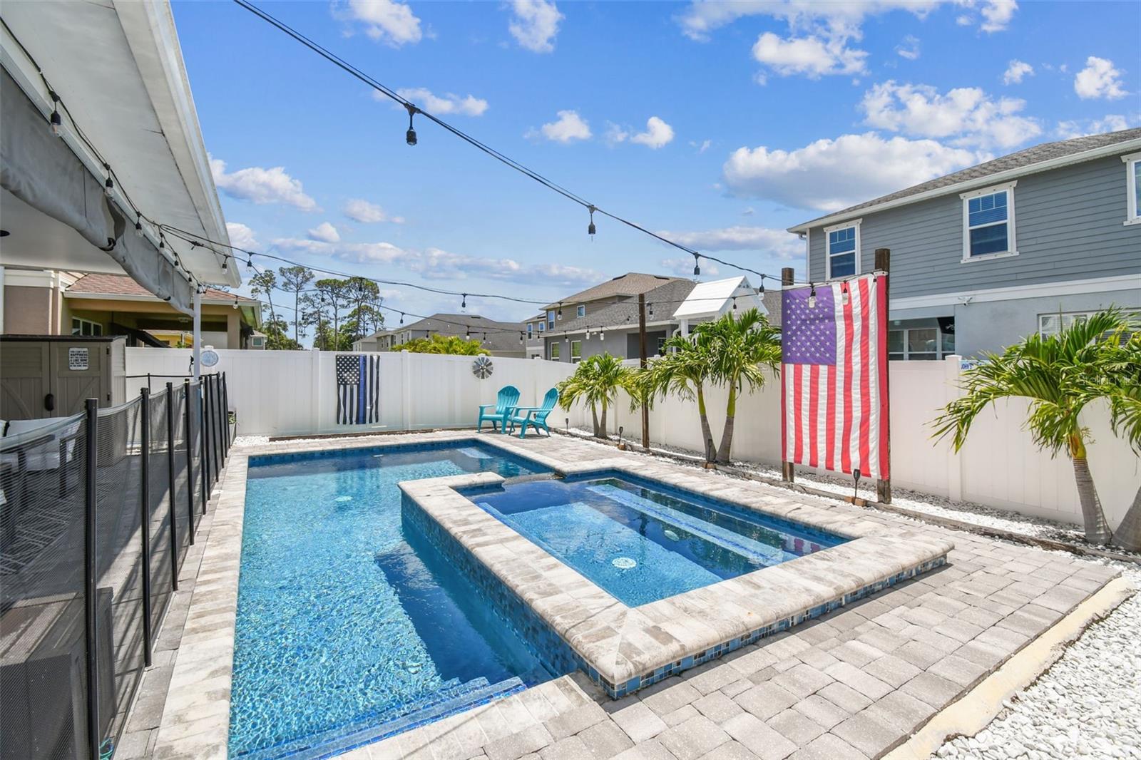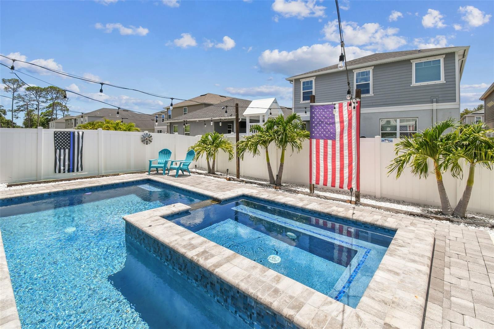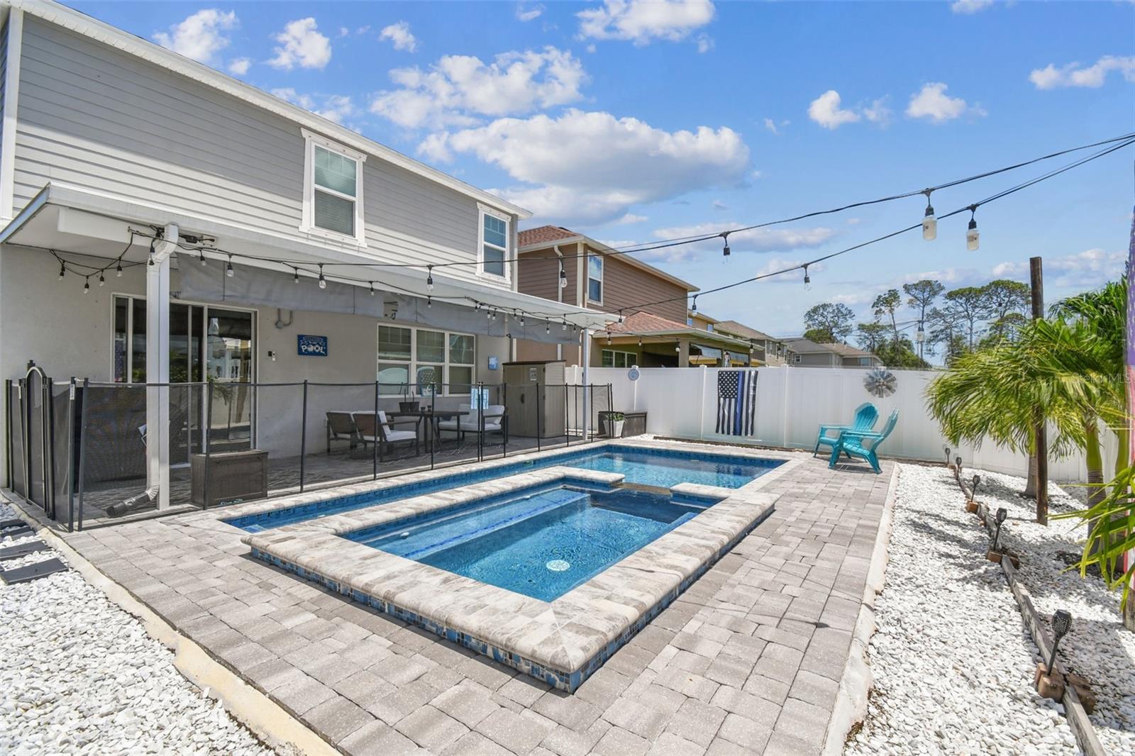 THIS IS IT!!! PRICE IMPROVEMENT!!! HOME ALSO FOR LEASE $4899 LONG TERM. July of 2025, brick paver driveway has been widened a total of 6 ft to accommodate 3 vehicles. Welcome to your retreat only 6 miles from the gulf beaches! This nearly new pool home in a non-flood zone, located in beautiful city of Seminole with top rated schools, is a kid's paradise and a parent's dream. The new Seminole Crossings with shopping, dining and entertainment only a few miles away. With 2600 sq ft of modern decor and upgrades along with a resort style backyard that is serene and peaceful featuring an oversized 6X12 saltwater spa that spills over to your heated saltwater pool equipped with automatic timer. Sellers have installed a pool safety fence with a locking gate door for extra peace of mind. One of only a few homes in the community that offers a 300 sq ft covered lanai/outdoor living area for year-round entertaining. Along with all of these bonuses, the backyard also offers a 6ft vinyl privacy fence and mature palm trees for added privacy. Stepping back inside from the rear oasis, you will find a modern kitchen filled with granite, premium flooring, upgraded cabinets and top of the line matte white GE cafe smart appliances that are WIFI enabled and can be controlled via mobile app. The open floor plan with high ceilings makes the home feel open and spacious. In the 1st floor laundry off the kitchen, you will find new (May 2025) AI controlled washer and dryer. In the front foyer, you will find an updated half bath, and a generous size fifth bedroom with a huge closet. Upstairs you will be welcomed by an oversized loft area with additional storage that can be utilized as a playroom or a theater/family room area. Also featuring 4 additional spacious bedrooms, with 3 of the bedrooms having large walking in closets. The hallway bath upstairs is filled with modern updates and a walk in frameless shower and large vanity. The large master en-suite located at the rear of the home offers a large walk-in closet and an updated bathroom with dual sinks, soaking tub, and walk-in frameless glass shower. Home features a large 2 car garage, custom matched seamless gutters (July 2025), all new landscaping and sod with several palm trees (spring 2024) and custom hurricane shutters for all windows and doors. The sprinkler system is a part of the community amenities. This is a rare opportunity to own one of the most desirable homes in this sought-after private neighborhood—priced to sell and move-in ready!