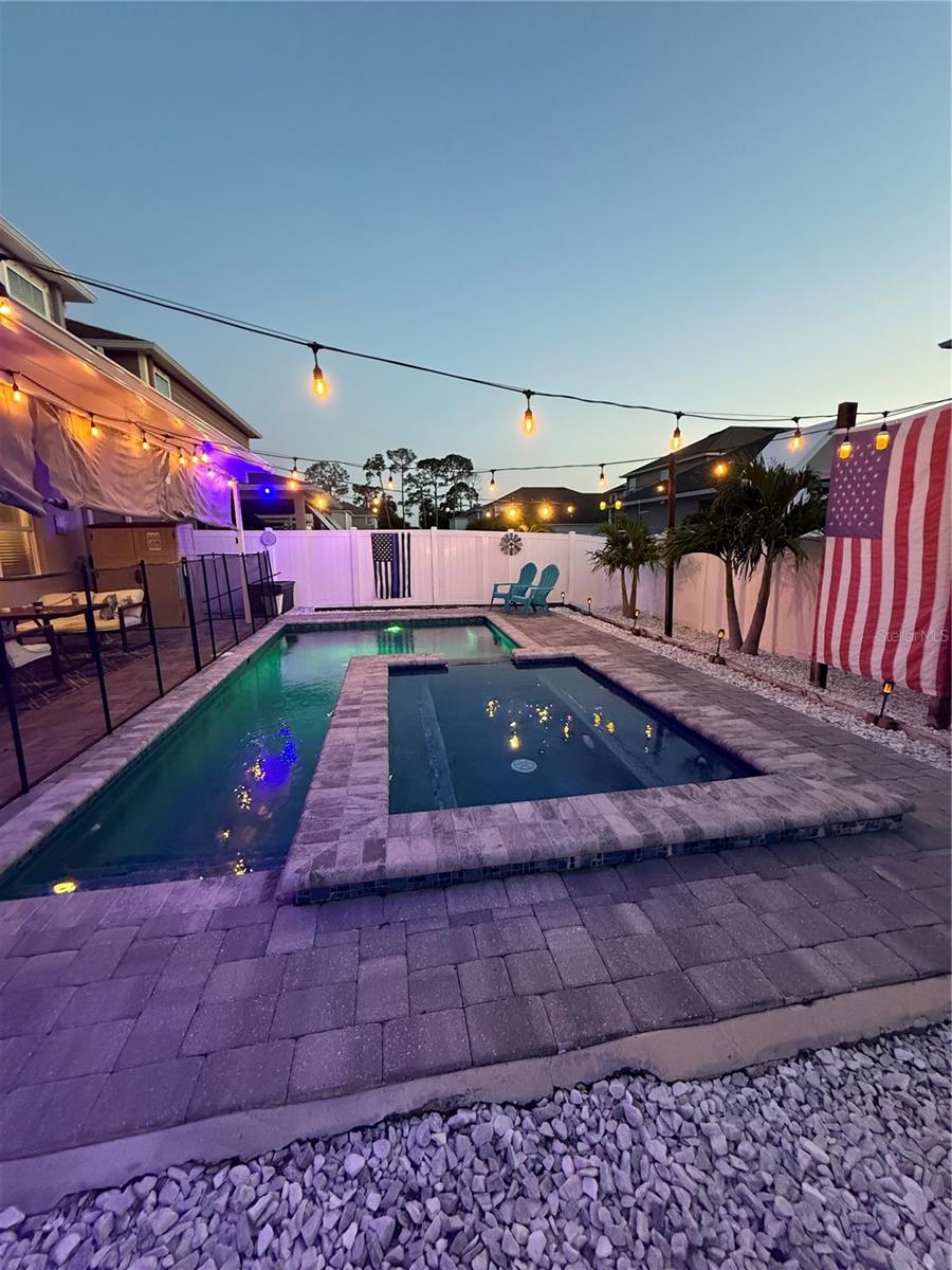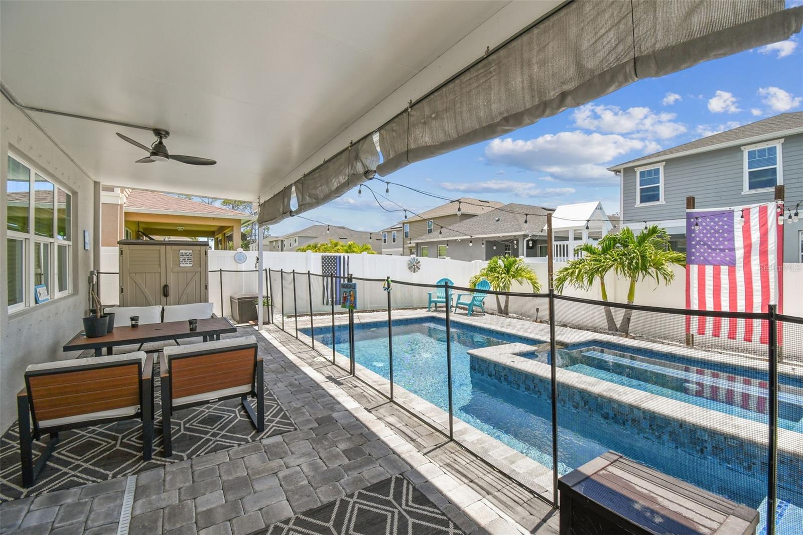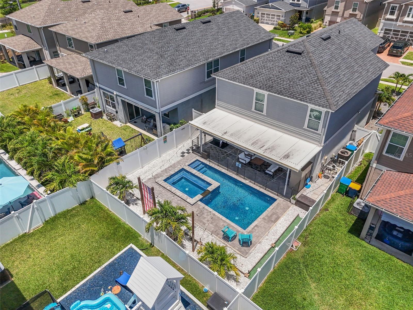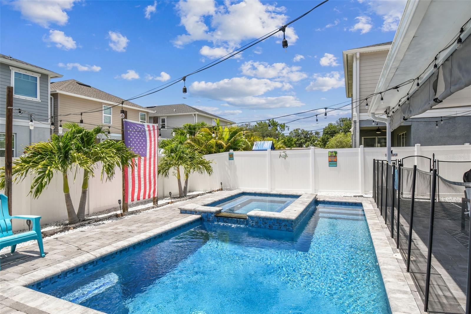 THIS IS IT!!! PRICE IMPROVEMENT!!! HOME ALSO FOR LEASE $4899 LONG TERM. July of 2025, brick paver driveway has been widened a total of 6 ft to accommodate 3 vehicles. Welcome to your retreat only 6 miles from the gulf beaches! This nearly new pool home in a non-flood zone, located in beautiful city of Seminole with top rated schools, is a kid's paradise and a parent's dream. The new Seminole Crossings with shopping, dining and entertainment only a few miles away. With 2600 sq ft of modern decor and upgrades along with a resort style backyard that is serene and peaceful featuring an oversized 6X12 saltwater spa that spills over to your heated saltwater pool equipped with automatic timer. Sellers have installed a pool safety fence with a locking gate door for extra peace of mind. One of only a few homes in the community that offers a 300 sq ft covered lanai/outdoor living area for year-round entertaining. Along with all of these bonuses, the backyard also offers a 6ft vinyl privacy fence and mature palm trees for added privacy. Stepping back inside from the rear oasis, you will find a modern kitchen filled with granite, premium flooring, upgraded cabinets and top of the line matte white GE cafe smart appliances that are WIFI enabled and can be controlled via mobile app. The open floor plan with high ceilings makes the home feel open and spacious. In the 1st floor laundry off the kitchen, you will find new (May 2025) AI controlled washer and dryer. In the front foyer, you will find an updated half bath, and a generous size fifth bedroom with a huge closet. Upstairs you will be welcomed by an oversized loft area with additional storage that can be utilized as a playroom or a theater/family room area. Also featuring 4 additional spacious bedrooms, with 3 of the bedrooms having large walking in closets. The hallway bath upstairs is filled with modern updates and a walk in frameless shower and large vanity. The large master en-suite located at the rear of the home offers a large walk-in closet and an updated bathroom with dual sinks, soaking tub, and walk-in frameless glass shower. Home features a large 2 car garage, custom matched seamless gutters (July 2025), all new landscaping and sod with several palm trees (spring 2024) and custom hurricane shutters for all windows and doors. The sprinkler system is a part of the community amenities. This is a rare opportunity to own one of the most desirable homes in this sought-after private neighborhood—priced to sell and move-in ready!
