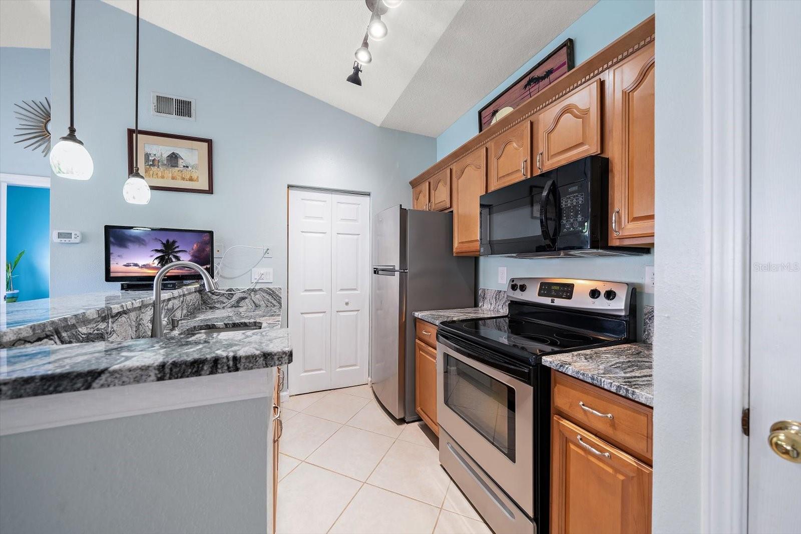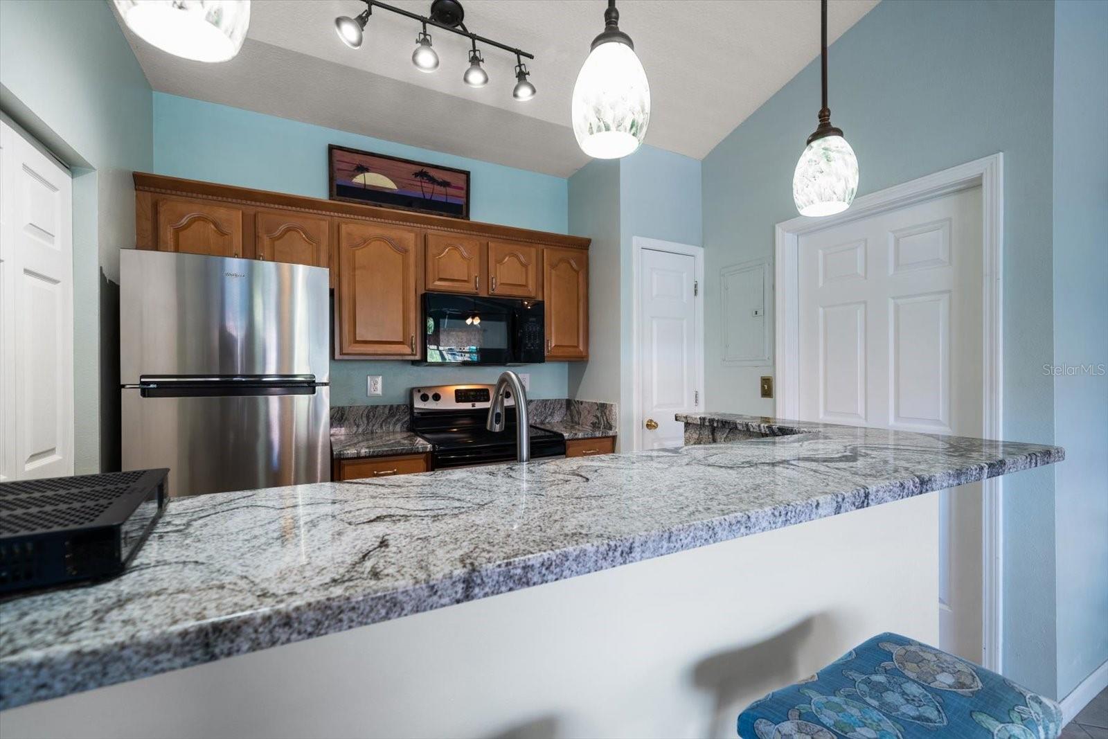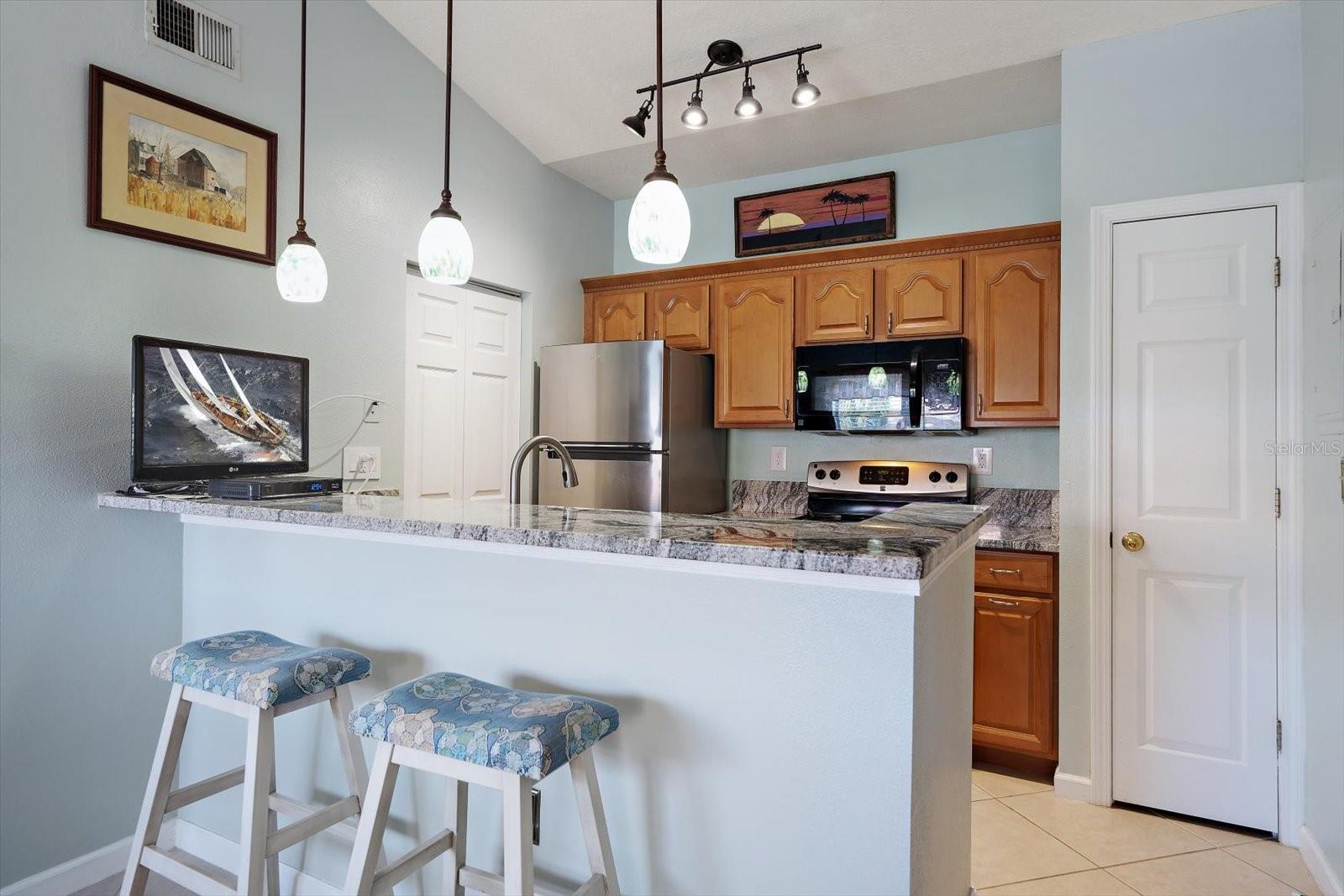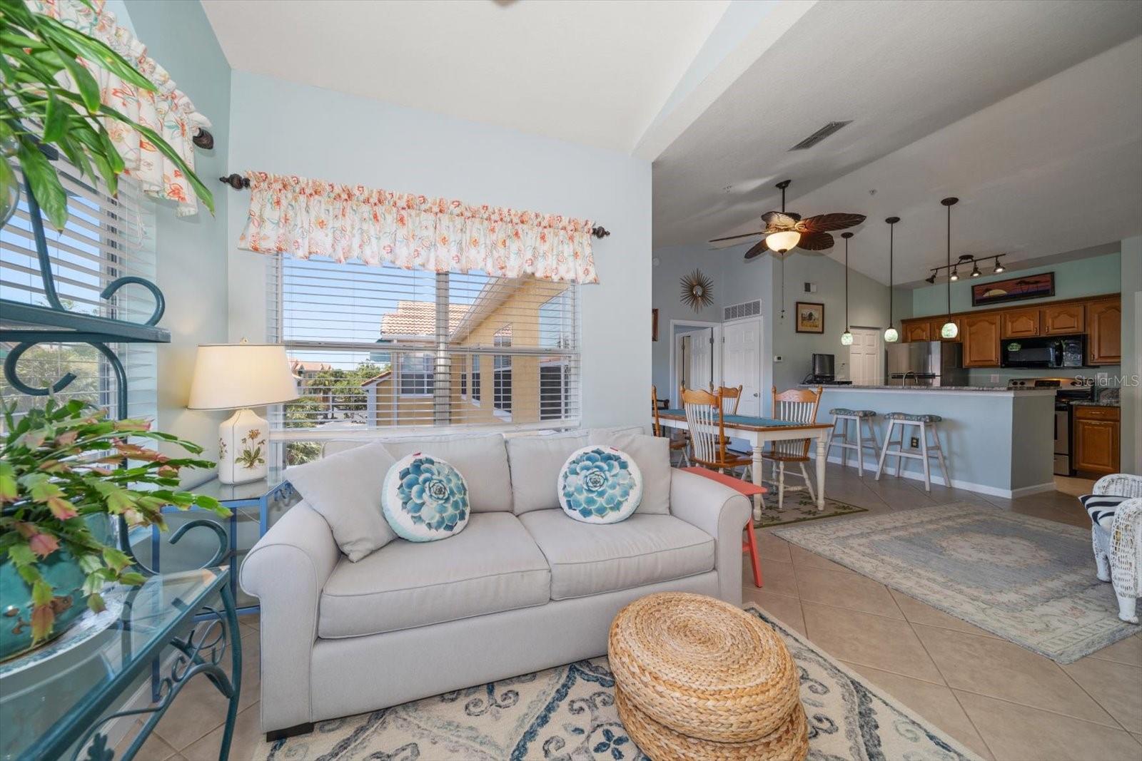 Welcome to effortless coastal living at Beachway Condos, where comfort, convenience, and the Florida lifestyle align seamlessly. Located just minutes from the Gulf beaches, this well-maintained condo offers a bright, inviting feel paired with an unbeatable setting. A private screened patio welcomes you home, providing the perfect place to enjoy morning coffee or evening breezes while adding flexible indoor-outdoor living space. Inside, vaulted ceilings and abundant natural light create an open, airy ambiance throughout. Recent updates such as fresh paint, updated lighting, and newer ceiling fans enhance the home’s crisp, refreshed appeal. The kitchen is both functional and stylish, featuring granite countertops, stainless steel appliances, generous cabinetry, a breakfast bar with pendant lighting, and a convenient laundry closet with a full-size washer and dryer. The primary suite offers a walk-in closet and a private bath with a tub/shower combo, while the spacious second bedroom includes direct access to the guest bath—ideal for guests, a home office, or flexible living arrangements. Beachway Condos offers a true resort-style setting with amenities including a pool, clubhouse, fitness center, tennis and pickleball courts, BBQ areas, and on-site management. Ideally positioned near the Pinellas Trail, parks, schools, shopping, local events, and even a nearby ice cream shop, this condo is perfectly suited as a full-time residence or an easy lock-and-leave Florida getaway.