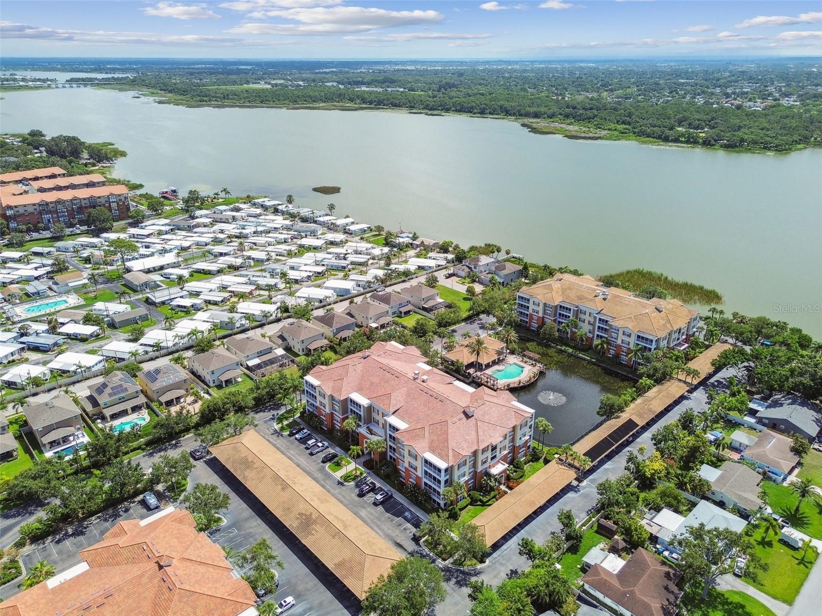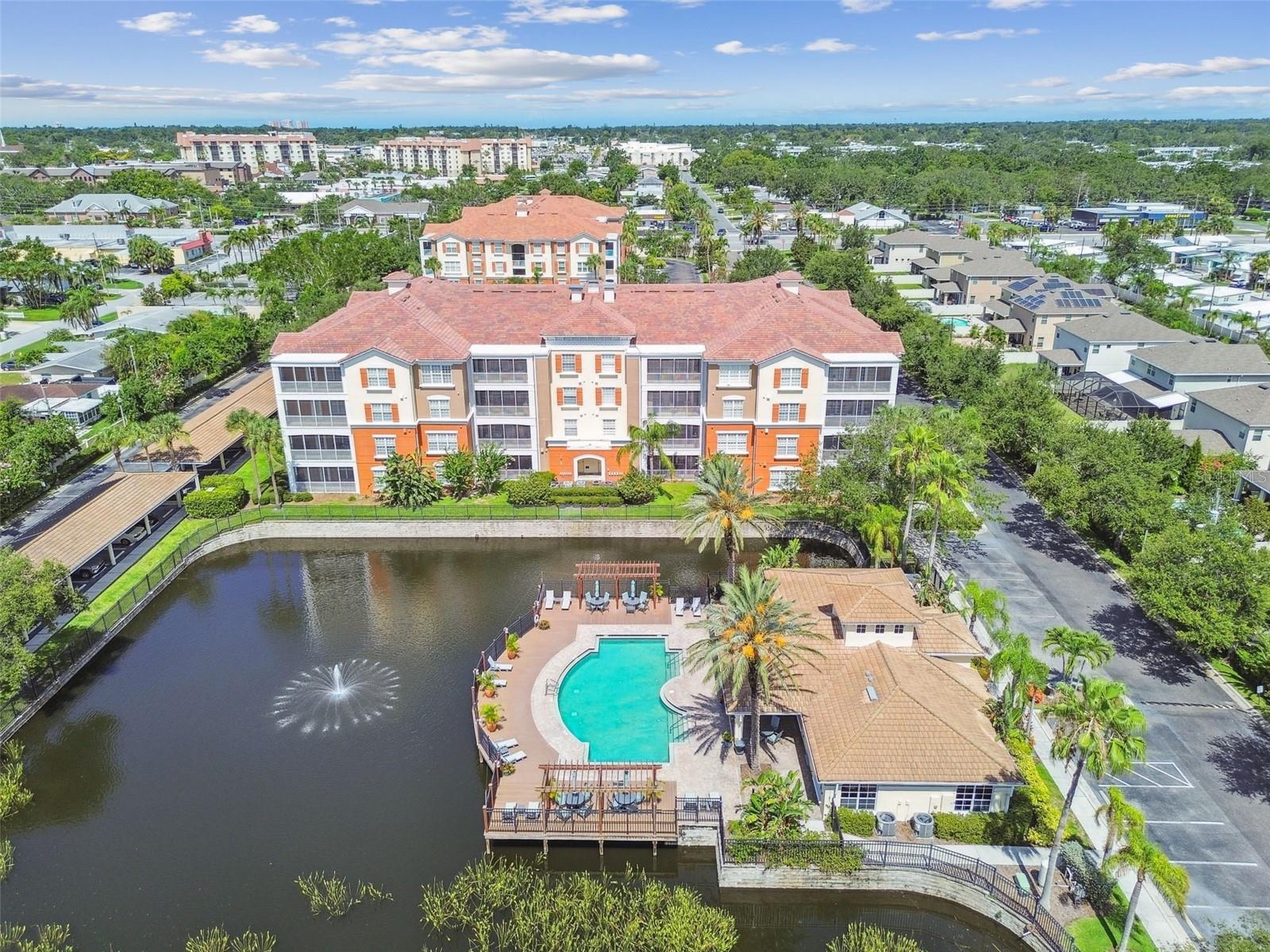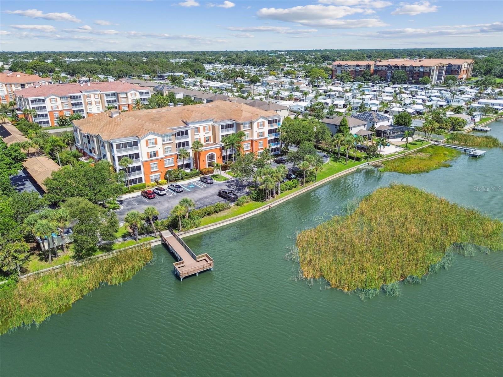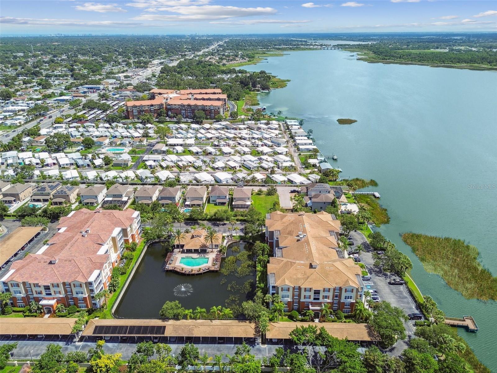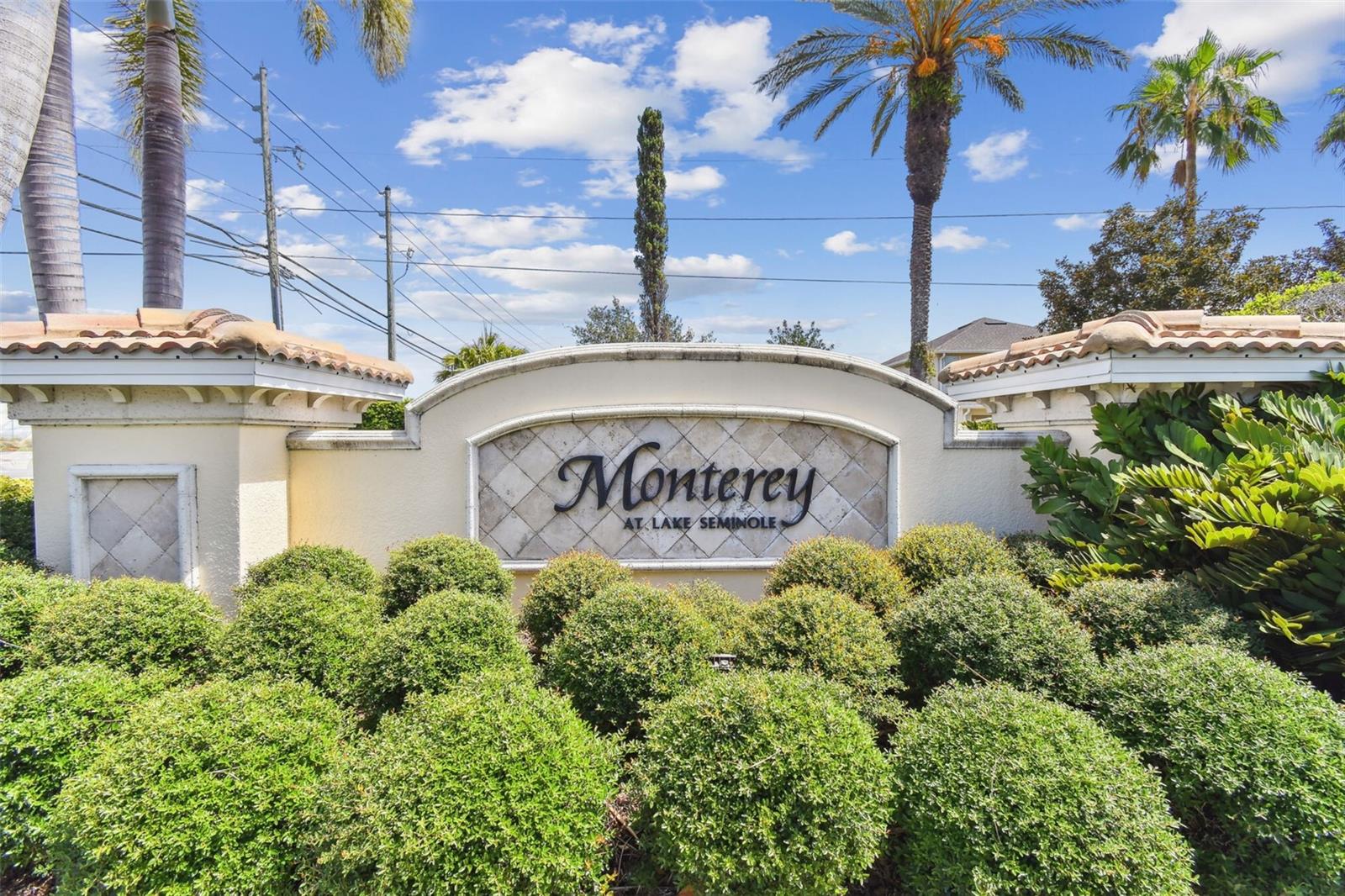 Beautiful Monterey at Lake Seminole Condo. Resort Style Living in The Heart of the County & Only Minutes to the Best Beaches in the Country. Built in 2006 with 1730 Sq Feet under air of Luxurious Living with Over $30K in Upgrades in the Primary Bathroom alone. Many Special features throughout include High Ceilings, Crown Molding and nicely appointed finishes like wainscoting. This Open floor plan makes this Condo feel Extremely Spacious & Beautiful. The Separate Formal Dining room can also be used as an office because there is plenty of space in the eat in kitchen for dining. The Kitchen offers Corian Counters & an eating bar for gathering around the kitchen while cooking or entertaining. It also features a closet pantry that is deep & as tall as the ceiling. Stainless Steel Appliances include Refrigerator, Range & Dishwasher and Microwave. The Kitchen also has a deep sink with newer faucet. New lighting fixtures in the Kitchen and Dining area. Great size living room with a door that leads to the large screened in balcony. The Balcony also has a large storage closet. The Primary Bedroom is Spacious and has a Private, Newly Remodeled Bathroom featuring an all-new state of the art huge walk-in double shower, new bathroom vanity with quartz counter, double sinks, new mirrors and fixtures plus an ex-large walk-in closet. This split floor plan offers a second bedroom which has a private access door to the full-size guest bathroom, which is also updated and features a tub shower, new vanity with quartz top, new mirror, new light fixture and a tile floor. Both Bedrooms have newer ceiling fans. Inside Laundry Room has a full size - side by side Washer/ Dryer and a Water Softener. Lush Landscaping Surrounds this Beautiful Property. This Building has a Brand-New Roof as of March 2025. This Condo includes an assigned Covered Carport B-17 and plenty of guest parking right in front of the building. This is a Gated Community which offers a Heated Community Pool plus a Covered dining social area with gas grills & restrooms. It also offers a Rec Room which houses an on-site Gym with new equipment & a lite fountain in the lagoon. Another special feature is the Fishing Pier situated on Lake Seminole. Condo Dues include Water, Trash, Cable, Internet, Grounds Maintenace, Pool Care, Exterior Insurance and Escrow Reserves, Exterior Paint, Roof and more. This is a Pet friendly community. Seminole City Center is one mile away for Great Shopping & Dining Options. High Scores on these Great Schools from Elementary thru High School. Free Membership to Seminole Recreation Center which has Everything & all Activity's very close by. Only 30 minutes to Tampa International Airport. Living here in this community of Monterey at Lake Seminole is truly a Lifestyle. Check it out for yourself today.