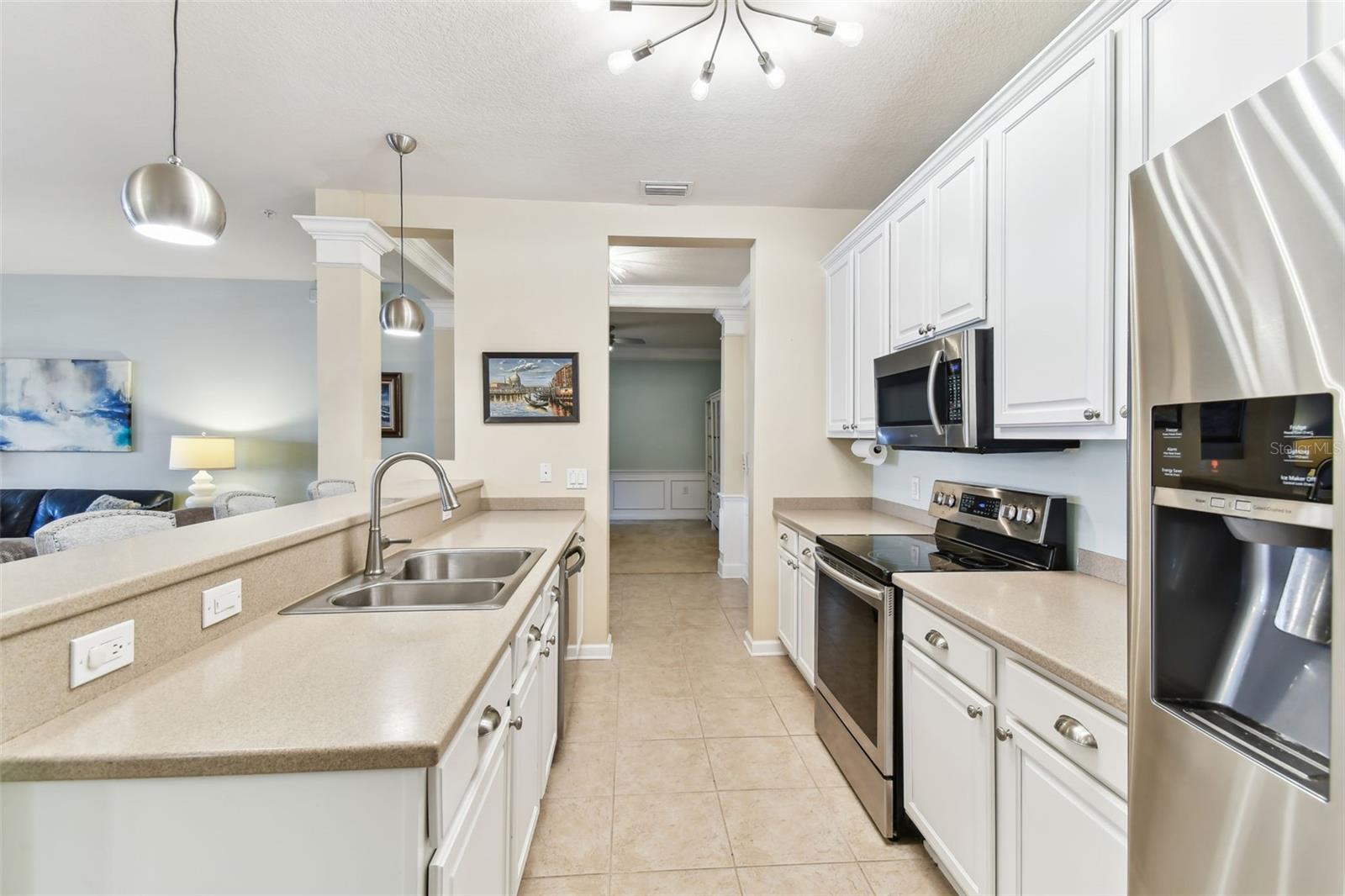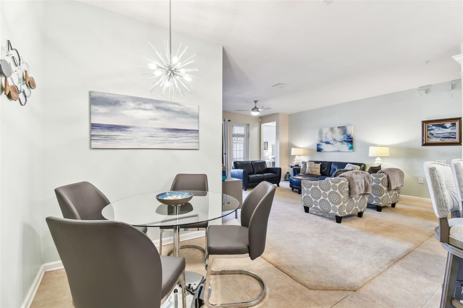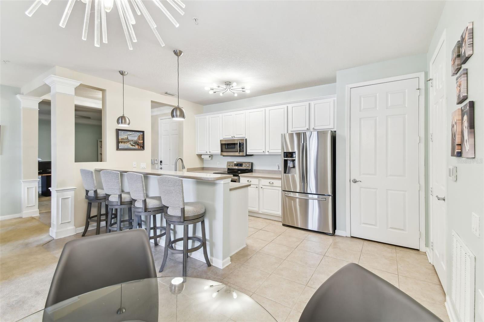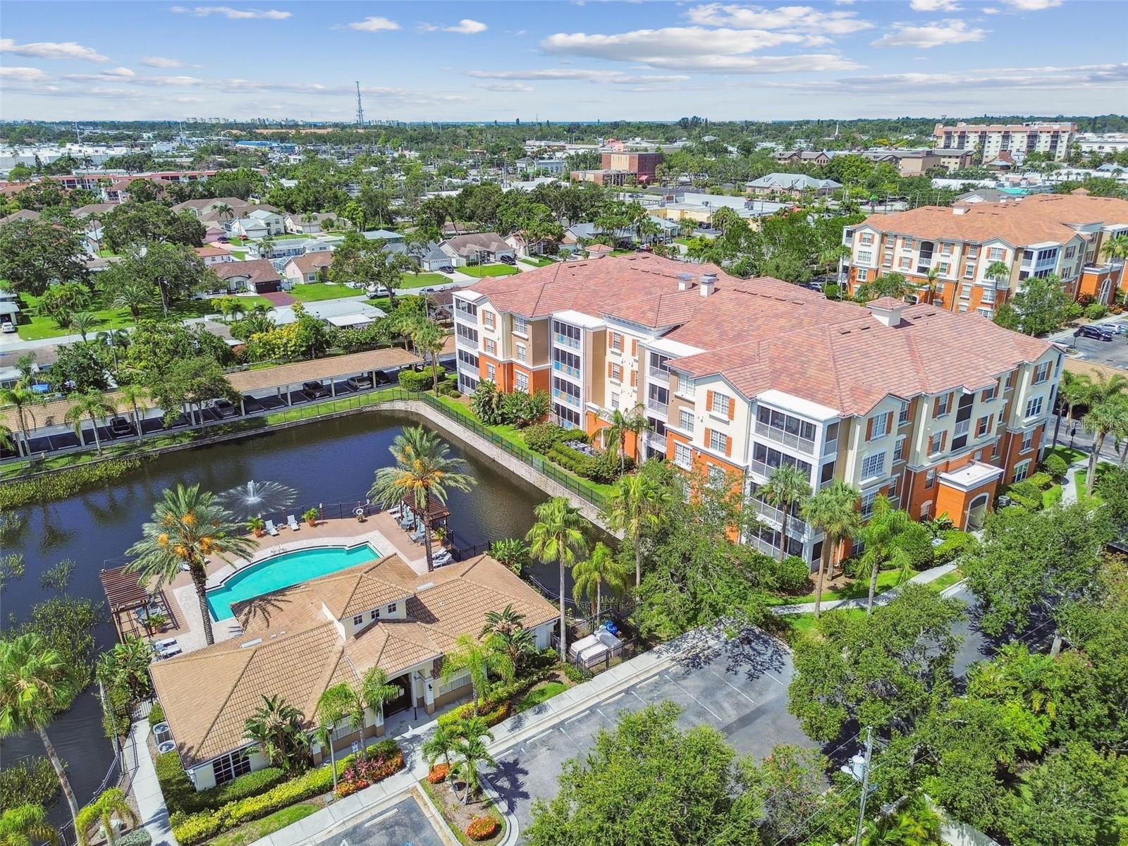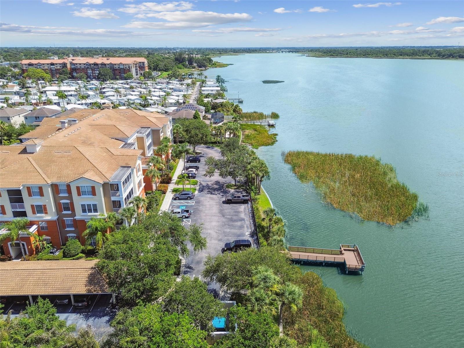 Beautiful Monterey at Lake Seminole Condo. Resort Style Living in The Heart of the County & Only Minutes to the Best Beaches in the Country. Built in 2006 with 1730 Sq Feet under air of Luxurious Living with Over $30K in Upgrades in the Primary Bathroom alone. Many Special features throughout include High Ceilings, Crown Molding and nicely appointed finishes like wainscoting. This Open floor plan makes this Condo feel Extremely Spacious & Beautiful. The Separate Formal Dining room can also be used as an office because there is plenty of space in the eat in kitchen for dining. The Kitchen offers Corian Counters & an eating bar for gathering around the kitchen while cooking or entertaining. It also features a closet pantry that is deep & as tall as the ceiling. Stainless Steel Appliances include Refrigerator, Range & Dishwasher and Microwave. The Kitchen also has a deep sink with newer faucet. New lighting fixtures in the Kitchen and Dining area. Great size living room with a door that leads to the large screened in balcony. The Balcony also has a large storage closet. The Primary Bedroom is Spacious and has a Private, Newly Remodeled Bathroom featuring an all-new state of the art huge walk-in double shower, new bathroom vanity with quartz counter, double sinks, new mirrors and fixtures plus an ex-large walk-in closet. This split floor plan offers a second bedroom which has a private access door to the full-size guest bathroom, which is also updated and features a tub shower, new vanity with quartz top, new mirror, new light fixture and a tile floor. Both Bedrooms have newer ceiling fans. Inside Laundry Room has a full size - side by side Washer/ Dryer and a Water Softener. Lush Landscaping Surrounds this Beautiful Property. This Building has a Brand-New Roof as of March 2025. This Condo includes an assigned Covered Carport B-17 and plenty of guest parking right in front of the building. This is a Gated Community which offers a Heated Community Pool plus a Covered dining social area with gas grills & restrooms. It also offers a Rec Room which houses an on-site Gym with new equipment & a lite fountain in the lagoon. Another special feature is the Fishing Pier situated on Lake Seminole. Condo Dues include Water, Trash, Cable, Internet, Grounds Maintenace, Pool Care, Exterior Insurance and Escrow Reserves, Exterior Paint, Roof and more. This is a Pet friendly community. Seminole City Center is one mile away for Great Shopping & Dining Options. High Scores on these Great Schools from Elementary thru High School. Free Membership to Seminole Recreation Center which has Everything & all Activity's very close by. Only 30 minutes to Tampa International Airport. Living here in this community of Monterey at Lake Seminole is truly a Lifestyle. Check it out for yourself today.