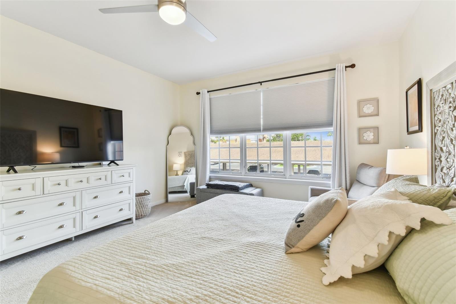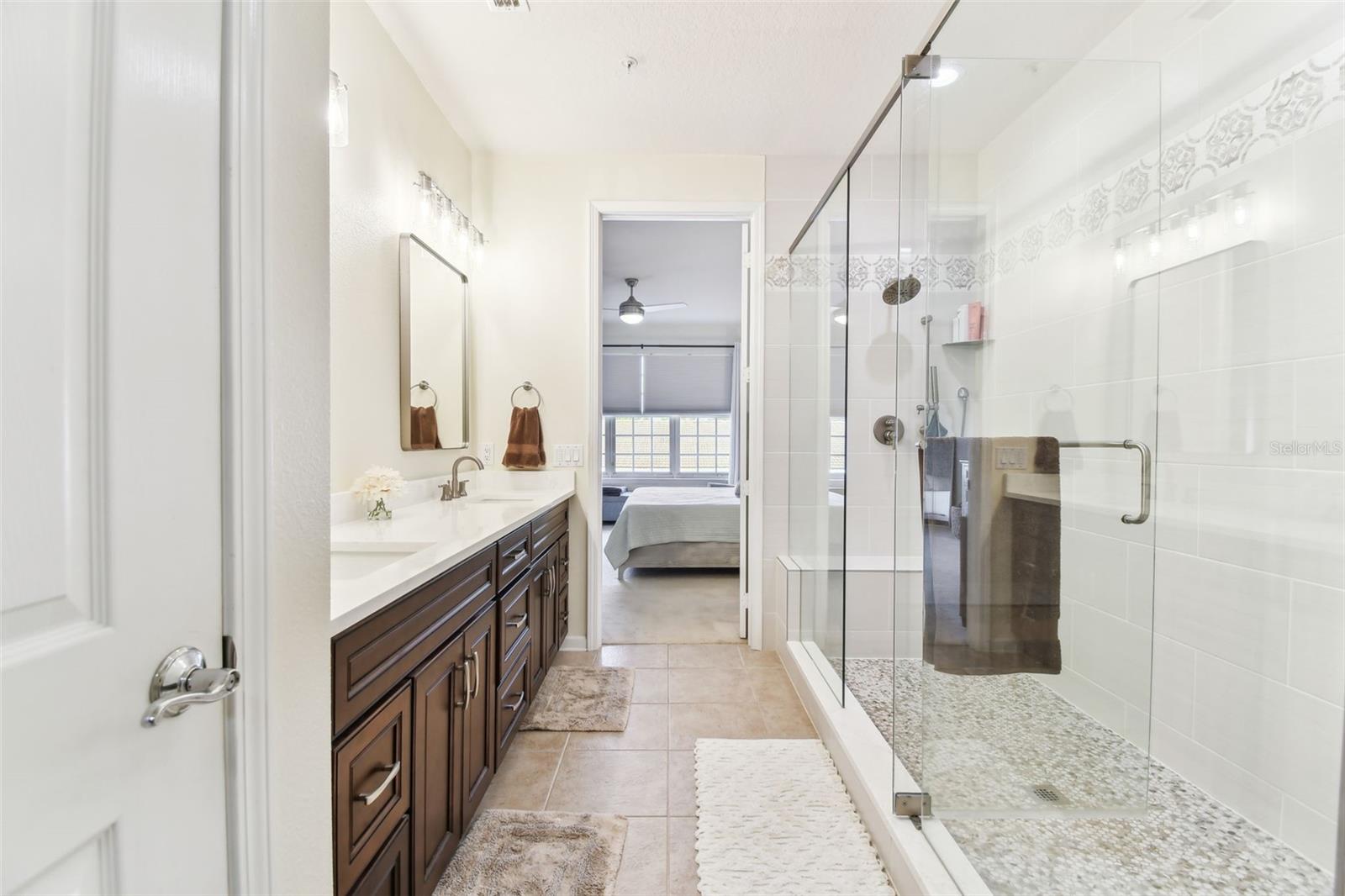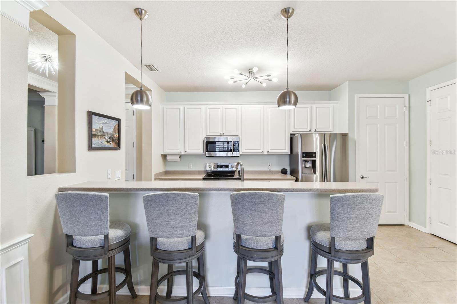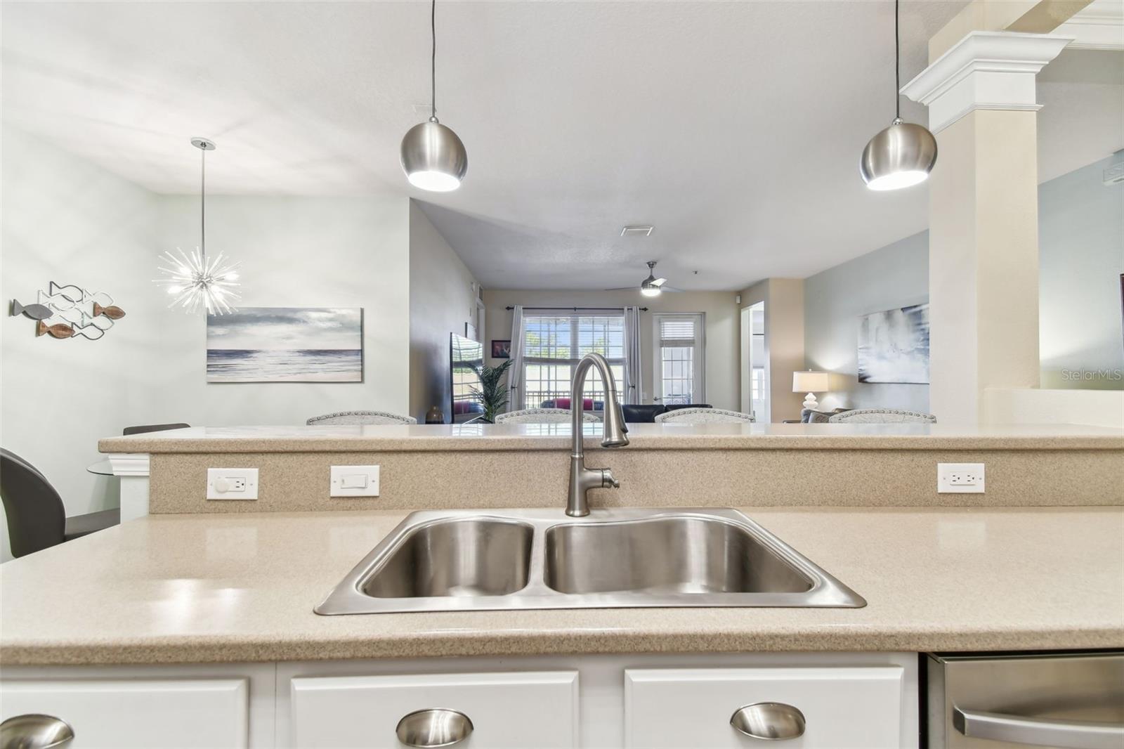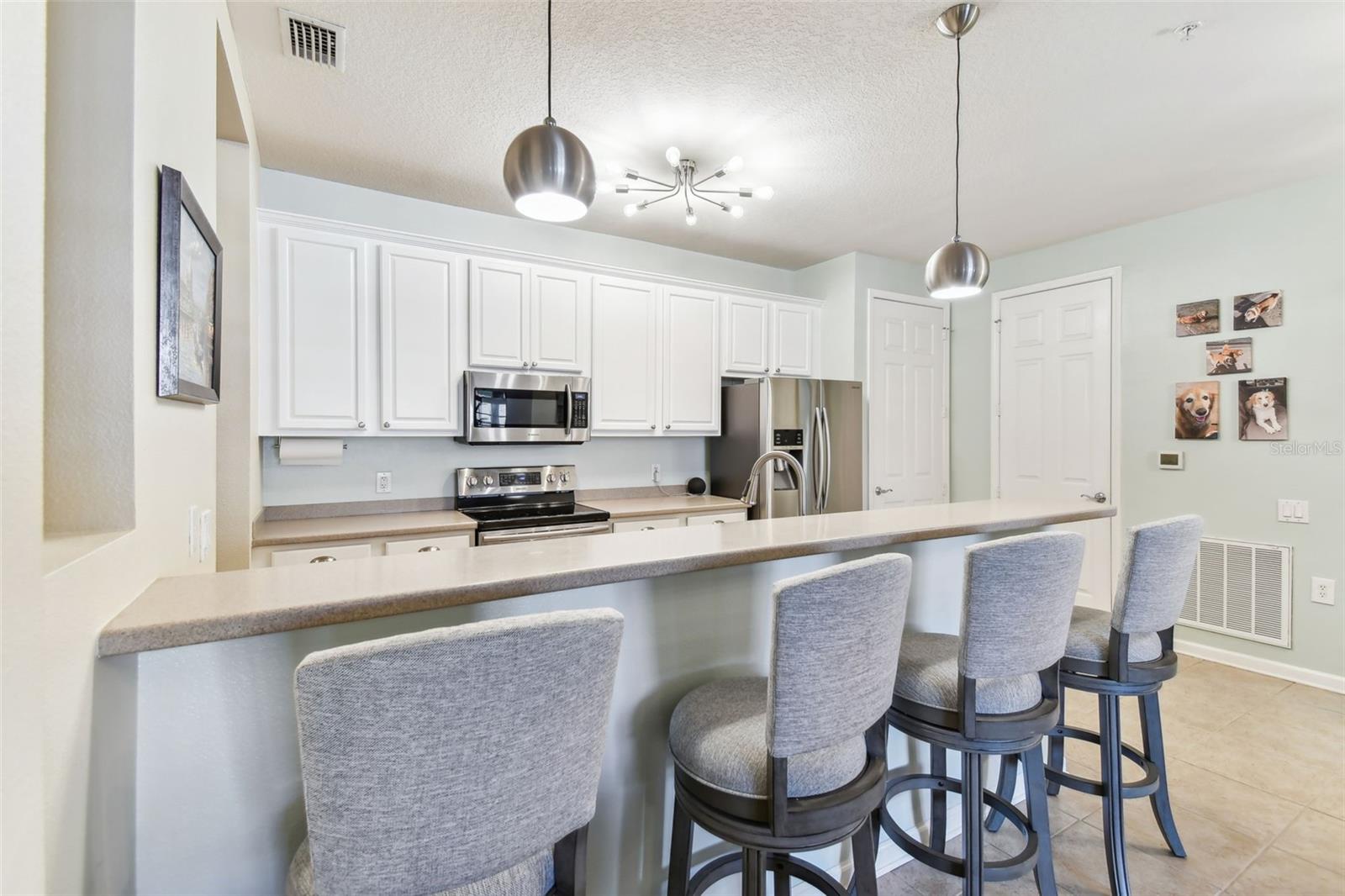 Beautiful Monterey at Lake Seminole Condo. Resort Style Living in The Heart of the County & Only Minutes to the Best Beaches in the Country. Built in 2006 with 1730 Sq Feet under air of Luxurious Living with Over $30K in Upgrades in the Primary Bathroom alone. Many Special features throughout include High Ceilings, Crown Molding and nicely appointed finishes like wainscoting. This Open floor plan makes this Condo feel Extremely Spacious & Beautiful. The Separate Formal Dining room can also be used as an office because there is plenty of space in the eat in kitchen for dining. The Kitchen offers Corian Counters & an eating bar for gathering around the kitchen while cooking or entertaining. It also features a closet pantry that is deep & as tall as the ceiling. Stainless Steel Appliances include Refrigerator, Range & Dishwasher and Microwave. The Kitchen also has a deep sink with newer faucet. New lighting fixtures in the Kitchen and Dining area. Great size living room with a door that leads to the large screened in balcony. The Balcony also has a large storage closet. The Primary Bedroom is Spacious and has a Private, Newly Remodeled Bathroom featuring an all-new state of the art huge walk-in double shower, new bathroom vanity with quartz counter, double sinks, new mirrors and fixtures plus an ex-large walk-in closet. This split floor plan offers a second bedroom which has a private access door to the full-size guest bathroom, which is also updated and features a tub shower, new vanity with quartz top, new mirror, new light fixture and a tile floor. Both Bedrooms have newer ceiling fans. Inside Laundry Room has a full size - side by side Washer/ Dryer and a Water Softener. Lush Landscaping Surrounds this Beautiful Property. This Building has a Brand-New Roof as of March 2025. This Condo includes an assigned Covered Carport B-17 and plenty of guest parking right in front of the building. This is a Gated Community which offers a Heated Community Pool plus a Covered dining social area with gas grills & restrooms. It also offers a Rec Room which houses an on-site Gym with new equipment & a lite fountain in the lagoon. Another special feature is the Fishing Pier situated on Lake Seminole. Condo Dues include Water, Trash, Cable, Internet, Grounds Maintenace, Pool Care, Exterior Insurance and Escrow Reserves, Exterior Paint, Roof and more. This is a Pet friendly community. Seminole City Center is one mile away for Great Shopping & Dining Options. High Scores on these Great Schools from Elementary thru High School. Free Membership to Seminole Recreation Center which has Everything & all Activity's very close by. Only 30 minutes to Tampa International Airport. Living here in this community of Monterey at Lake Seminole is truly a Lifestyle. Check it out for yourself today.