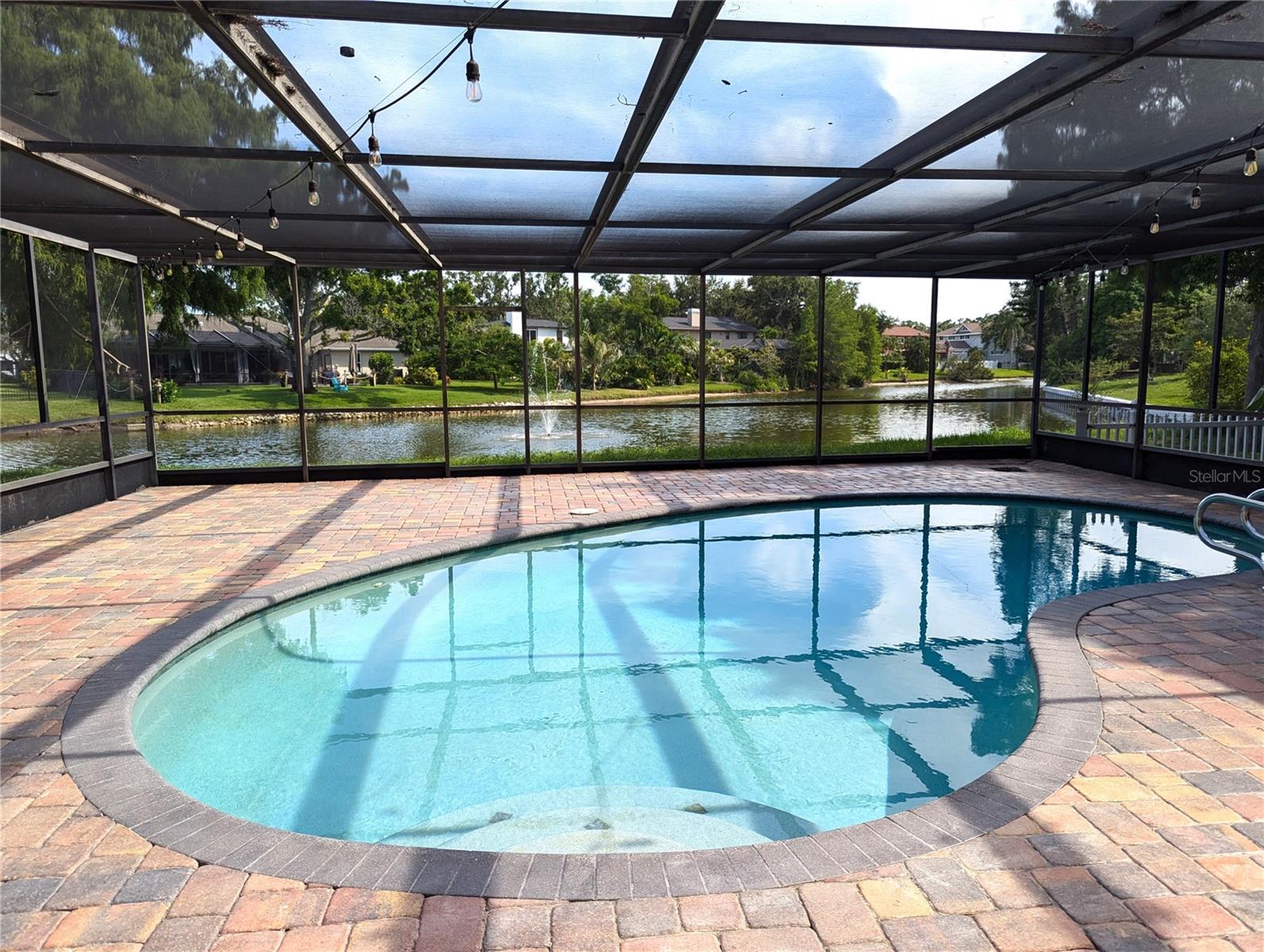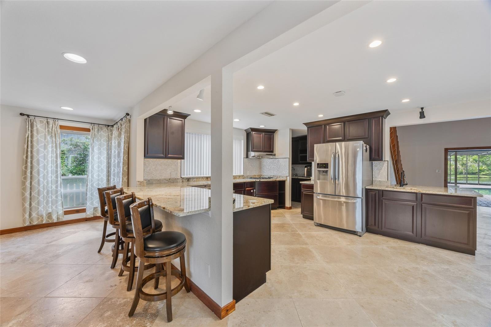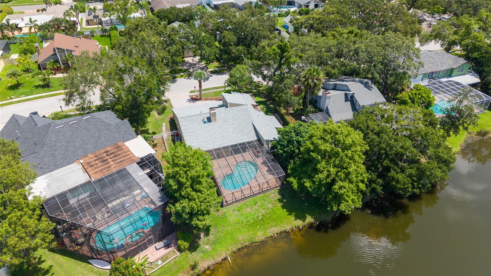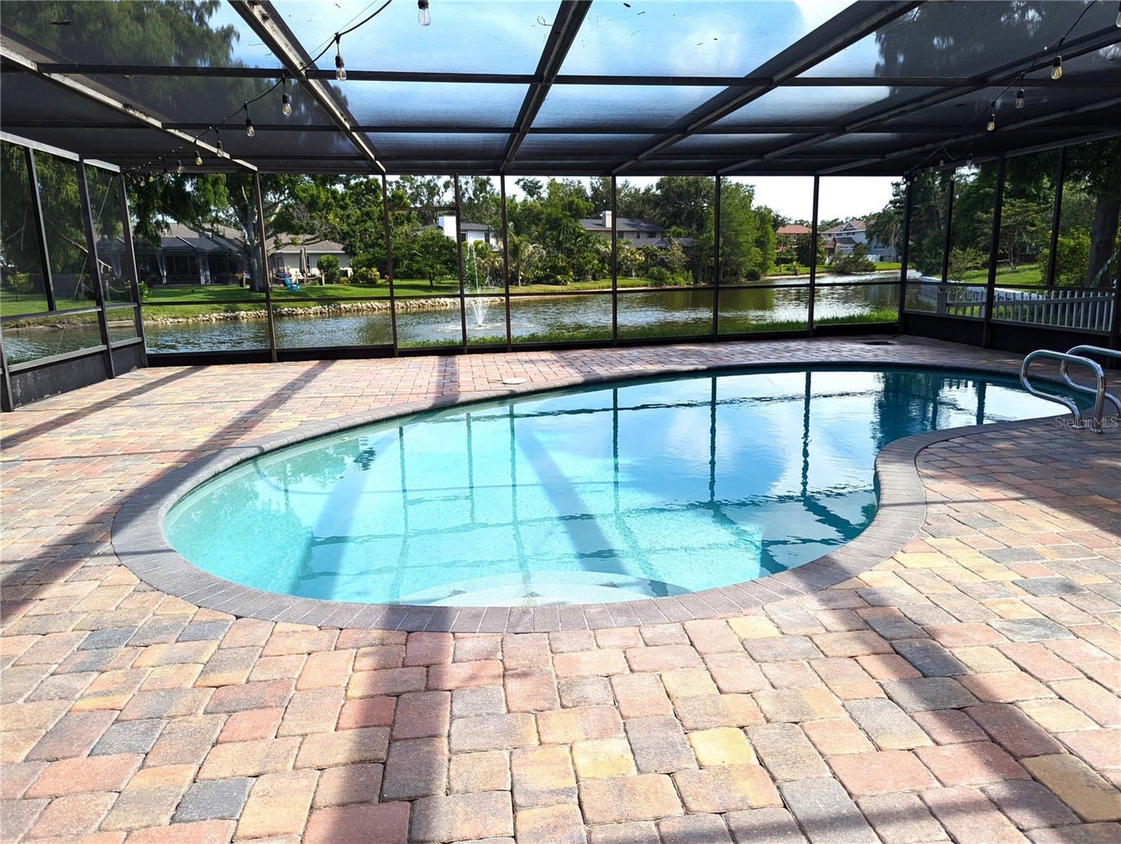 One or more photo(s) has been virtually staged.....Welcome to waterfront living at its finest. This home is located in the highly desirable Seminole Lake Golf and Country Club community! This move-in condition well-kept home features 4-bedrooms, 3-bathrooms with 0.44-acre lake-front lot with an oversized two-car garage. It also features a large, screened pool for family gatherings and entertaining friends. The pool also has a newer natural gas heater which was installed in 2023. A Newer ac unit which was installed in 2021, with a 10-year labor and parts warranty. The roof was replaced in May of 2025. The home offers indoor and outdoor living with an open functional floor plan with an atrium. Upon entering through the grand double doors, you are astonished by the breathtaking views. The perfect place for sunsets. The home displays elegance and comfort for all occasions. The kitchen has custom cabinetry, granite counters, stainless appliances, gas cook-top and a breakfast bar. The home has gas which assists with lower utility bills. The home also features a home security system which is wired 14 PoE IP cameras with remote viewing and AI motion alerts. This travertine home also has a WHOLE HOUSE natural gas generator, accordion hurricane shutters and Jacuzzi tub, wet/dry sauna, separate shower, updated vanities and has never been affected by hurricanes or flood. The lawn is manicured with mature landscape and trees. Your address is located near the Seminole Lake Golf Course and close to shopping, dining, great schools and a short trip to the beautiful Gulf beaches. Schedule your showing today and live the Florida lifestyle. Don’t miss out on making this dream home your own.