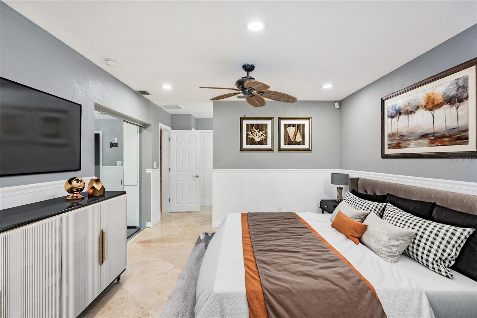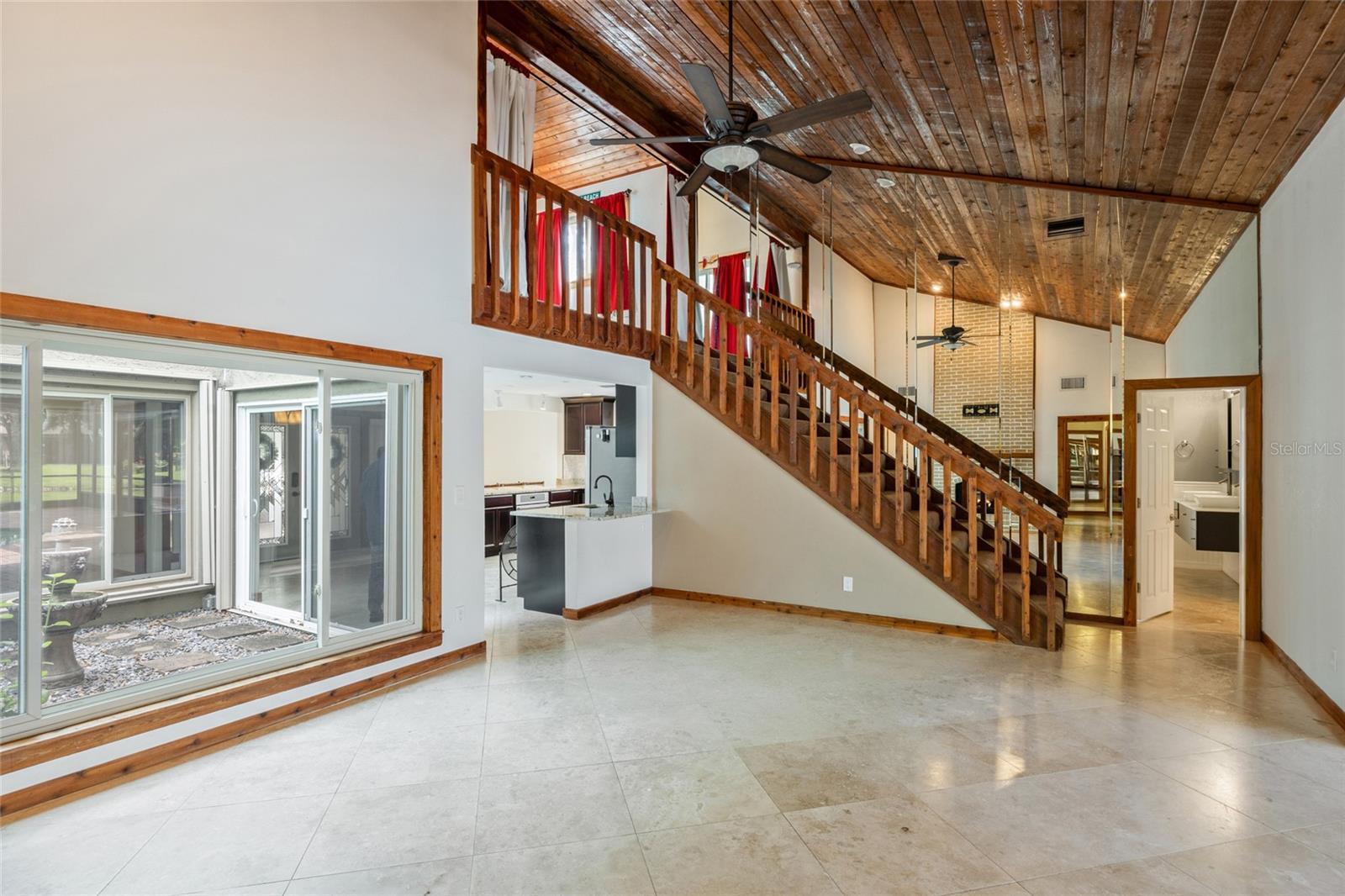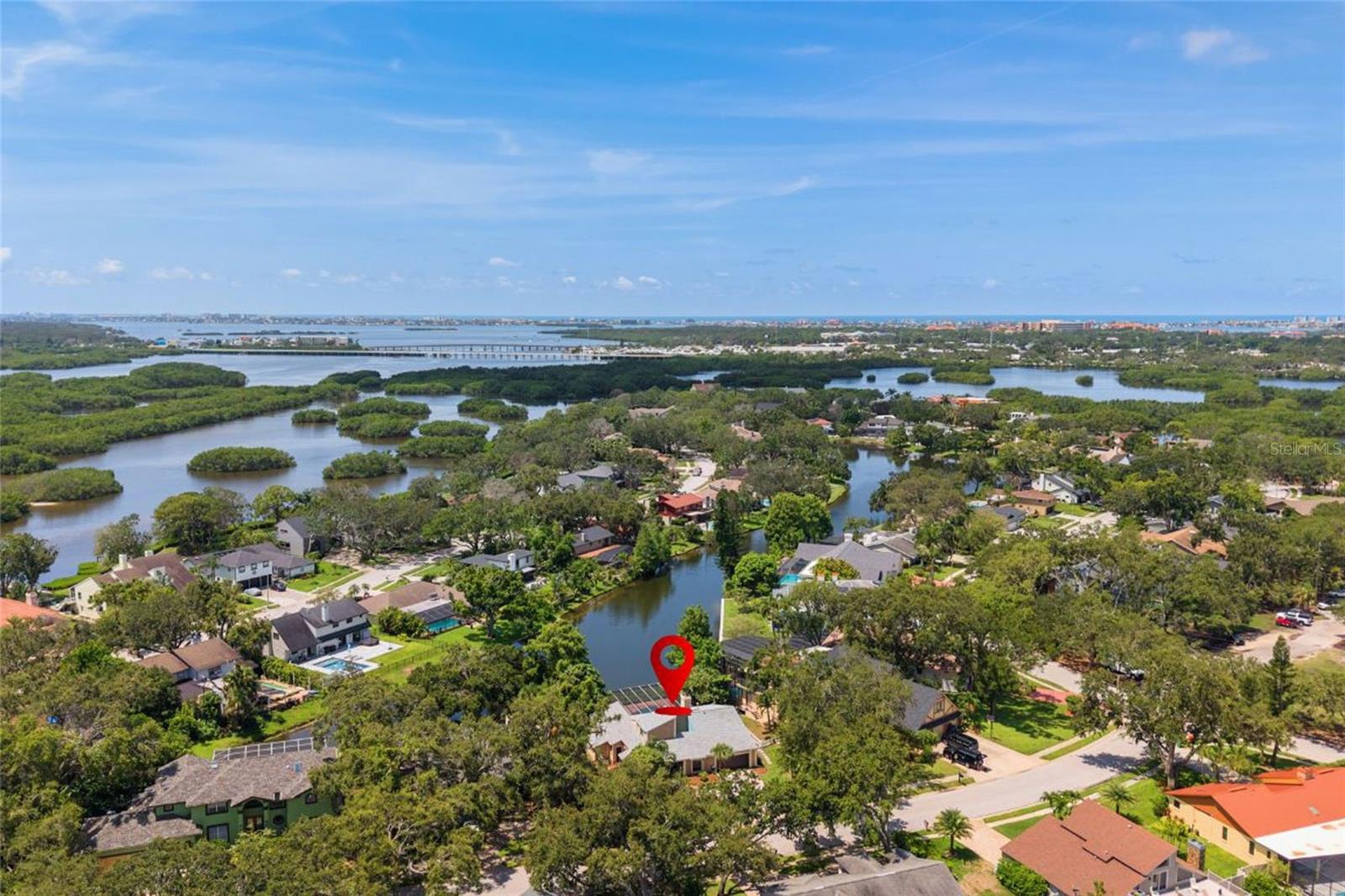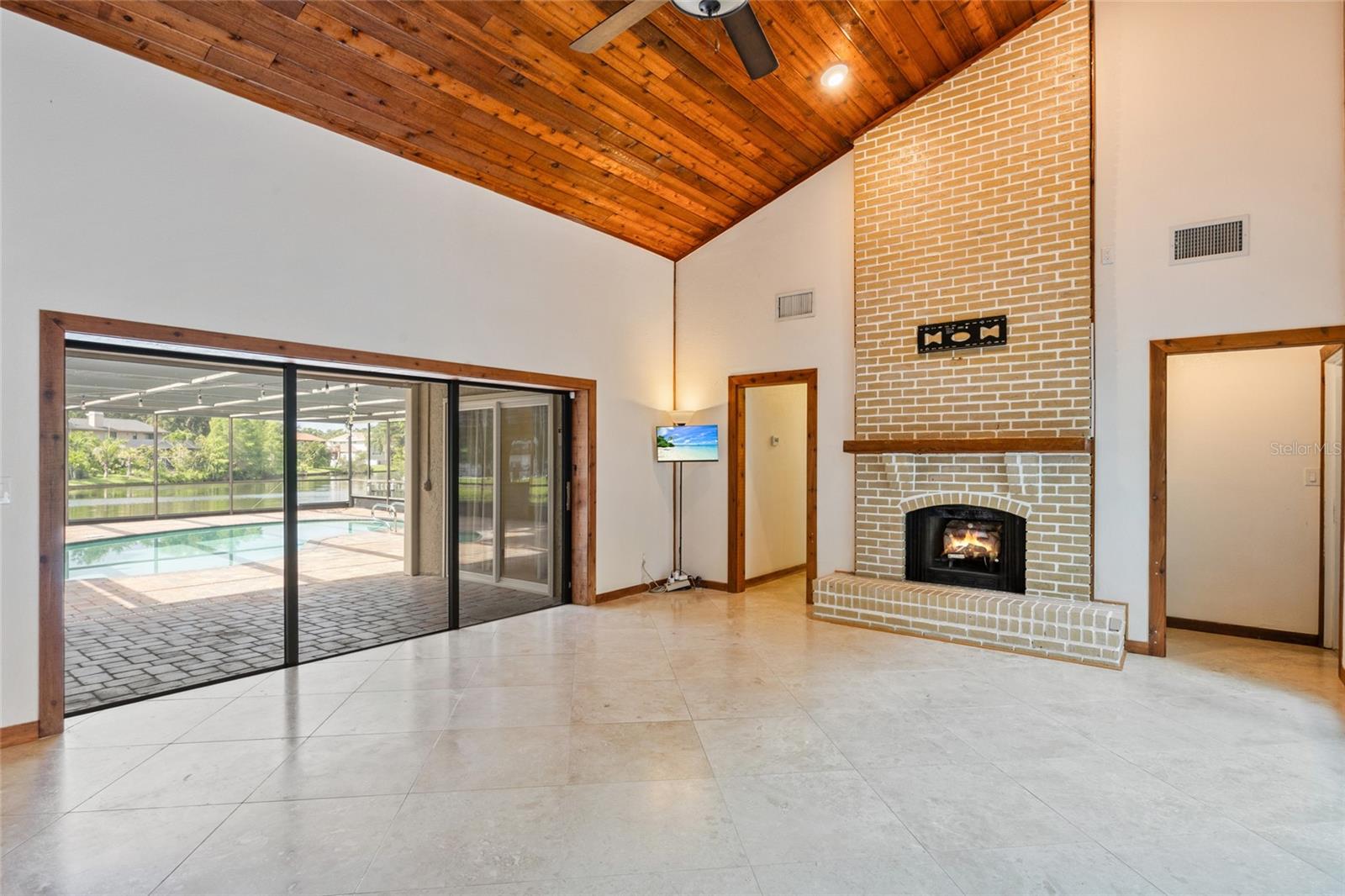 One or more photo(s) has been virtually staged.....Welcome to waterfront living at its finest. This home is located in the highly desirable Seminole Lake Golf and Country Club community! This move-in condition well-kept home features 4-bedrooms, 3-bathrooms with 0.44-acre lake-front lot with an oversized two-car garage. It also features a large, screened pool for family gatherings and entertaining friends. The pool also has a newer natural gas heater which was installed in 2023. A Newer ac unit which was installed in 2021, with a 10-year labor and parts warranty. The roof was replaced in May of 2025. The home offers indoor and outdoor living with an open functional floor plan with an atrium. Upon entering through the grand double doors, you are astonished by the breathtaking views. The perfect place for sunsets. The home displays elegance and comfort for all occasions. The kitchen has custom cabinetry, granite counters, stainless appliances, gas cook-top and a breakfast bar. The home has gas which assists with lower utility bills. The home also features a home security system which is wired 14 PoE IP cameras with remote viewing and AI motion alerts. This travertine home also has a WHOLE HOUSE natural gas generator, accordion hurricane shutters and Jacuzzi tub, wet/dry sauna, separate shower, updated vanities and has never been affected by hurricanes or flood. The lawn is manicured with mature landscape and trees. Your address is located near the Seminole Lake Golf Course and close to shopping, dining, great schools and a short trip to the beautiful Gulf beaches. Schedule your showing today and live the Florida lifestyle. Don’t miss out on making this dream home your own.